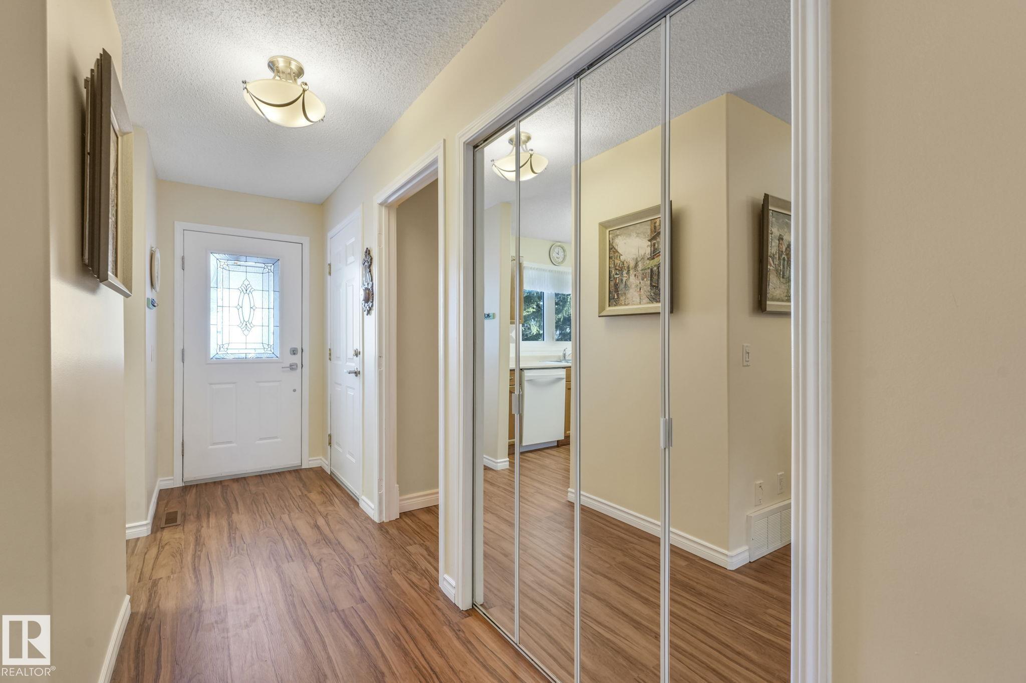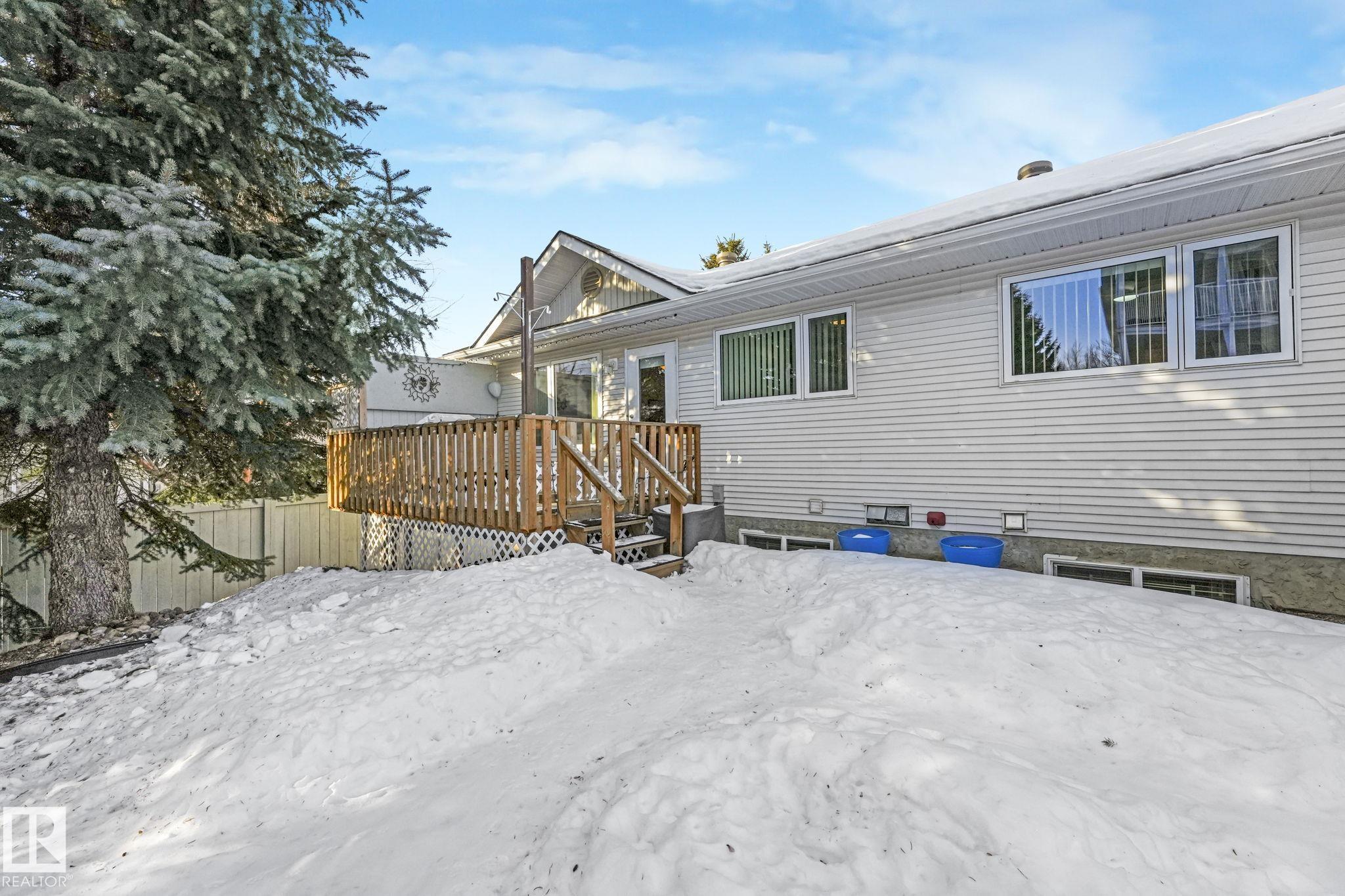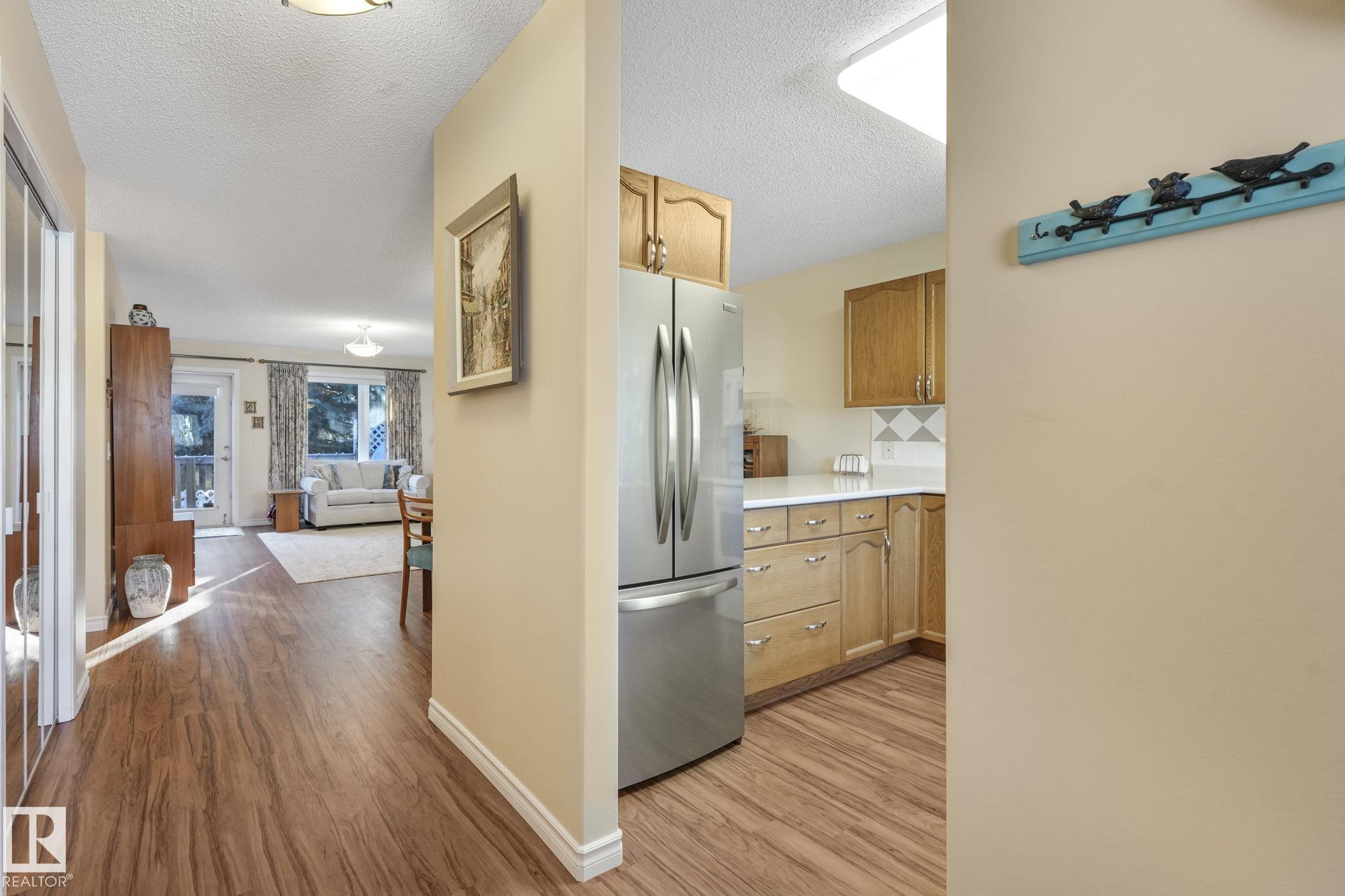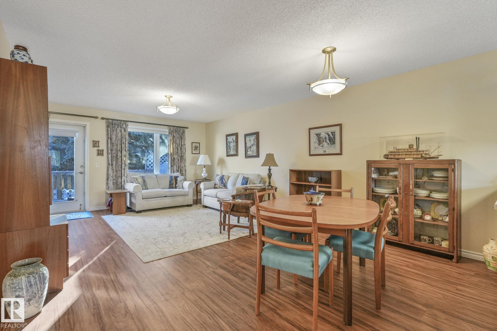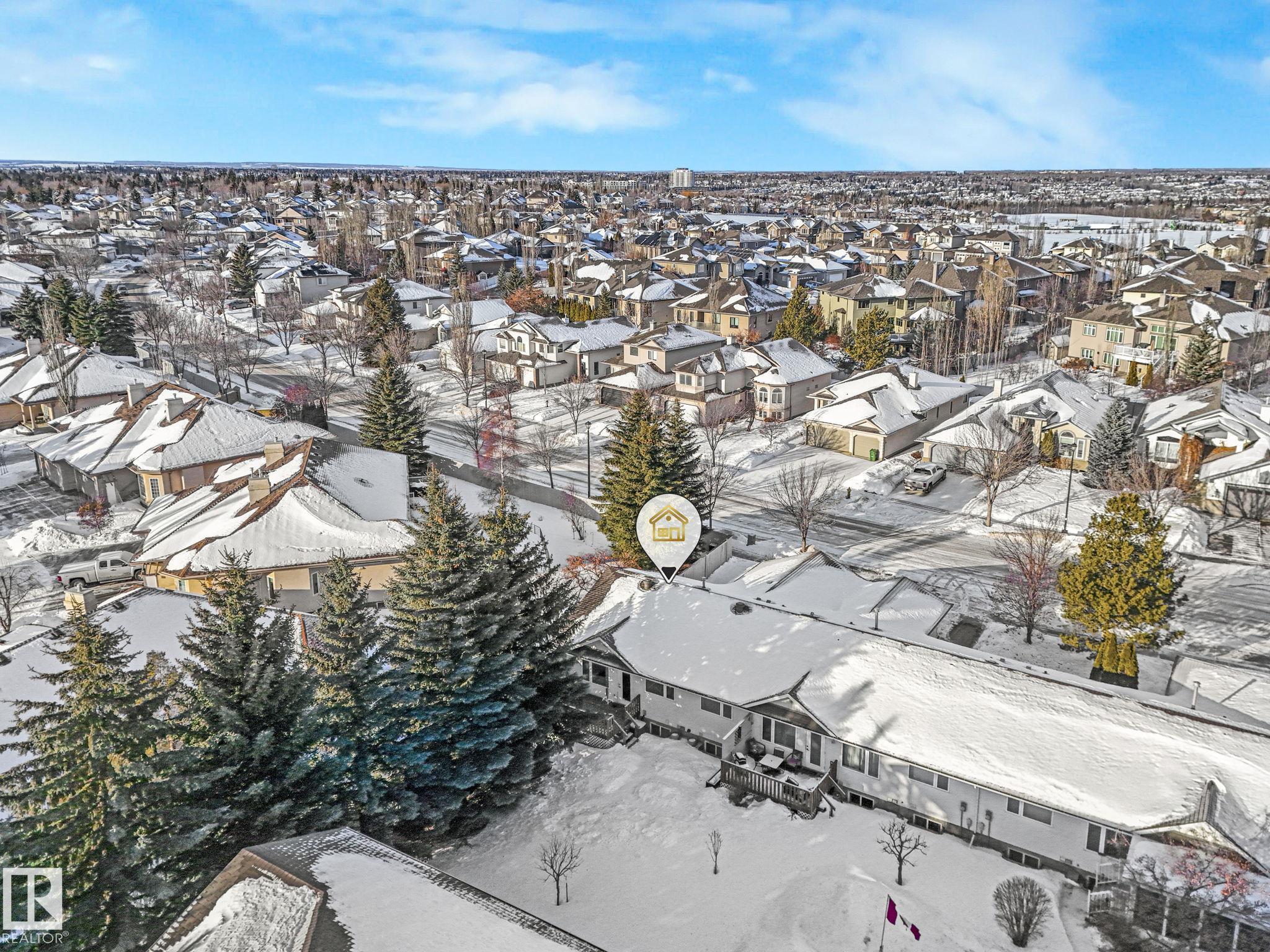 Mint condition and truly turnkey end unit bungalow in a prestigious 45+ Kingswood community. This impeccably maintained bungalow has been freshly painted with brand-new luxury vinyl plank flooring on the main floor, delivering modern, worry-free living with all major updates already completed. Low condo fees in this quiet, well-managed complex where exterior maintenance is fully handled. The home offers 2+1 bedrooms, 3 bathrooms, main-floor laundry, a fully finished basement, and a large double attached insulated garage. Bright and open main floor with lots of south facing windows throughout. Major upgrades include the furnace + hot water tank (2019), central A/C, central vacuum, newer appliances, a newer deck, and updated door hardware?clear evidence of pride of ownership. Rare facing Kingswood Blvd, residents enjoy exceptional amenities including a party room, library, games room, guest suite, and direct access to walking trails. Steps from Servus Place Rec Centre and short drive to all amenities.