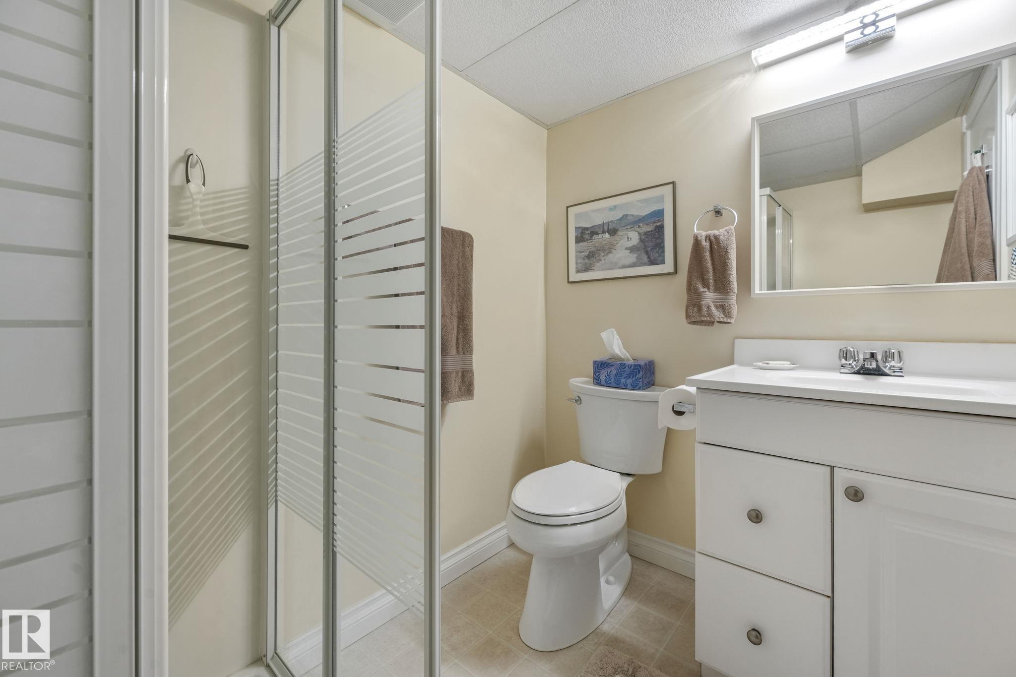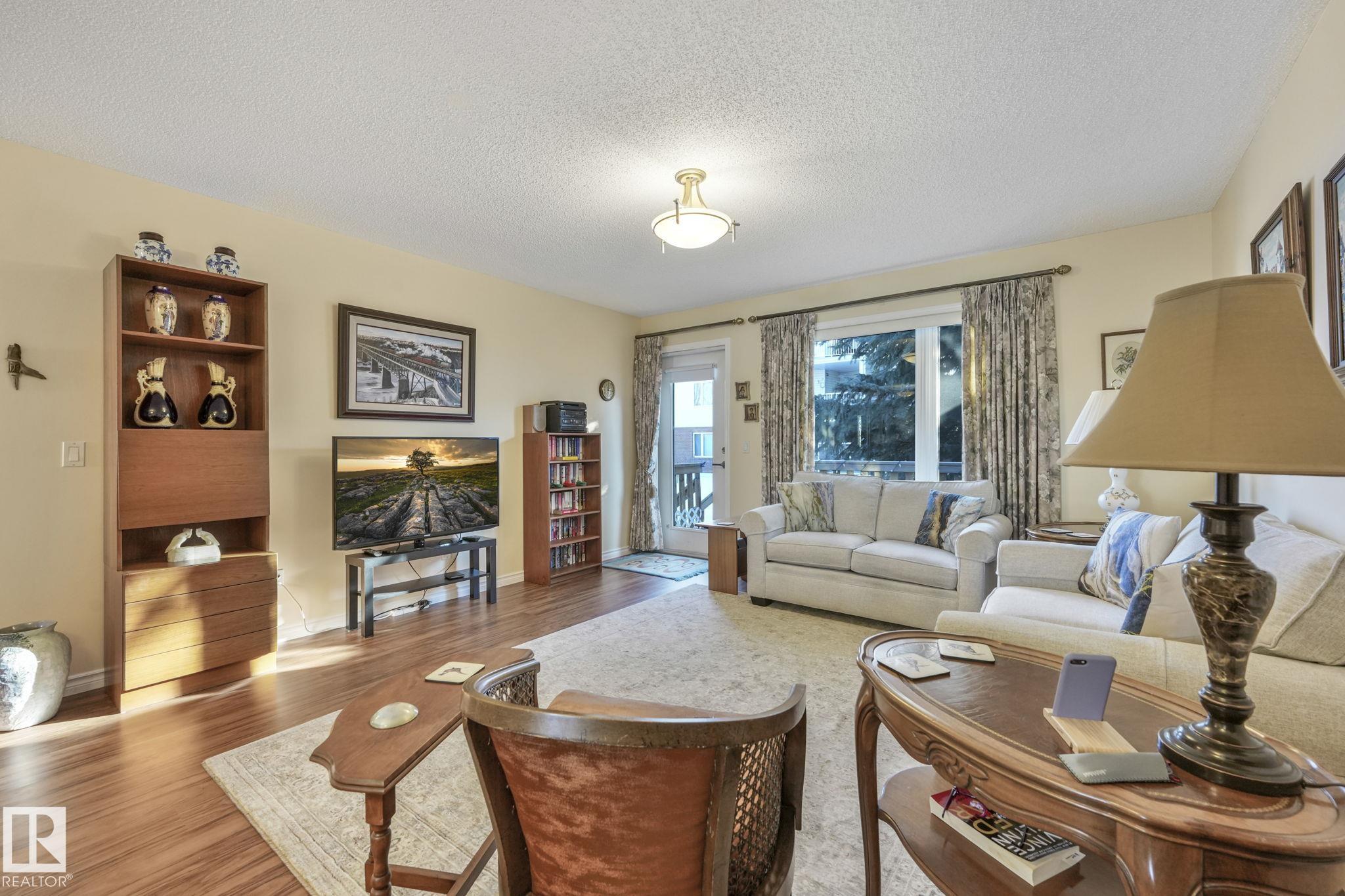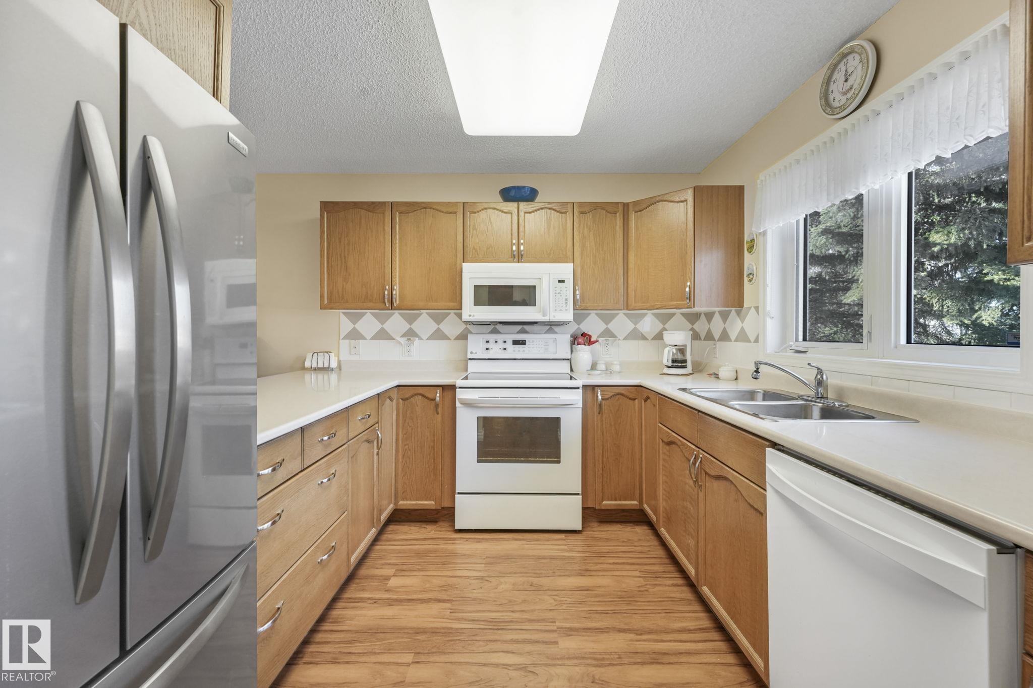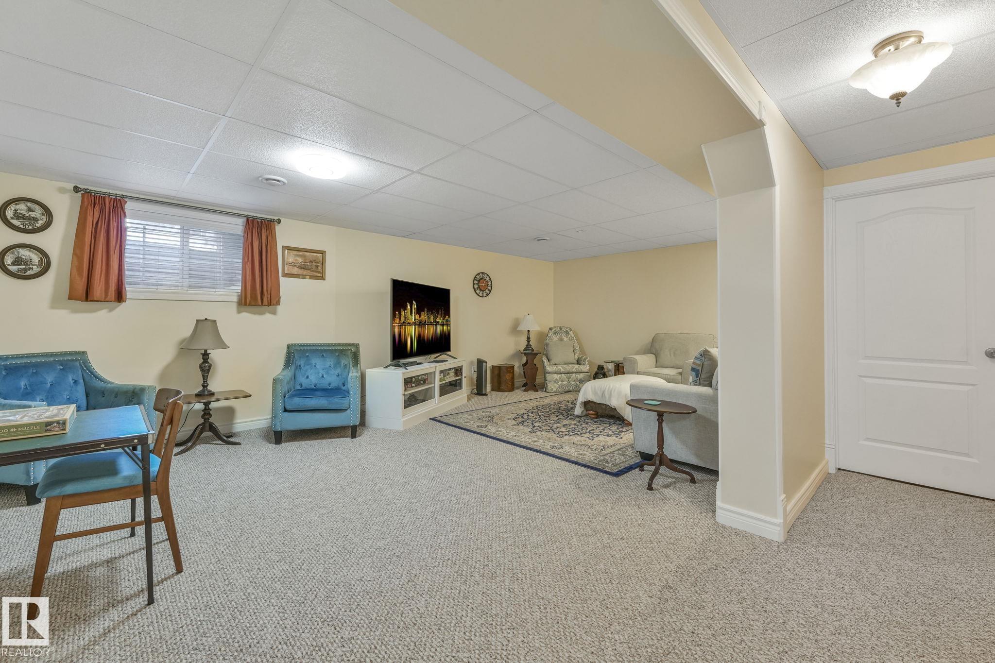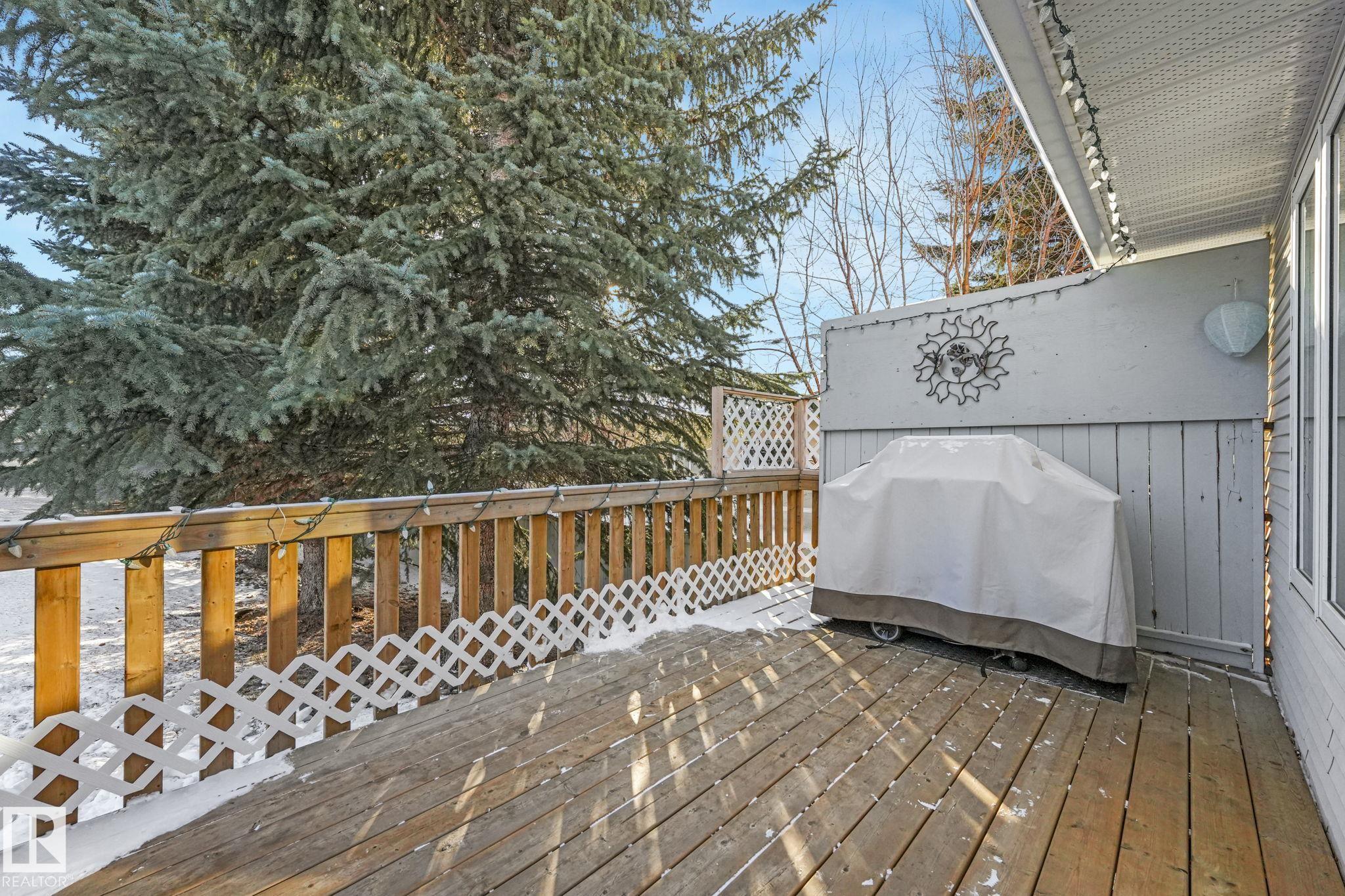 Mint condition and truly turnkey end unit bungalow in a prestigious 45+ Kingswood community. This impeccably maintained bungalow has been freshly painted with brand-new luxury vinyl plank flooring on the main floor, delivering modern, worry-free living with all major updates already completed. Low condo fees in this quiet, well-managed complex where exterior maintenance is fully handled. The home offers 2+1 bedrooms, 3 bathrooms, main-floor laundry, a fully finished basement, and a large double attached insulated garage. Bright and open main floor with lots of south facing windows throughout. Major upgrades include the furnace + hot water tank (2019), central A/C, central vacuum, newer appliances, a newer deck, and updated door hardware?clear evidence of pride of ownership. Rare facing Kingswood Blvd, residents enjoy exceptional amenities including a party room, library, games room, guest suite, and direct access to walking trails. Steps from Servus Place Rec Centre and short drive to all amenities.