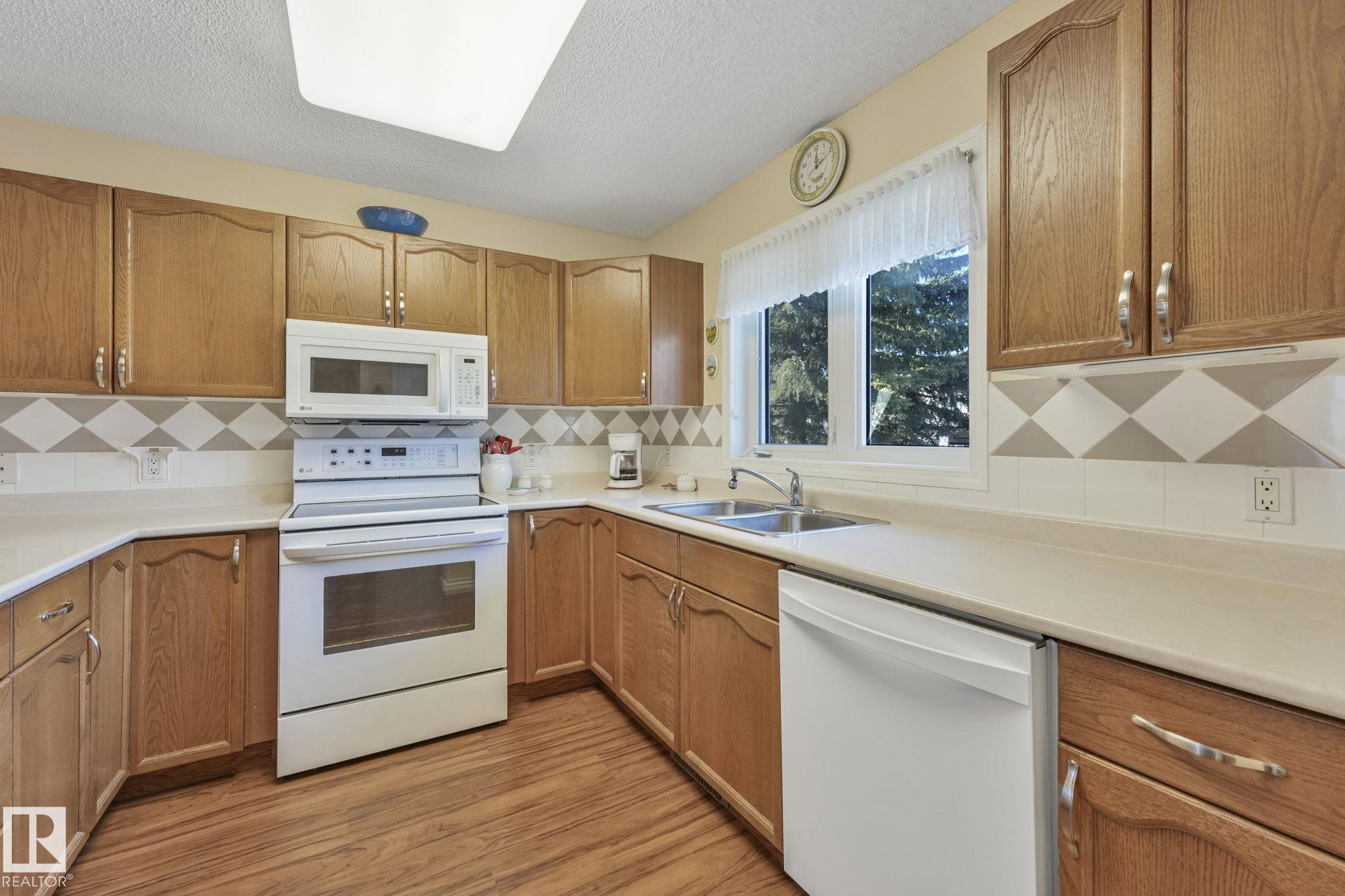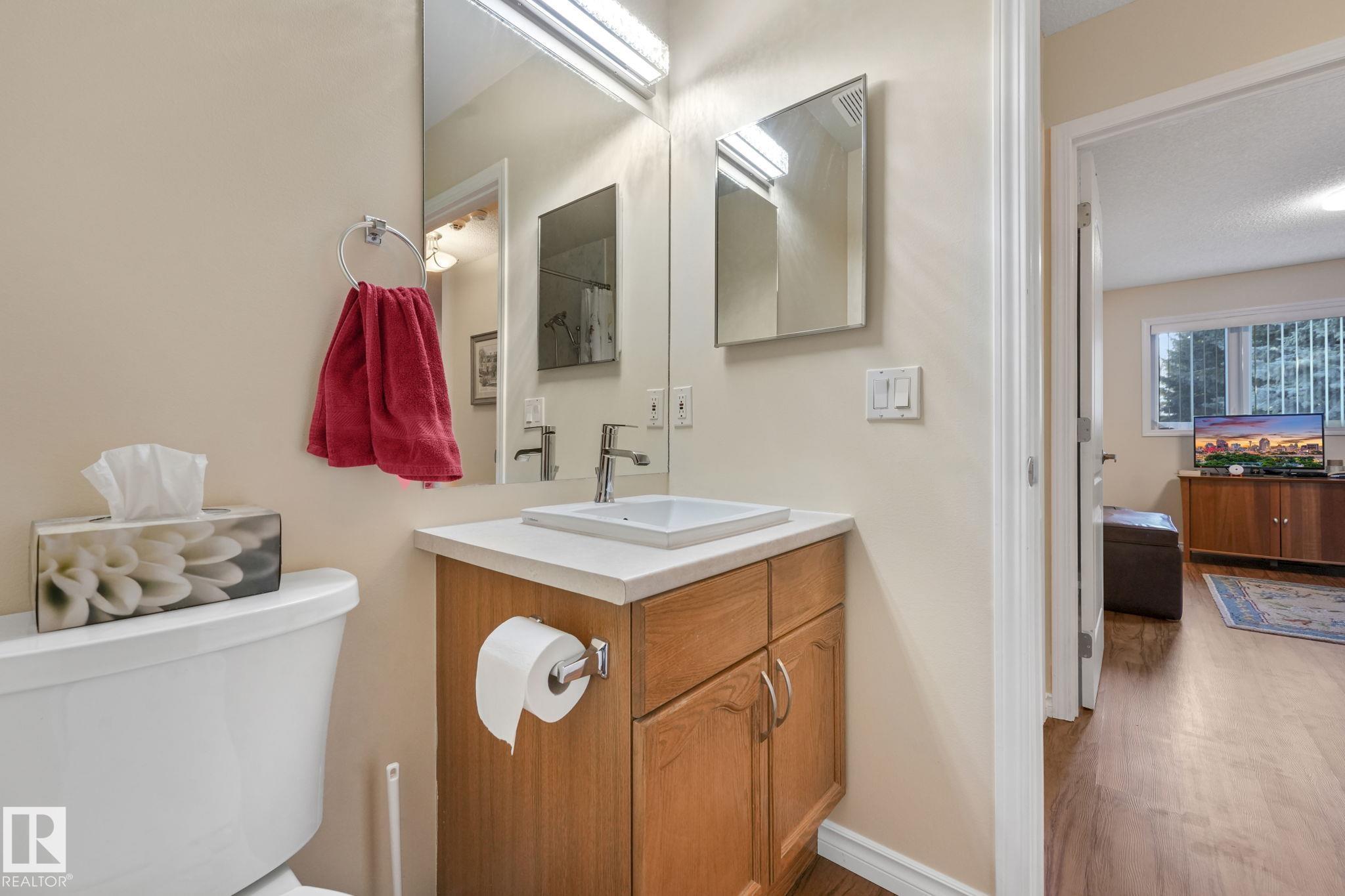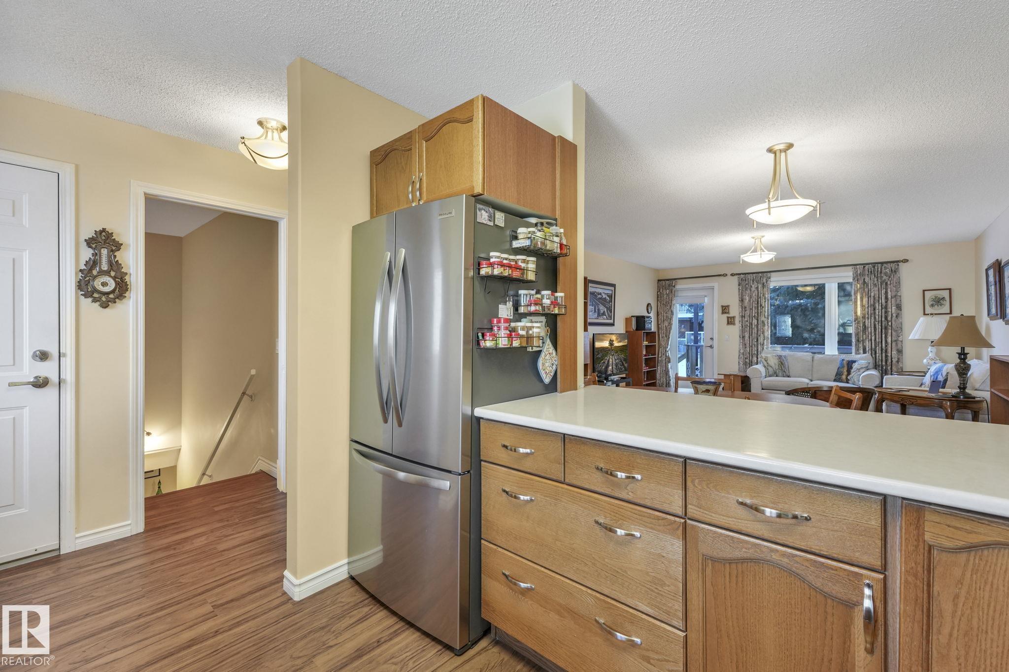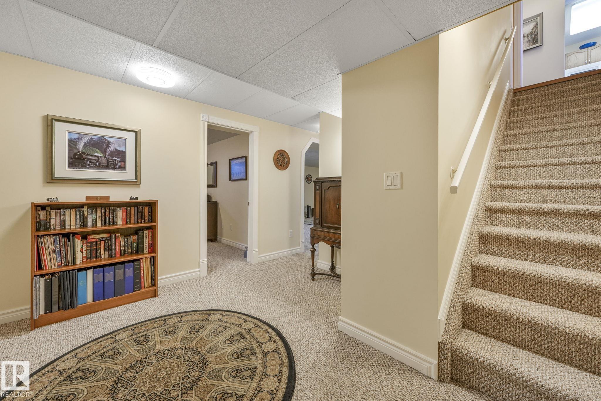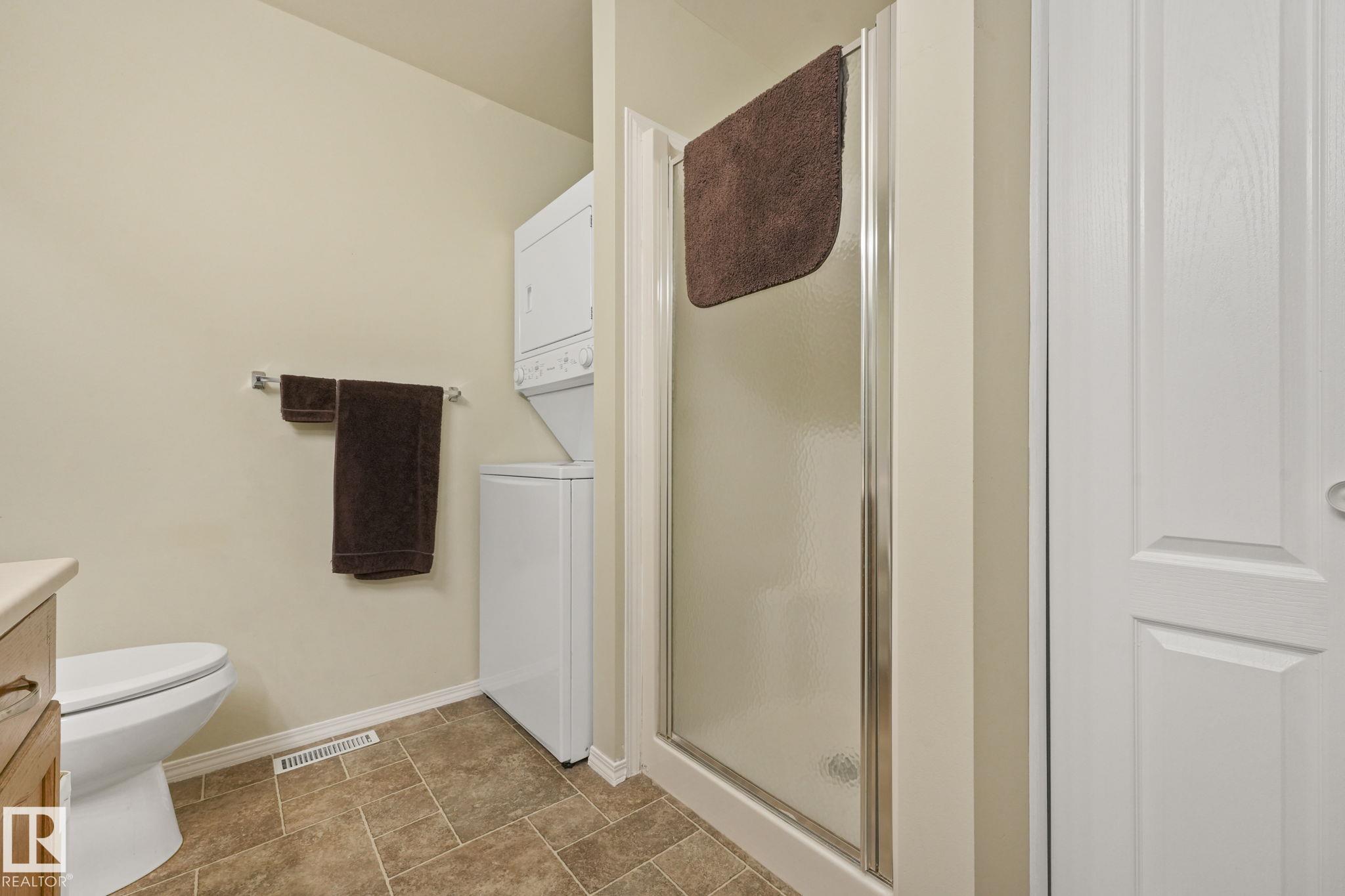 Mint condition and truly turnkey end unit bungalow in a prestigious 45+ Kingswood community. This impeccably maintained bungalow has been freshly painted with brand-new luxury vinyl plank flooring on the main floor, delivering modern, worry-free living with all major updates already completed. Low condo fees in this quiet, well-managed complex where exterior maintenance is fully handled. The home offers 2+1 bedrooms, 3 bathrooms, main-floor laundry, a fully finished basement, and a large double attached insulated garage. Bright and open main floor with lots of south facing windows throughout. Major upgrades include the furnace + hot water tank (2019), central A/C, central vacuum, newer appliances, a newer deck, and updated door hardware?clear evidence of pride of ownership. Rare facing Kingswood Blvd, residents enjoy exceptional amenities including a party room, library, games room, guest suite, and direct access to walking trails. Steps from Servus Place Rec Centre and short drive to all amenities.