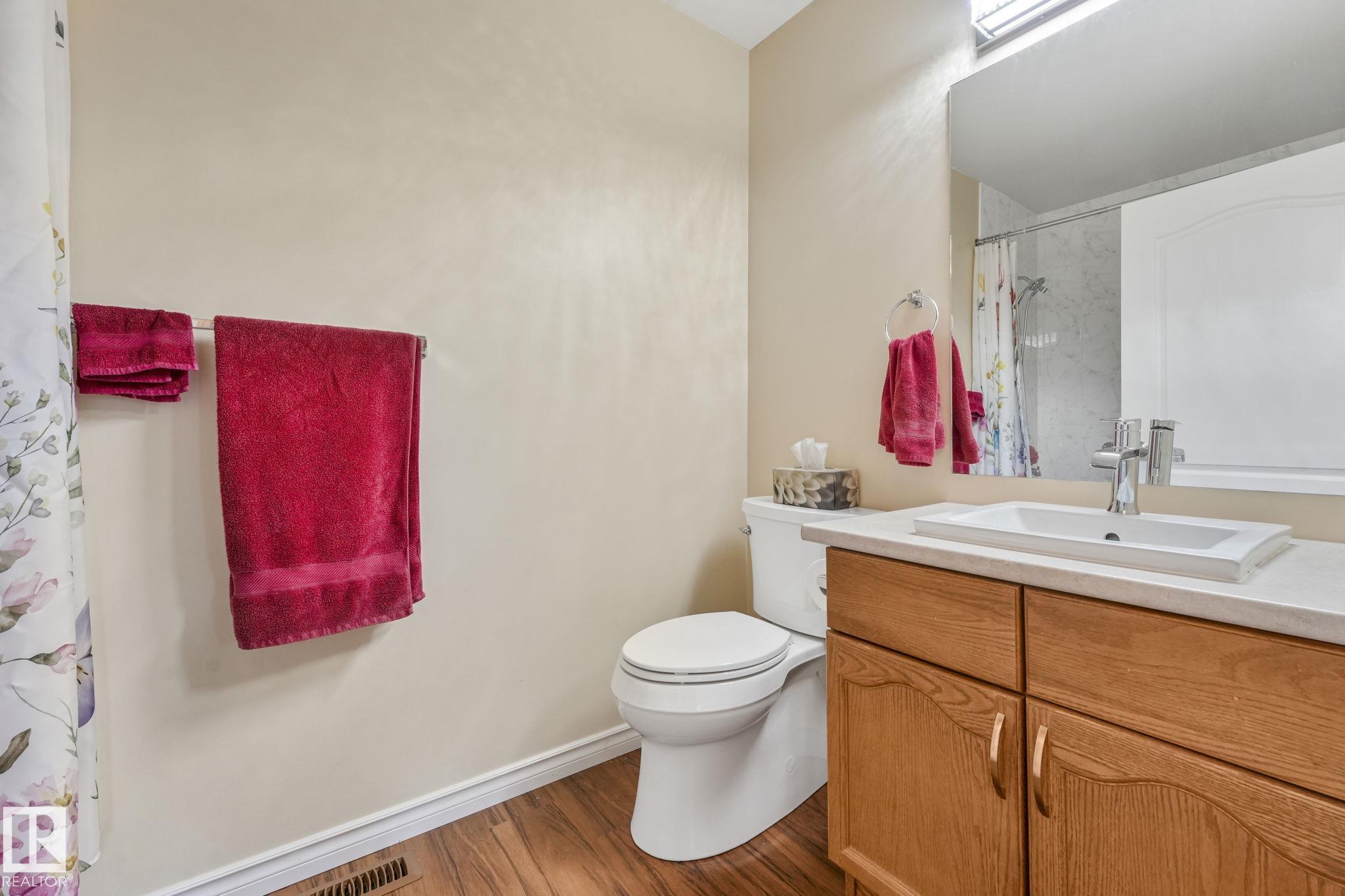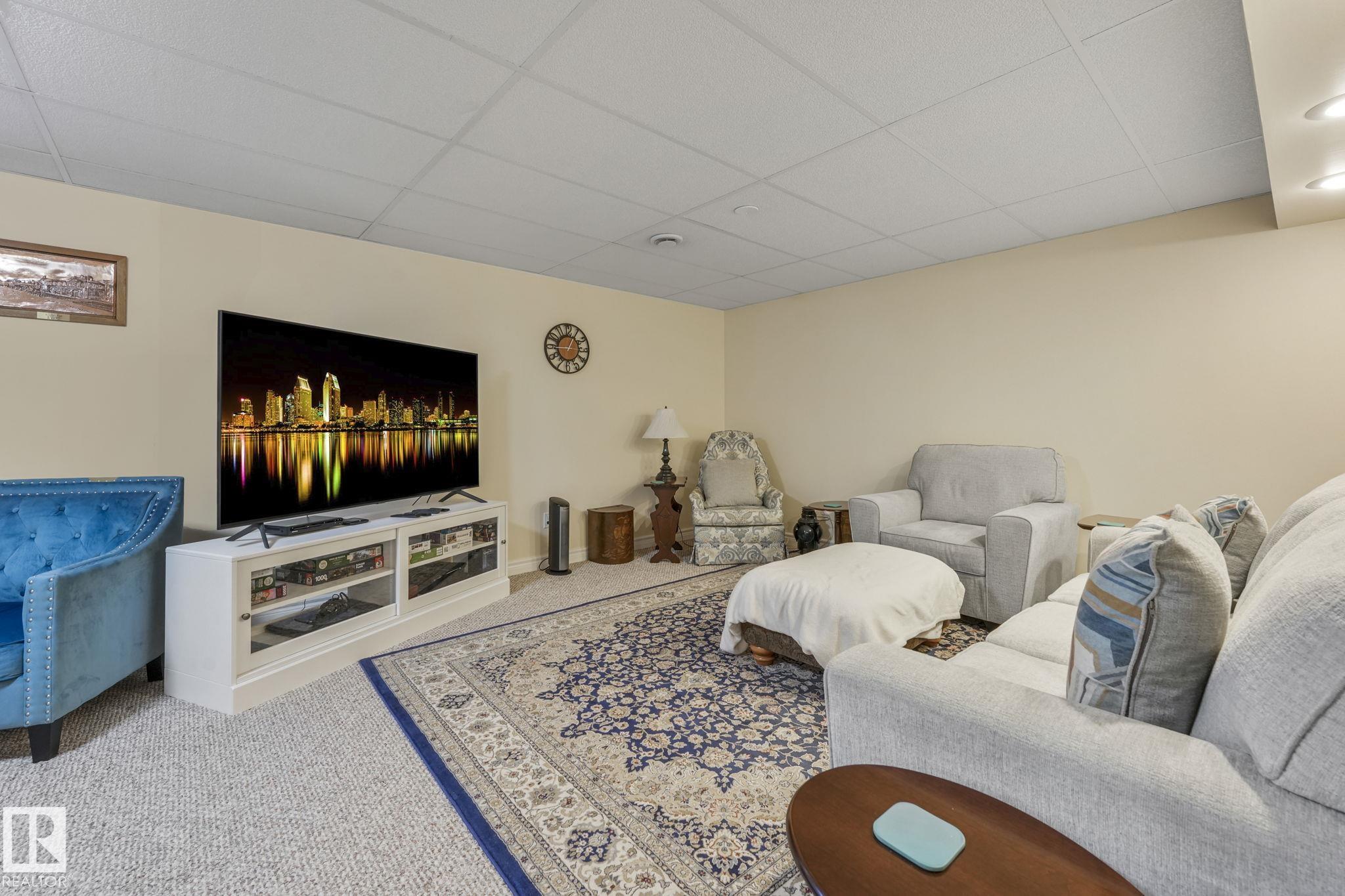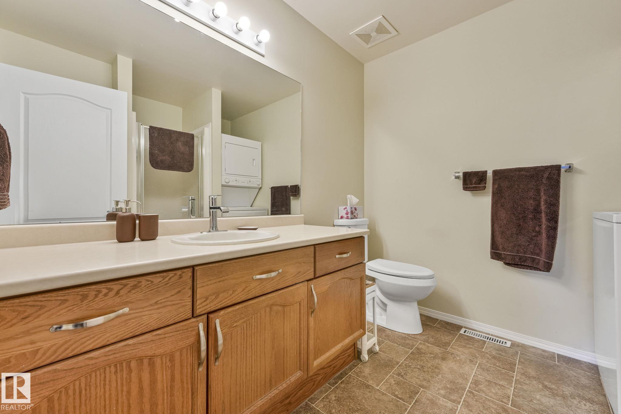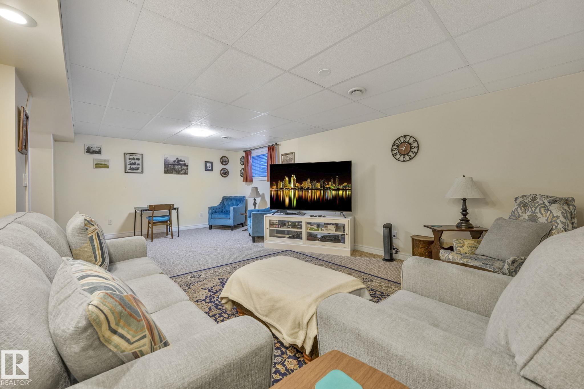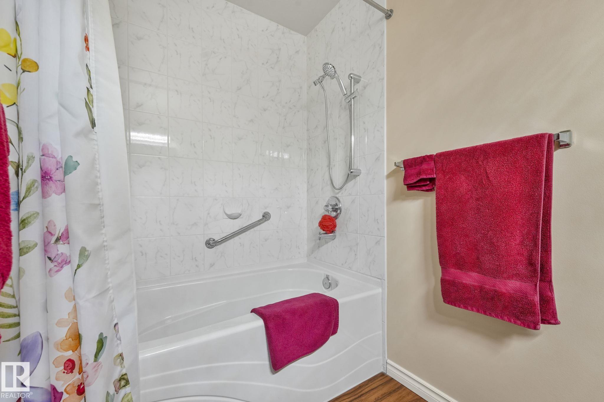 Mint condition and truly turnkey end unit bungalow in a prestigious 45+ Kingswood community. This impeccably maintained bungalow has been freshly painted with brand-new luxury vinyl plank flooring on the main floor, delivering modern, worry-free living with all major updates already completed. Low condo fees in this quiet, well-managed complex where exterior maintenance is fully handled. The home offers 2+1 bedrooms, 3 bathrooms, main-floor laundry, a fully finished basement, and a large double attached insulated garage. Bright and open main floor with lots of south facing windows throughout. Major upgrades include the furnace + hot water tank (2019), central A/C, central vacuum, newer appliances, a newer deck, and updated door hardware?clear evidence of pride of ownership. Rare facing Kingswood Blvd, residents enjoy exceptional amenities including a party room, library, games room, guest suite, and direct access to walking trails. Steps from Servus Place Rec Centre and short drive to all amenities.