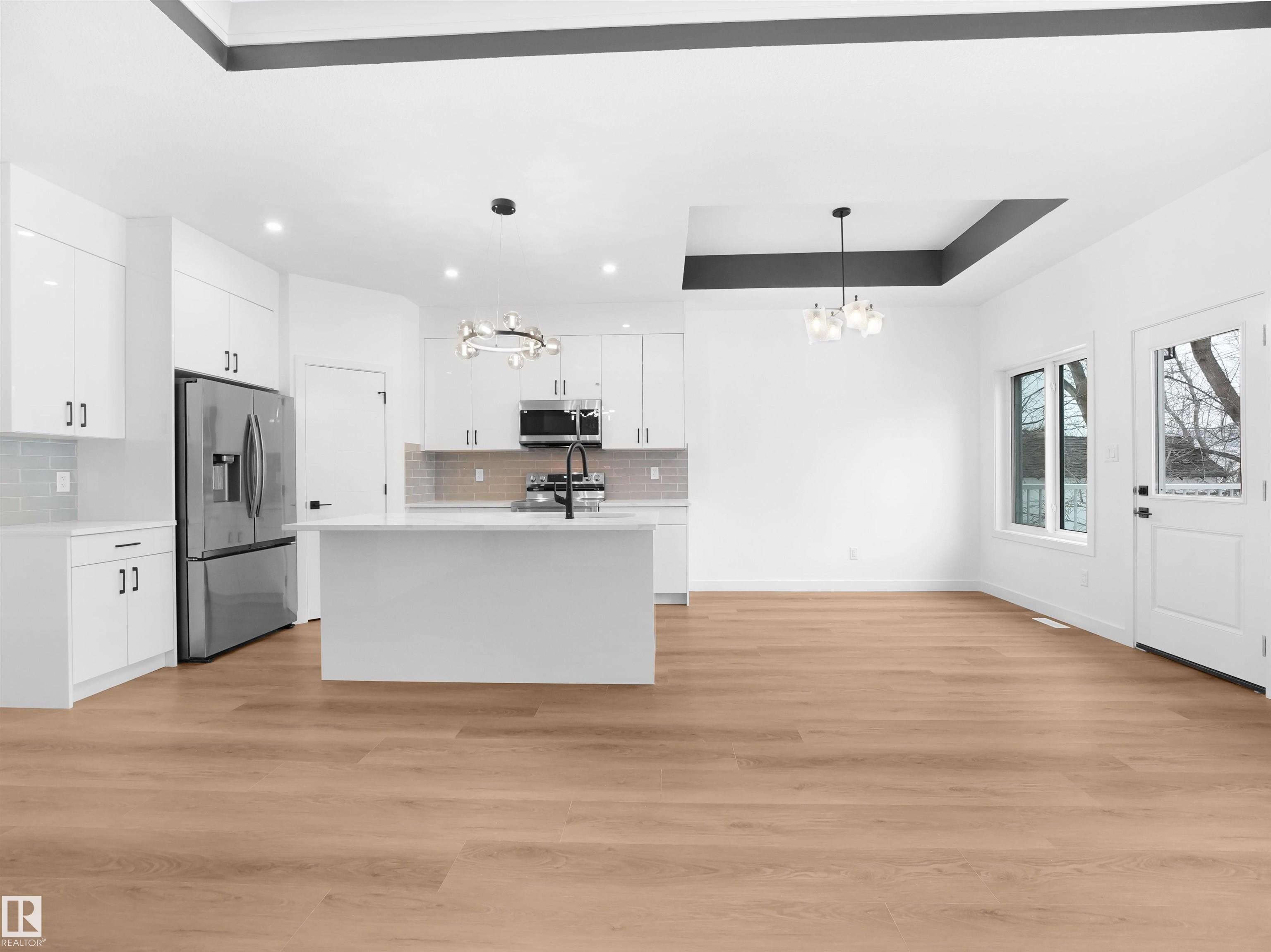 Welcome to this brand-new, never-lived-in bungalow, built for comfort and everyday practicality. A welcoming foyer leads into an open-concept layout with a modern kitchen featuring SS appliances, tile backsplash, center island, double-door fridge, and a telephone desk counter, with the dining area adjoining. A door off the dining/living space opens to the deck?perfect for indoor-outdoor living. The bright living room offers a tiled feature wall, stylish lighting, and large backyard-facing windows for plenty of natural light. The primary bedroom includes a chandelier, walk-in closet & a 4-pc ensuite with double vanity & standing shower. Two more bedrooms, another 4-pc bath & mudroom/laundry complete the level. Added value includes north-facing exposure, oversized triple-car garage, gas lines to the garage & deck, 9-ft ceilings, MDF shelving throughout, high-efficiency furnace & a side entrance to an unfinished basement ready for your ideas.
