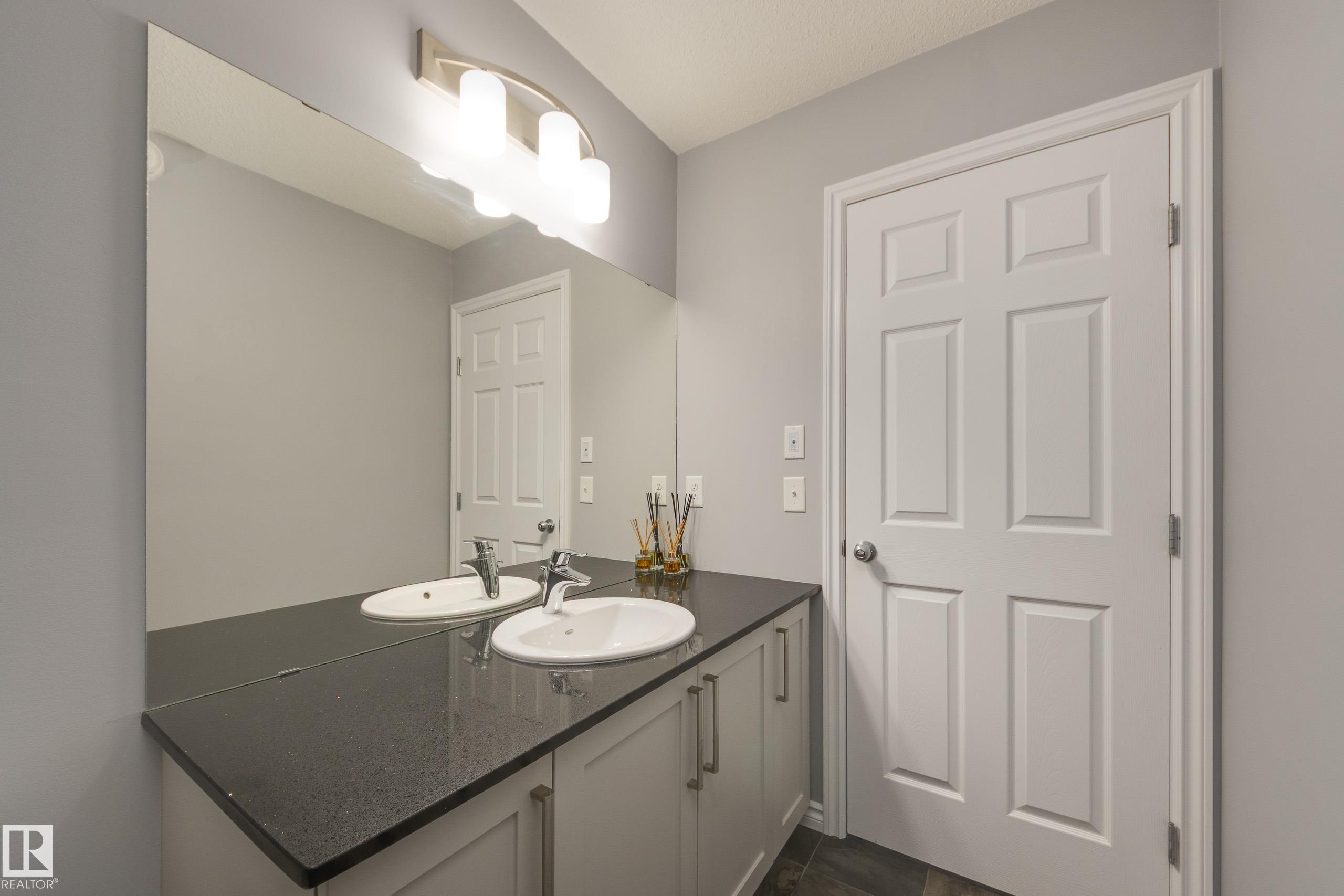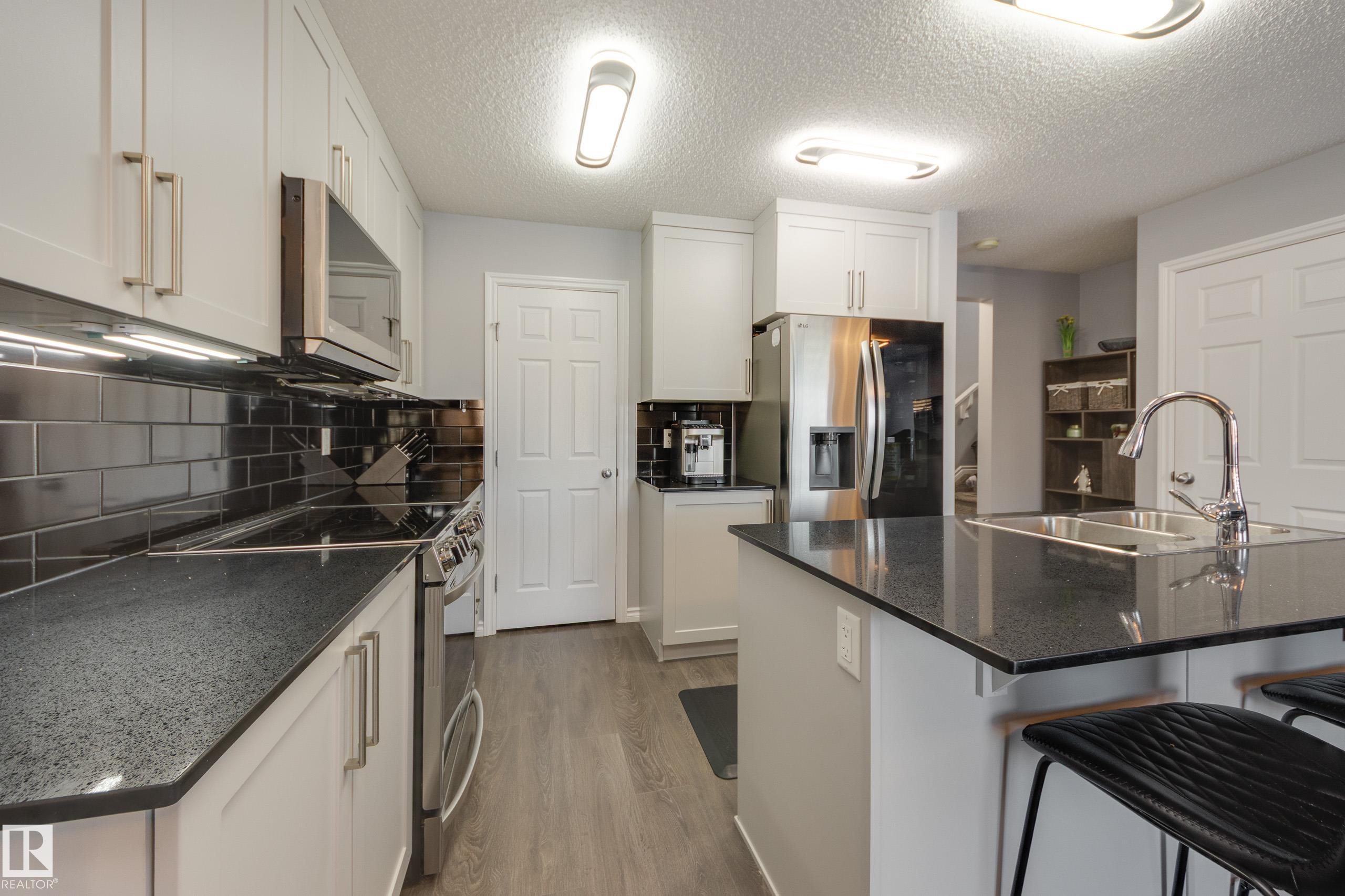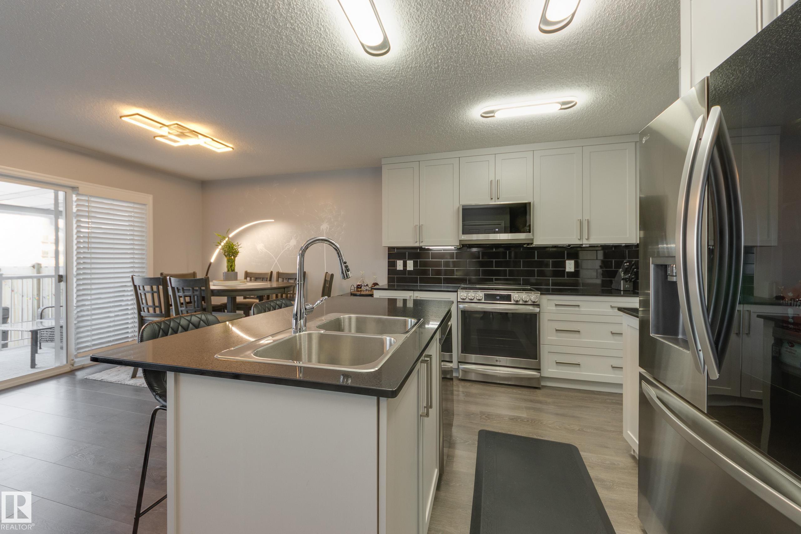 Excellent Ebbers location - close to great shopping and amenities and good access for commuters. This beautifully maintained end unit with NO CONDO FEES features a DOUBLE attached garage and a side entrance. The spacious foyer with built in bench & hooks leads you into the perfectly designed main floor - Large living & dining area with doors to the deck and fenced back yard. The kitchen has quartz counter tops, a large island with eating bar & a corner pantry. Laundry is on this floor & a two pce. bath room. The second floor offers a large primary suite with walk-in closet & full ensuite bath. Two more good sized bedrooms, a second full bathroom & a large linen closet complete this level. The private side entrance leads to a fully developed basement in-law or teen space with kitchen and laundry facilities, living area, bedroom and full bath. Lots of storage here as well. This home has been lovingly maintained and shows beautifully.