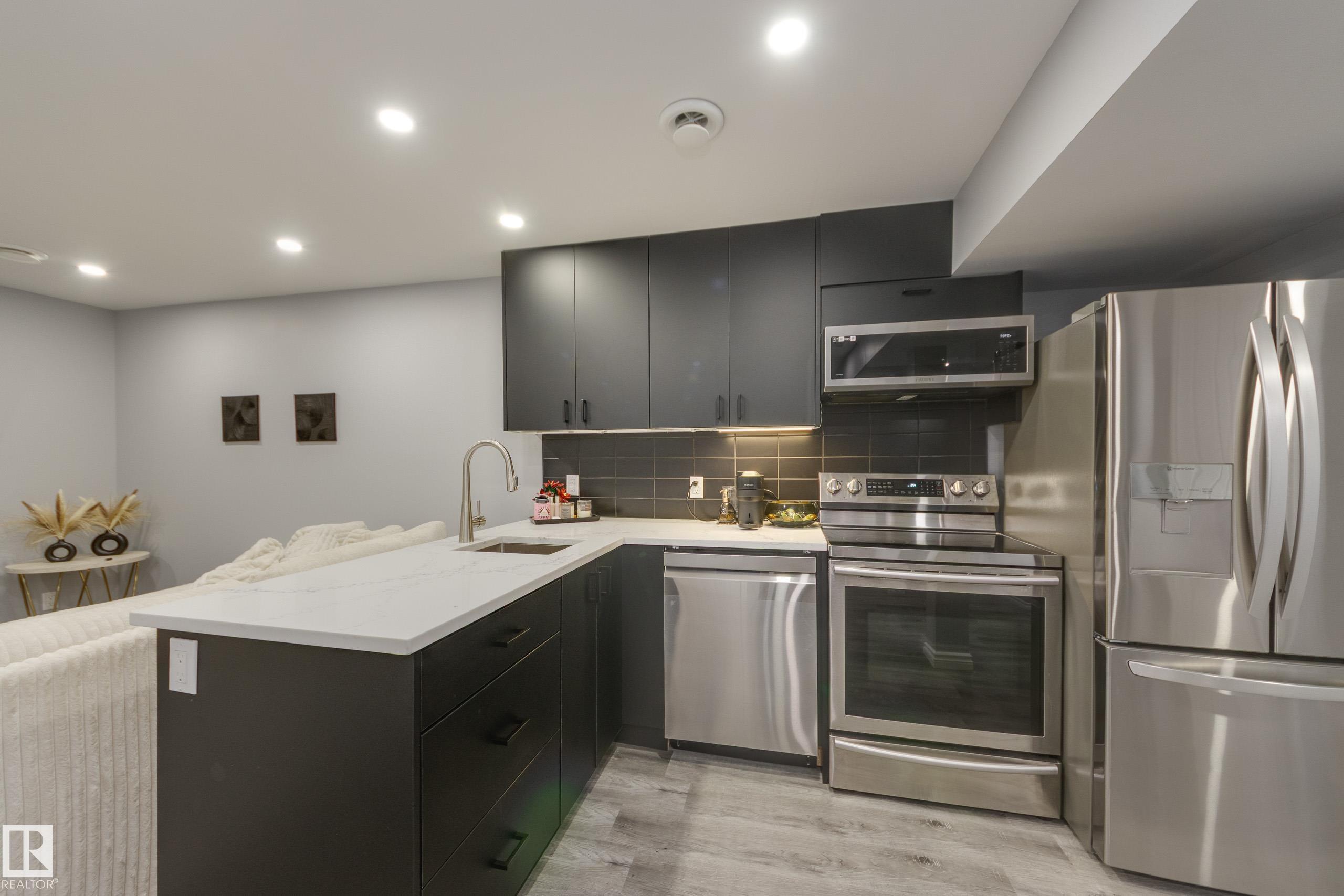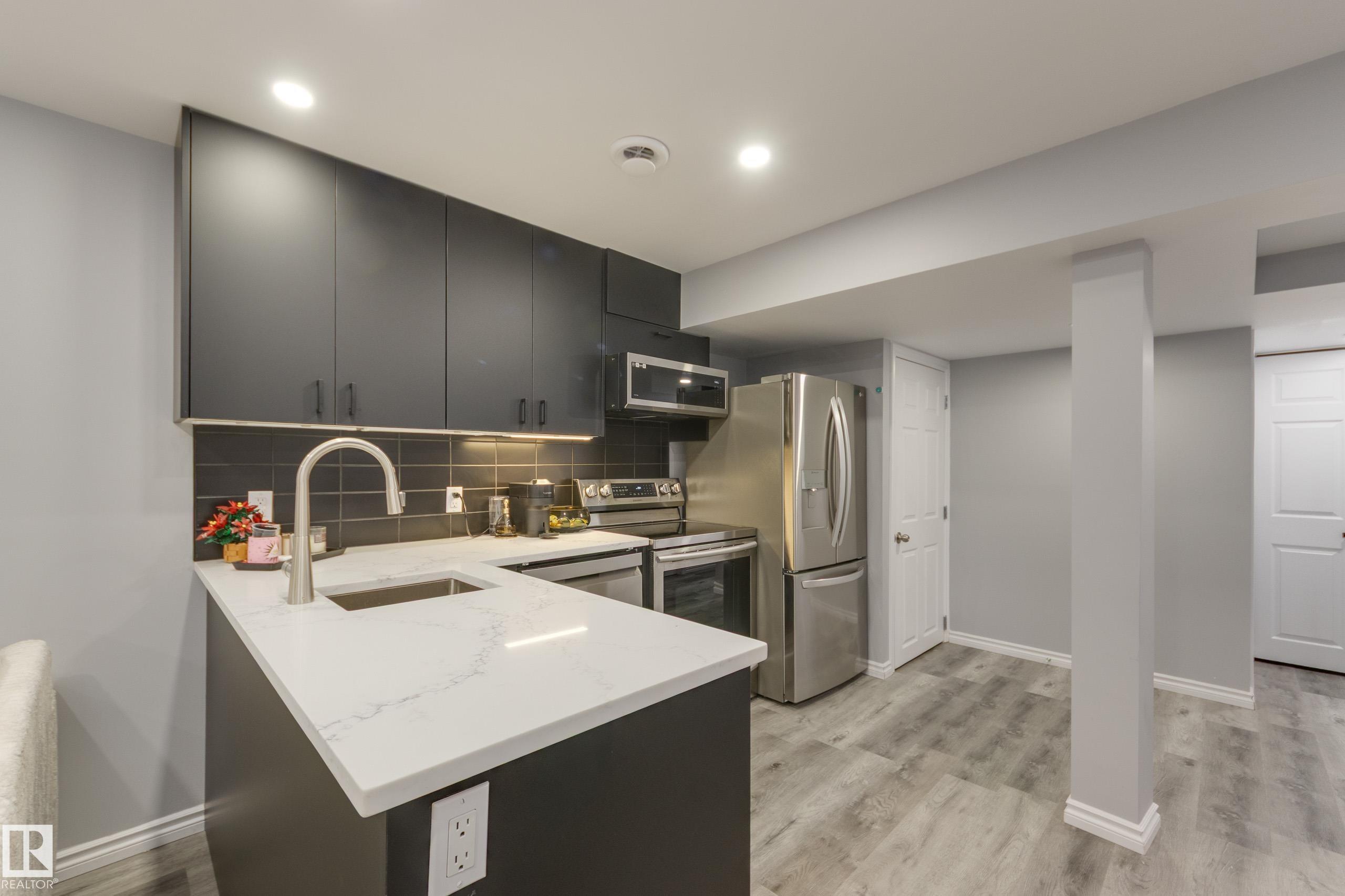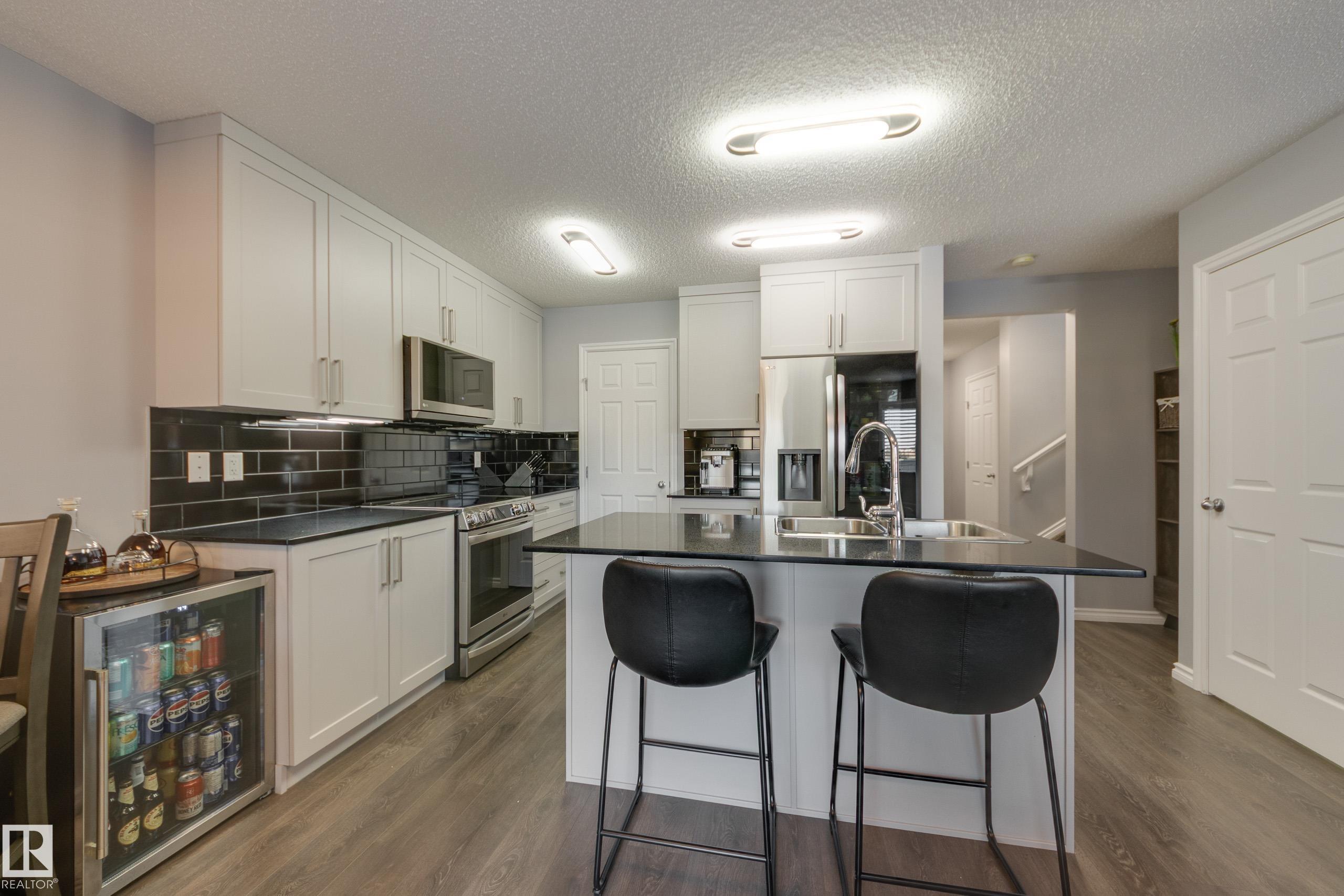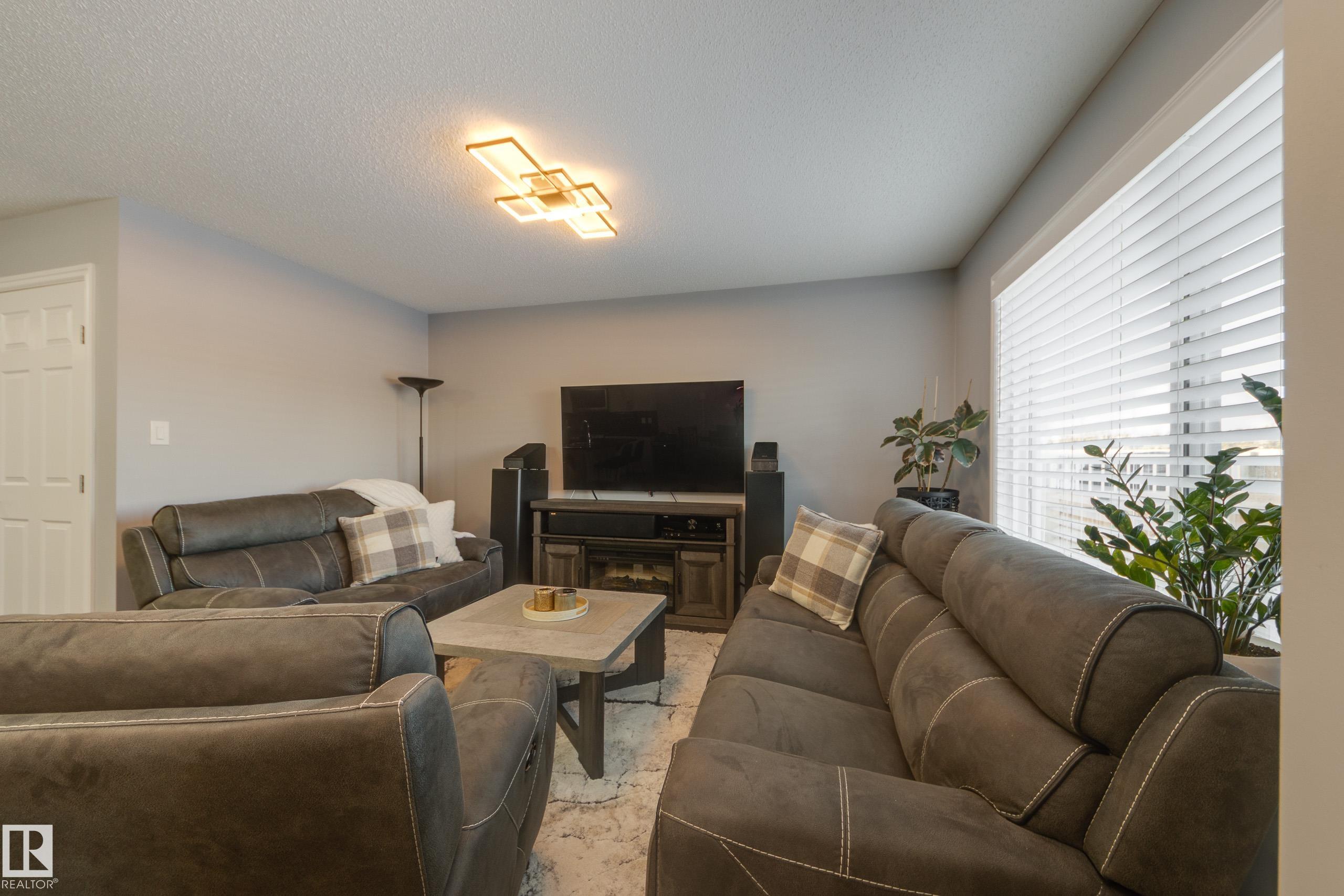 Excellent Ebbers location - close to great shopping and amenities and good access for commuters. This beautifully maintained end unit with NO CONDO FEES features a DOUBLE attached garage and a side entrance. The spacious foyer with built in bench & hooks leads you into the perfectly designed main floor - Large living & dining area with doors to the deck and fenced back yard. The kitchen has quartz counter tops, a large island with eating bar & a corner pantry. Laundry is on this floor & a two pce. bath room. The second floor offers a large primary suite with walk-in closet & full ensuite bath. Two more good sized bedrooms, a second full bathroom & a large linen closet complete this level. The private side entrance leads to a fully developed basement in-law or teen space with kitchen and laundry facilities, living area, bedroom and full bath. Lots of storage here as well. This home has been lovingly maintained and shows beautifully.