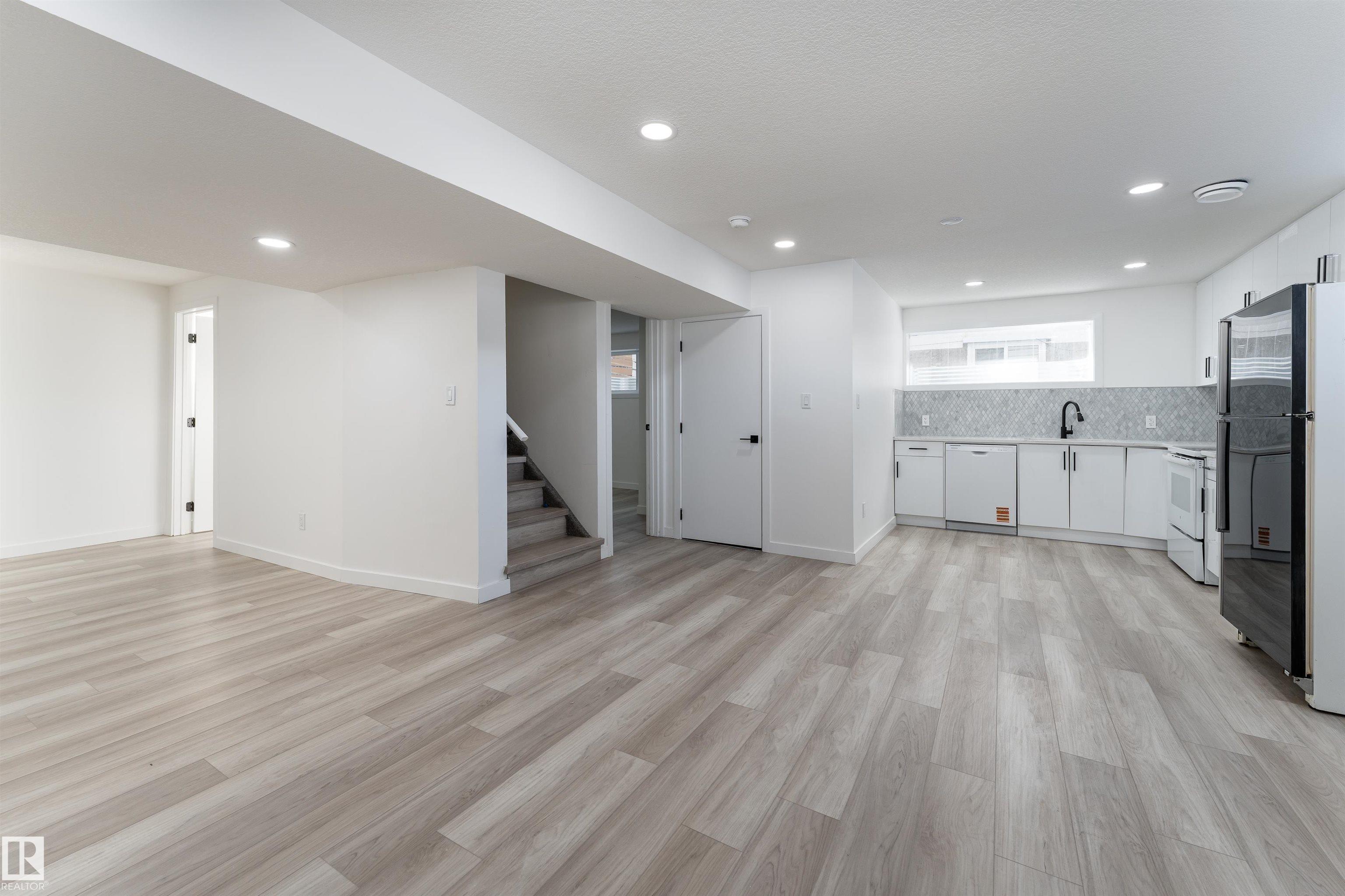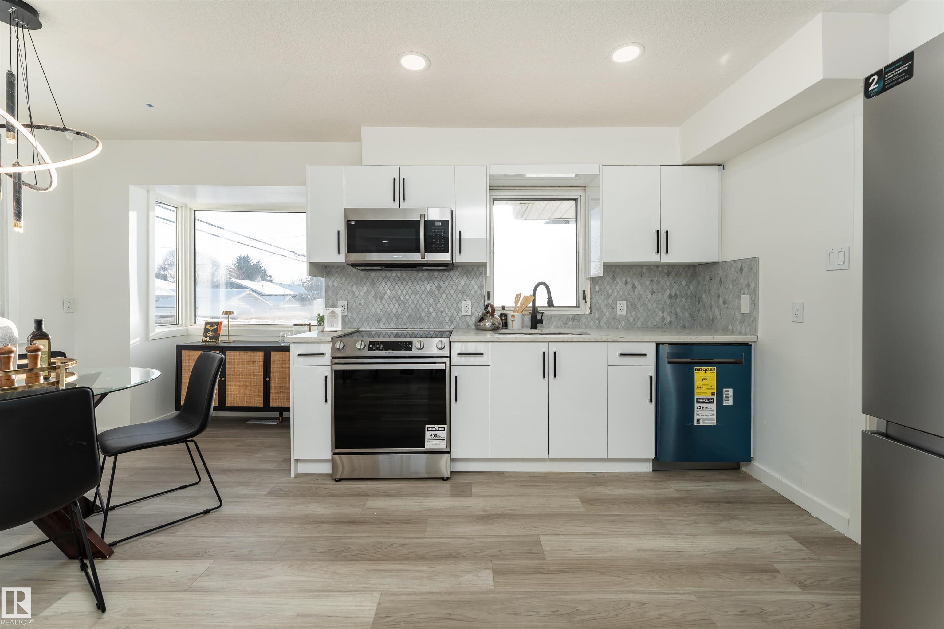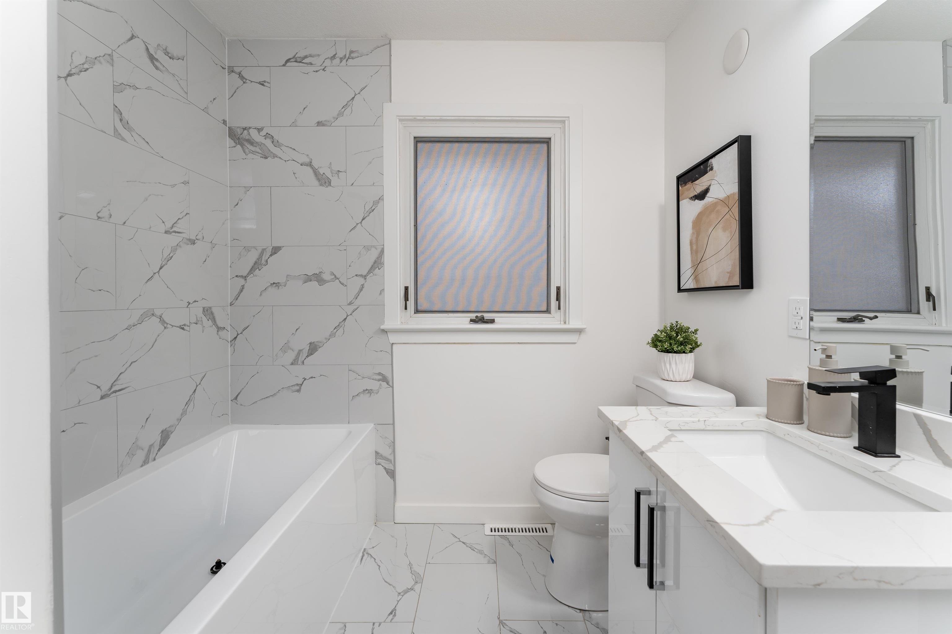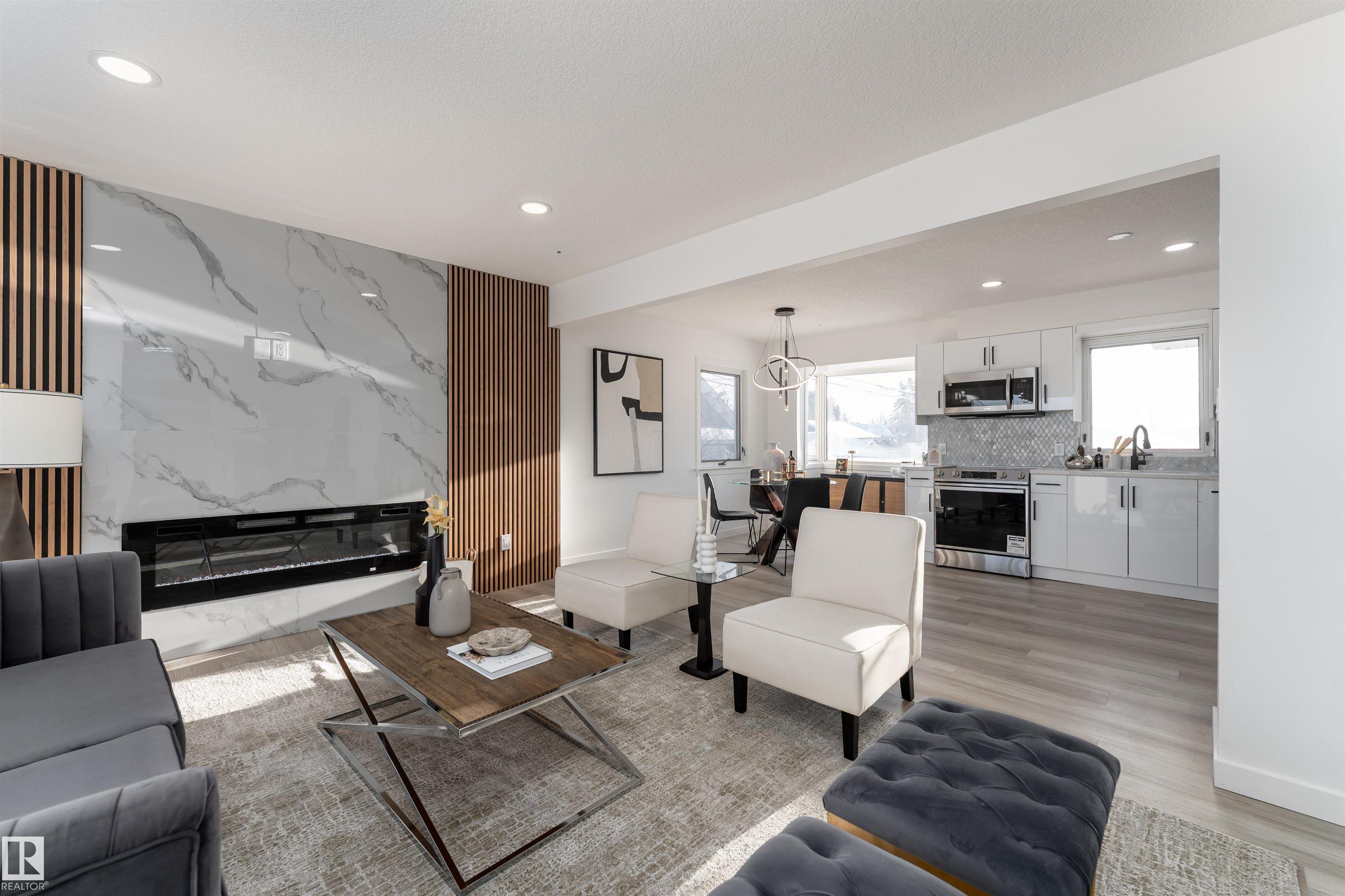 Get Inspired in Woodcroft! Professionally Renovated with over 2000 sq ft of liveable space on a 50x125 lot. Beautiful Bungalow with 4 Bedrooms + DEN and 3 FULL baths! Main floor features gorgeous vinyl plank flooring, a spacious living room with fireplace, remodeled kitchen with quartz counters a large dining area. 2 large bedrooms and the master suite features a 4 pc bath! There is also main floor laundry. The Fully finished basement has its own separate entrance and provides 2 large bedrooms, 2nd kitchen to the same standard as the main floor with pantry, laundry, large family room full 3 pc bath and a DEN! Outside is your fully fenced backyard, Single Detached Garage and RV Parking! Highlights include Recessed Lighting Throughout, Lights, Windows, Plumbing, Sump pump, backwater flow valve, electrical, Quartz throughout, Ventilation fans, full appliance package and more! Turn key!