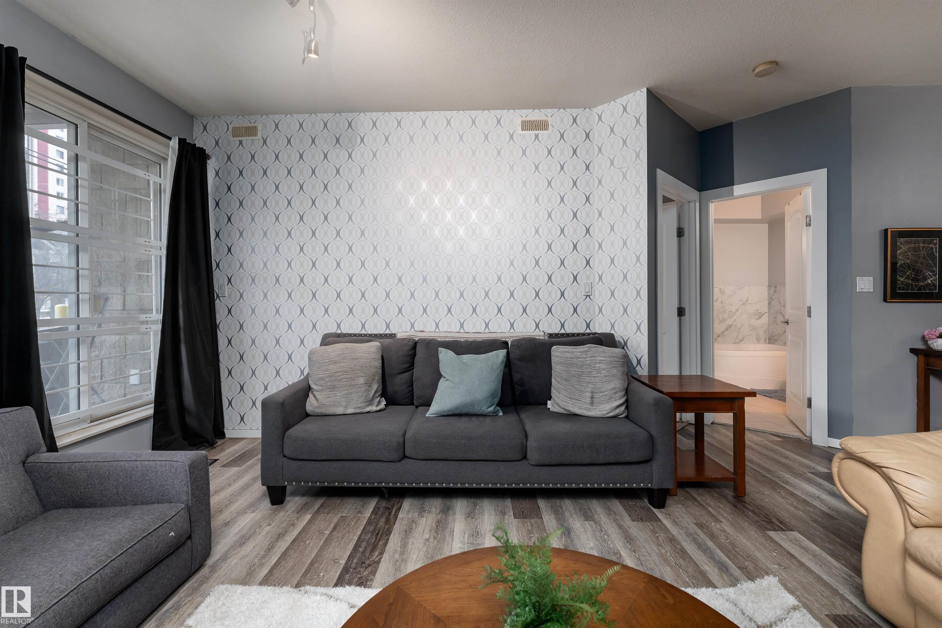 Ideally located just steps from the University of Alberta, this turnkey 1,020 sq ft condo is perfect for professionals, students, or investors and comes fully furnished for immediate enjoyment. The bright, open kitchen features white cabinetry, granite countertops, a large island with sink and seating bar, flowing seamlessly into the dining area and spacious living room. Floor-to-ceiling windows fill the living space with natural light, creating an inviting setting for entertaining. Both bedrooms are generously sized and offer excellent closet space. The ensuite 4-piece bathroom includes a soaker tub, ample counter space and a door to the living room. Enjoy the convenience of a private in-suite laundry room and a large patio with plenty of room for outdoor seating. Located directly across from the University of Alberta, with easy access to public transit, Whyte Avenue, restaurants & shopping. With underground parking and storage, this home delivers an unbeatable location for comfortable city living.