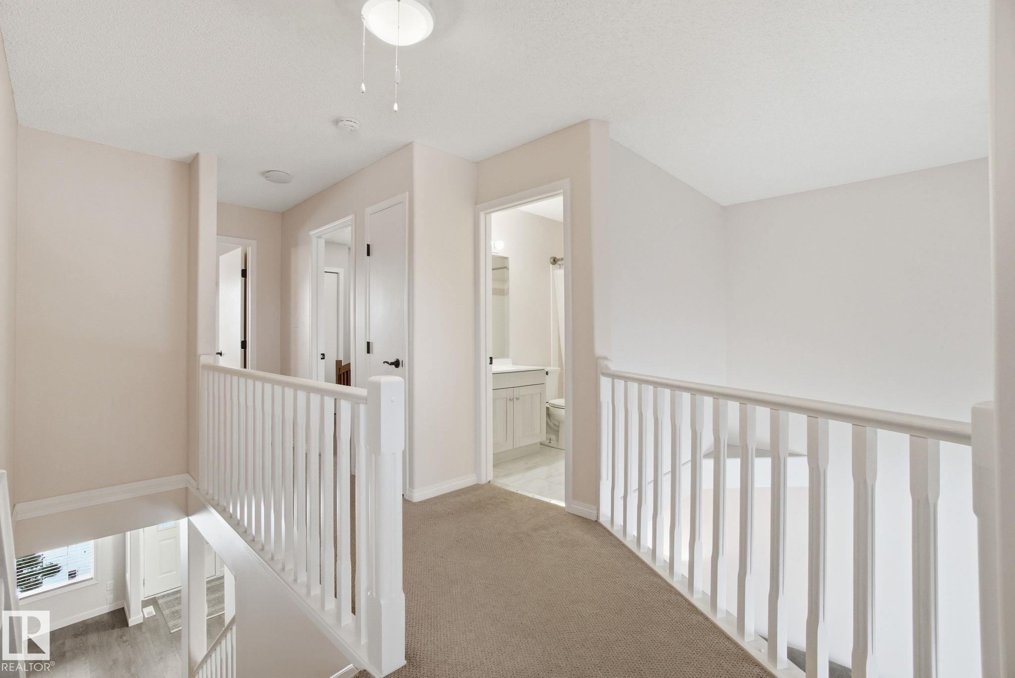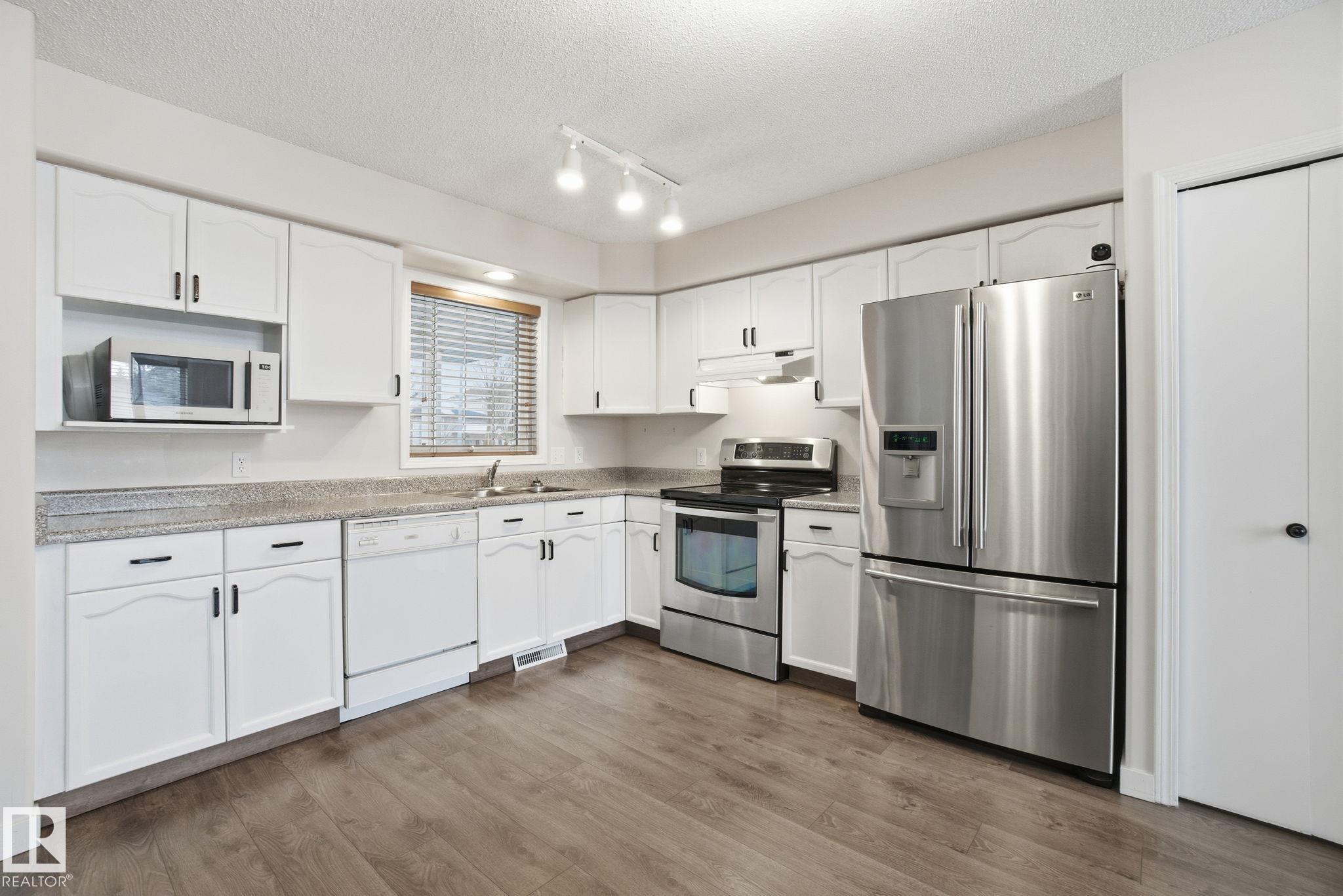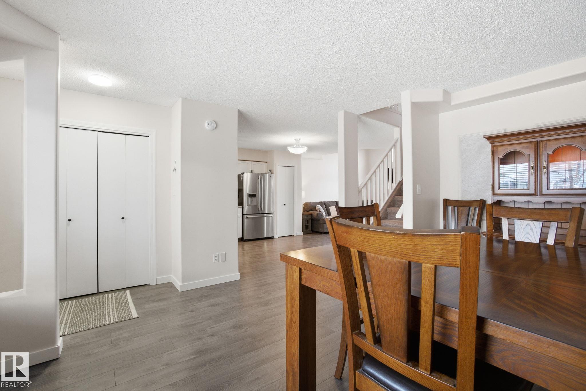 Welcome to this stunning, renovated home located in the heart of a premier family-friendly community. Carefully updated, featuring brand-new luxury vinyl plank flooring and a striking open-to-below design in the living room that creates an airy, sophisticated atmosphere. This home offers ultimate convenience with a dedicated main floor laundry room and the year-round comfort of central air conditioning. The thoughtful upper-level layout includes three spacious bedrooms, including a primary master suite featuring a full 4-pc ensuite bathroom. The exterior boasts a high-end composite front entry for lasting curb appeal, while the large double garage provides ample space for vehicles and storage. This move-in-ready home perfectly combines modern luxury with the functional features today's families desire.