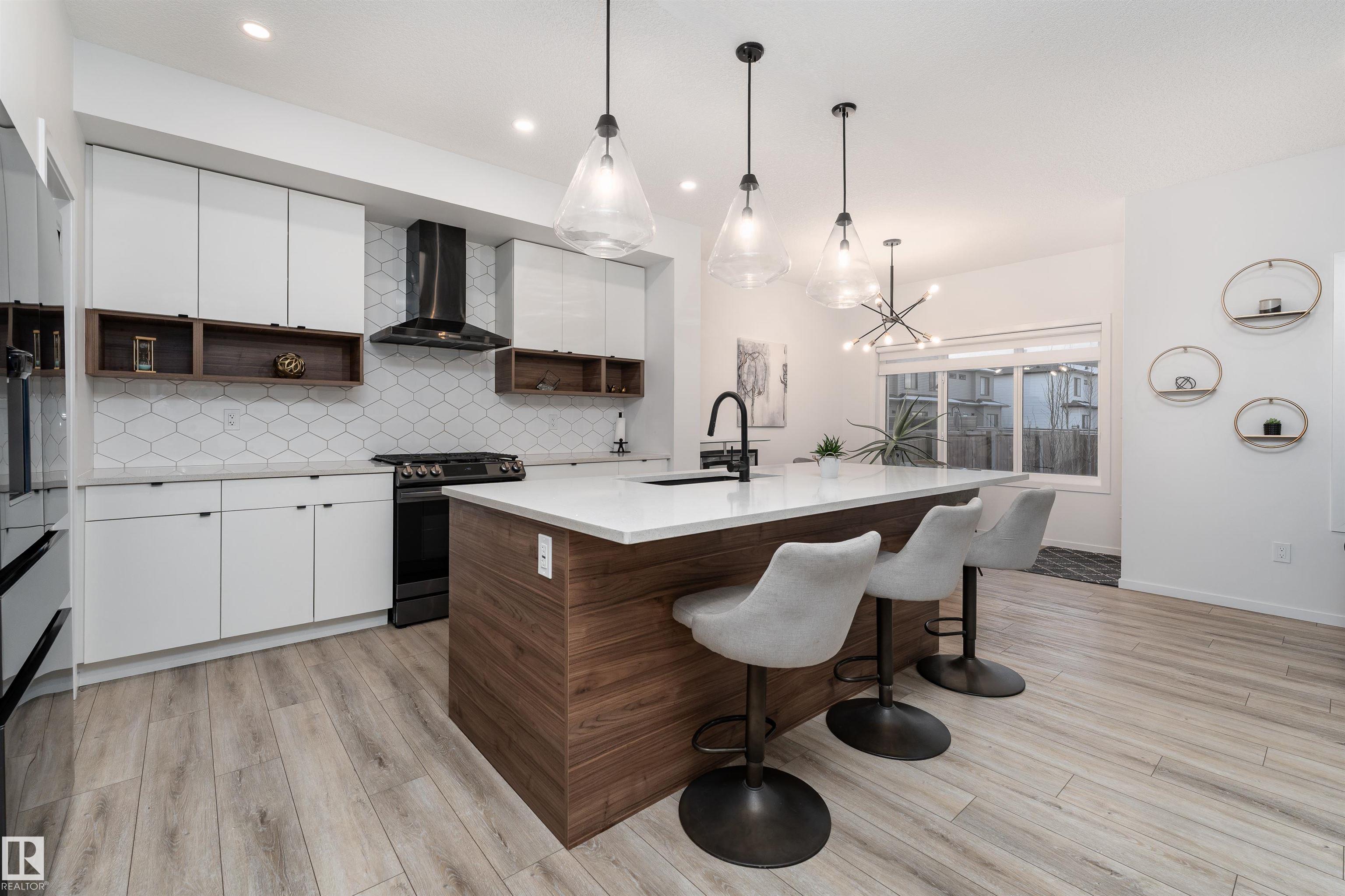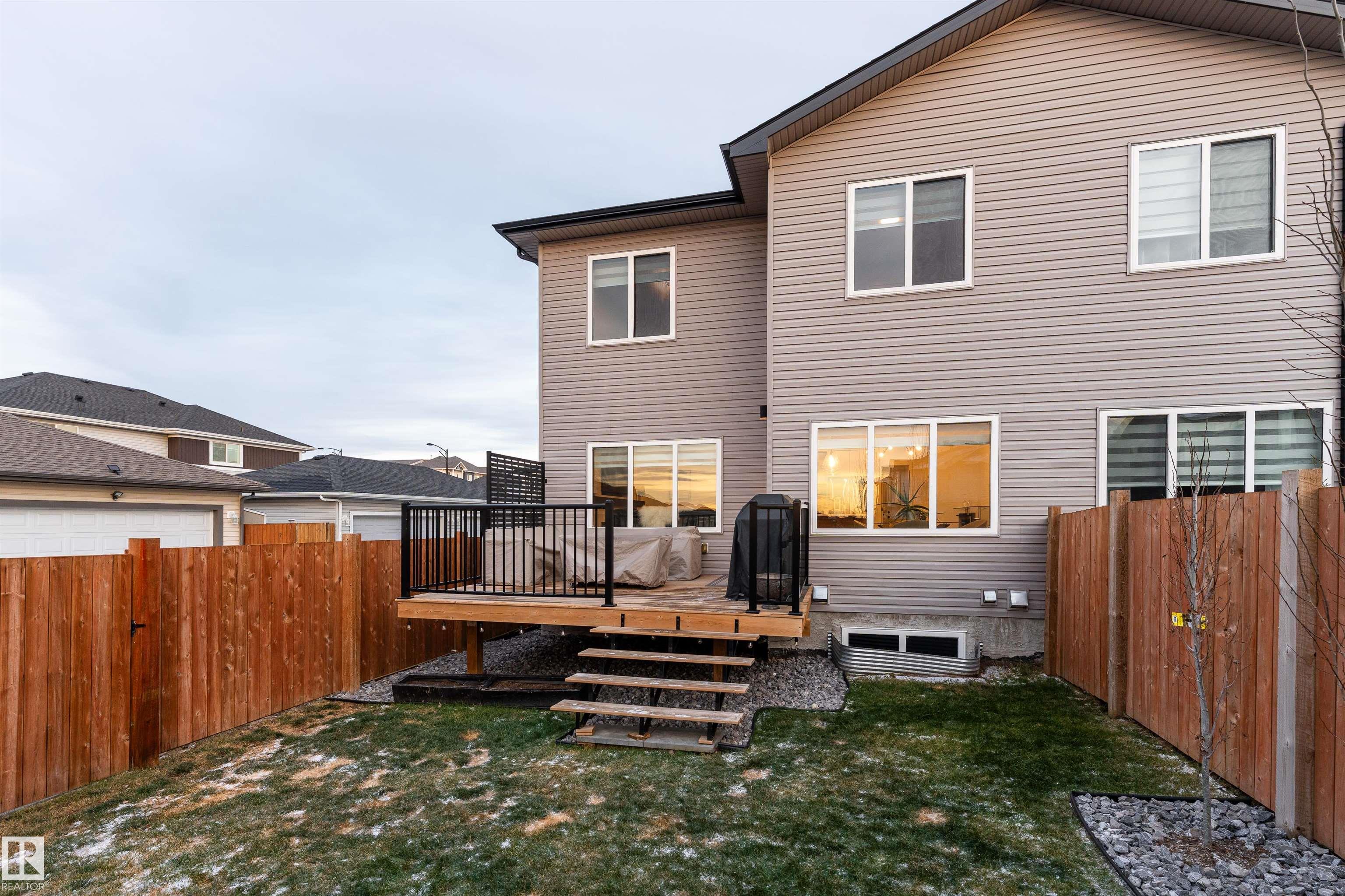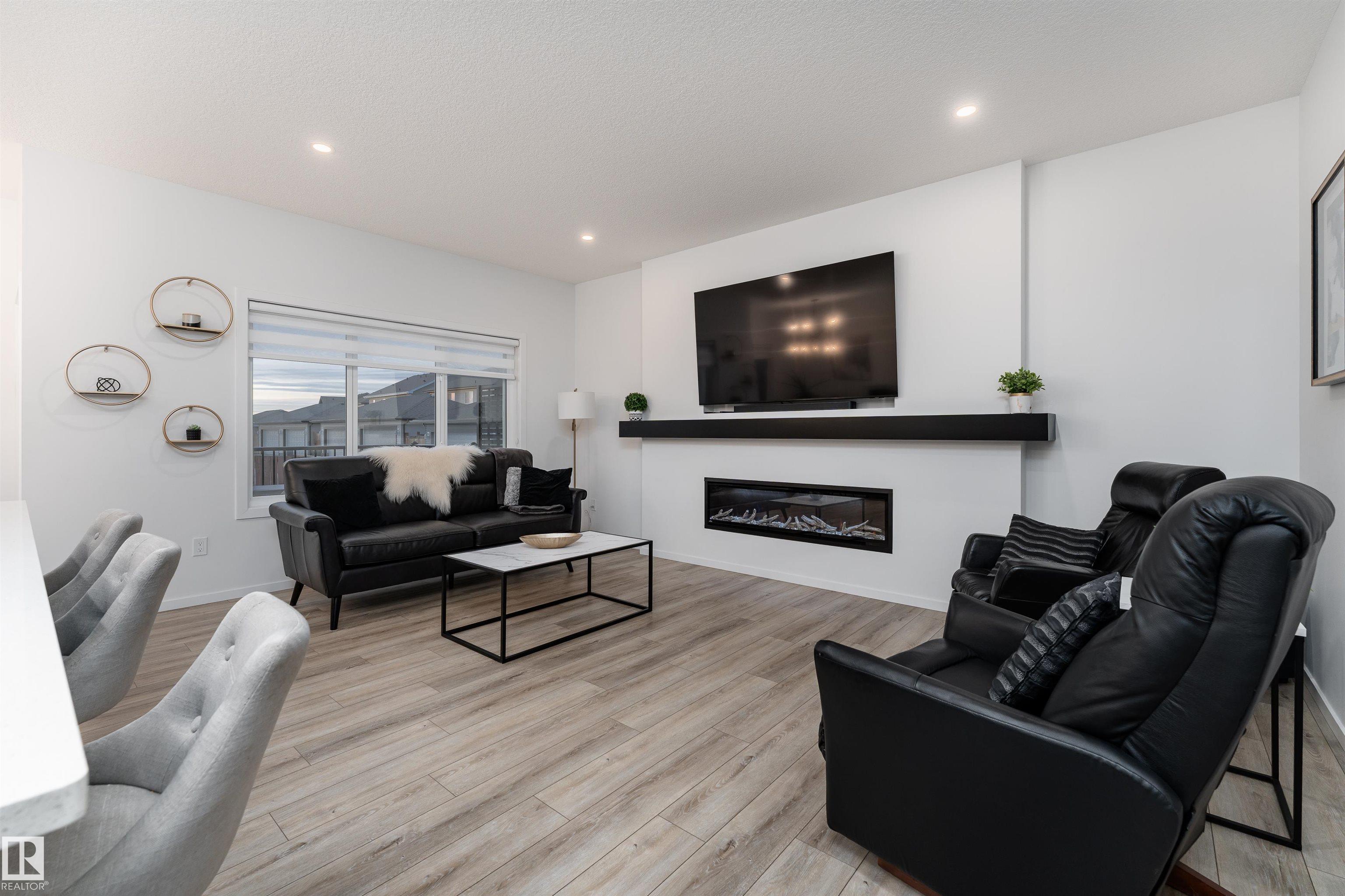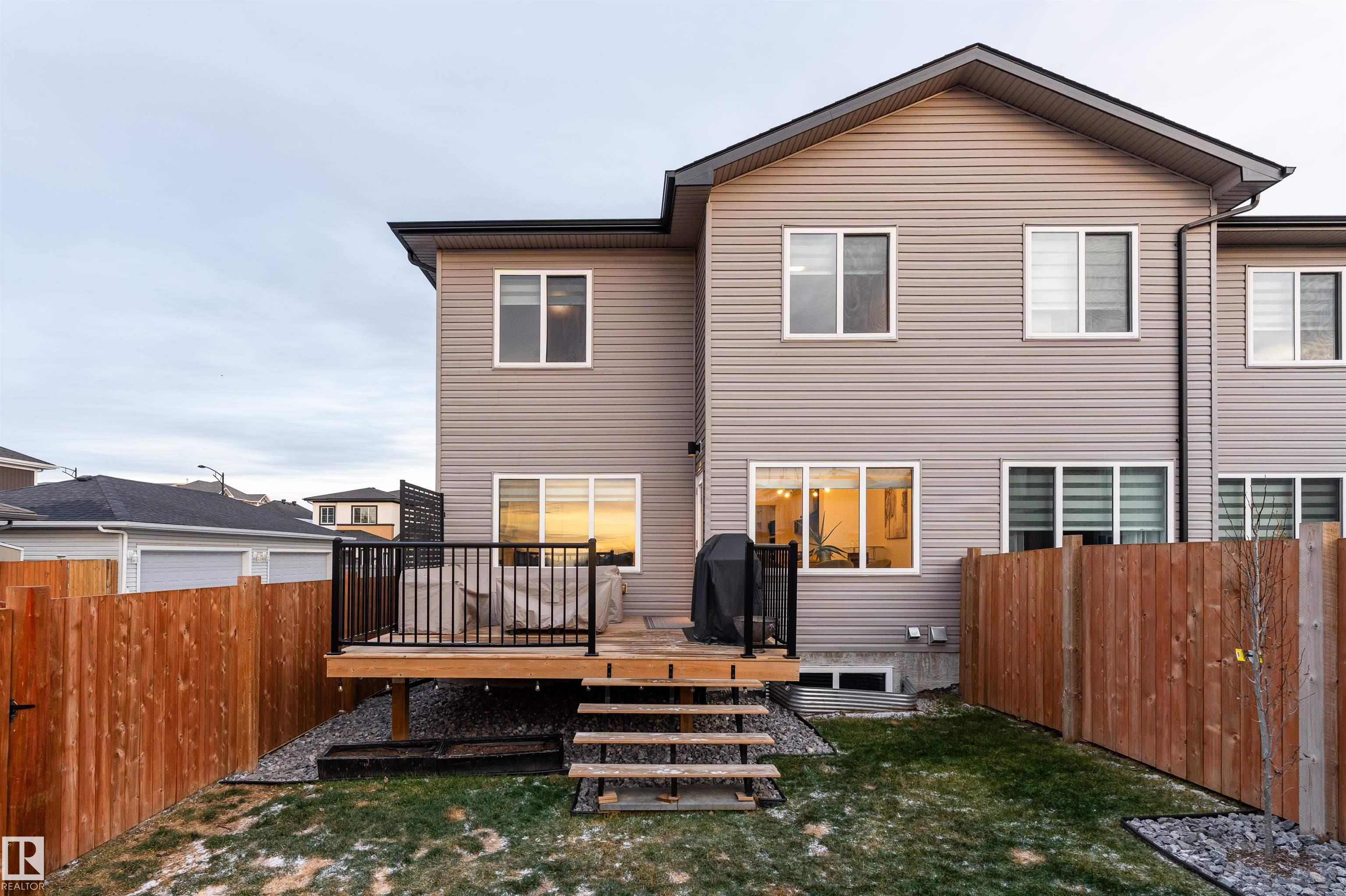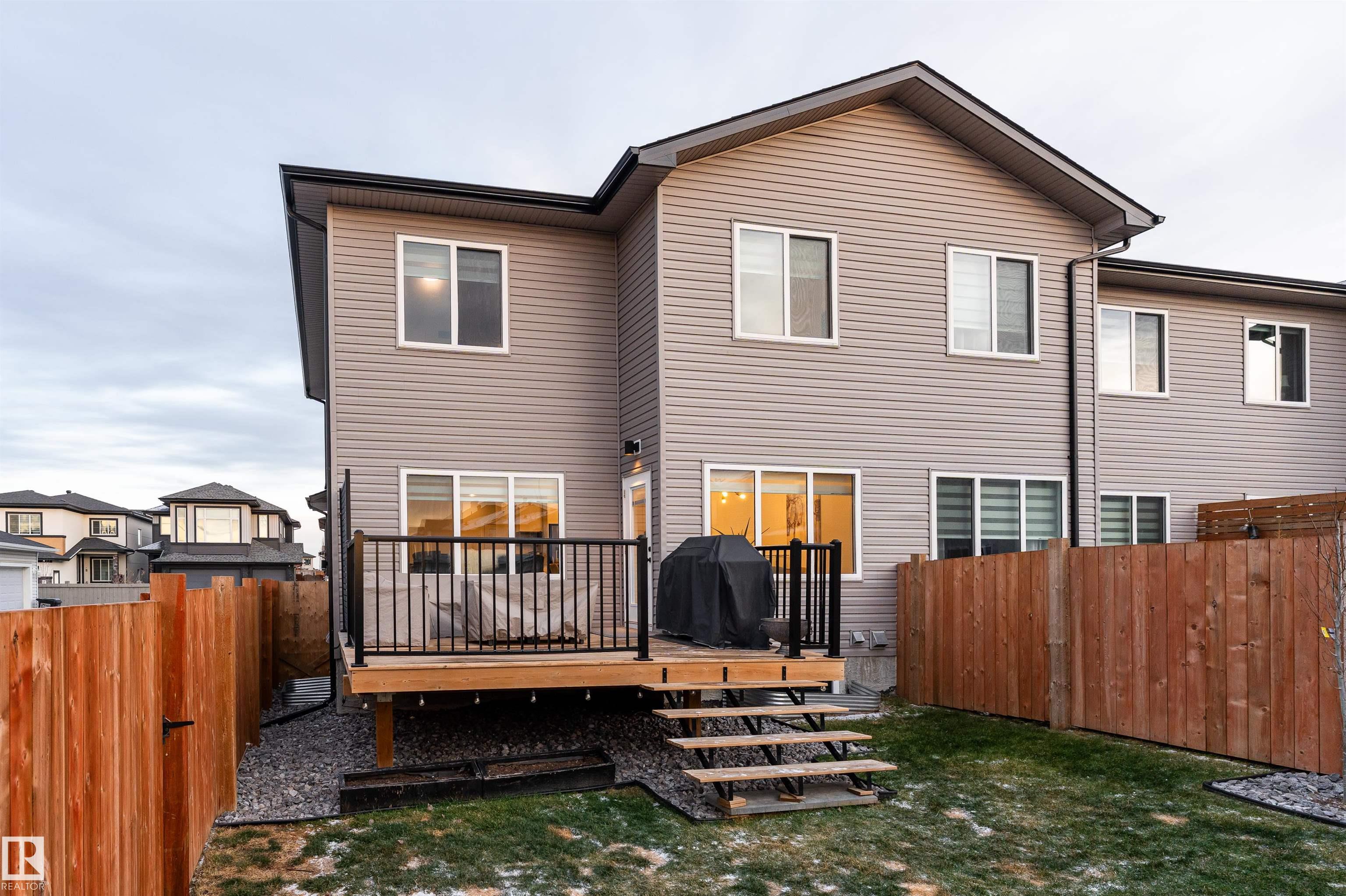 This beautifully designed, Welcome Homes?built two-storey end unit offers 1,826 sq ft of above-grade contemporary living. The bright, open-concept main floor showcases a sleek chef?s kitchen with a gas range and high-end appliances, seamlessly flowing into a spacious living room anchored by a striking feature fireplace. Enjoy the elevated feel of 9-ft ceilings on both the main level and the basement. A stunning glass-railed staircase leads to the upper level, featuring an open-to-below design, a generous family room, convenient upper-floor laundry, and a well-appointed primary retreat complete with a 4-piece ensuite. Two additional bedrooms and a 4-piece main bathroom complete this level. Additional highlights include no condo fees, a double attached garage, a fully fenced backyard with raised deck, and the added confidence of a remaining 10-year structural warranty. This home offers the perfect balance of modern design, comfort, and low-maintenance living.
