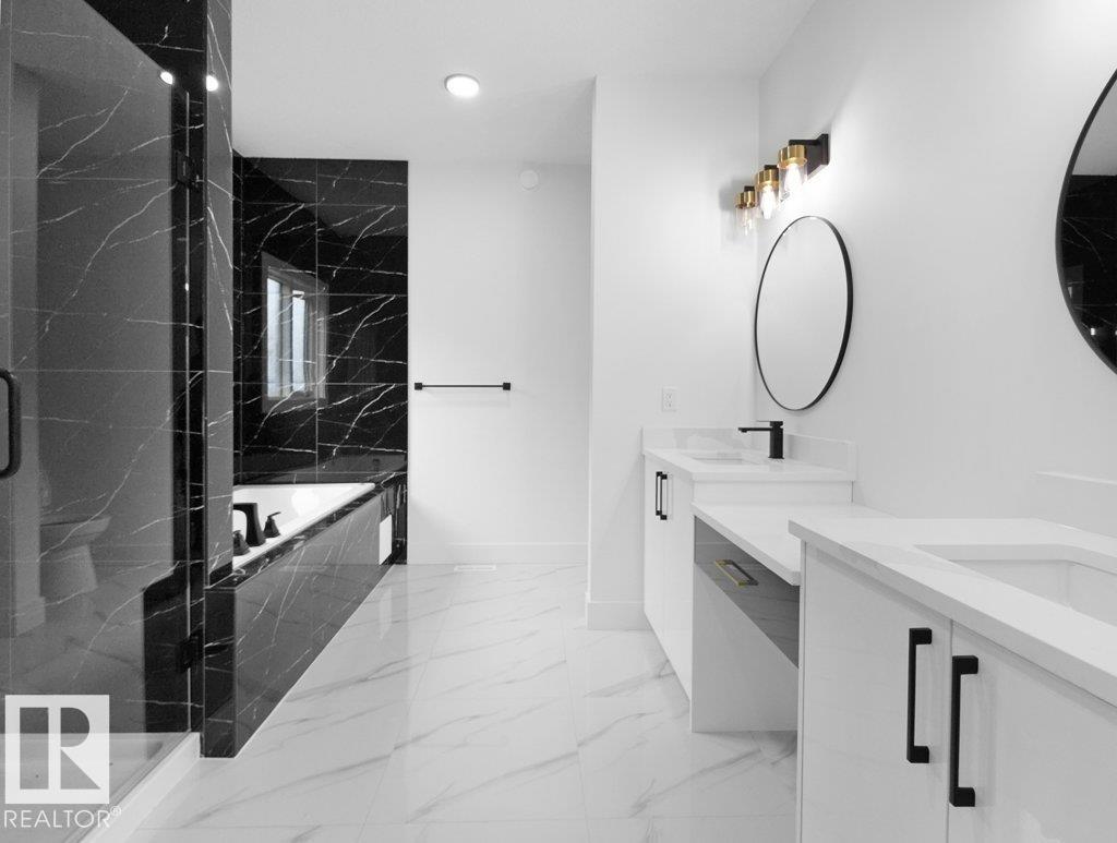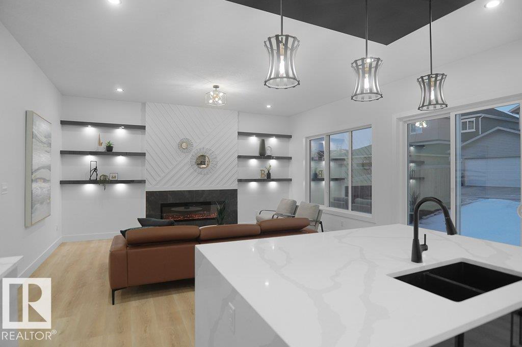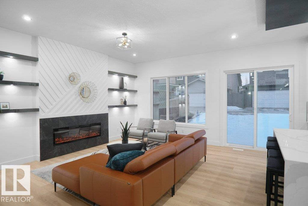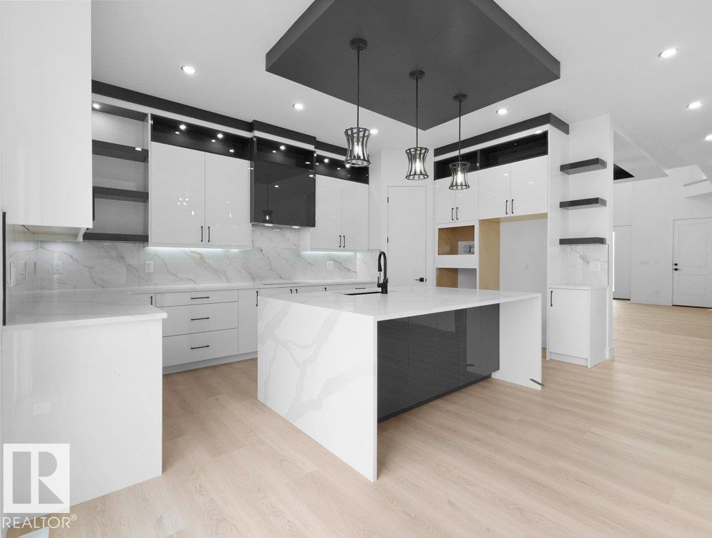 Discover this elegant 5-bedroom, 4-bath custom home, boasts 2730 sq ft in Hawks Ridge, a community surrounded by scenic walking trails, ponds, and preserved natural beauty and its nestled beside Big Lake and Lois Hole Provincial Park. Designed with soaring 10 ft. ceilings and TWO living Areas on main level - one with an open-to-above ceiling, the home offers both style and function, featuring a main floor bedroom with full bath, and convenient upstairs laundry. Upstairs it features 4 bedrooms including TWO MASTER BEDROOMS and the luxurious primary suite impresses with his & her Built in closet, 3 Full bathrooms and a Laundry Room. Complete with built in appliances, and a side entrance to the basement for future suite potential. Endless upgrades like MDF SHELVES, 8ft DOORS, WATERFALL KITCHEN ISLAND , BUILT IN CLOSETS, UPGRADED LIGHT FIXTURES, FEATURE WALLS, BLACK HARDWARE, FRONT DOUBLE DOOR and list goes on. This home delivers modern comfort in a setting where nature and city living meet.