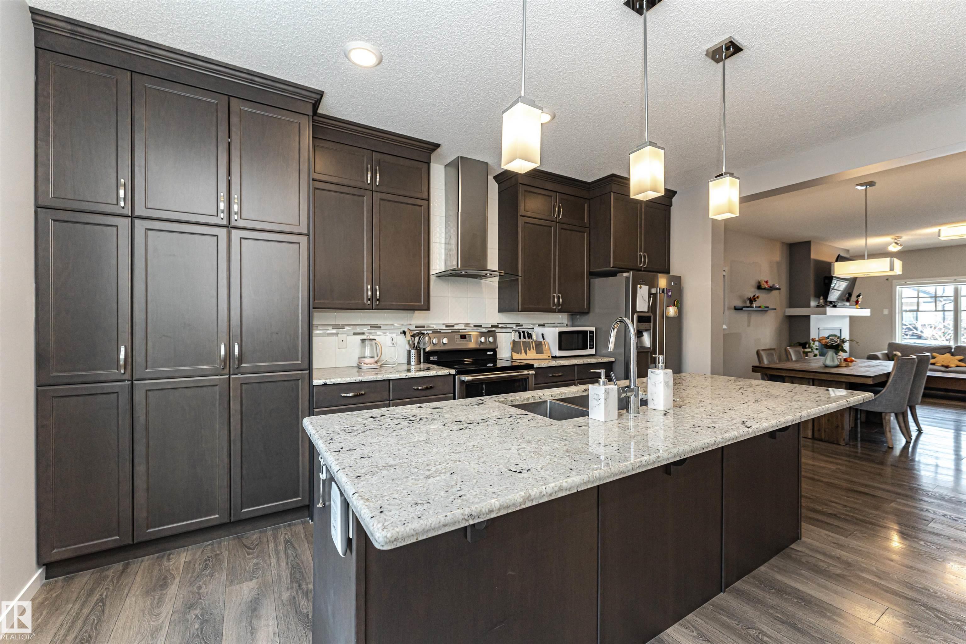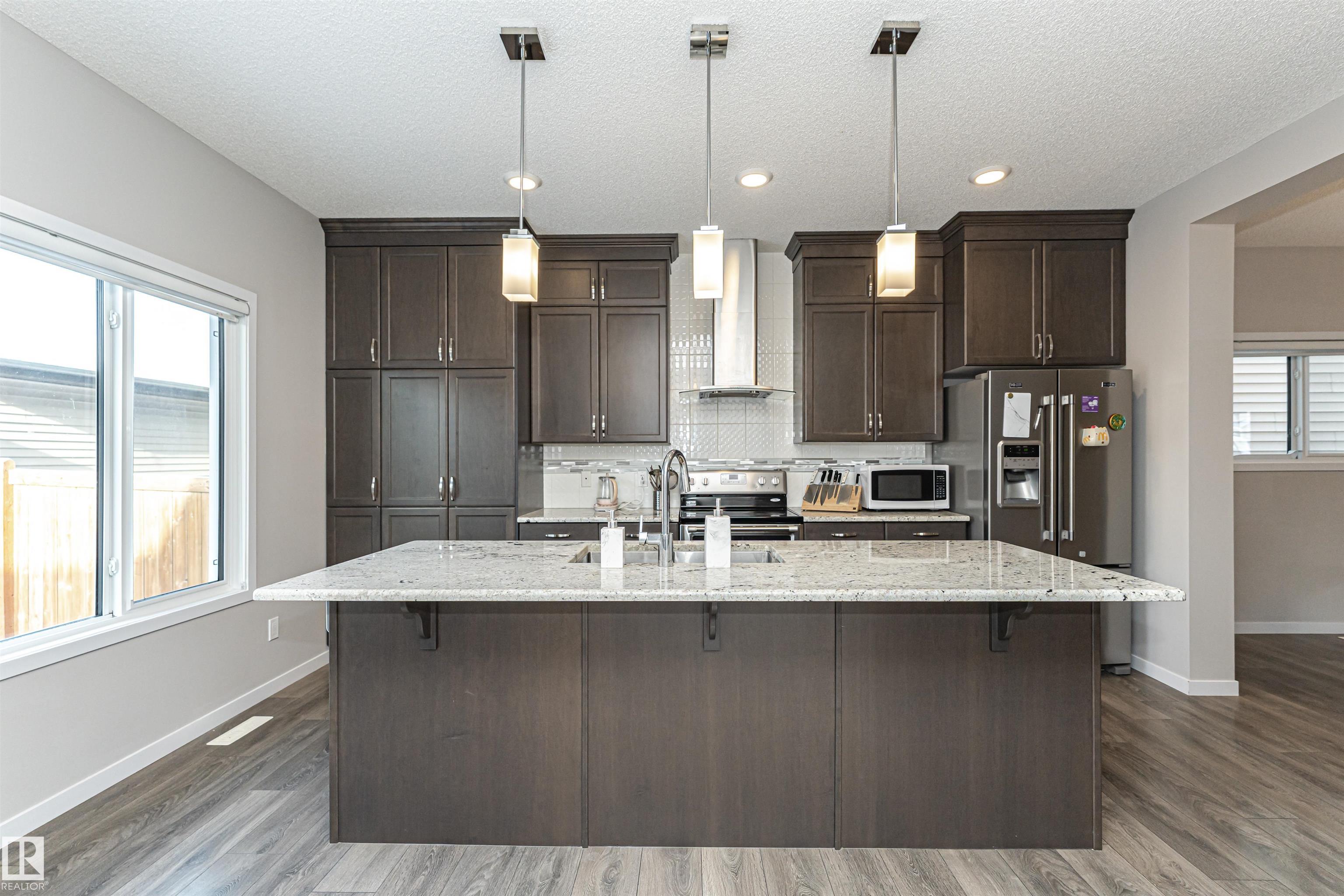 This 1,620 sq. ft. two-storey detached home with double attached garage is located in the desirable Ambleside community. The open-concept main floor features 9 ft ceilings, a bright living and dining area, and a modern kitchen with stainless steel appliances, ceiling-height cabinets, and granite countertops, plus a convenient 2-pc bath and mudroom. Upstairs offers a primary bedroom with walk-in closet and 4-pc ensuite, two additional bedrooms, and a full bath. The unfinished basement provides great future potential. Close to schools, parks, shopping, and easy access to Anthony Henday.
