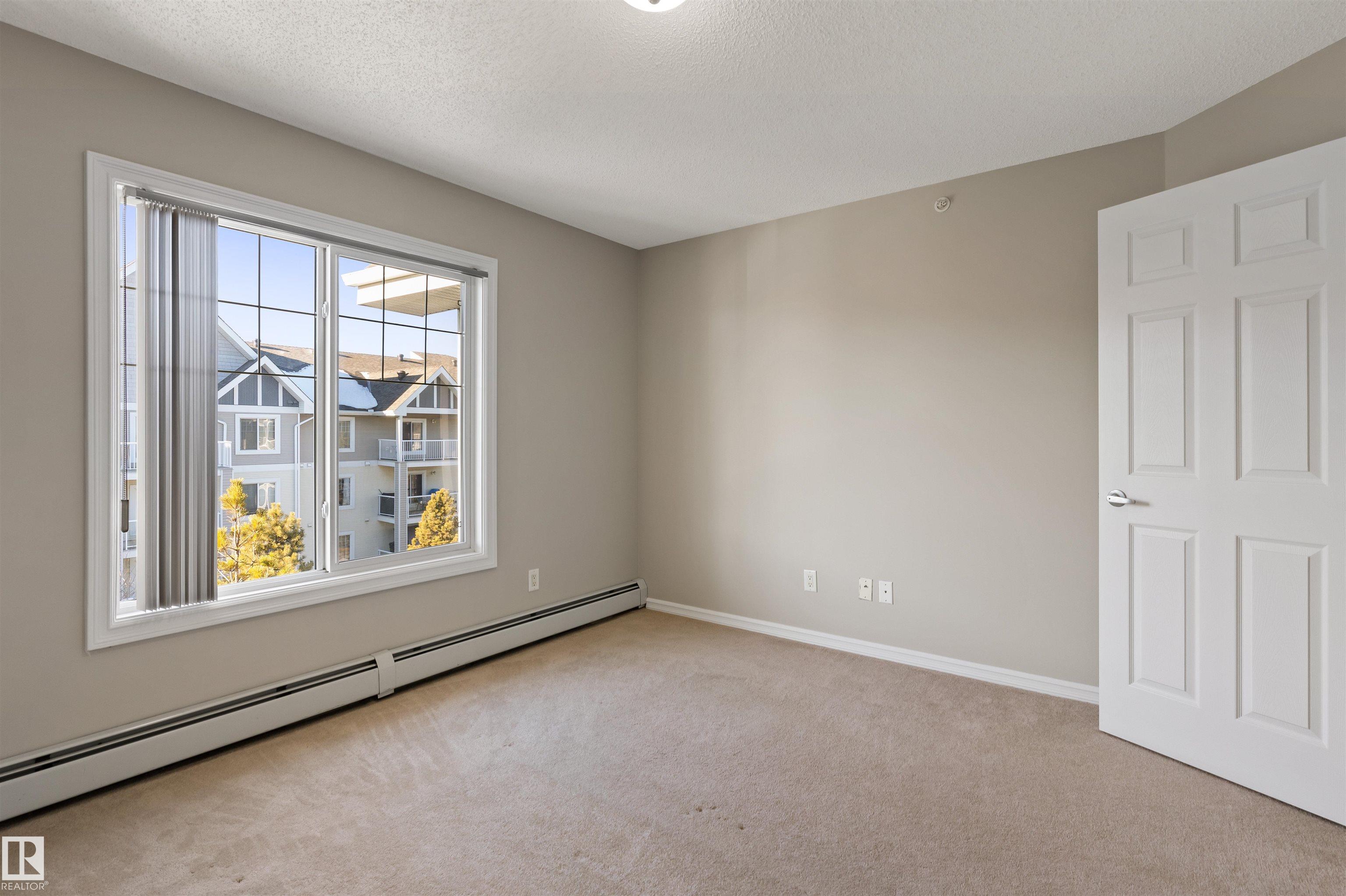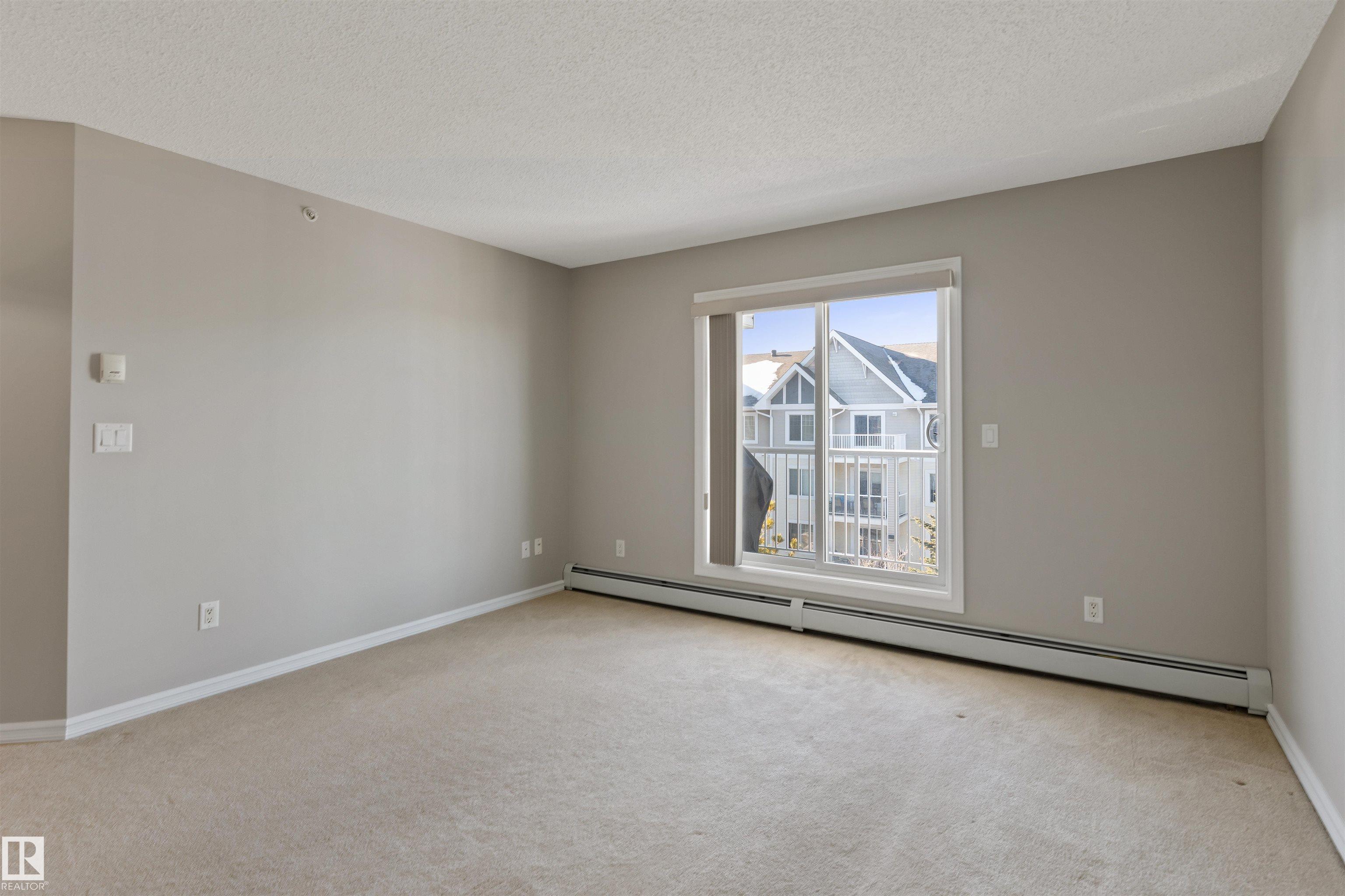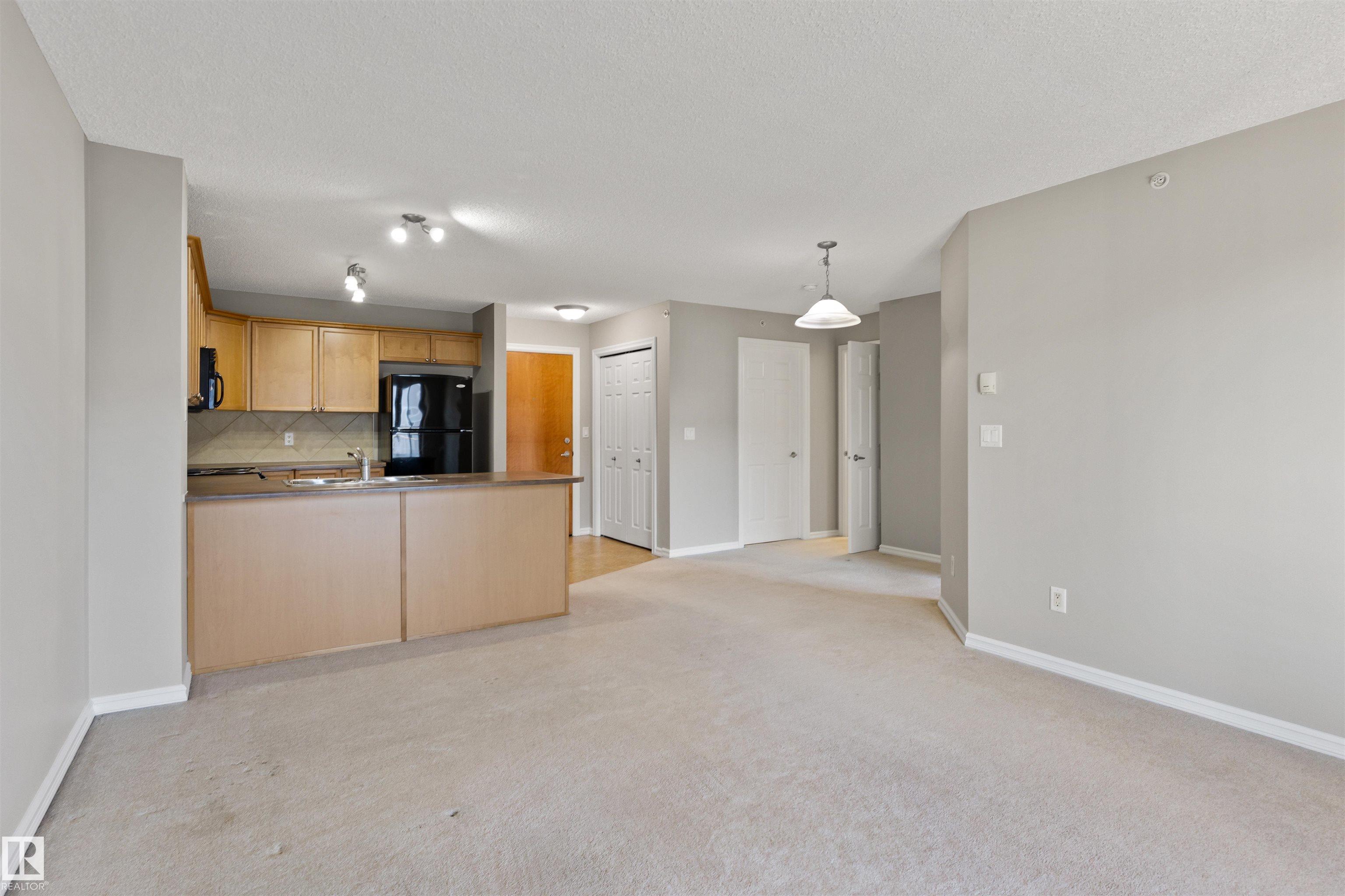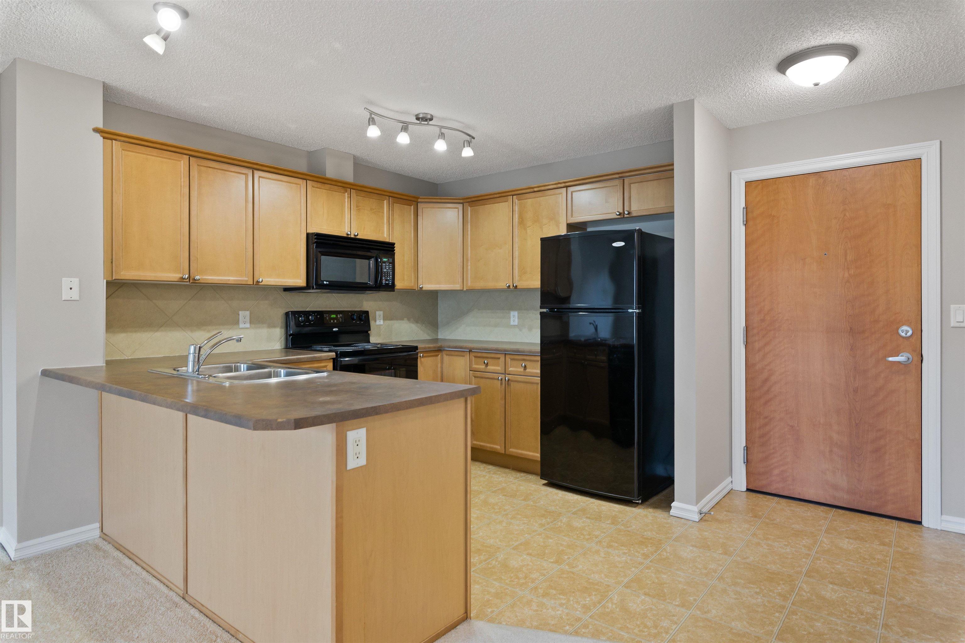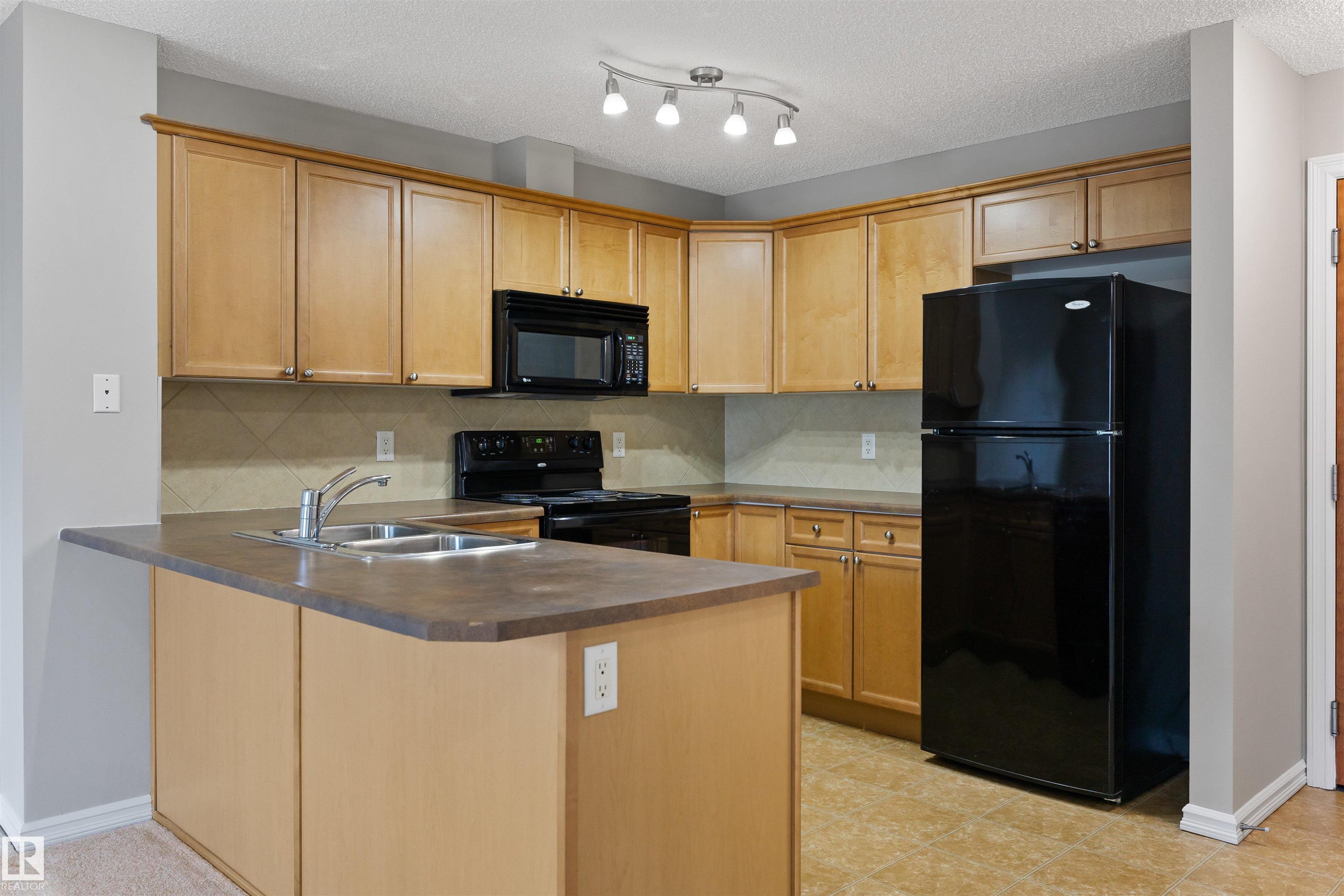 TOP floor, west-facing condo with heated underground titled parking! This freshly painted 1-bedroom unit offers a bright, functional layout designed for easy living. The U-shaped kitchen provides great prep space and flows into the open living area, while the spacious bedroom features a walk-through closet leading to a 4pc bath. Step onto your private west-facing balcony with natural gas hookup ? perfect for evening sunsets and outdoor relaxation. Enjoy the everyday convenience of elevator access, in-suite laundry, plus building amenities including a fitness room and social room. Located in the quiet, family-friendly neighbourhood of Cumberland, with quick access to Anthony Henday Drive and close proximity to parks, schools, trails, shopping, transit, and essential amenities.