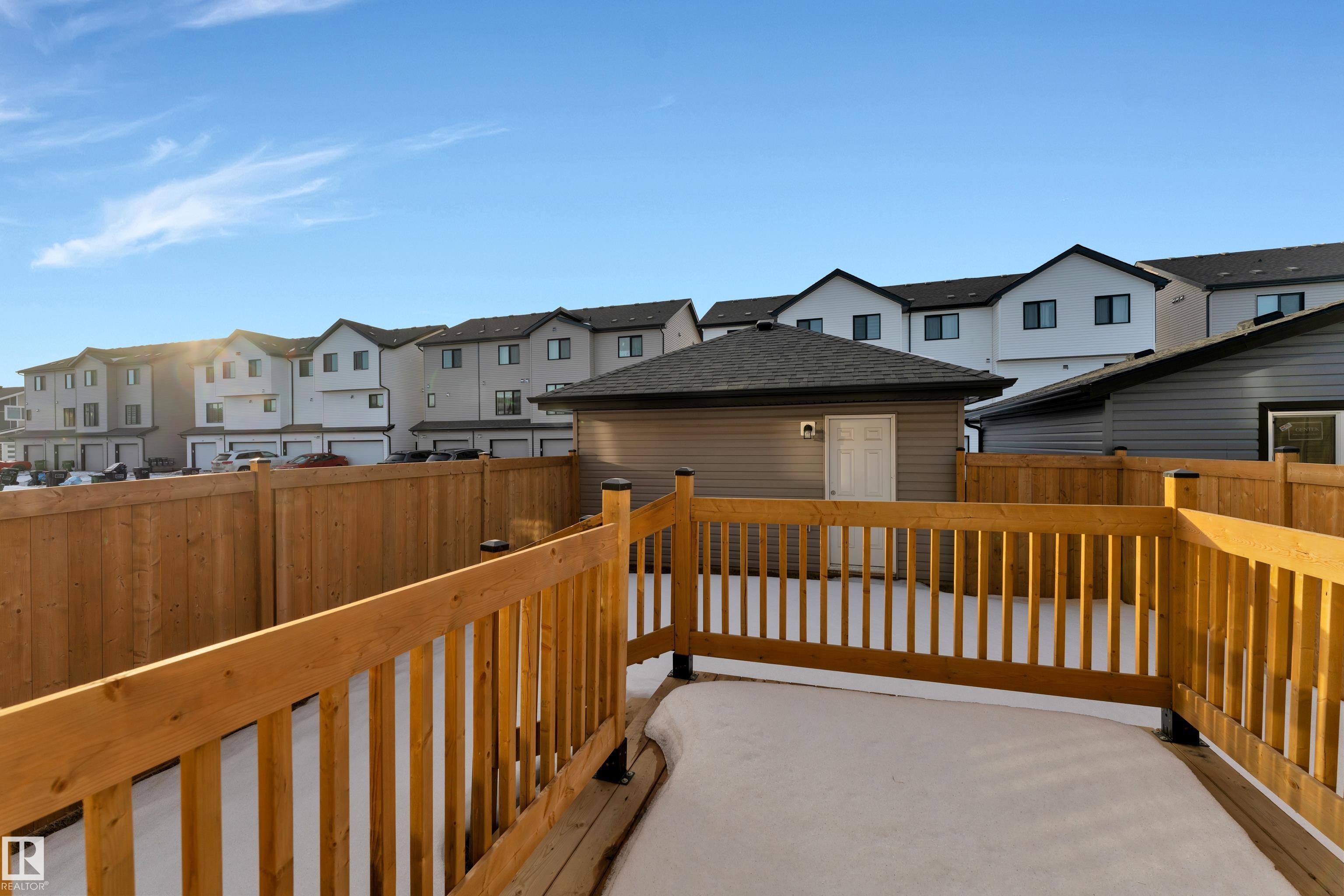 Double Car Garage, Appliances, Fencing, Landscaping all done. The main floor boasts impressive 9-foot ceilings, creating a bright and airy atmosphere throughout. At the heart of the home is a gourmet kitchen featuring sleek quartz countertops, stylish tile backsplash, and elegant cabinetry, perfect for both daily living and entertaining guests. The open-concept living and dining areas flow seamlessly, complemented by a convenient main-floor powder room.Upstairs, the spacious primary suite offers a private retreat complete with a 4-piece ensuite and walk-in closet. Two additional well-sized bedrooms, a full bathroom, and the convenience of upper-floor laundry provide comfort and practicality for the whole family. A separate side entrance to the basement.