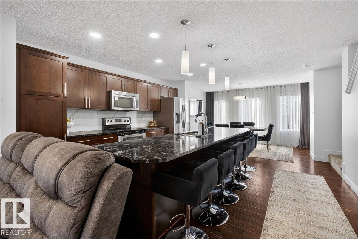 Beautiful upgraded single family house in Laurel. Main floor living room with lots of light flowing through the open concept kitchen with SS appliances, island, granite countertops, lots of cabinetry space. Adjoining is big dining area. Main floor has hardwood flooring throughout with 2 pc bath . As you go upstairs, there is master bedroom with 4 pc ensuite and WI closet. There are 2 more nicely sized bedrooms and one extra 4 pc bathroom to share on upper floor. The house has been upgraded with nice new window coverings, Fire place station , light pots, and a huge new deck, land scapings and more. Nicely fenced and landscaped backyard. Close to Laurel lake, walking trail, park, school, public transportation. Easy access to Anthony Henday..