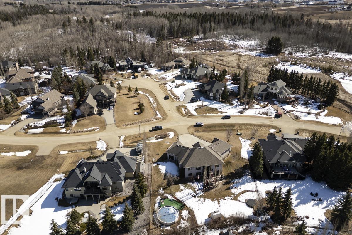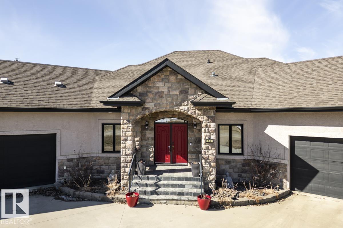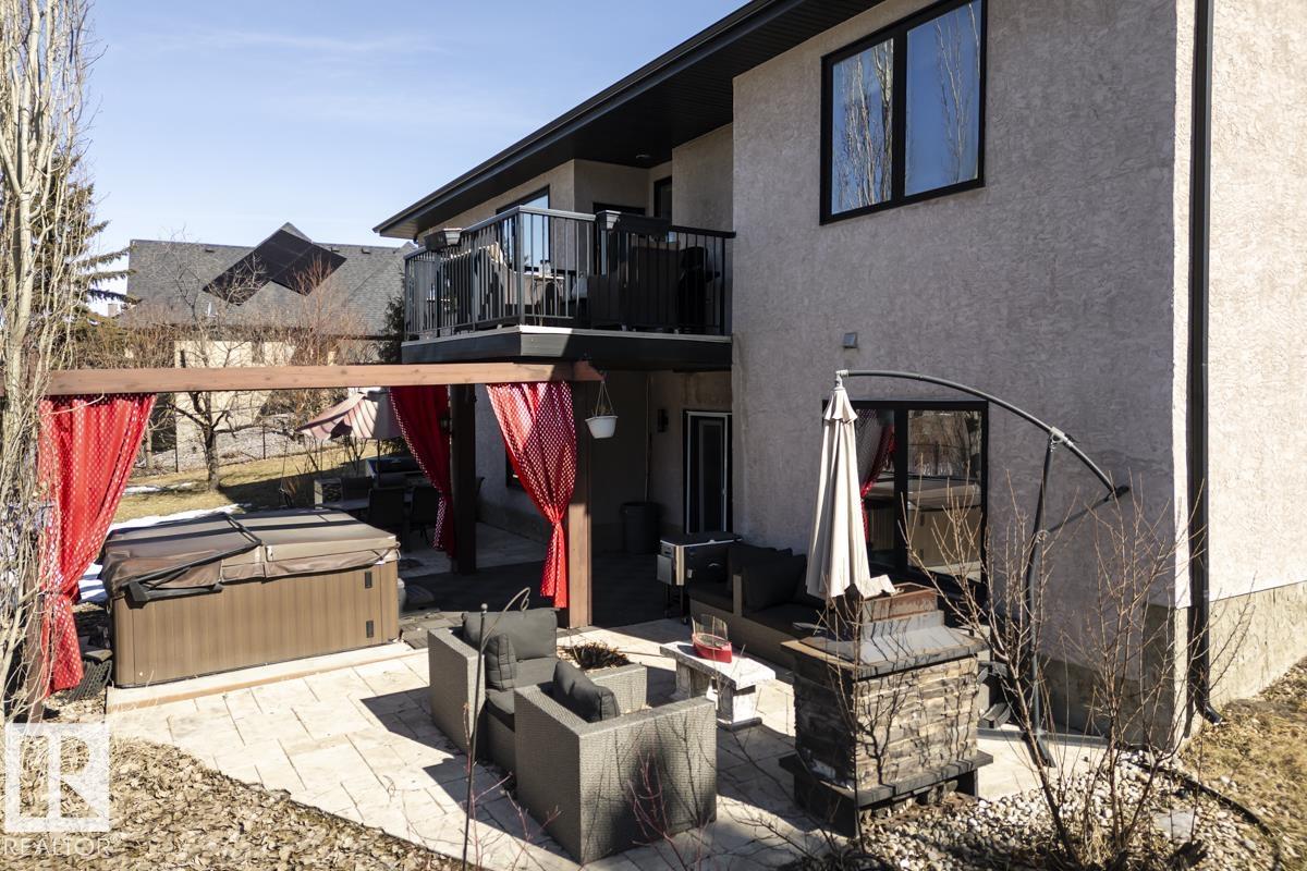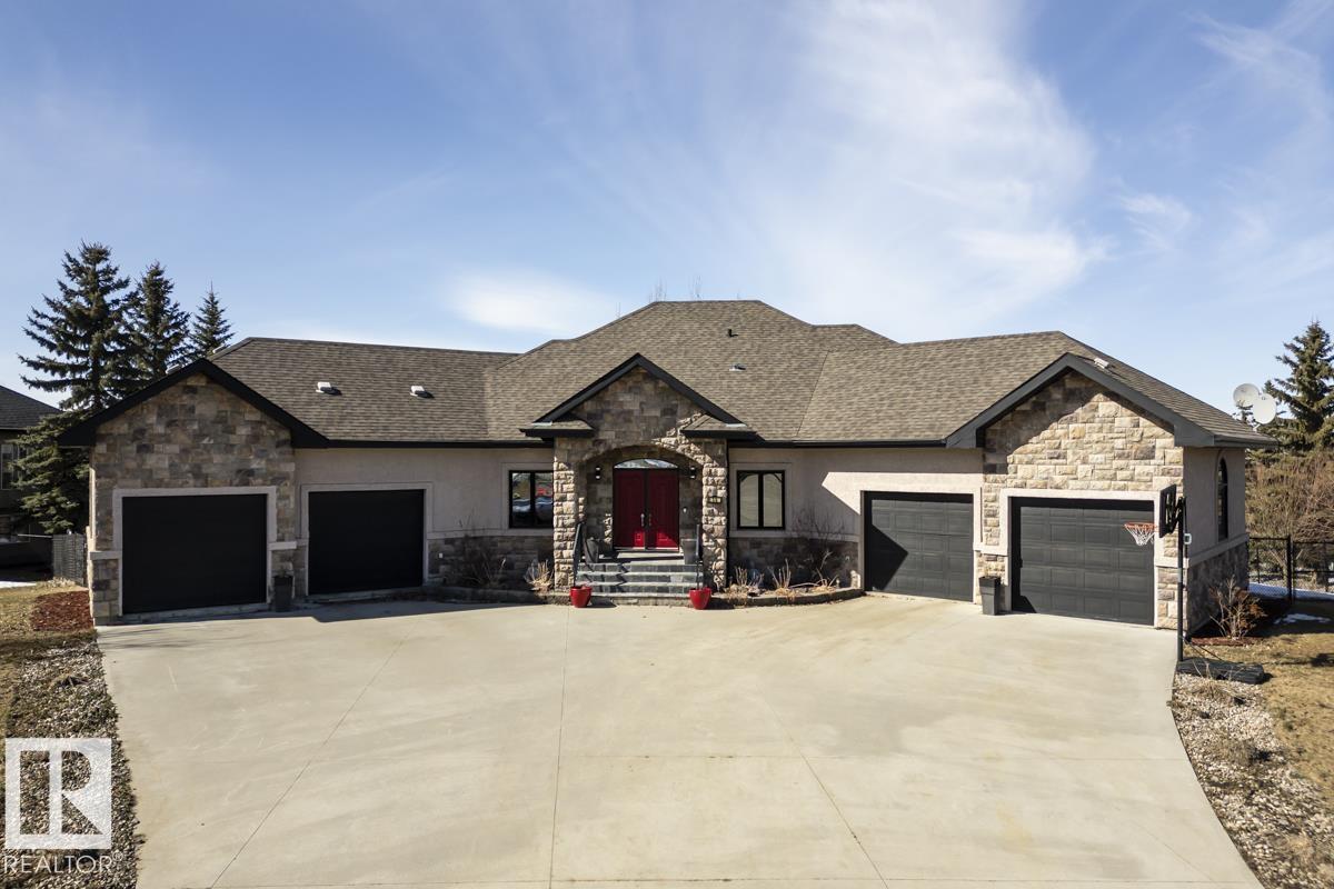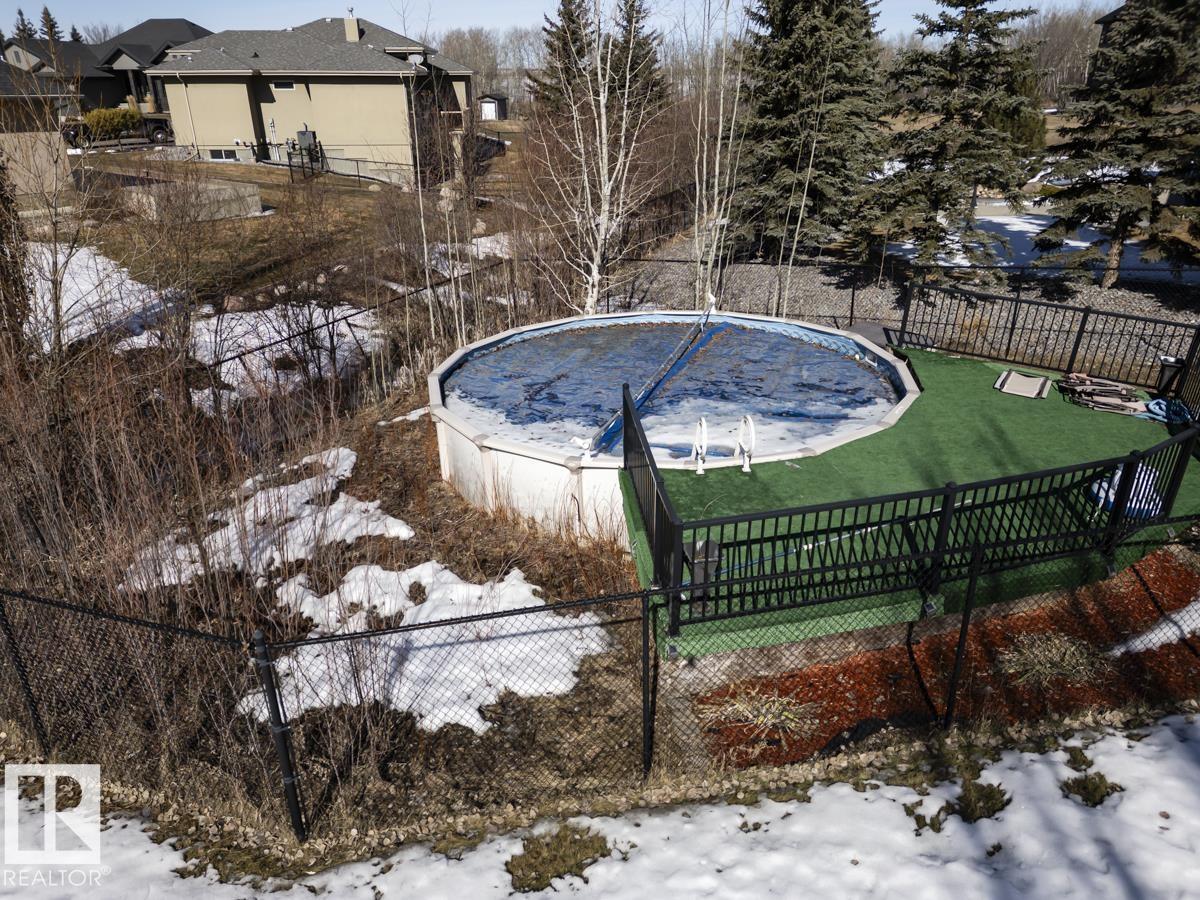 Acreage living just minutes from Edmonton! This custom-built executive home is being offered by the original owner and boasts all of the features of acreage living without a commute, and municipal services! Flanked by his and hers double garages, this beautiful 5 bedroom home was built to last! Enjoy morning coffee on the upper deck backing on to the beautiful yard which is only surpassed by the extensive concrete patio off the walk-out basement which features a hot tub, fire pit and an outdoor metal fireplace. The open main floor includes 3 big bedrooms, a large living area, an extensive breakfast bar and a lovely dining area overlooking the yard. The spacious basement includes a bar, 2 large bedrooms and a huge rec. room. One of the largest lots in the subdivision, this 0.6 acre spread also boasts an above-ground swimming pool, surrounded by another deck for those who prefer to tan. Unique opportunity to enjoy all benefits of acreage life with municipal services and without the long commute.