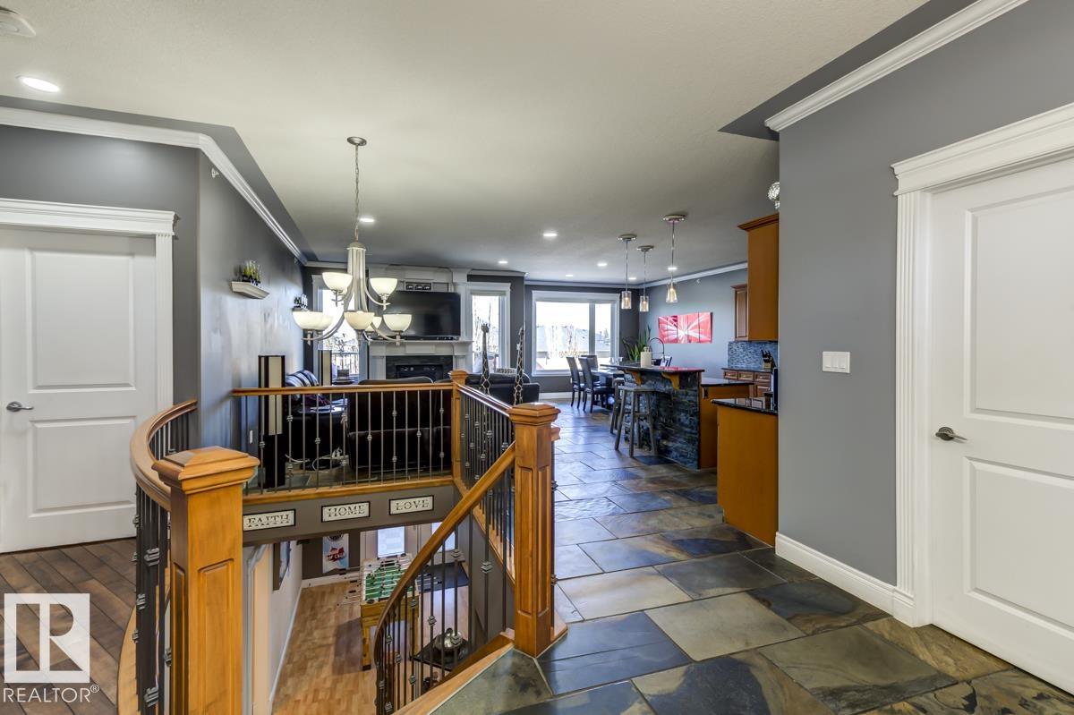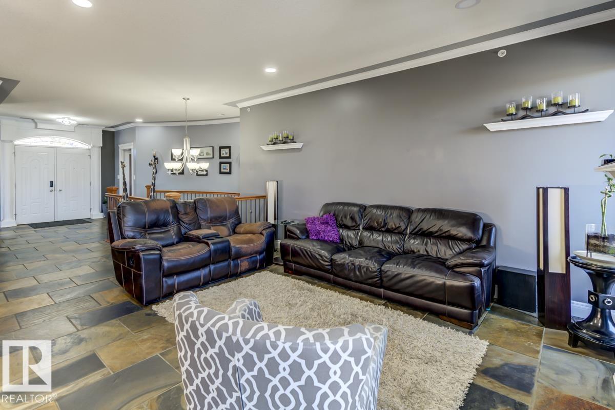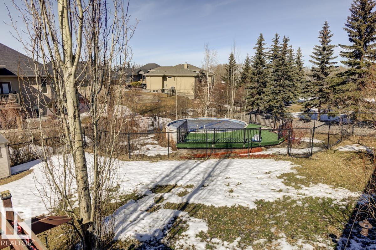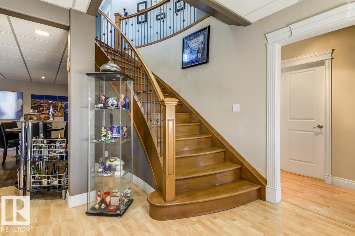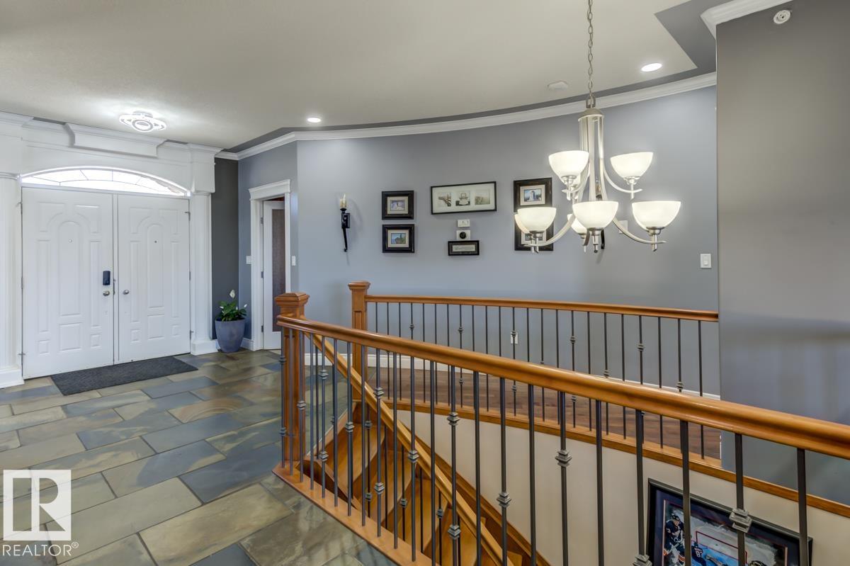 Acreage living just minutes from Edmonton! This custom-built executive home is being offered by the original owner and boasts all of the features of acreage living without a commute, and municipal services! Flanked by his and hers double garages, this beautiful 5 bedroom home was built to last! Enjoy morning coffee on the upper deck backing on to the beautiful yard which is only surpassed by the extensive concrete patio off the walk-out basement which features a hot tub, fire pit and an outdoor metal fireplace. The open main floor includes 3 big bedrooms, a large living area, an extensive breakfast bar and a lovely dining area overlooking the yard. The spacious basement includes a bar, 2 large bedrooms and a huge rec. room. One of the largest lots in the subdivision, this 0.6 acre spread also boasts an above-ground swimming pool, surrounded by another deck for those who prefer to tan. Unique opportunity to enjoy all benefits of acreage life with municipal services and without the long commute.