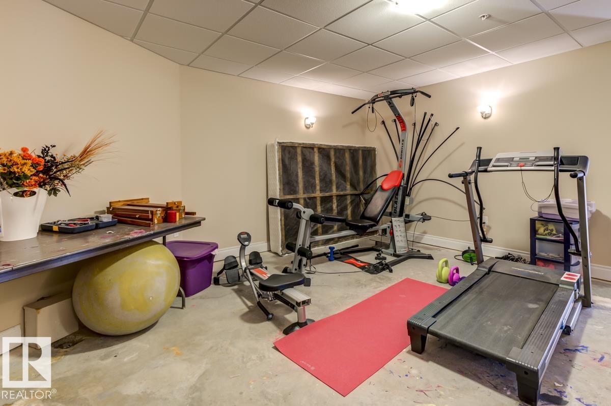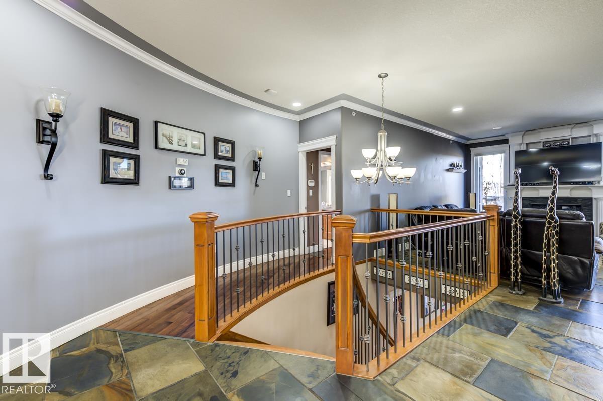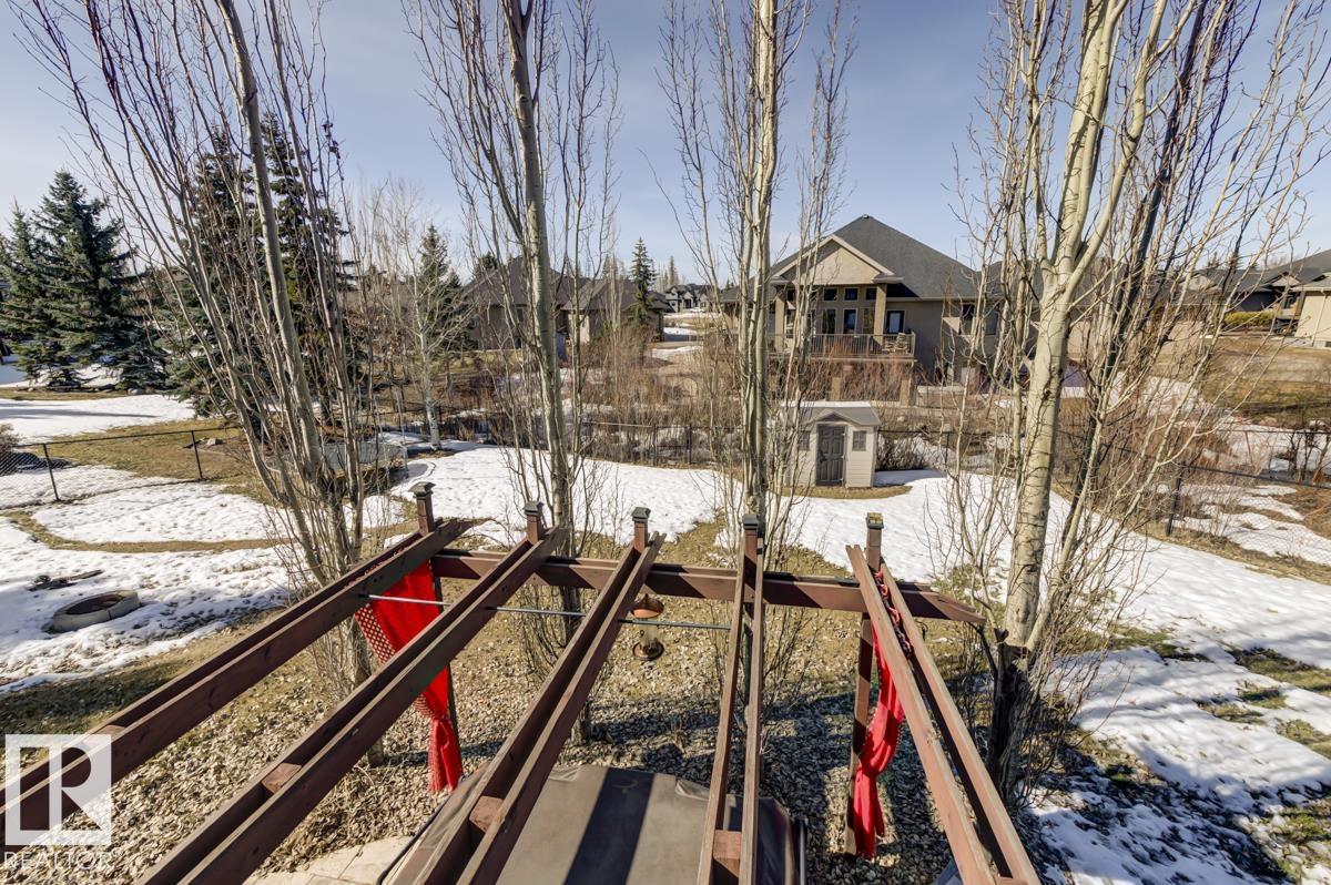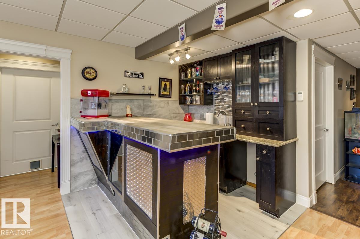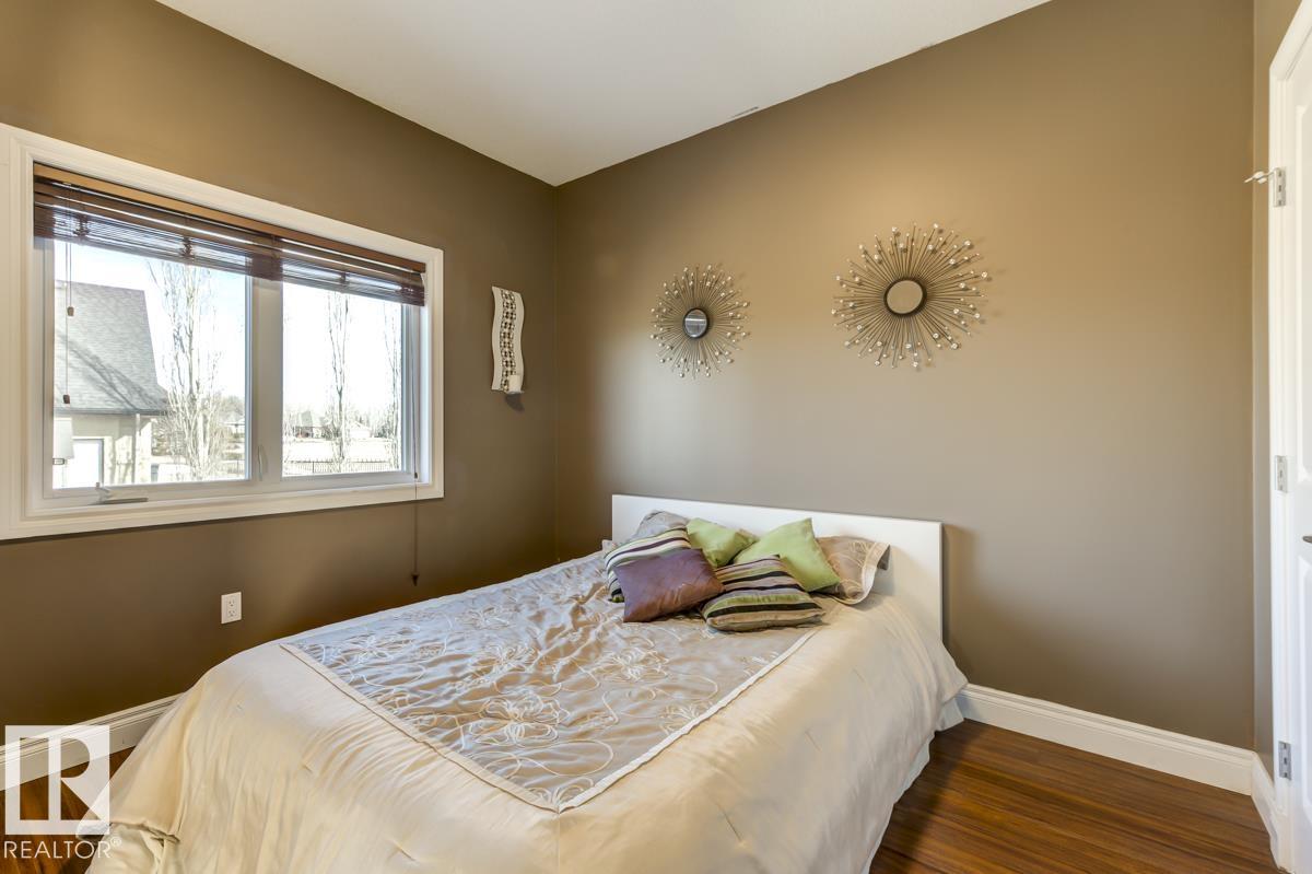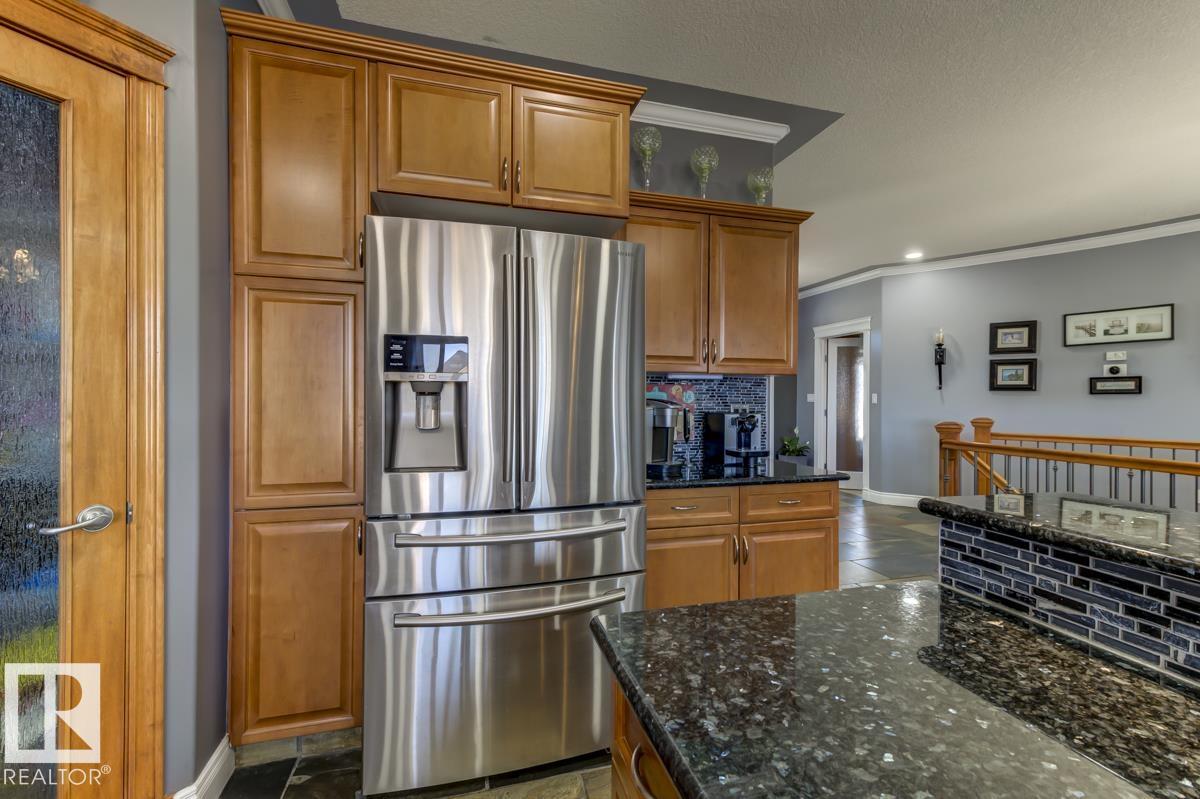 Acreage living just minutes from Edmonton! This custom-built executive home is being offered by the original owner and boasts all of the features of acreage living without a commute, and municipal services! Flanked by his and hers double garages, this beautiful 5 bedroom home was built to last! Enjoy morning coffee on the upper deck backing on to the beautiful yard which is only surpassed by the extensive concrete patio off the walk-out basement which features a hot tub, fire pit and an outdoor metal fireplace. The open main floor includes 3 big bedrooms, a large living area, an extensive breakfast bar and a lovely dining area overlooking the yard. The spacious basement includes a bar, 2 large bedrooms and a huge rec. room. One of the largest lots in the subdivision, this 0.6 acre spread also boasts an above-ground swimming pool, surrounded by another deck for those who prefer to tan. Unique opportunity to enjoy all benefits of acreage life with municipal services and without the long commute.