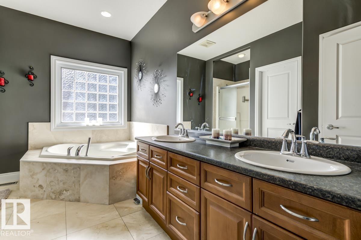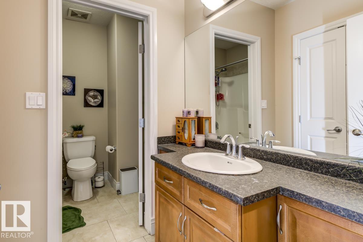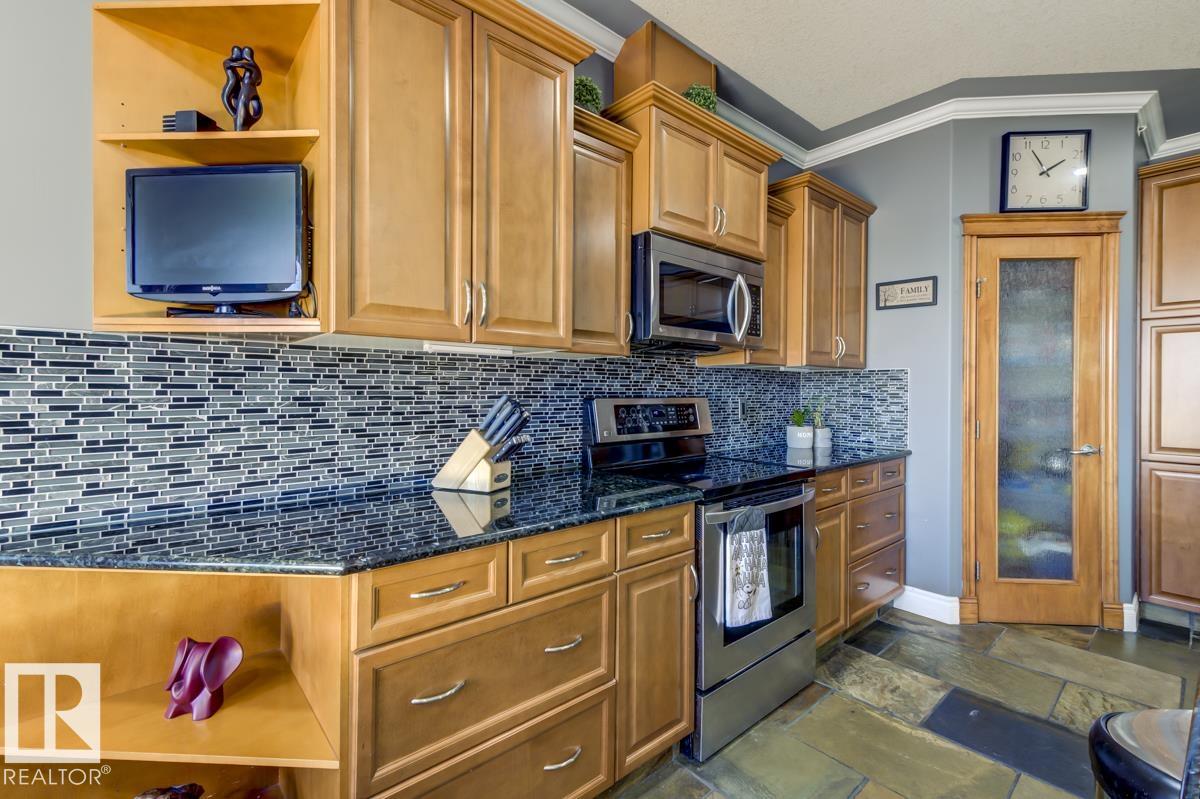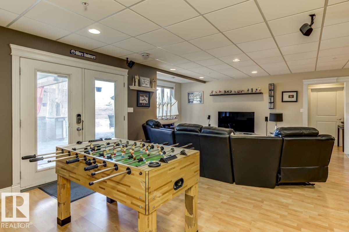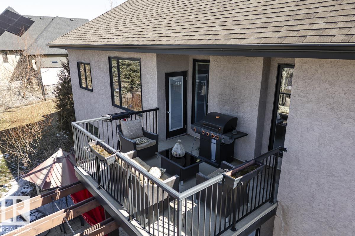 Acreage living just minutes from Edmonton! This custom-built executive home is being offered by the original owner and boasts all of the features of acreage living without a commute, and municipal services! Flanked by his and hers double garages, this beautiful 5 bedroom home was built to last! Enjoy morning coffee on the upper deck backing on to the beautiful yard which is only surpassed by the extensive concrete patio off the walk-out basement which features a hot tub, fire pit and an outdoor metal fireplace. The open main floor includes 3 big bedrooms, a large living area, an extensive breakfast bar and a lovely dining area overlooking the yard. The spacious basement includes a bar, 2 large bedrooms and a huge rec. room. One of the largest lots in the subdivision, this 0.6 acre spread also boasts an above-ground swimming pool, surrounded by another deck for those who prefer to tan. Unique opportunity to enjoy all benefits of acreage life with municipal services and without the long commute.