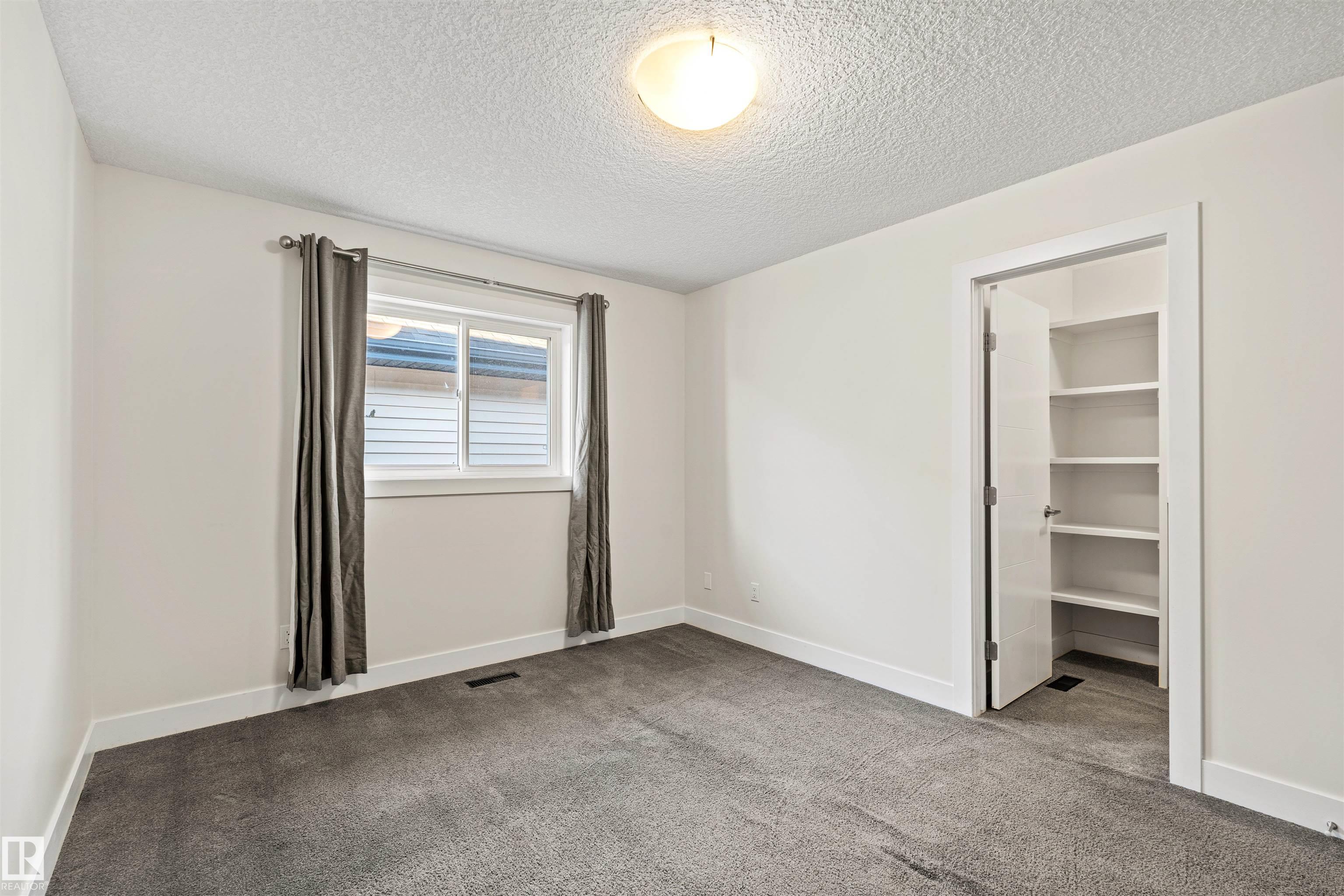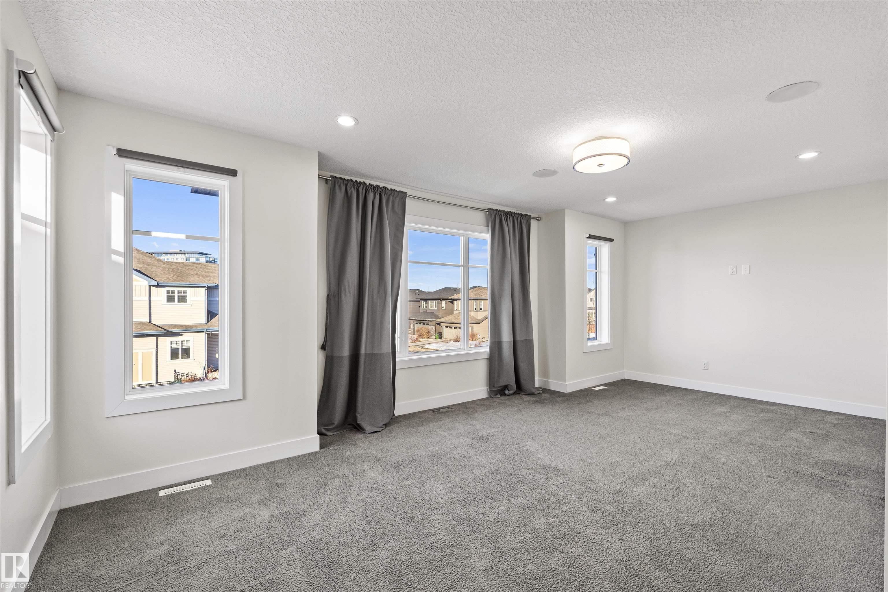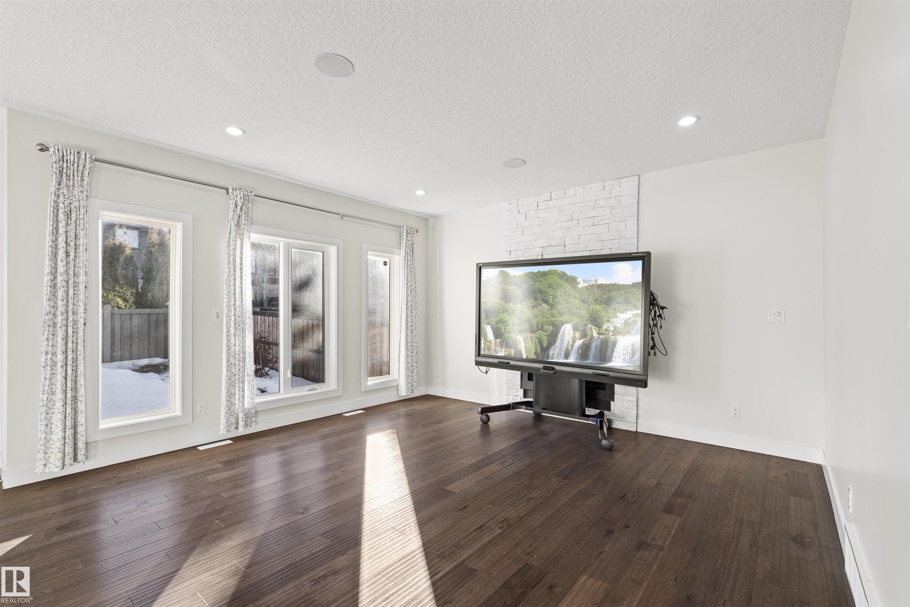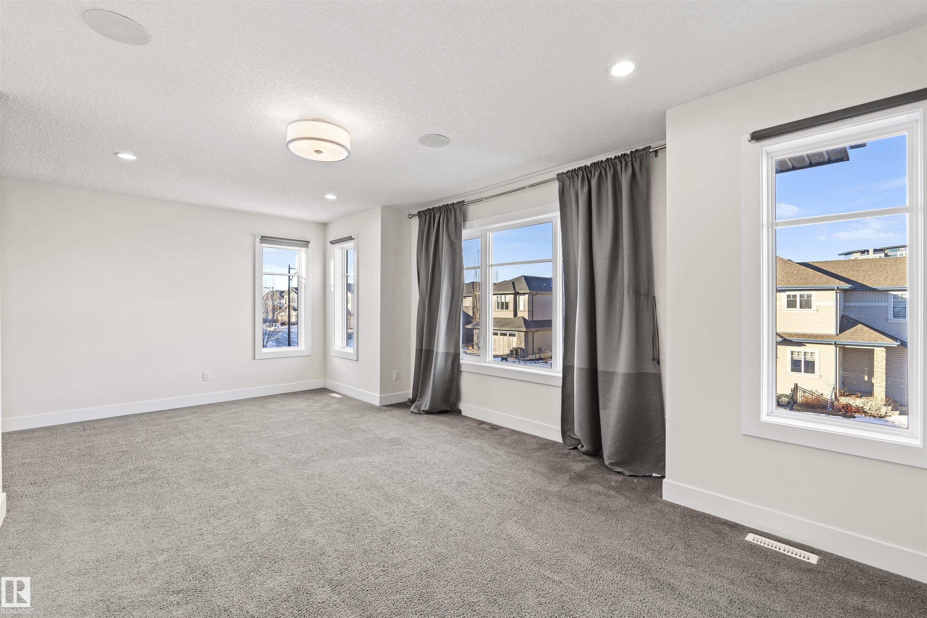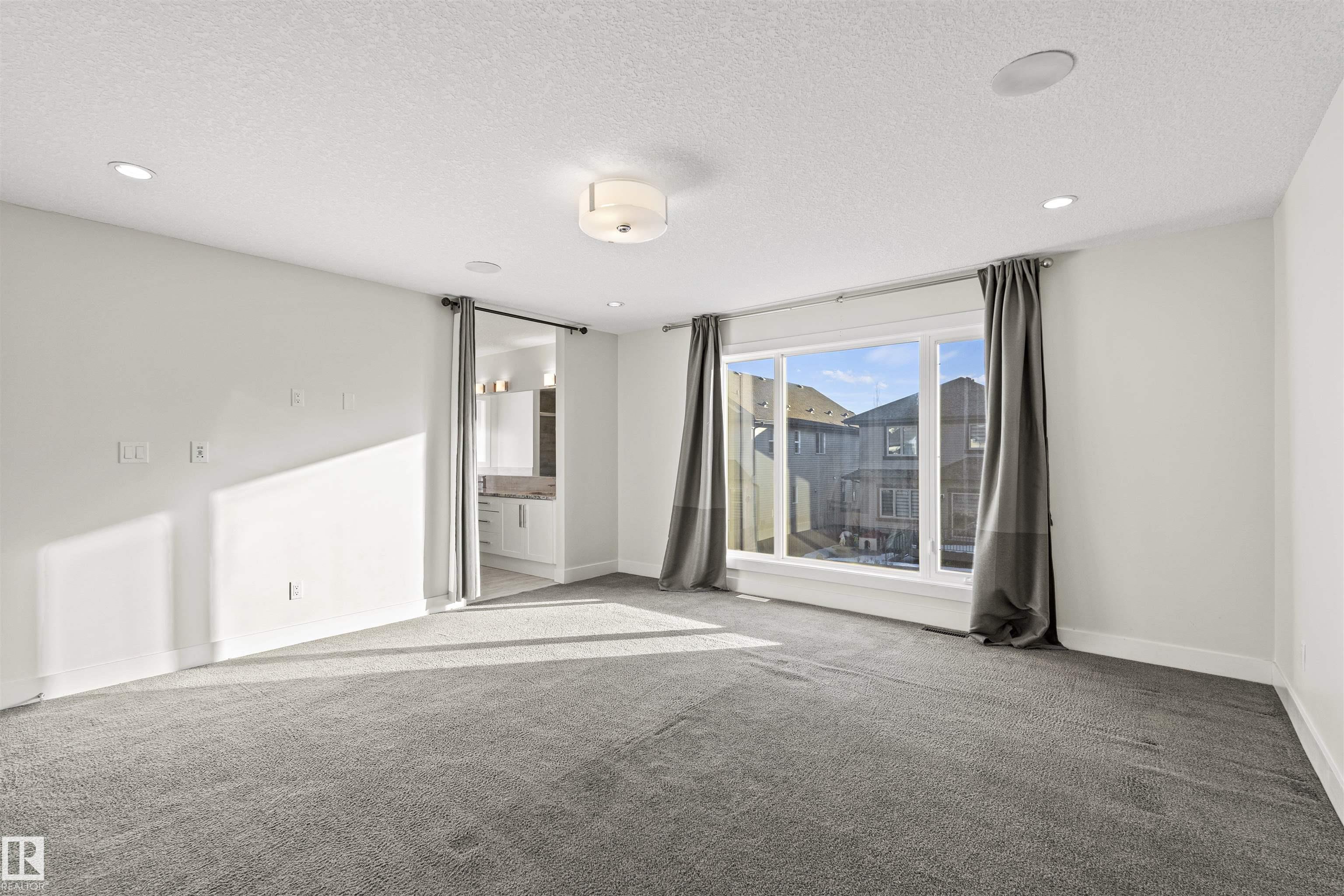 Welcome to this 2-storey, 2,657 sq ft modern home with over 3,700 sq ft of total space including an unfinished basement in Ambleside. This award-winning open-concept plan features 9-foot ceilings, 8-foot doors, and three spacious upstairs bedrooms, including a primary suite with a generous walk-in closet and spa-inspired ensuite with Jacuzzi tub.The main floor offers a private office/den, and laundry room with sink, connecting to a chef?s kitchen with built-in double oven and microwave, high-end SS appliances, granite countertops throughout, custom white cabinetry, and a large granite island.This south-facing home is filled with natural light inside and out, while the spacious unfinished basement with large windows offers excellent future development potential. Located just steps from parks and walking trails and an 8-minute walk to the neighbourhood school through the community park. Conveniently located just 2?5 minutes from the future high school, recreation centre,and Anthony Henday Drive.