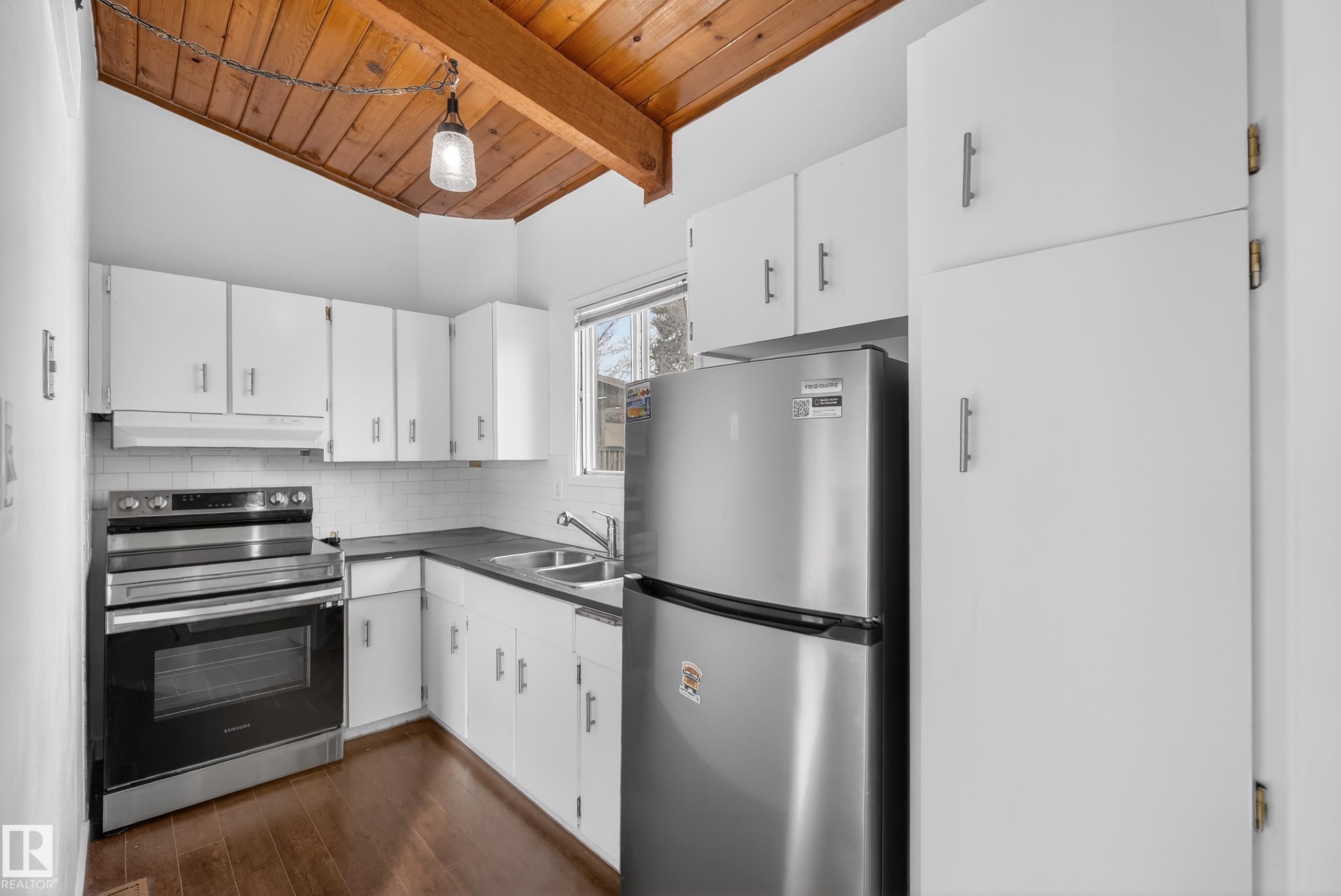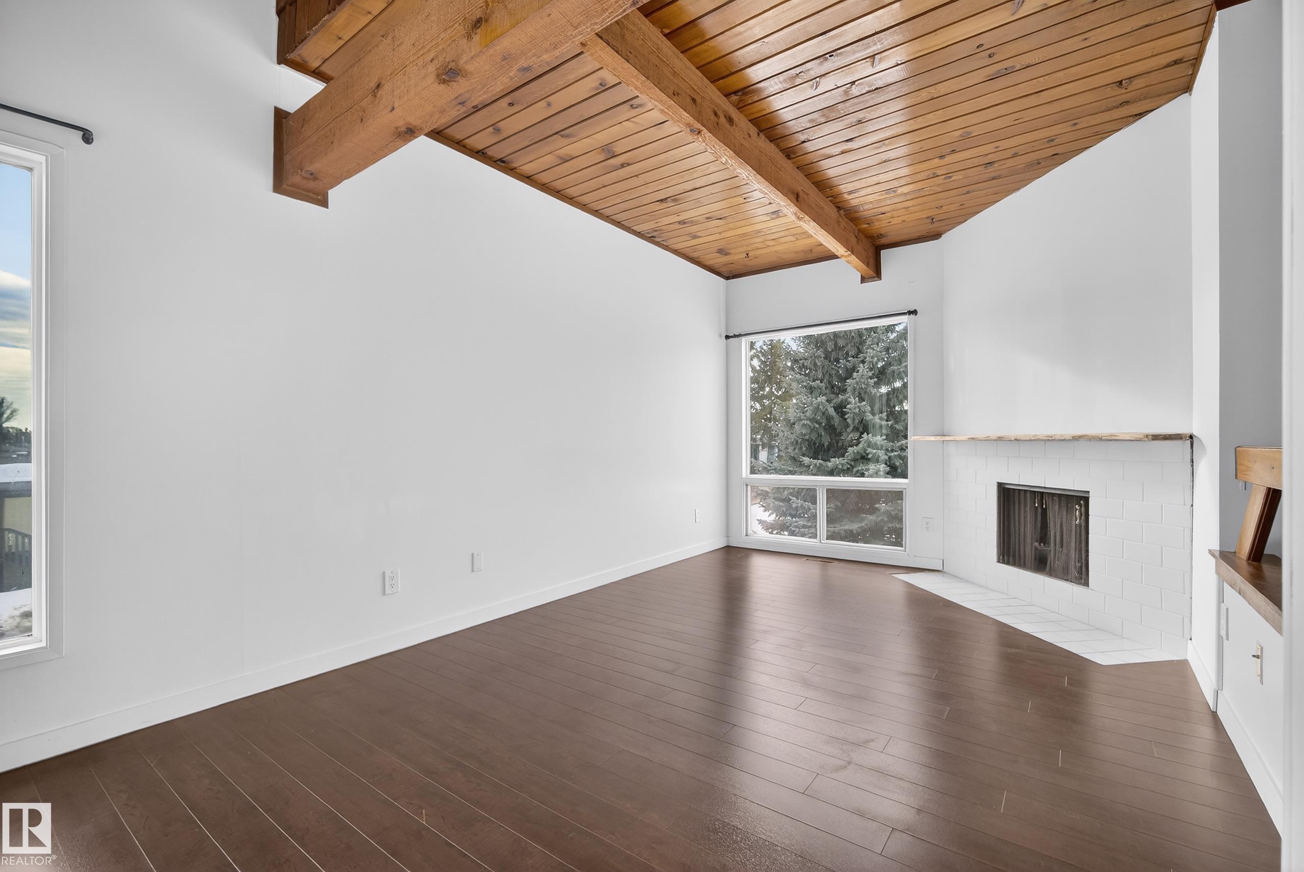 Welcome to your new home in Mill Woods! Nestled in a peaceful CORNER location, this BI-LEVEL HALF-DUPLEX townhome offers comfort, style, and convenience. The FULLY FINISHED BASEMENT features 2 SPACIOUS BEDROOMS plus a generous STORAGE/LAUNDRY ROOM, while the main level boasts a RENOVATED 5-PIECE BATH. The kitchen is thoughtfully positioned at the back, overlooking the peaceful courtyard. Relax by the cozy FIREPLACE, enjoy the soaring VAULTED CEILINGS, and step onto your private DECK for morning coffee or evening unwinding. A dedicated PARKING STALL adds everyday convenience. Recent upgrades include a HOT WATER TANK (2024), APPLIANCES (2024), and modern LIGHT FIXTURES (2024), giving you peace of mind and a fresh, updated feel. Even better?NO WATER BILL to pay! Ideally located close to shopping, restaurants, Grey Nuns Hospital, the new LRT station, transit, gyms, Whitemud, and Anthony Henday. Comfort and functionality harmonize beautifully?your perfect haven awaits!