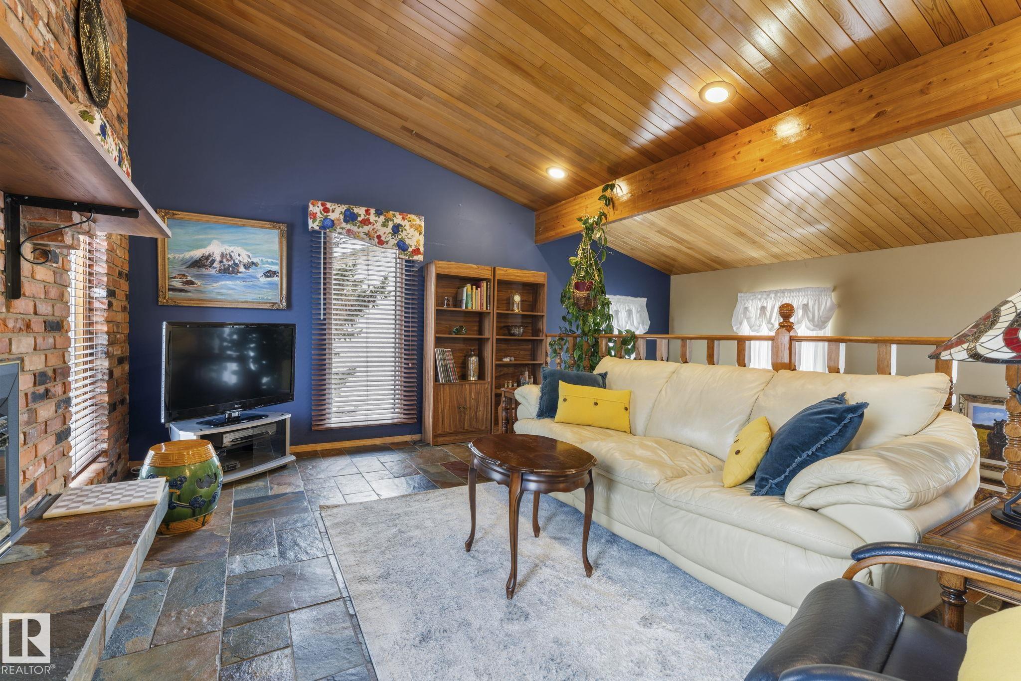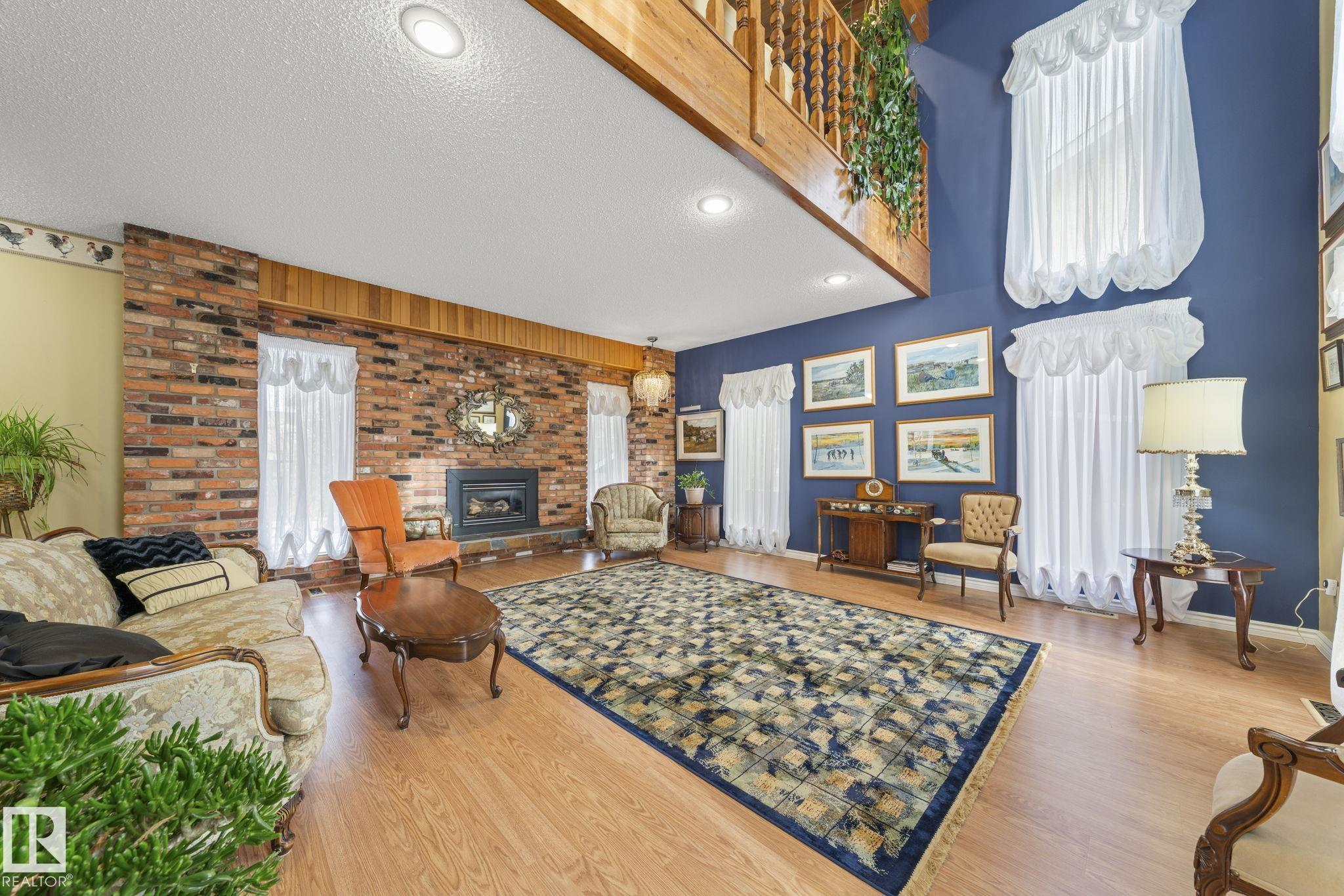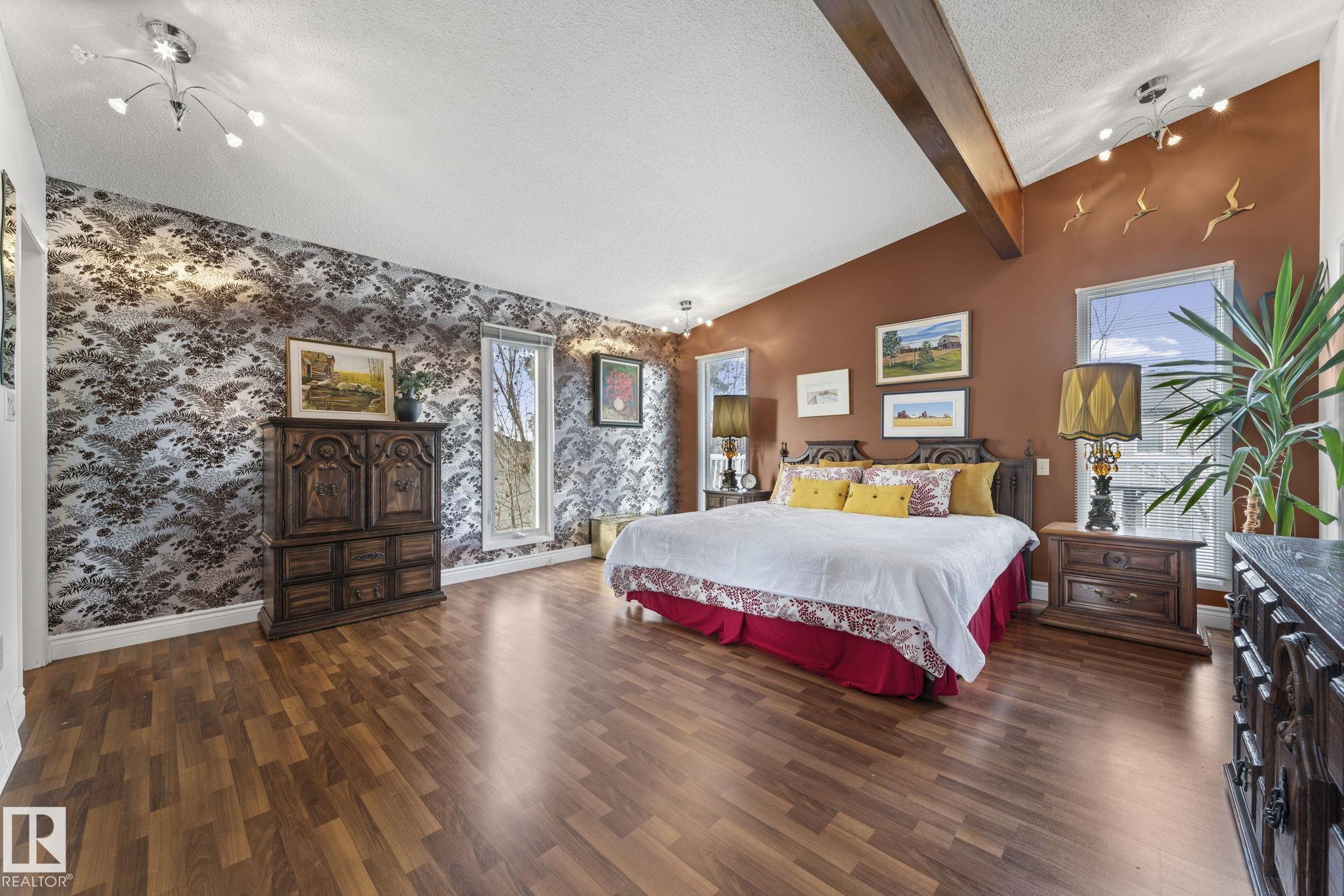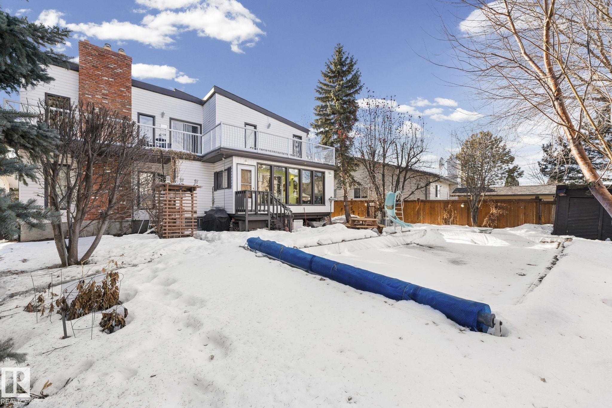 This is a special one! Prepare to be delighted by this absolute GEM in the mature neighborhood of Baturyn. Featuring 4 bd/ 4ba, over 3200 sqft of living space, soaring vaulted wood ceilings and an abundance of windows, this home was made for enjoyment! The main floor features a massive living room with brick fireplace, formal dining room, a 3pc bathroom and a large kitchen opening to an enclosed deck overlooking the pool?perfect for summer parties! Upstairs hosts a gorgeous family room with fireplace and access to the upper deck, a spacious primary retreat with two large closets and a 3-piece ensuite, two additional generous bedrooms with vaulted ceilings and a luxurious 3-piece bath. The fully finished basement offers a rec room with fireplace, huge laundry area, 4th bedroom or office, another 3-piece bath and a sauna. Thoughtful storage throughout the home plus newer roof, furnaces, and hot water tank. All in a great location with easy access to all amenities. You don't want to miss this one!