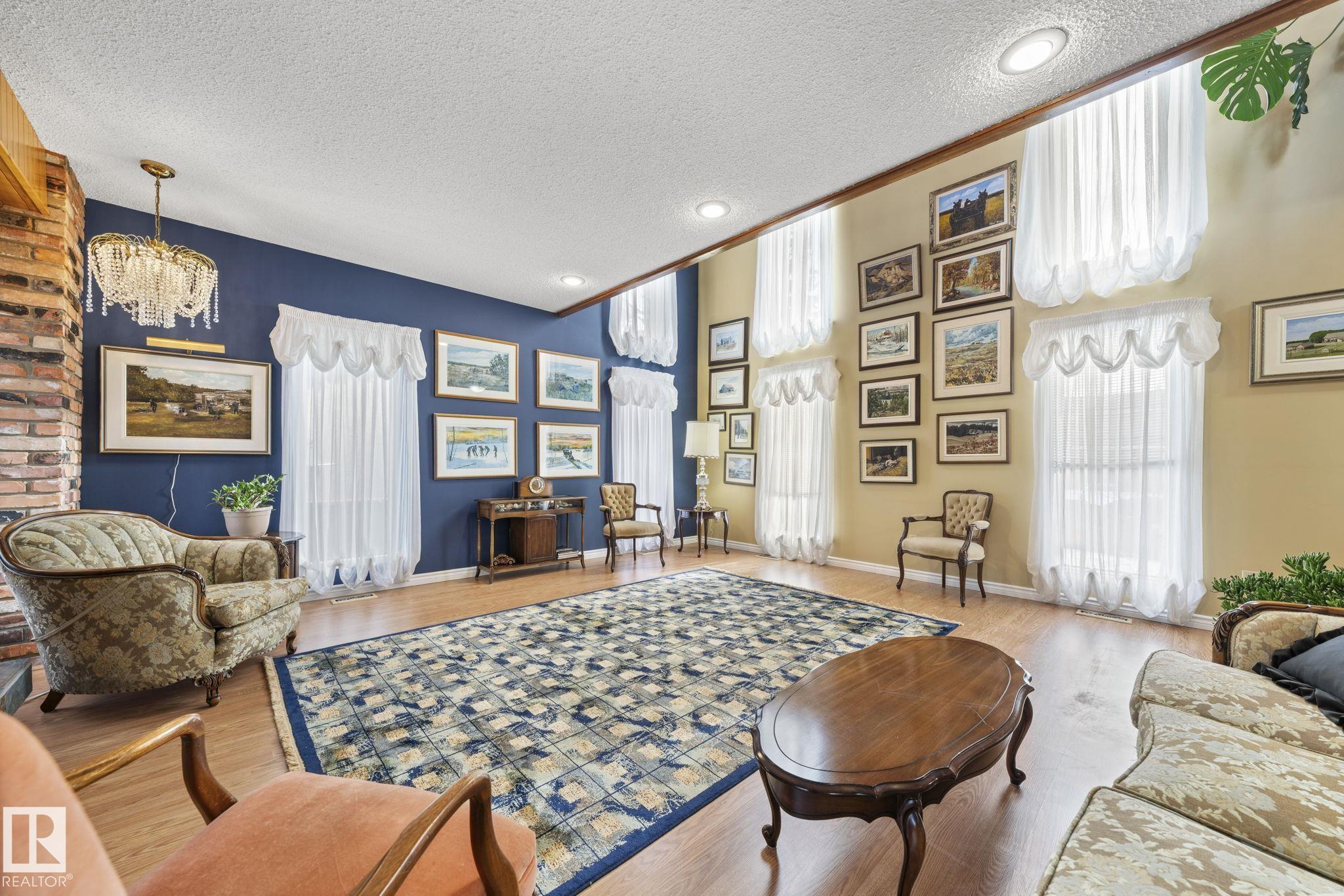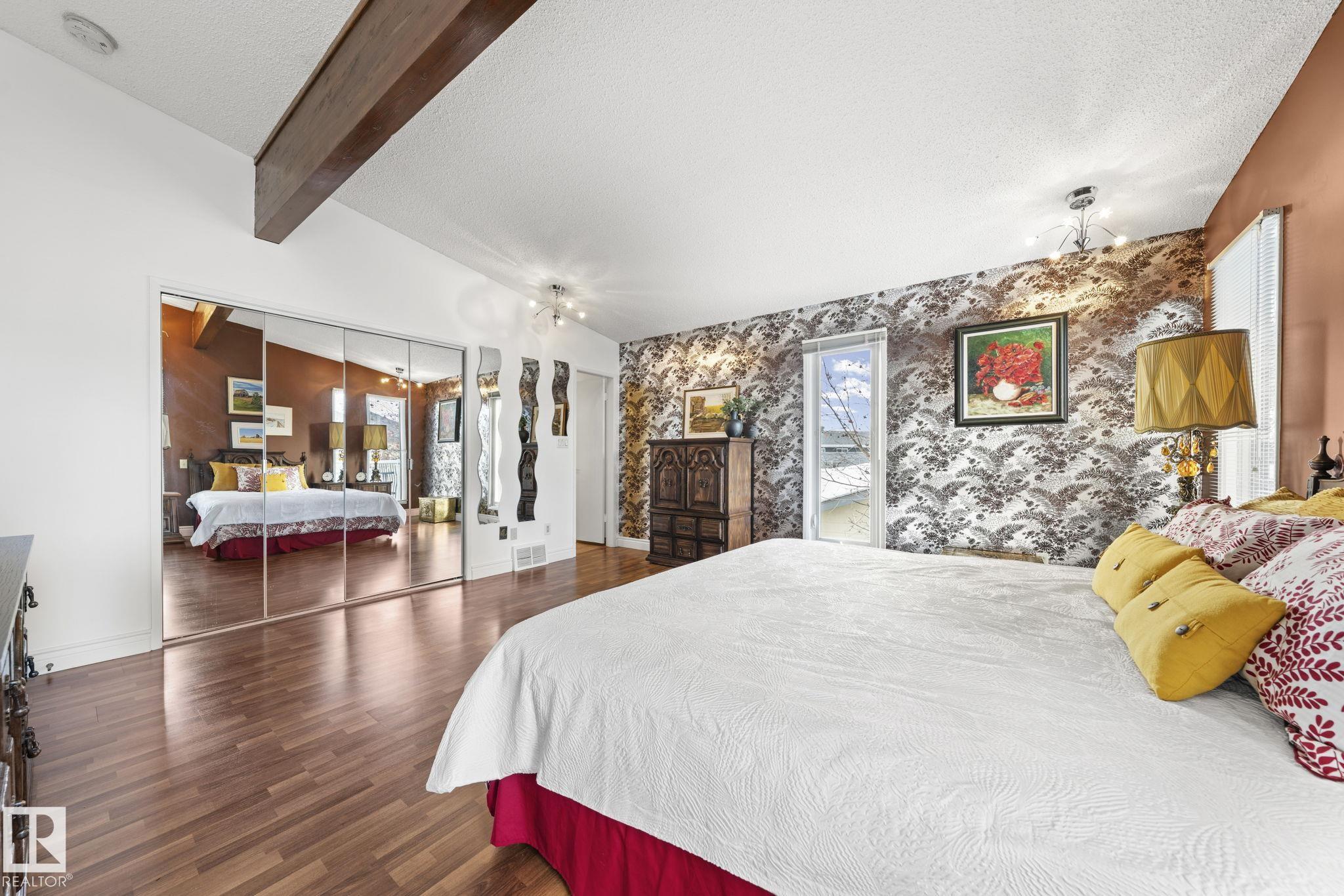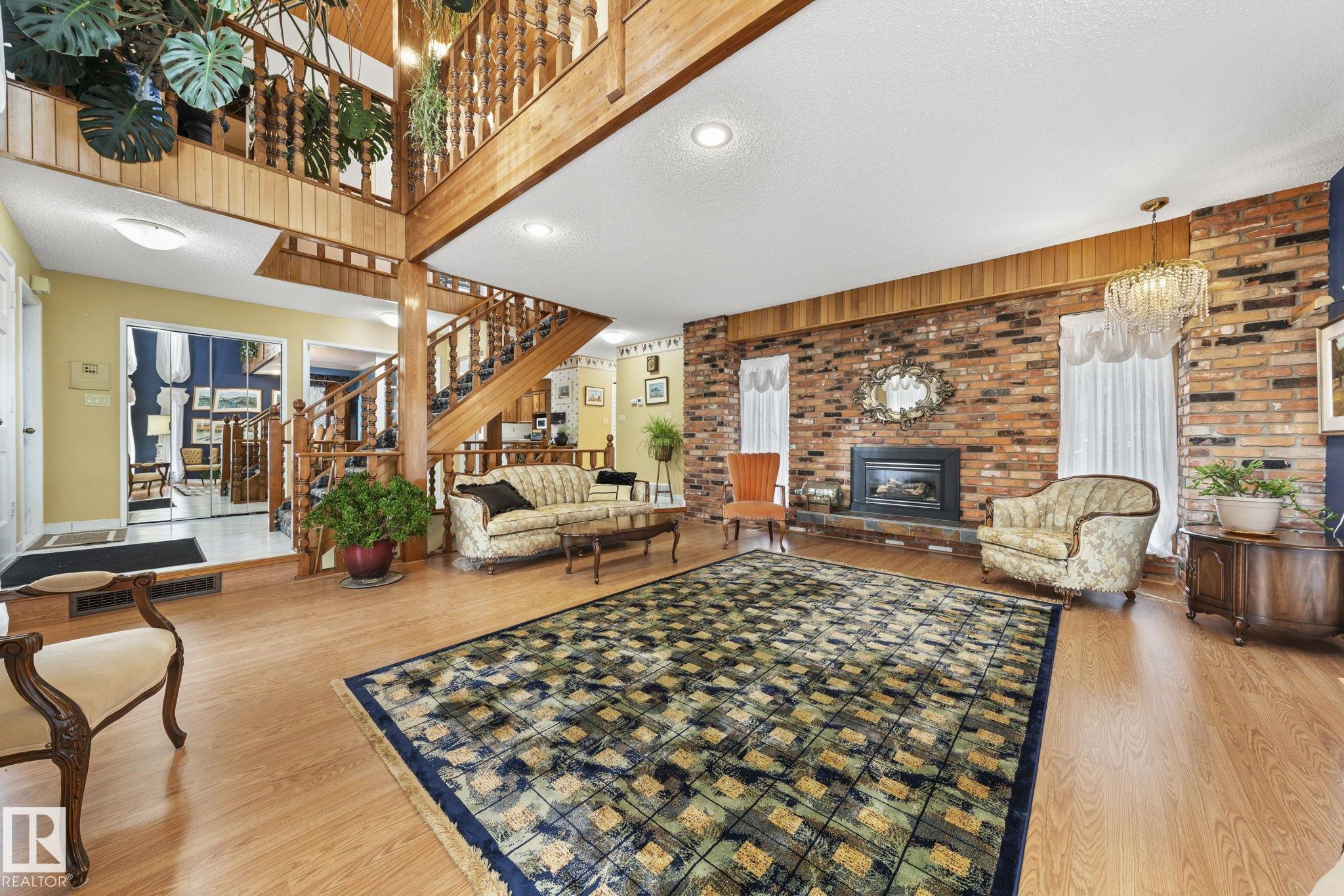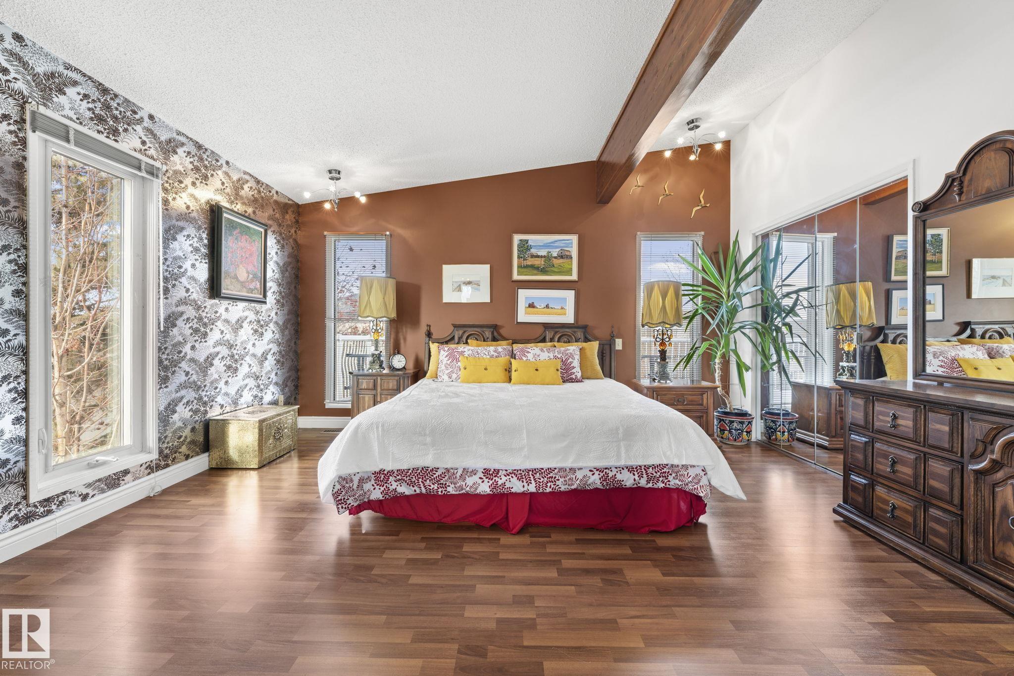 This is a special one! Prepare to be delighted by this absolute GEM in the mature neighborhood of Baturyn. Featuring 4 bd/ 4ba, over 3200 sqft of living space, soaring vaulted wood ceilings and an abundance of windows, this home was made for enjoyment! The main floor features a massive living room with brick fireplace, formal dining room, a 3pc bathroom and a large kitchen opening to an enclosed deck overlooking the pool?perfect for summer parties! Upstairs hosts a gorgeous family room with fireplace and access to the upper deck, a spacious primary retreat with two large closets and a 3-piece ensuite, two additional generous bedrooms with vaulted ceilings and a luxurious 3-piece bath. The fully finished basement offers a rec room with fireplace, huge laundry area, 4th bedroom or office, another 3-piece bath and a sauna. Thoughtful storage throughout the home plus newer roof, furnaces, and hot water tank. All in a great location with easy access to all amenities. You don't want to miss this one!