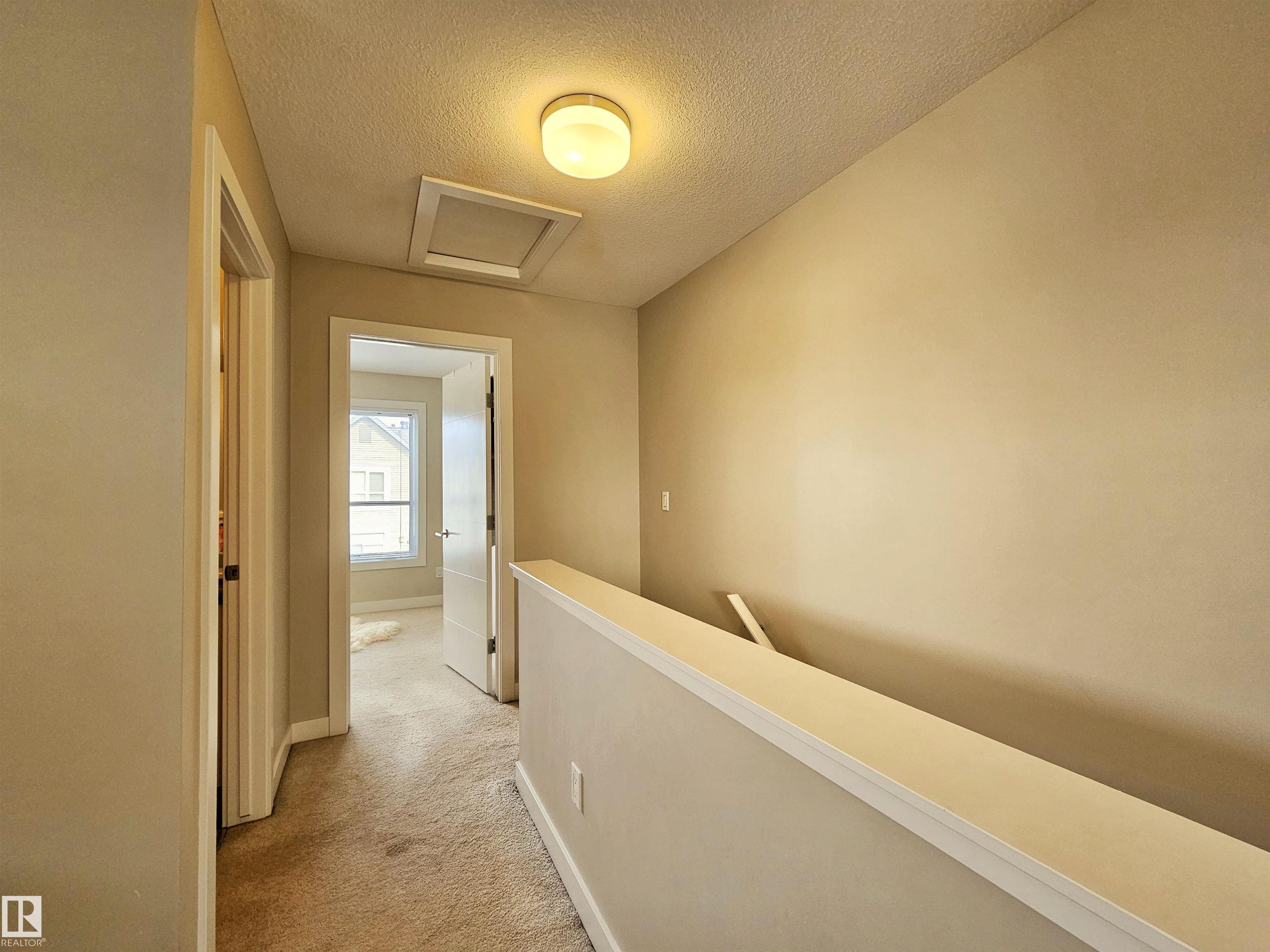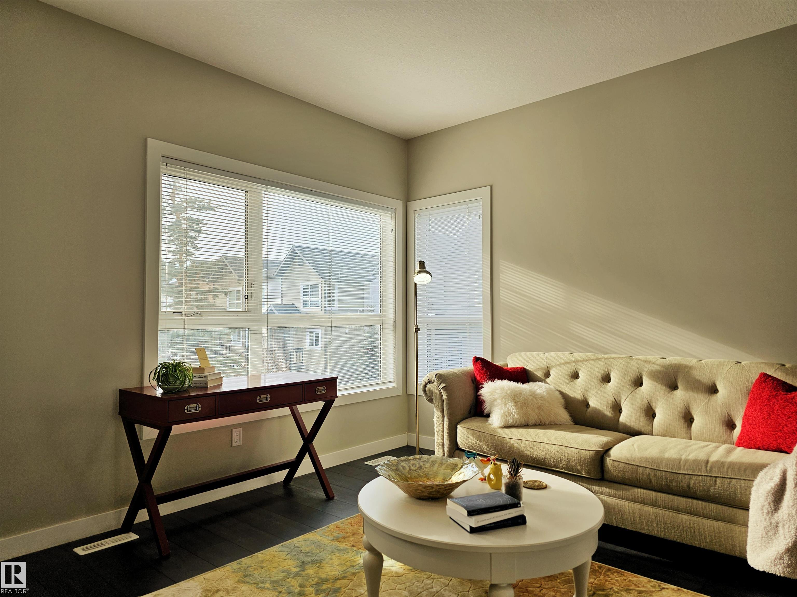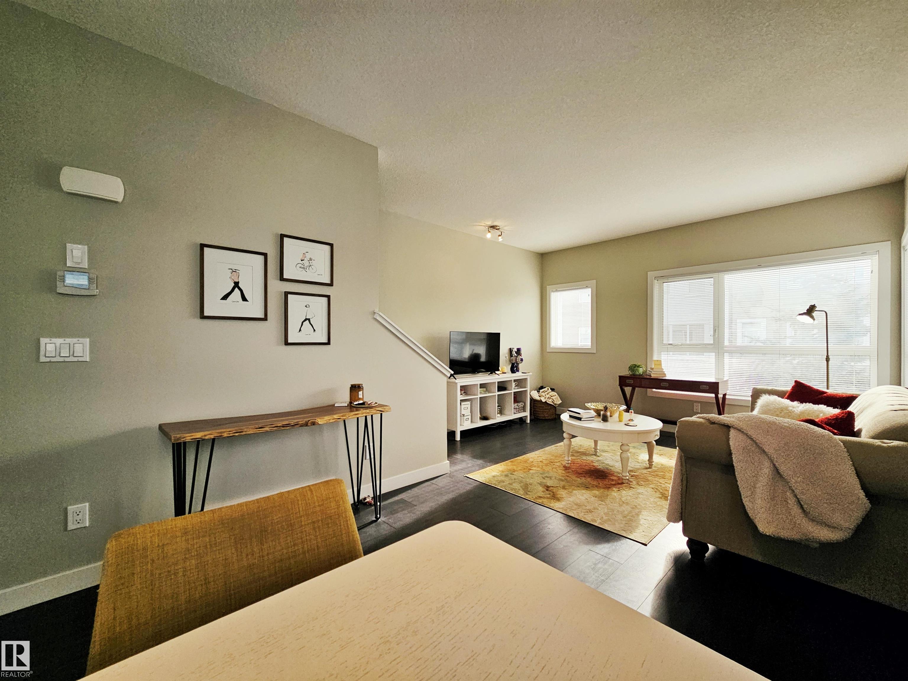 Proudly presented by the ORIGINAL OWNERS, this impeccably maintained END UNIT townhome blends timeless finishes with an exceptional location & oversized single ATTACHED GARAGE. Offering 1,358 sq ft of open-concept living, the home is defined by rich espresso laminate flooring, soaring 9? ceilings, granite surfaces throughout, & expansive windows that fill the space with natural light. The main level features a functional den, elegant 2-pc bath, and direct garage access. At the heart of the home, a beautifully appointed kitchen showcases crisp white cabinetry, S/S appliances, PRIVATE BALCONY access, and a large island overlooking the warm dining and living areas. Upstairs you?ll find a 4-pc bath, laundry, bonus room, spacious second bedroom, and a south-facing primary retreat with double closets and 3-pc ensuite. Perfectly positioned just minutes from downtown, with nearby schools, trails, & everyday amenities along 97 St & Northgate Centre, all in a professionally managed enclave with low condo fees $328.