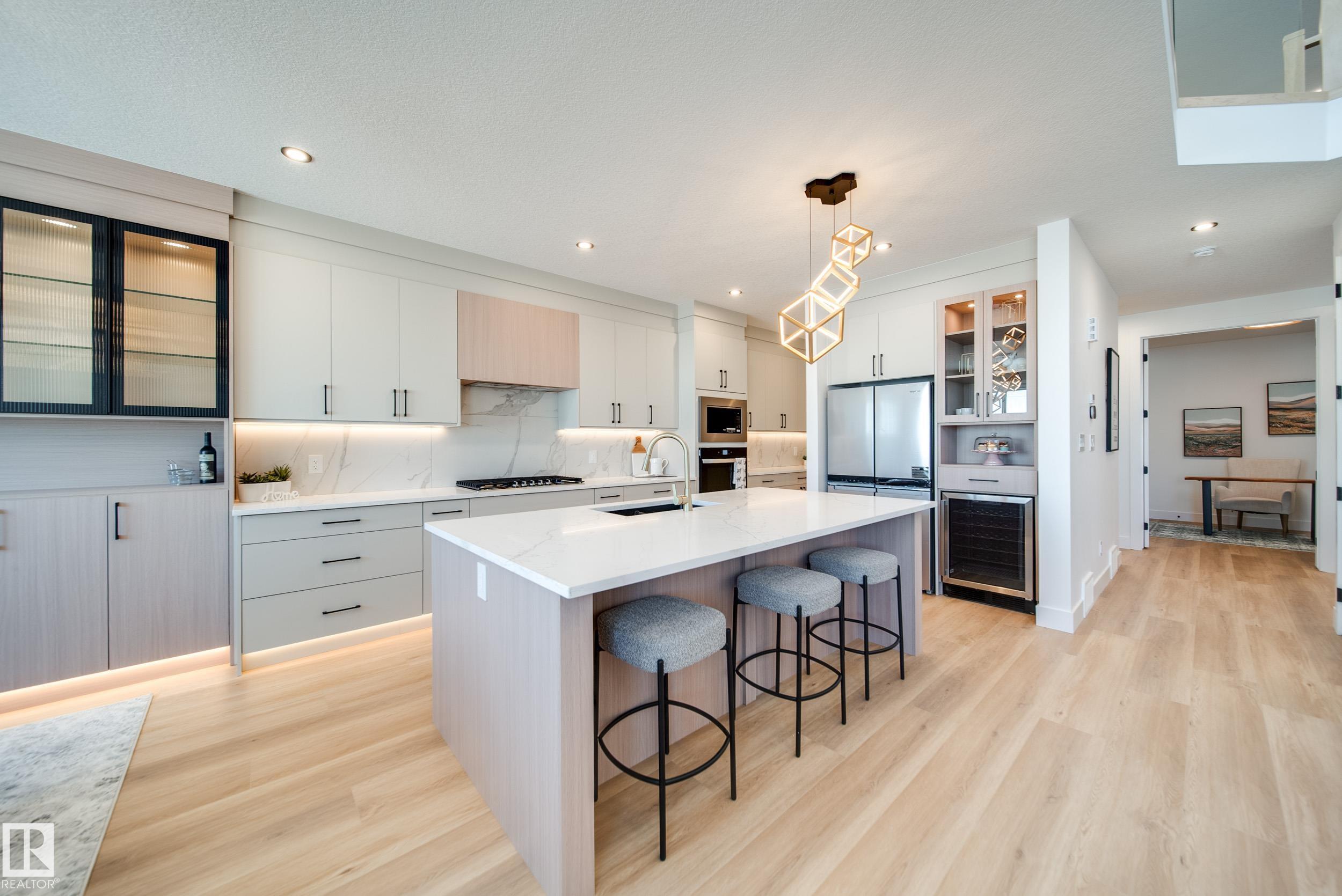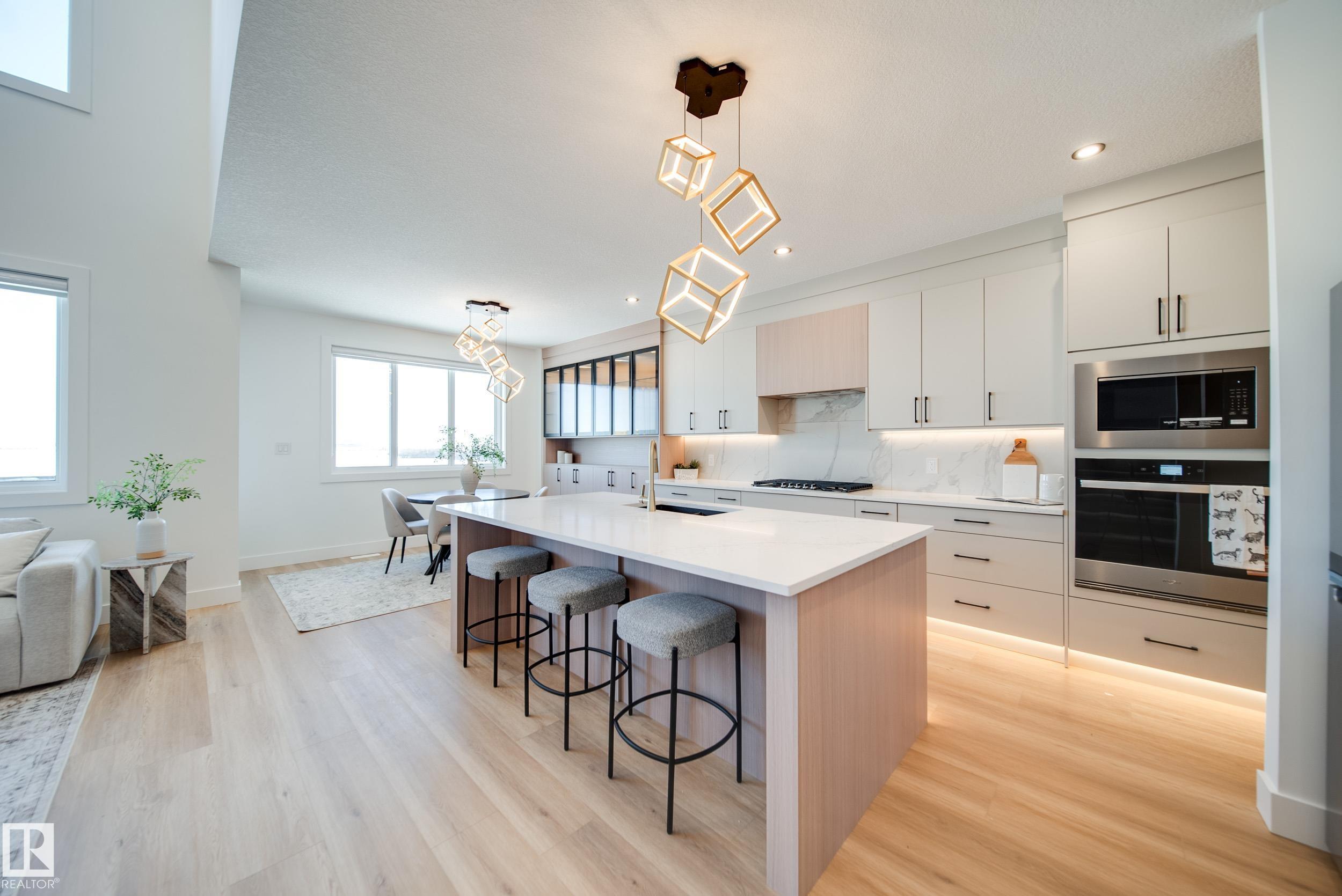 UPGRADES UPGRADES UPGRADES! Step inside to LUXURY VINYL PLANK flooring and PLUSH CARPET throughout the home! The chef inspired kitchen offers BUILT-IN WALL OVEN and GAS STOVETOP! EXTENDED UPGRADED CABINETRY w/ ambient under-lighting is sure to wow your guests. The main floor offers 9' CEILINGS W/ 8' DOORS and a cozy DEN/BEDROOM, perfect for an office or playroom! The magnificent OPEN TO BELOW living room features FLOOR TO CEILING FEATURE WALL! Upstairs, you will be welcomed by a BONUS ROOM, 3 bedrms & 2 baths. The primary suite w/ENSUITE BATHROOM features DOUBLE SINKS, and a WIC leading to UPSTAIRS LAUNDRY. Enjoy comfort using your ECOBEE SMART THERMOSTAT connected to HIGH EFFICIENCY FURNACE right from your phone! This beautiful home on a WALKOUT LOT w/UPPER DECK is perfect to enjoy the area with no rear neighbours! Enjoy extra storage room with the OVERSIZED DOUBLE GARAGE w/ GEM LIGHTING. WHIRLPOOL APPLIANCE PACKAGE INCLUDED! WINDOW COVERINGS INCLUDED!