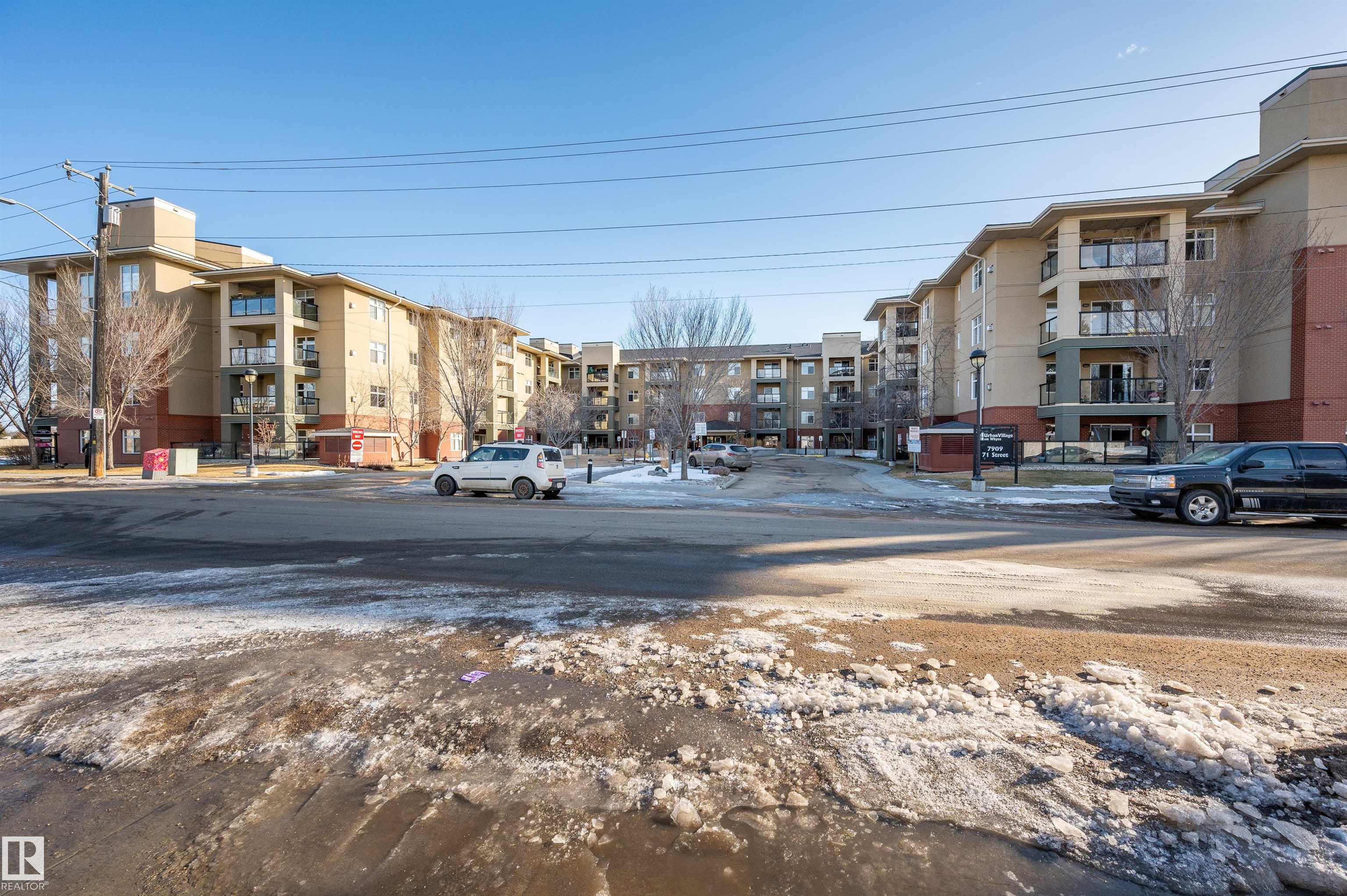 Highly sought after Urban Village condo on Whyte Avenue! TOP FLOOR! Featuring 2 bedrooms with adjacent ensuites + 2 bathrooms! Wide open concept floor plan, central air conditioning for the upcoming summer months! 6 appliances included, very generous balcony with BBQ gas hook up with Bar-Bque included, laminate floors throughout, fresh new paint. Plus 2 PRIME PARKING STALLS This complex also features heated underground parking & 'RESORT STYLE AMENITIES' including a swimming pool, hot tub, sauna, fitness room, library, social room & guest suite! The opportunities are endless.