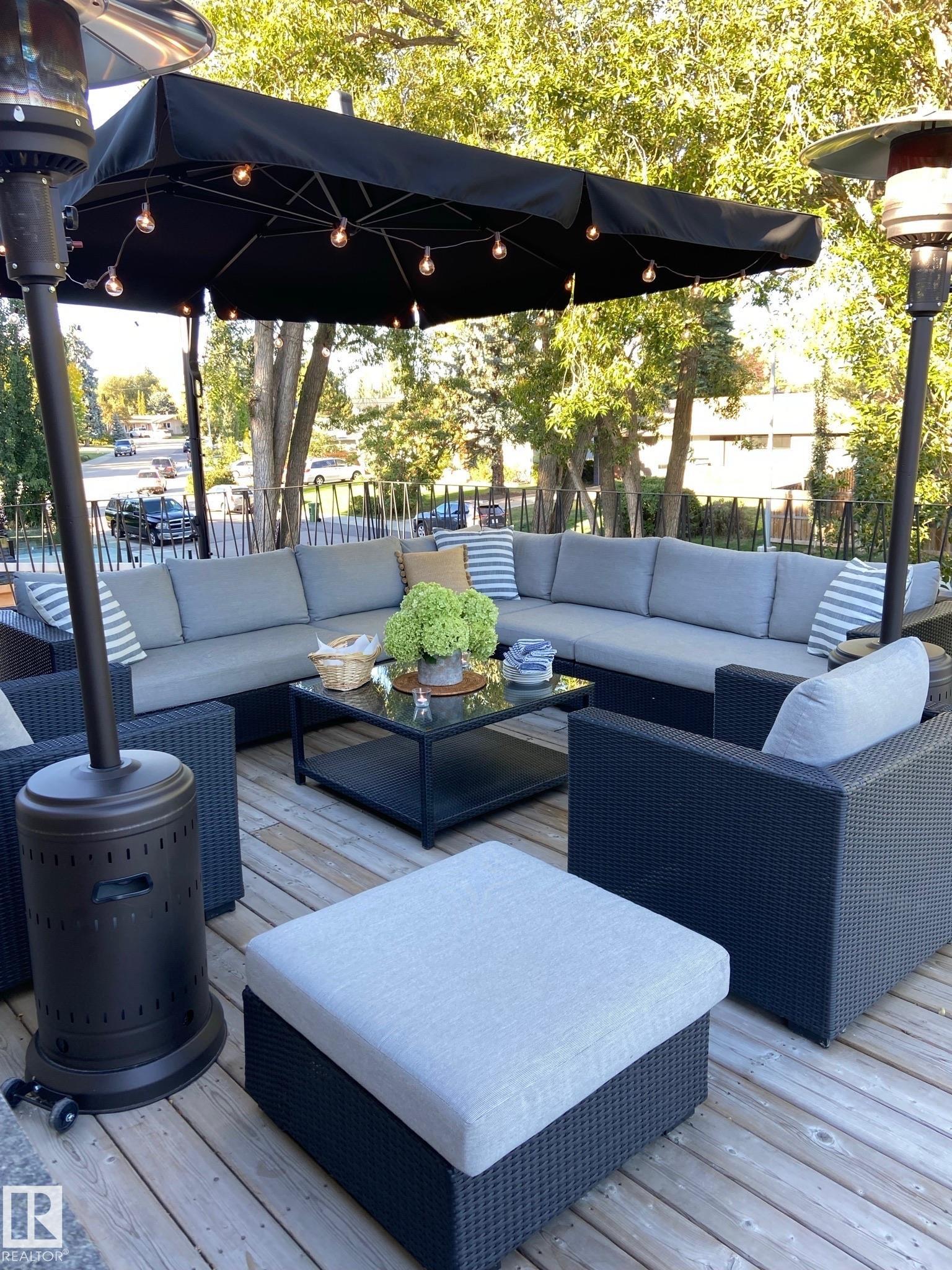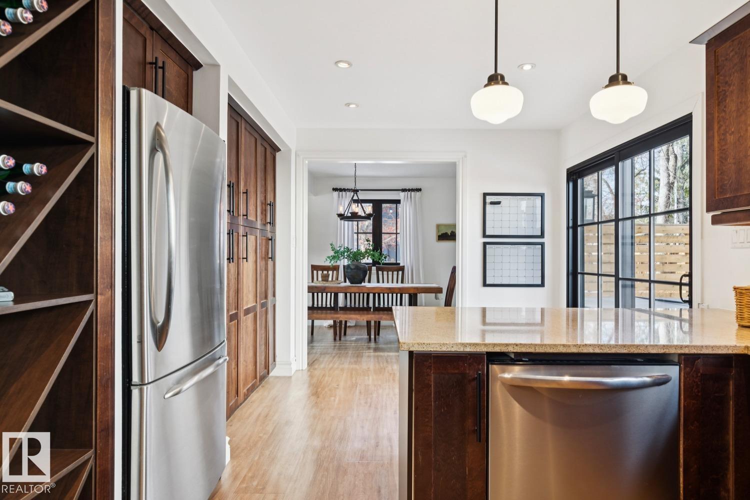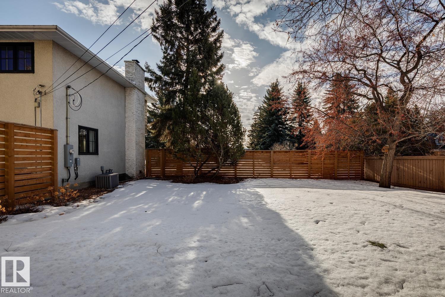 This is the one you?ve been waiting for! Welcome to this elegantly renovated two-storey, with a huge rooftop patio, in the highly desirable neighbourhood of Rio Terrace. Situated on a expertly manicured 11,290 SF lot, and across the street from the North Saskatchewan River Valley, this 4-bedroom home offers exceptional space and function for modern family living. The main floor is spacious and bright, featuring a magazine worthy living room with stone-facing fireplace and massive south facing windows. Kitchen was designed with the chef in mind, and adjacent dining room is the spot to host all your dinner parties. Down the hall you'll find a large office/den with access to the backyard & side gate - perfect for a home based business! Upstairs you?ll find three generous bedrooms including a stunning primary retreat with a massive walk-in closet & 3-piece ensuite, plus a full main bath. The basement is fully finished with large rec/family room, half-bath and 4th bedroom! Double attached garage, A/C & more!