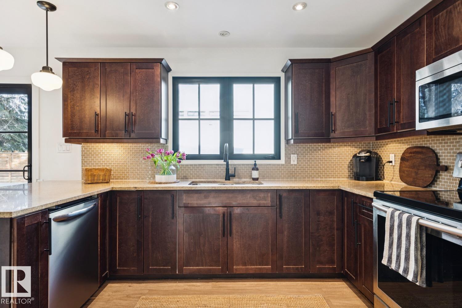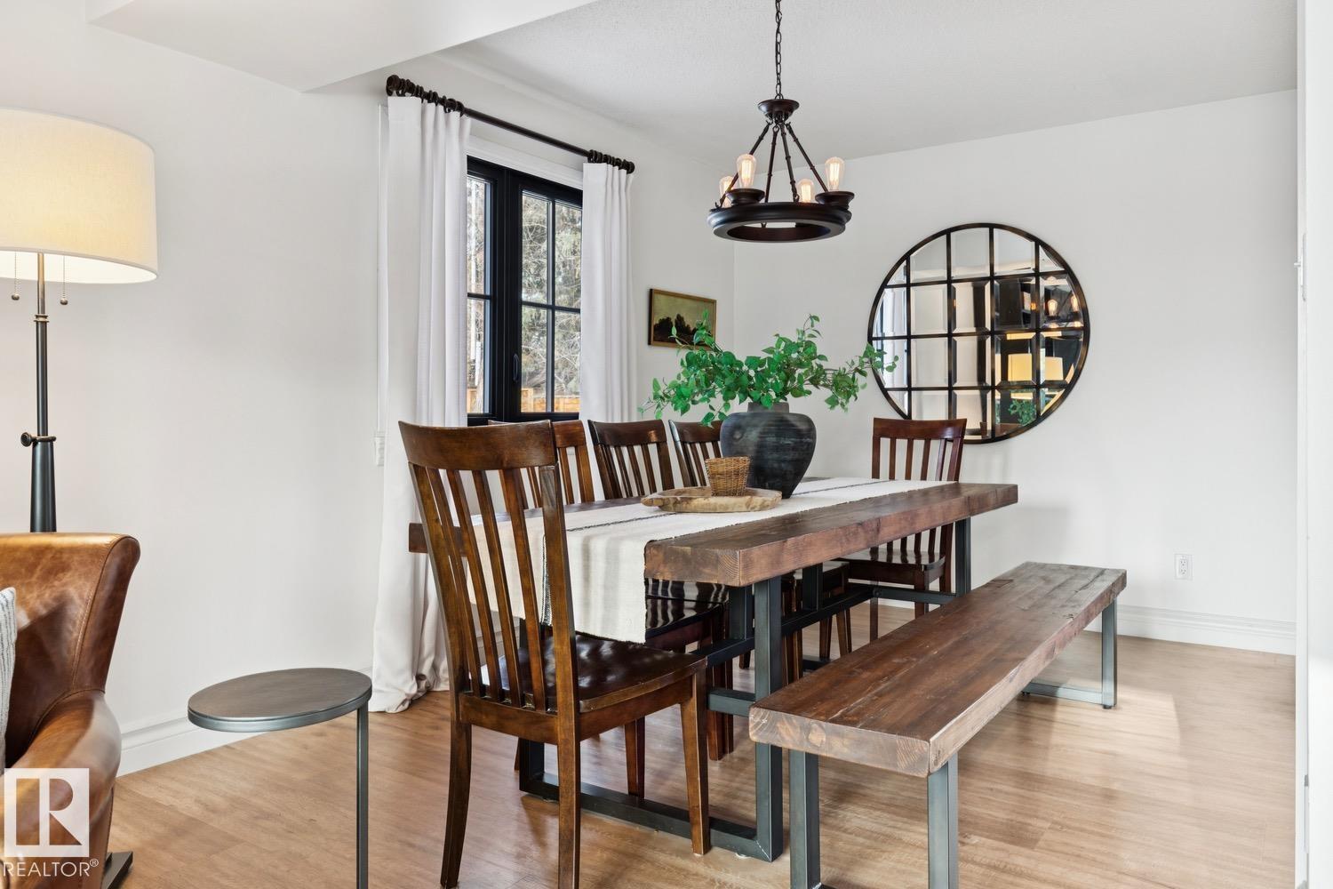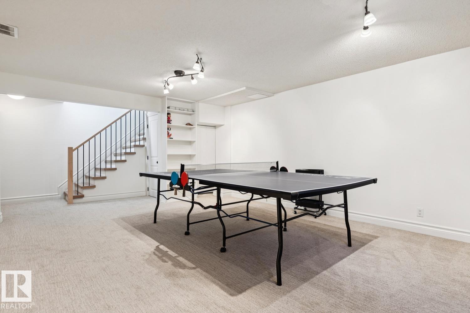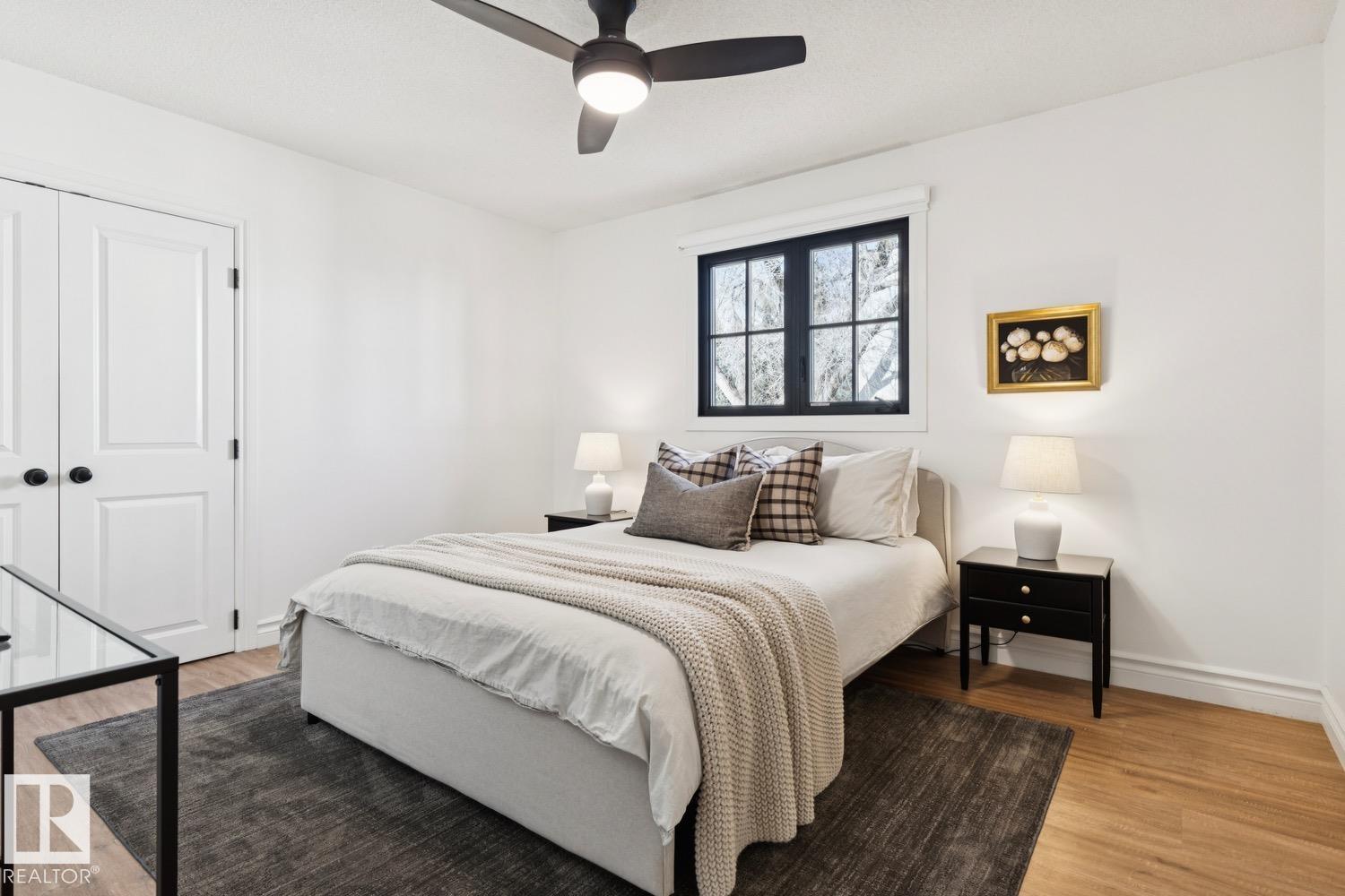 This is the one you?ve been waiting for! Welcome to this elegantly renovated two-storey, with a huge rooftop patio, in the highly desirable neighbourhood of Rio Terrace. Situated on a expertly manicured 11,290 SF lot, and across the street from the North Saskatchewan River Valley, this 4-bedroom home offers exceptional space and function for modern family living. The main floor is spacious and bright, featuring a magazine worthy living room with stone-facing fireplace and massive south facing windows. Kitchen was designed with the chef in mind, and adjacent dining room is the spot to host all your dinner parties. Down the hall you'll find a large office/den with access to the backyard & side gate - perfect for a home based business! Upstairs you?ll find three generous bedrooms including a stunning primary retreat with a massive walk-in closet & 3-piece ensuite, plus a full main bath. The basement is fully finished with large rec/family room, half-bath and 4th bedroom! Double attached garage, A/C & more!
