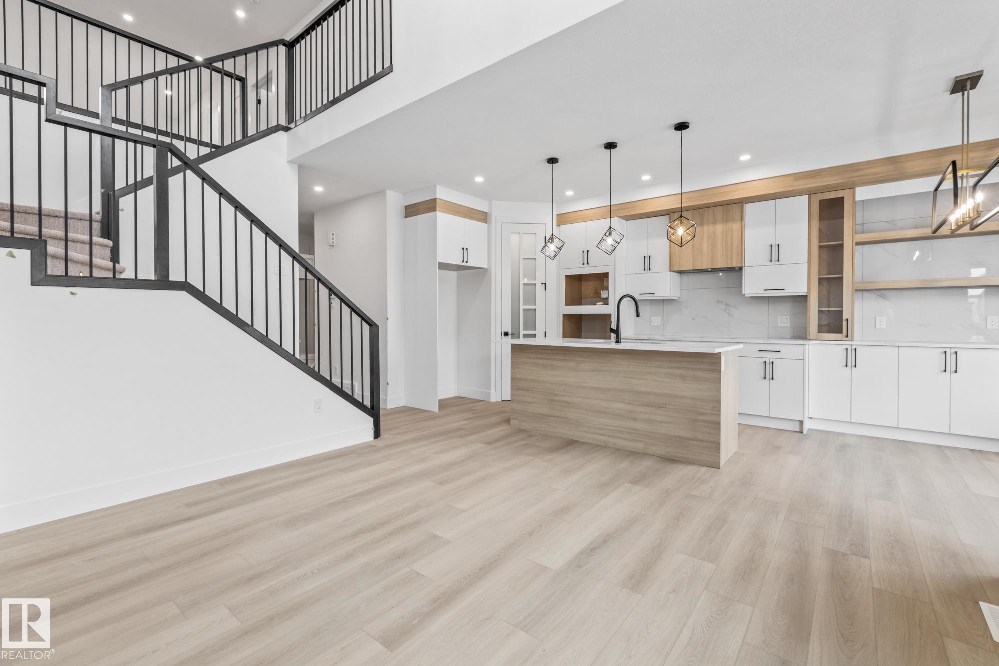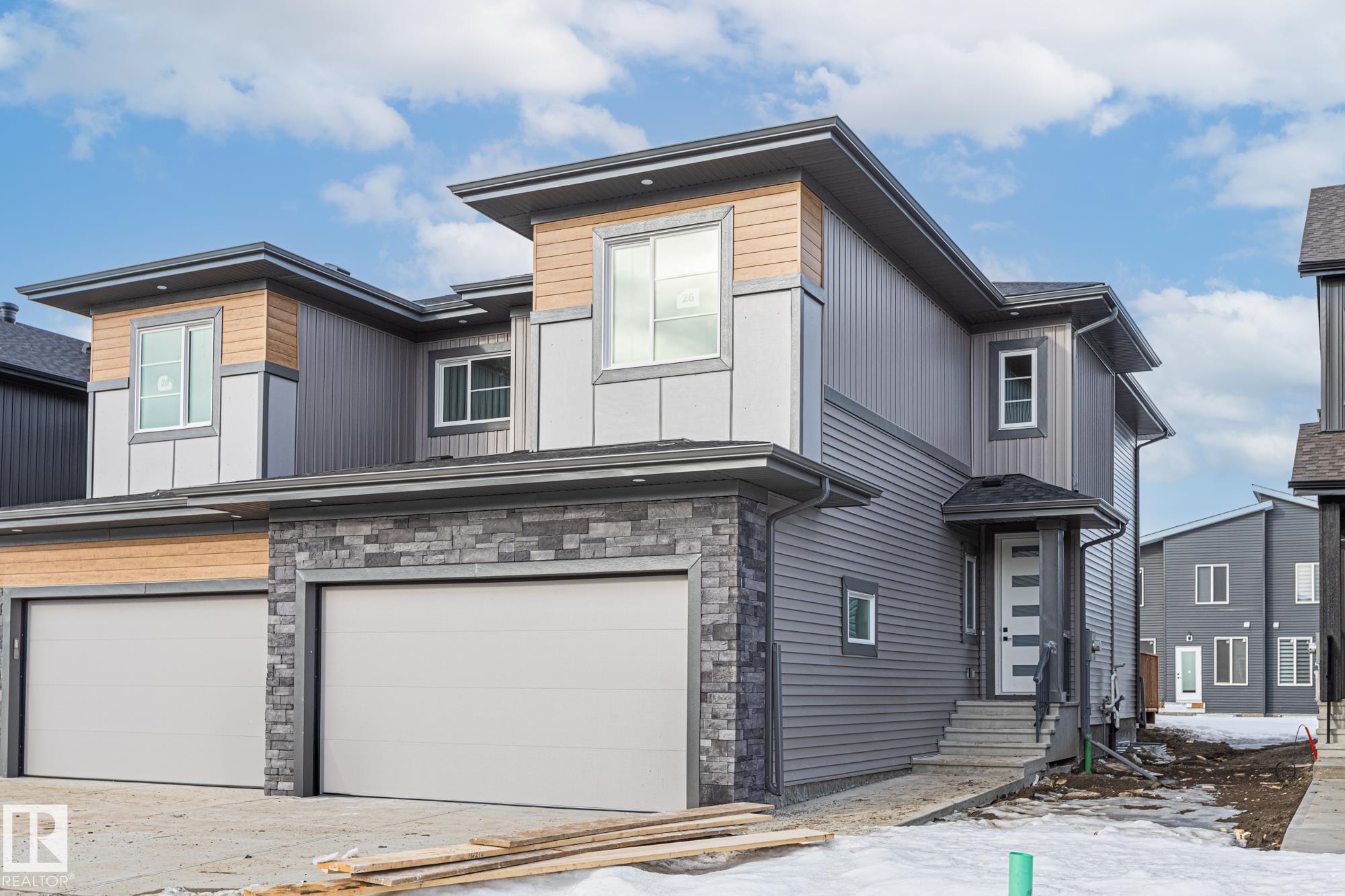 Designed for modern living, this beautiful duplex showcases a well-planned layout ideal for families or investors alike. Upon entry, the foyer offers a front closet and leads down the hall past a den and into a practical mudroom featuring built-in bench, hooks, a secondary closet, and access to the double attached garage. A conveniently located 3-piece bathroom sits just off the main living space. The open-concept kitchen is the centerpiece of the home, boasting abundant cabinetry and counter space, a center island, and a walk-in pantry, all overlooking the bright dining area and spacious living room filled with natural light. The upper level hosts three bedrooms, including a generous primary suite with a spa-like 5-piece ensuite, an additional 4-piece bathroom, a large bonus room, and an oversized laundry room complete with a sink. Additional features include under-cabinet lighting in all bathrooms and a spacious back patio. Close to many amenities including school and shopping centers!