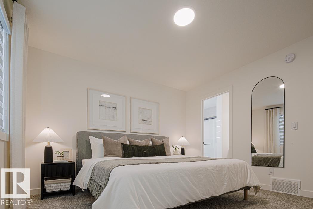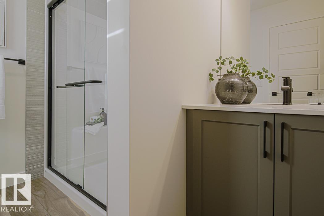 Discover the perfect blend of luxury and versatility in this stunning Sterling Homes residence in Edgemont Place. This home features a rare main-floor bedroom and full bathroom, offering exceptional flexibility for guests or a home office. Triple-pane windows flood the open-concept space with natural light, highlighting durable luxury vinyl plank flooring. The chef's kitchen is designed for function with gleaming quartz countertops, a central island, a large corner pantry, and a bright sink window. The upper level provides a versatile bonus room, a primary retreat with a walk-in closet and private ensuite, plus two spacious bedrooms and convenient laundry. Designed with future potential in mind, this property includes a separate side entrance and basement rough-ins, ideal for a suite. Complete with a double powered concrete pad and located near scenic trails and schools, this home offers modern comfort and practical design in a prime west-end location. Welcome to your new home.