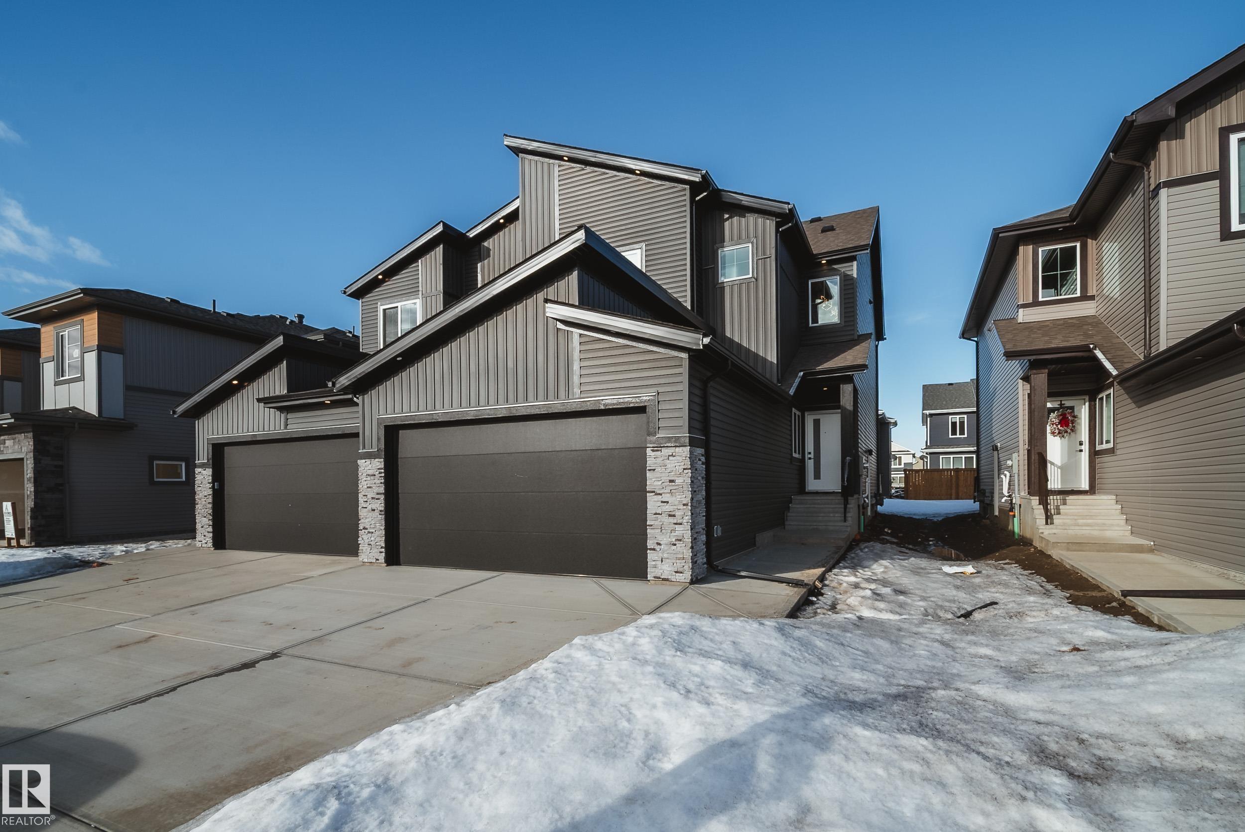 This beautifully designed BRAND NEW half duplex greets you w/a GRAND open-to-above entrance & a large front foyer that can easily accommodate an open concept office. Enjoy UPGRADES like WINDOW COVERINGS, 9' ceilings, 8' doors, LVP flooring, maple railing & Ecobee wifi thermostat. Kitchen impresses w/EXTENDED walk-thru pantry, QUARTZ countertops, UPGRADED cabinetry, tile backsplash, & FULL WHIRLPOOL APPLIANCE PACKAGE incl. GAS cooktop & built in wall oven. The bright open concept living & dining area, anchored by a cozy electric fireplace & feature wall, creates the perfect space to unwind. Upstairs, find 3 generous bedrms & 2 bathrms w/TILE SURROUND showers incld. primary retreat w/ WIC & 3pc ensuite, plus laundry w/SINK & built in cabinetry & SPACIOUS bonus rm. SIDE ENTRY to the unfinished basement awaits your personal touch. OVERSIZED DOUBLE attached garage with extended driveway provides extra parking. Step outside to enjoy your yard and deck with glass privacy panels. Minutes to all major amenities!