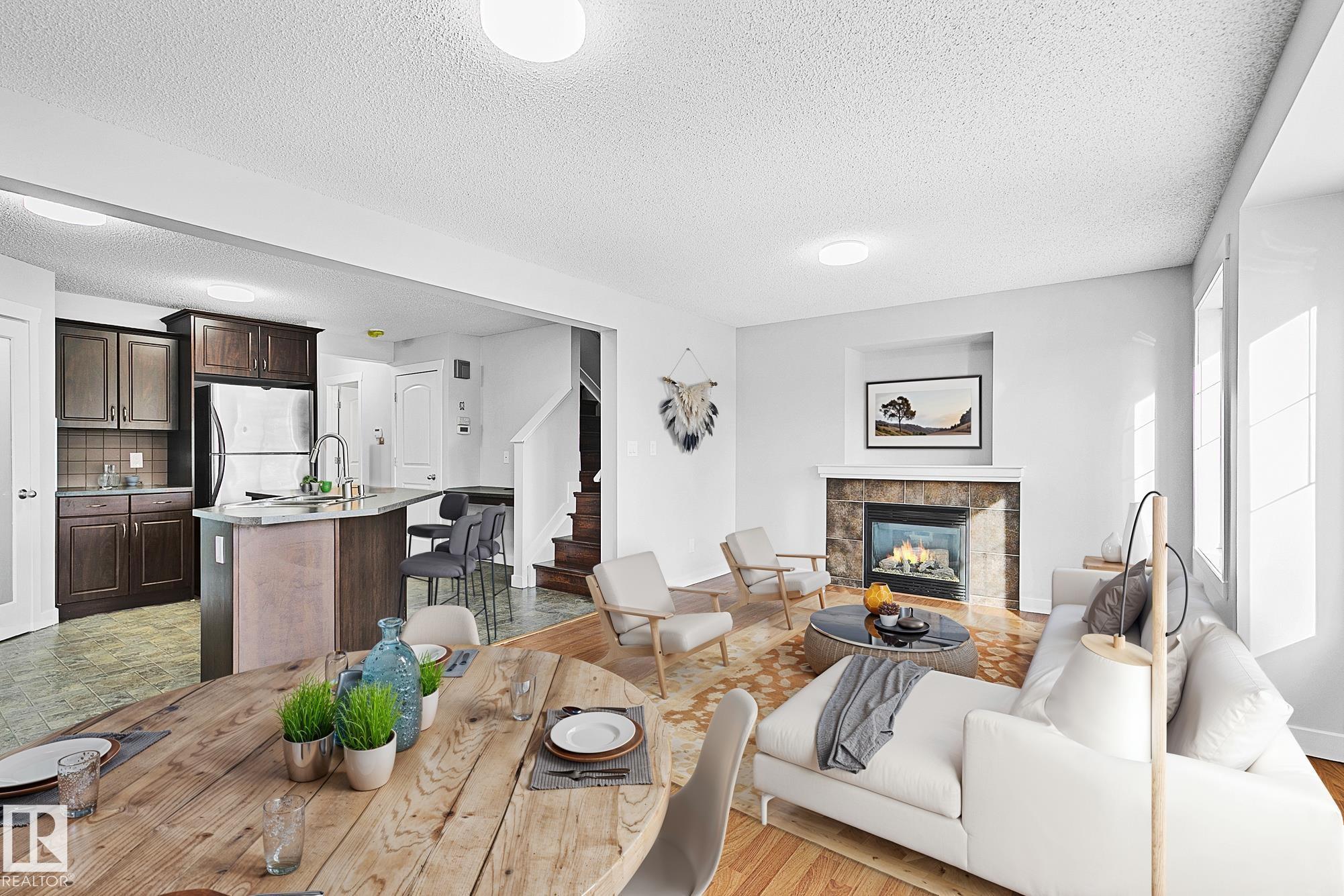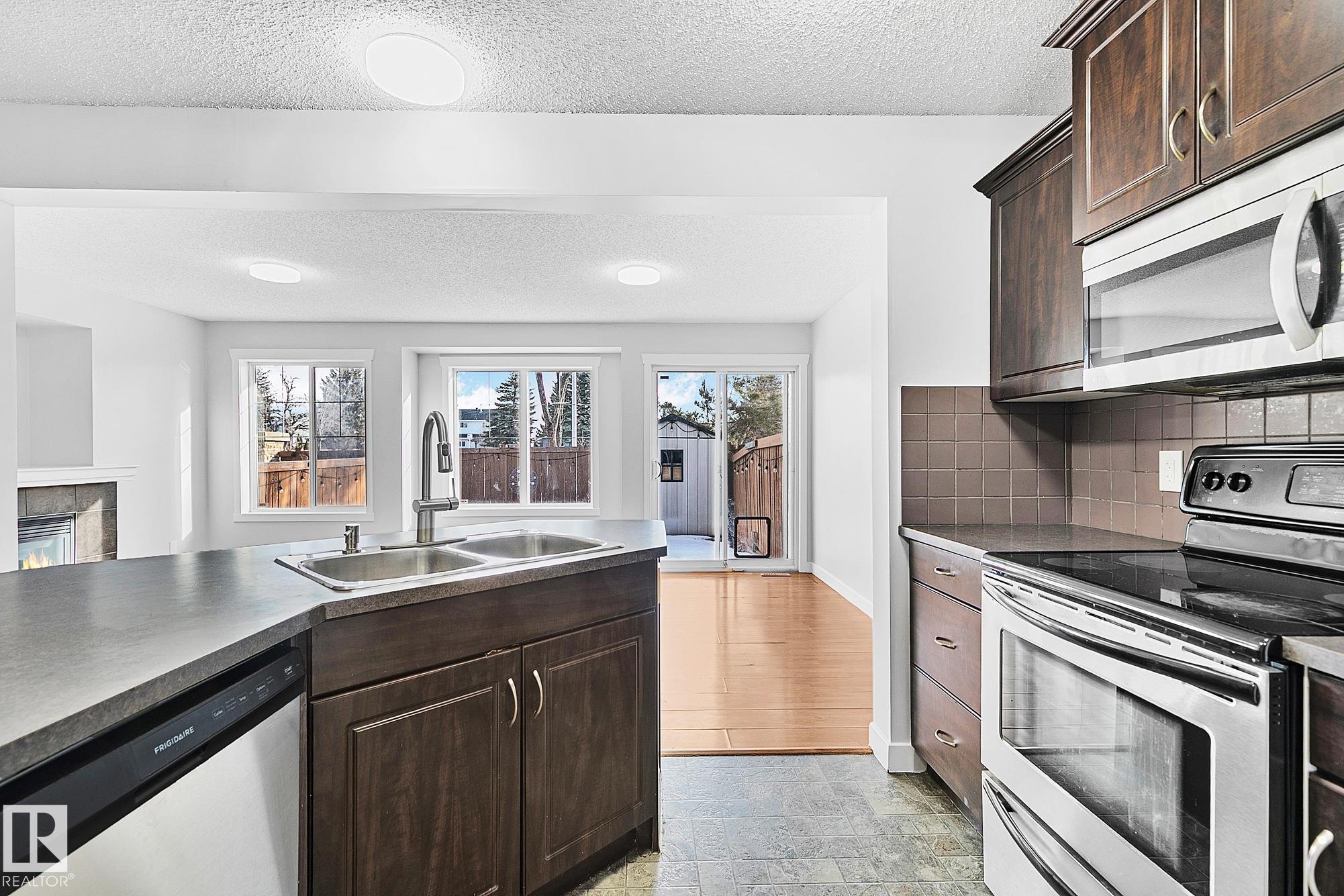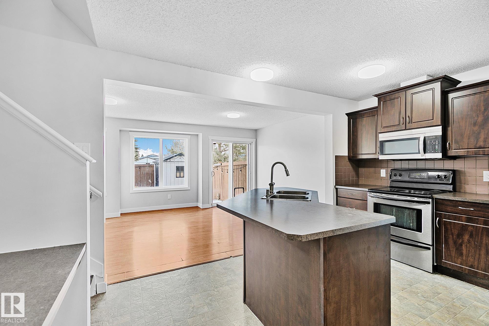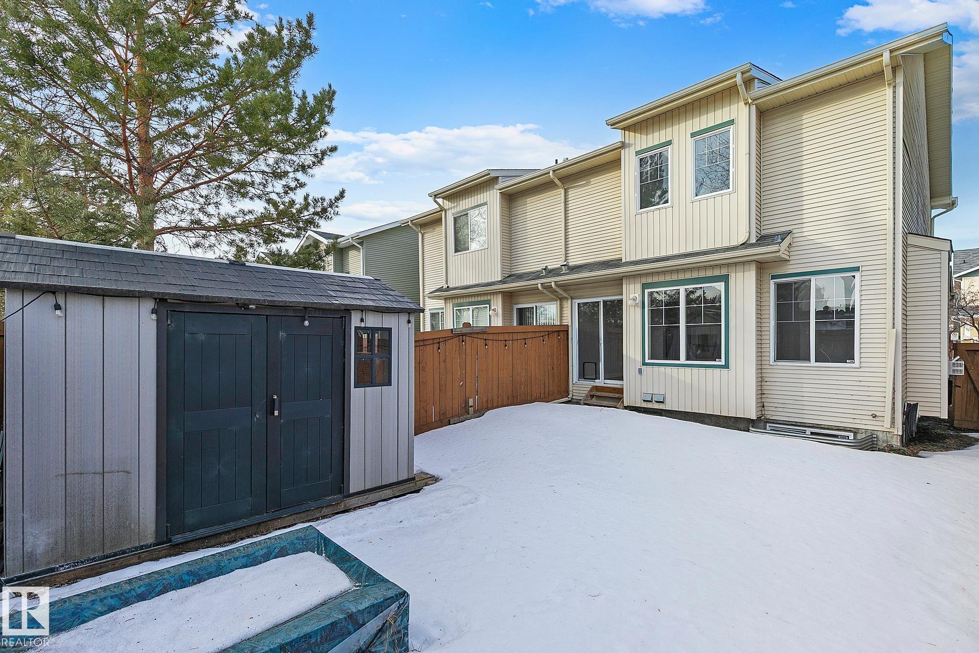 A First-Time Buyer?s Dream! This beautifully maintained 3-bedroom, 1.5-bath half duplex has been freshly painted w/ updated lighting throughout & features a convenient single attached garage. The spacious entry offers a built-in bench & generous coat closet. The kitchen showcases rich dark cabinetry, stainless steel appliances, tile backsplash, pantry, & central island w/ eating bar ideal for everyday living and entertaining. The open-concept living & dining area is filled w/natural light from large rear windows & sliding patio door. A cozy gas fireplace adds warmth & charm. A stylish 2-piece bath completes the main floor. Upstairs offers 3 spacious bedrms, including a bright primary with an impressive closet, plus a main bath with double sinks, tile surround tub/shower & ample storage.The partially finished basement includes bathroom rough-ins and room to grow. Conveniently located close to shopping, walking trails, schools, and recreation centres, everything you need is just minutes away!