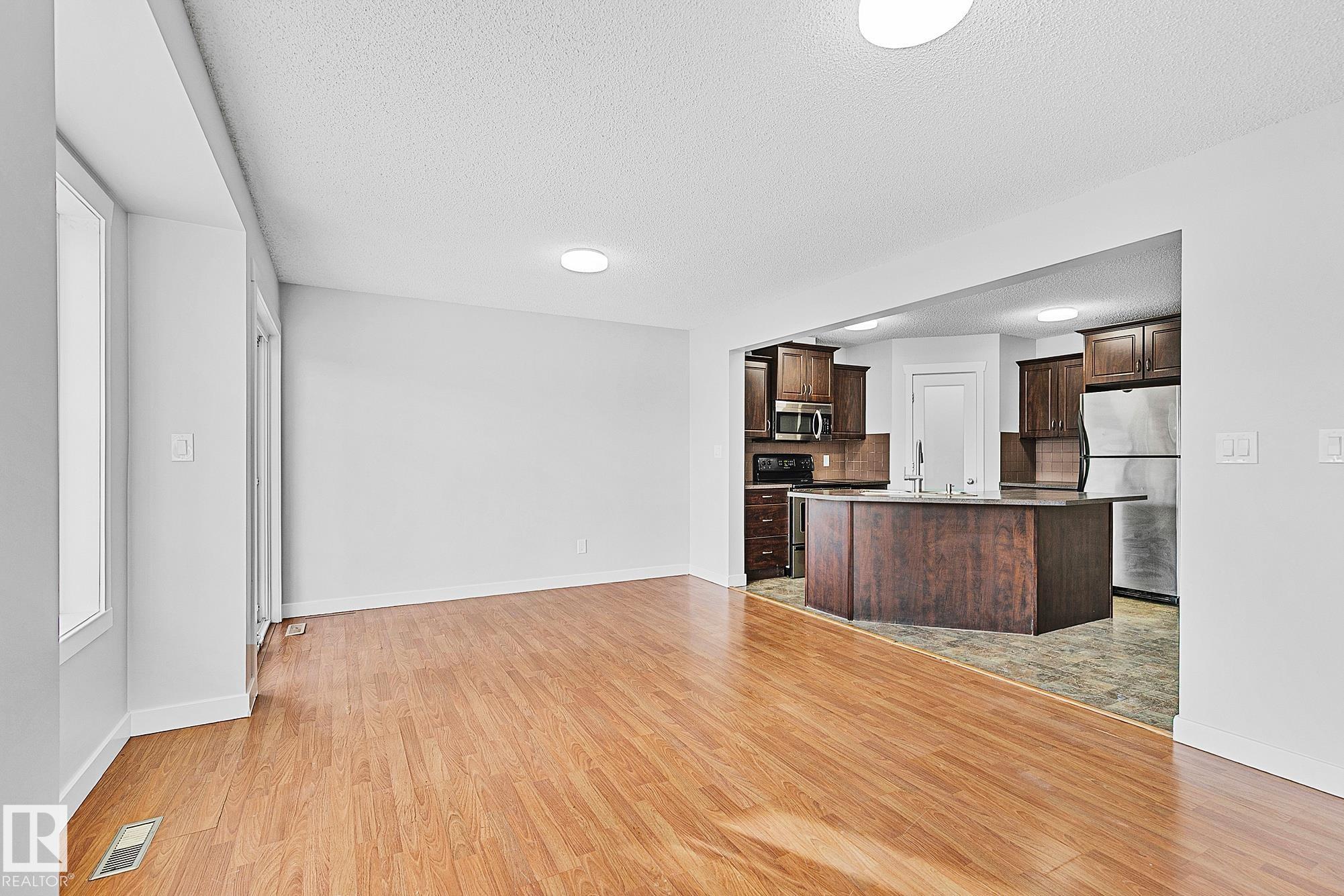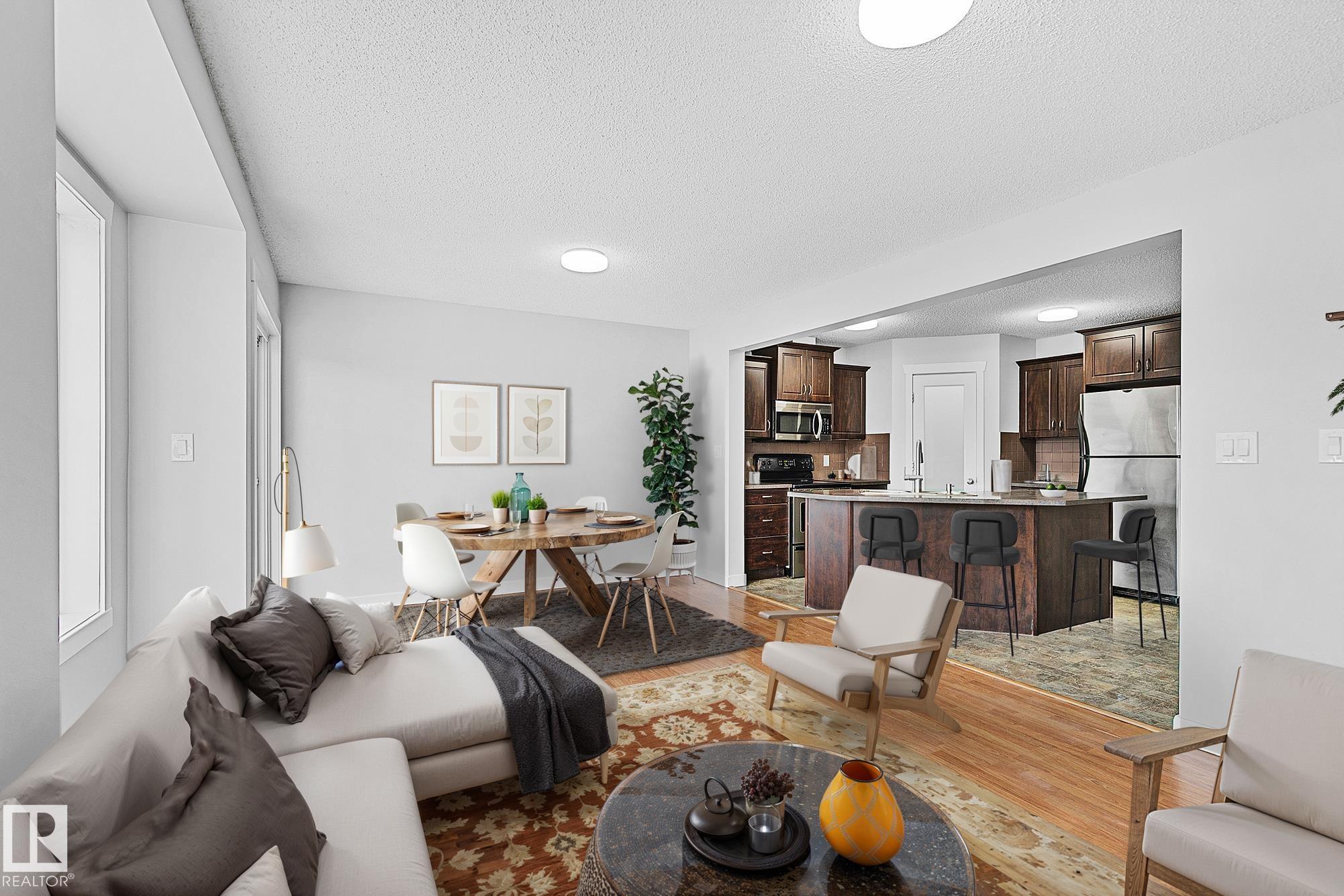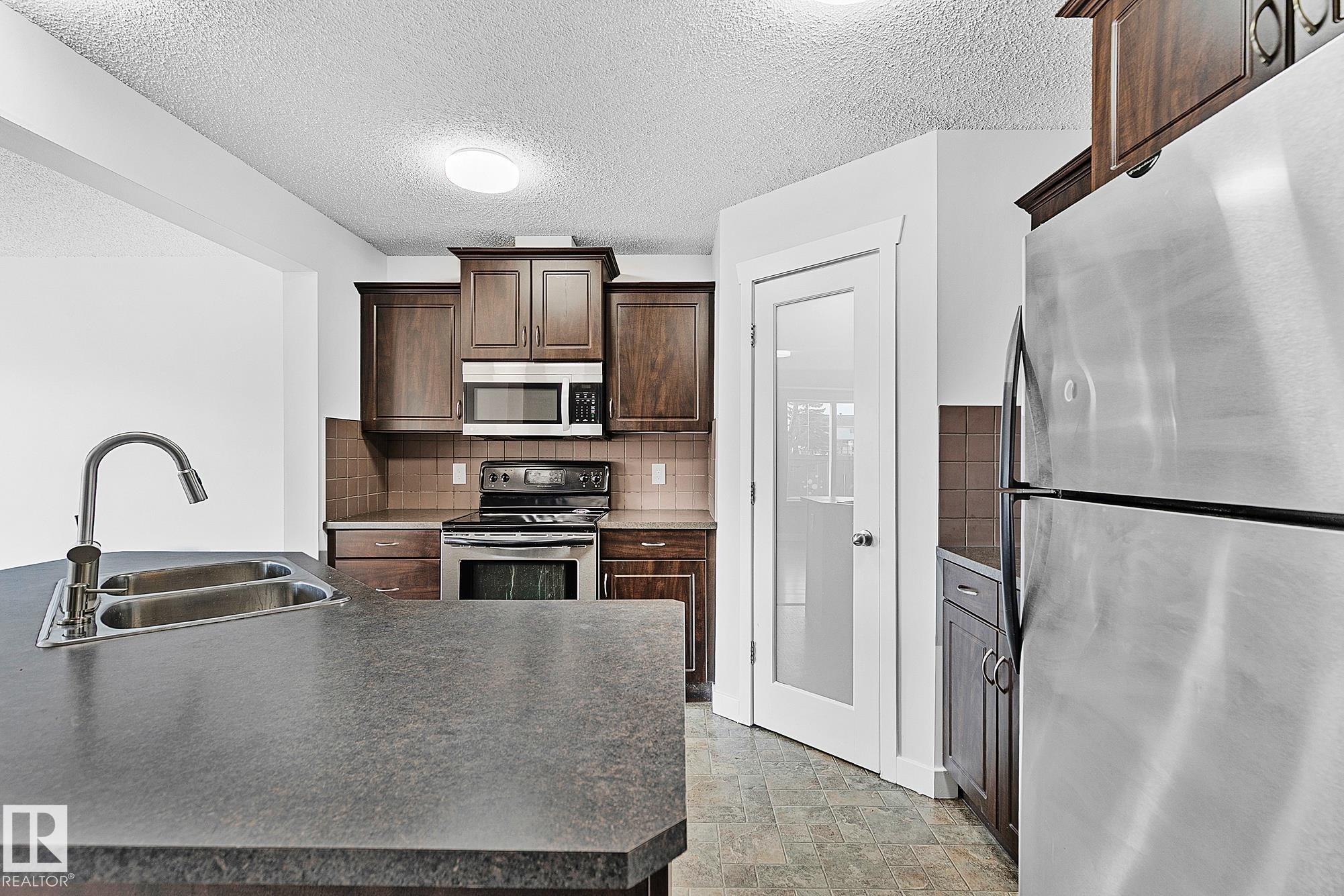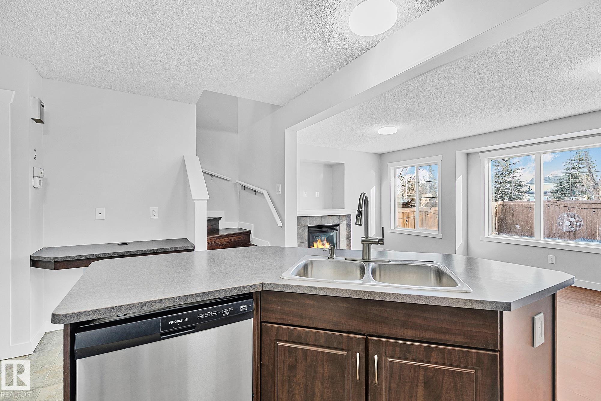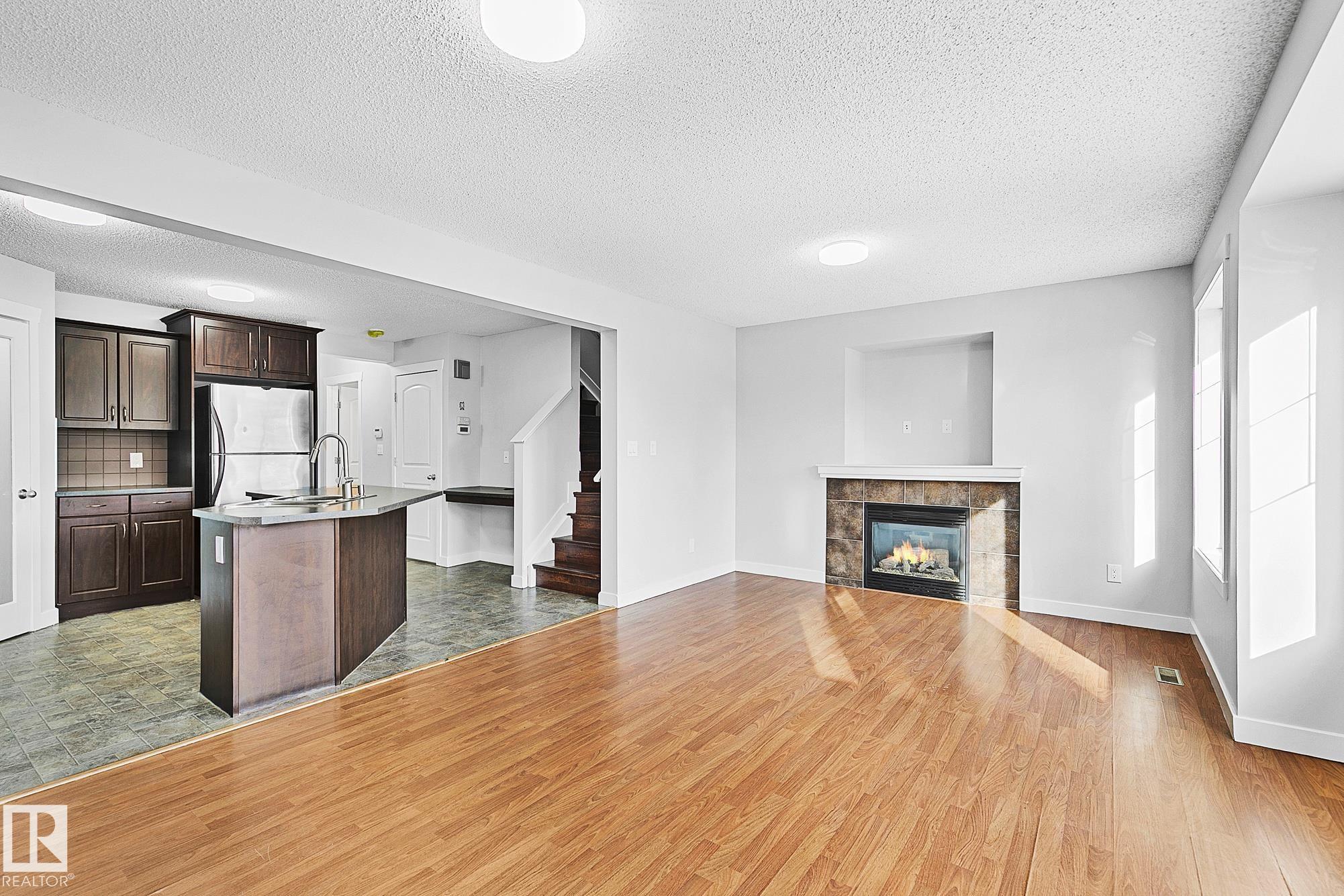 A First-Time Buyer?s Dream! This beautifully maintained 3-bedroom, 1.5-bath half duplex has been freshly painted w/ updated lighting throughout & features a convenient single attached garage. The spacious entry offers a built-in bench & generous coat closet. The kitchen showcases rich dark cabinetry, stainless steel appliances, tile backsplash, pantry, & central island w/ eating bar ideal for everyday living and entertaining. The open-concept living & dining area is filled w/natural light from large rear windows & sliding patio door. A cozy gas fireplace adds warmth & charm. A stylish 2-piece bath completes the main floor. Upstairs offers 3 spacious bedrms, including a bright primary with an impressive closet, plus a main bath with double sinks, tile surround tub/shower & ample storage.The partially finished basement includes bathroom rough-ins and room to grow. Conveniently located close to shopping, walking trails, schools, and recreation centres, everything you need is just minutes away!