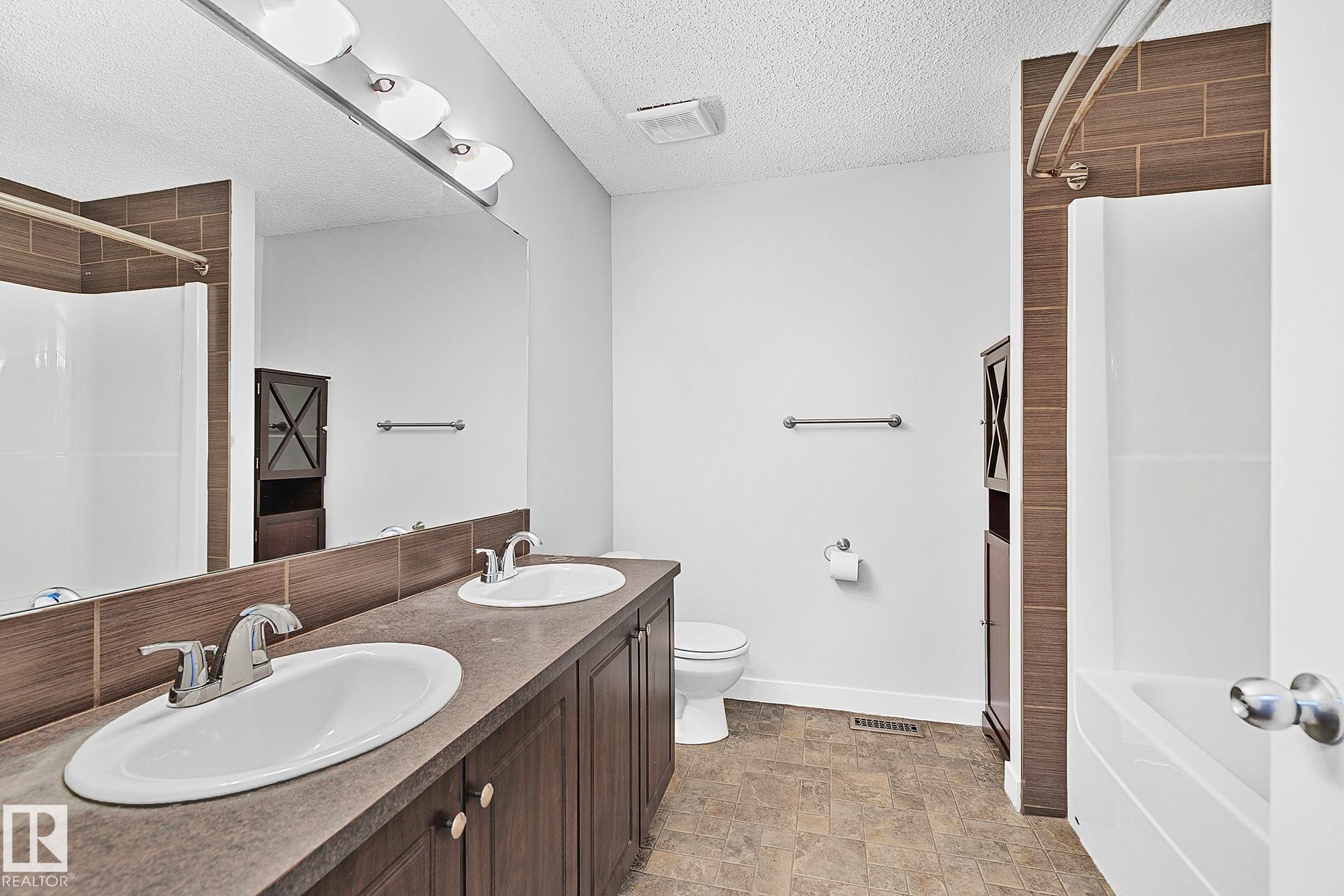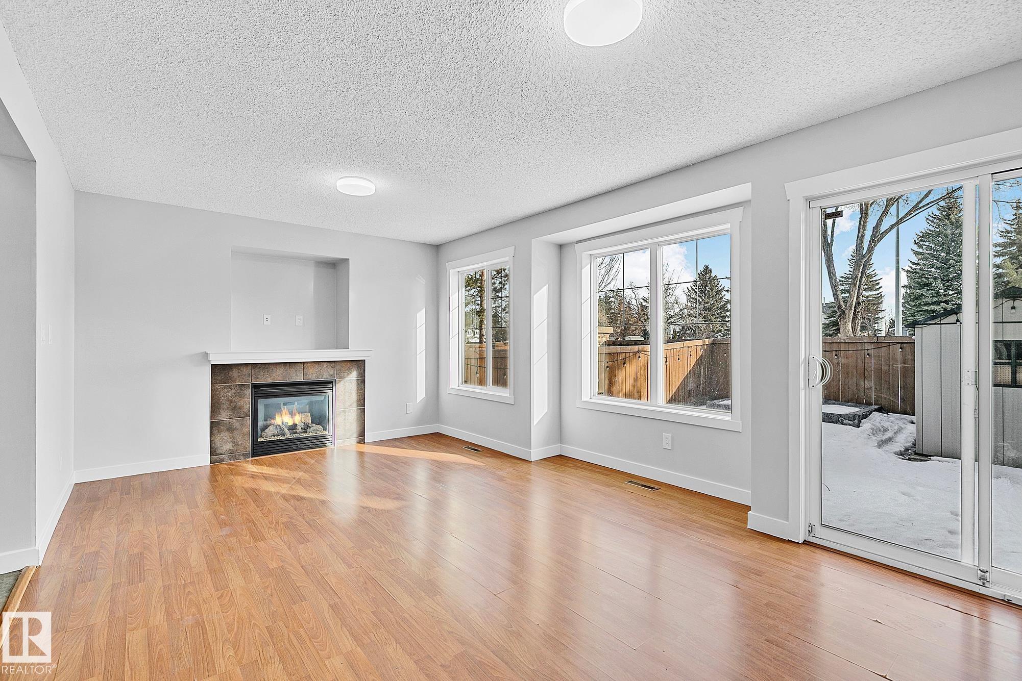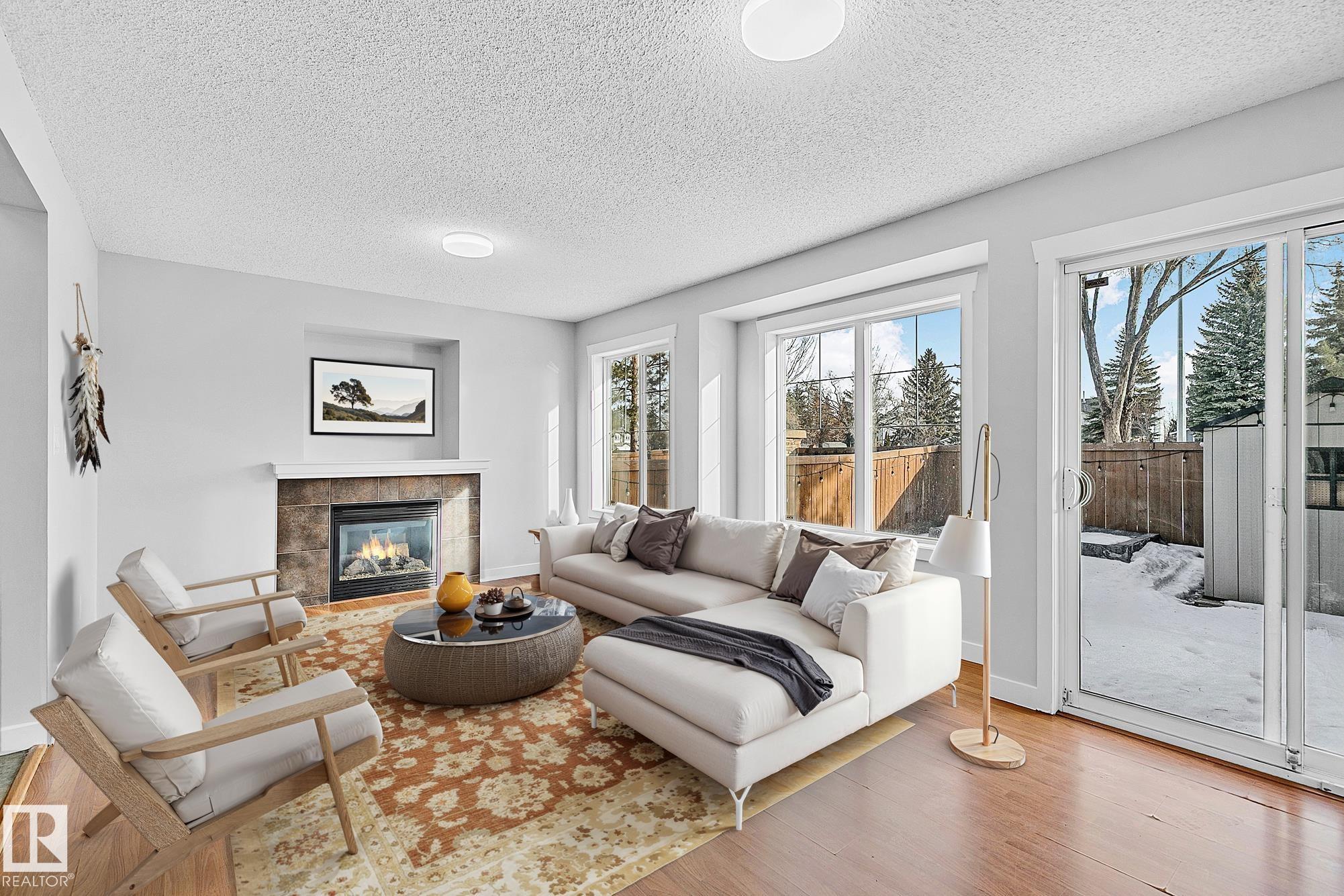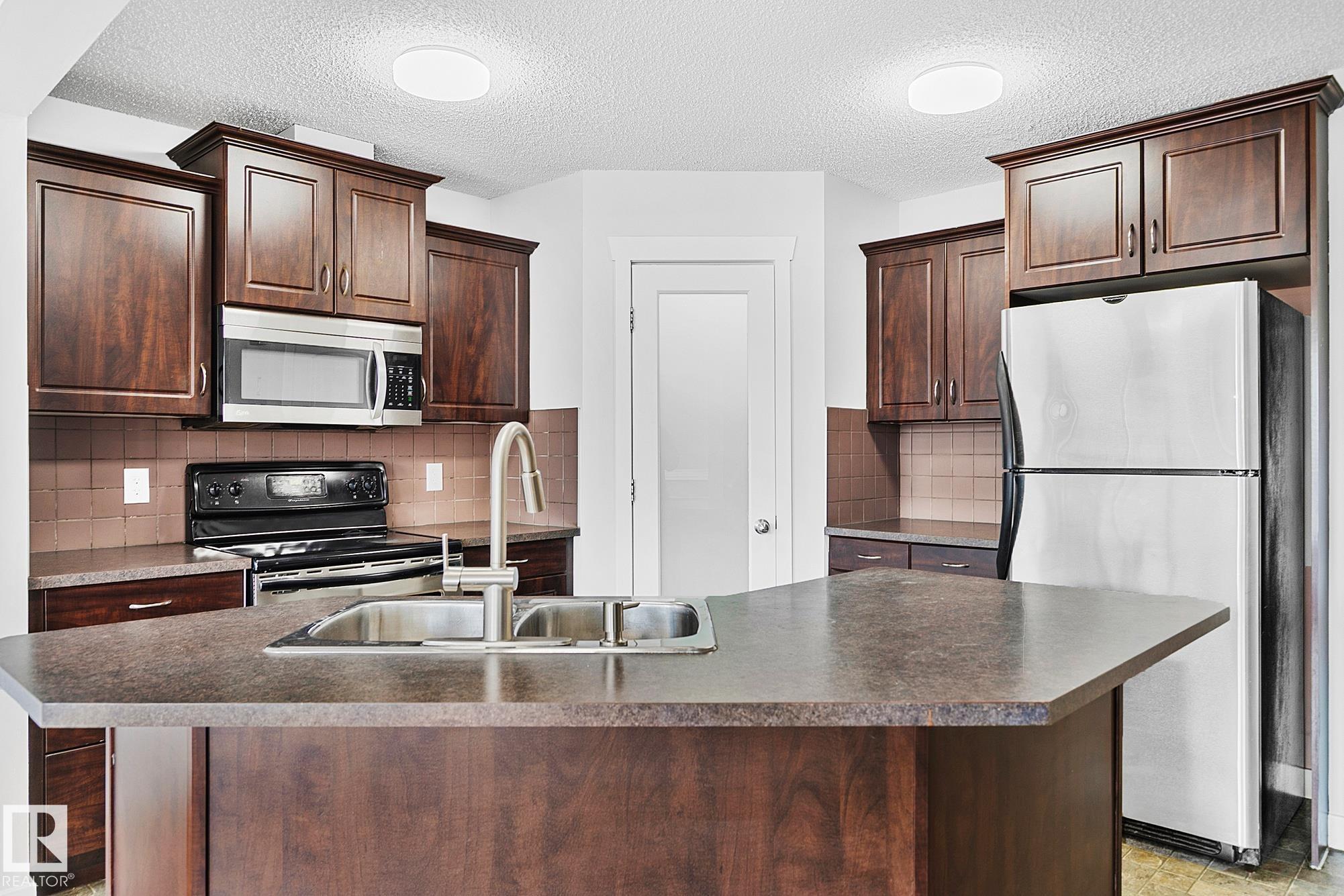 A First-Time Buyer?s Dream! This beautifully maintained 3-bedroom, 1.5-bath half duplex has been freshly painted w/ updated lighting throughout & features a convenient single attached garage. The spacious entry offers a built-in bench & generous coat closet. The kitchen showcases rich dark cabinetry, stainless steel appliances, tile backsplash, pantry, & central island w/ eating bar ideal for everyday living and entertaining. The open-concept living & dining area is filled w/natural light from large rear windows & sliding patio door. A cozy gas fireplace adds warmth & charm. A stylish 2-piece bath completes the main floor. Upstairs offers 3 spacious bedrms, including a bright primary with an impressive closet, plus a main bath with double sinks, tile surround tub/shower & ample storage.The partially finished basement includes bathroom rough-ins and room to grow. Conveniently located close to shopping, walking trails, schools, and recreation centres, everything you need is just minutes away!