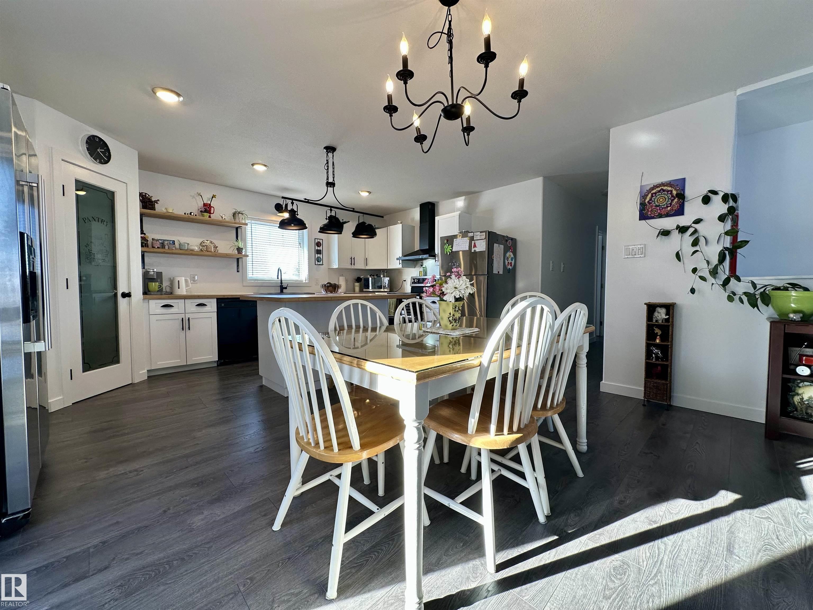 Fantastic Family Home in Fort Kent! Exceptional opportunity for buyers looking for a 6 bedroom home near Bonnyville <10 minutes, Cold Lake <20 minutes and just a few minutes from the Iron Horse Trail and trout pond. If you are looking for move-in-ready, this home has been very well maintained and features new flooring, door casings, trim and paint. Front deck was restained in 2025. HEATED double attached garage features 13' ceiling and two 10' tall overhead doors to fit that truck! Entry from garage & covered front deck has lots of room to kick off the boots inside. Side/back deck overlooks huge yard with RV gate to alley and view of peaceful surroundings. Open concept living area with island, tons of counter space and corner pantry in the kitchen. Primary bedroom has enormous ensuite and walk in closet. The 5 secondary bedrooms are also spacious (3 are in basement). 3 bathrooms. Main floor laundry. Infloor heating in basement. Fort Kent offers a peaceful pace and this property provides the total package!