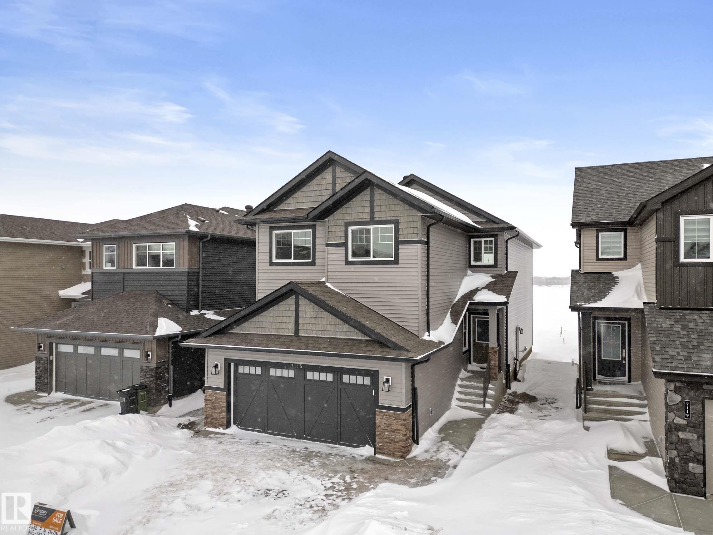 Welcome to The Kepler, a beautifully crafted Craftsman-style home by Coventry Homes! Nestled in Crystallina Nera, this property perfectly balances functionality with show-stopping details. The main floor features 9' ceilings and a dedicated home office. The great room boasts a stunning open-to-below ceiling, flooding the space with natural light. Entertaining is a breeze with the adjoining dining area and a chef's kitchen featuring an island with flush eating bar and a walk-through pantry. Upstairs features a versatile loft space perfectly overlooking the great room. Retreat to the private primary suite, featuring a walk-in closet and a luxurious 5-piece ensuite. Two additional good-sized bedrooms, a full bathroom, and a dedicated laundry room complete the upper level. Designed with future potential in mind, this home includes a separate side entrance, 9' foundation height, 150-amp electrical service, and a 3-piece plumbing rough-in making a future basement suite a seamless transition.