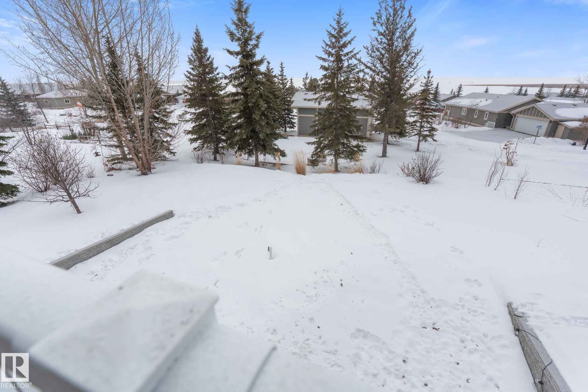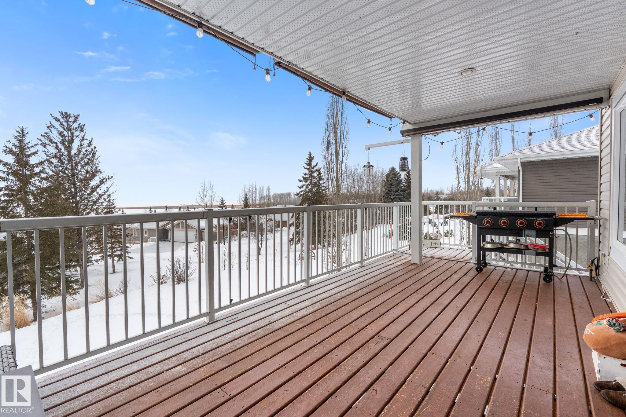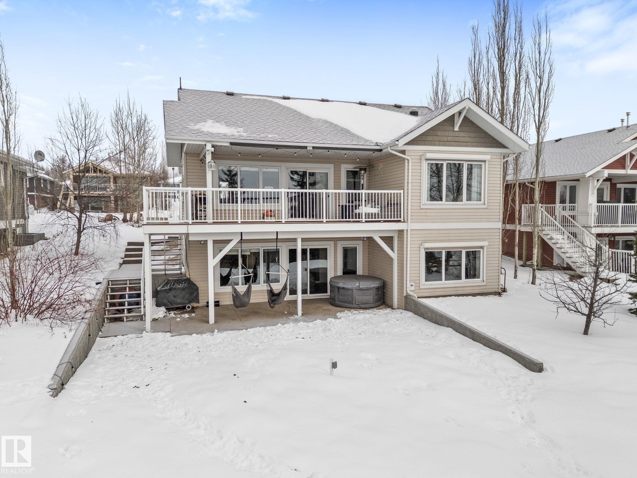 Welcome to year round lake living in the prestigious community of the Estates at Water's Edge! This gorgeous 3 bdrm + den, 2.5 bath NO CARPET home offers the convenience of a main floor primary bedroom with a bright walk out basement. The large kitchen features granite countertops, SS appliances, gas range, new fridge and an RO system at the tap. The triple pane windows look out over your SOUTH FACING covered deck with gas line for BBQ to incredible LAKE views beyond your private backyard. The large primary bedroom overlooking the lake also features a 5-pc ensuite, water closet and FIAT sauna shower plus a massive walk in closet. NEW 2026 washer & dryer, hot water on demand, AC and central vac. Oversized doubled detached garage with extra long bay has attic storage, 2024 heater and floor drain. You will access all the community amenities including salt water pool, fitness facilities, playground, fishing dock, community garden and more. GOLF CART INCLUDED! This home is ready for you to move in and enjoy!