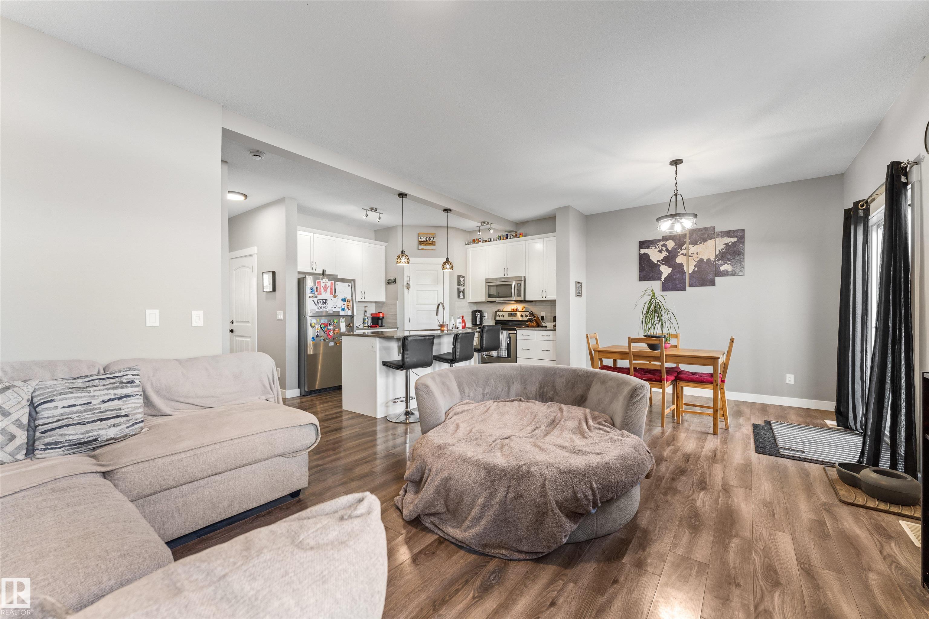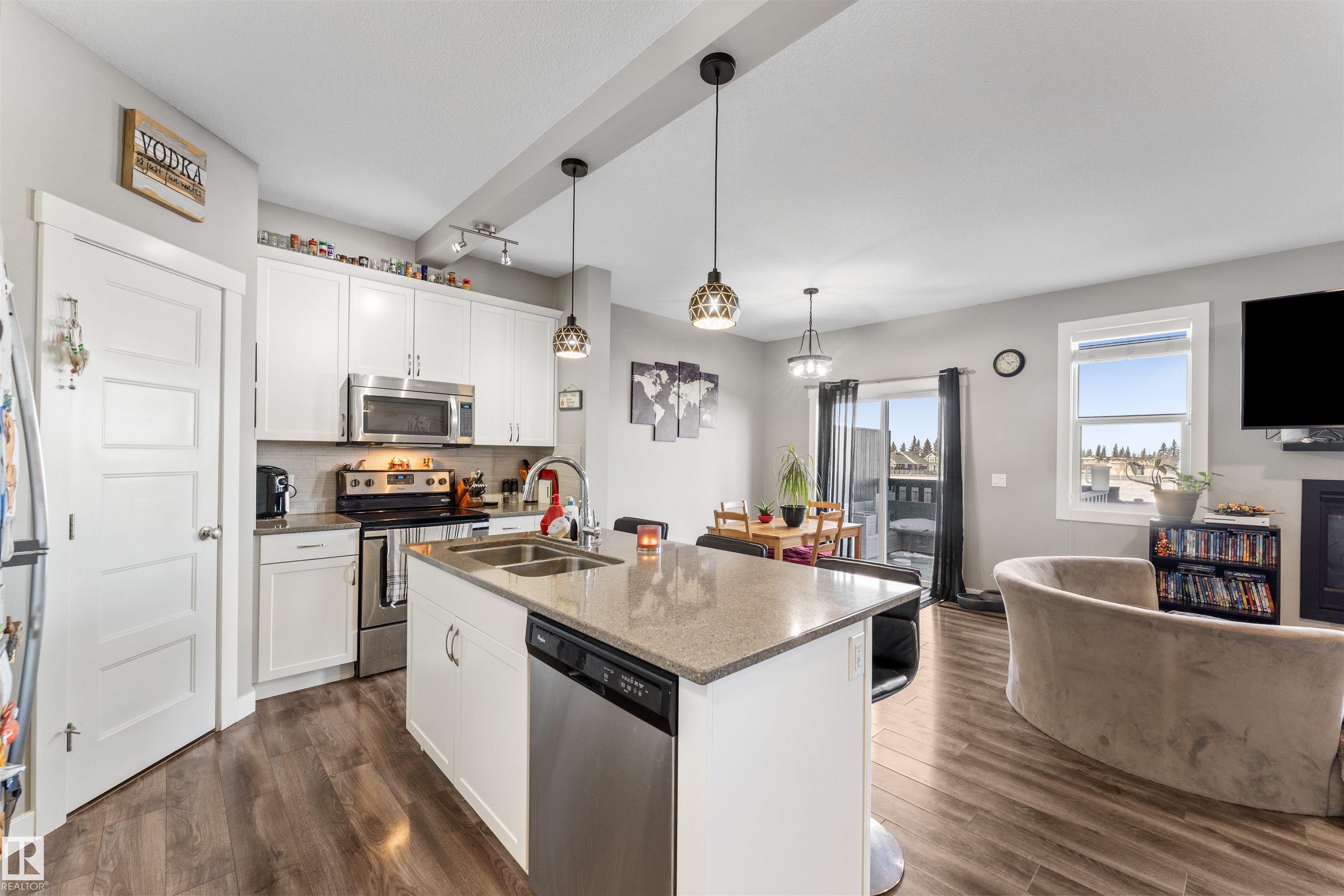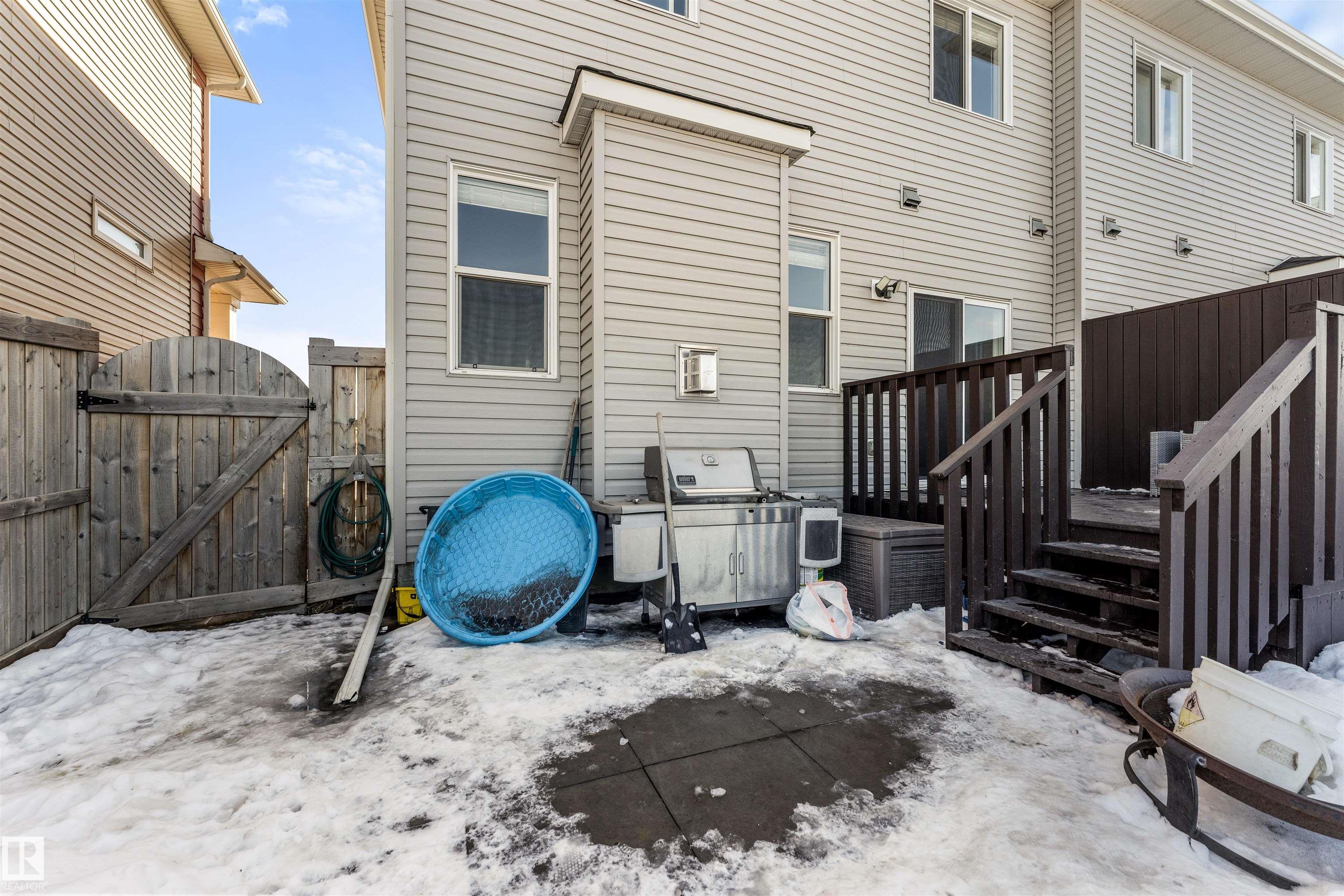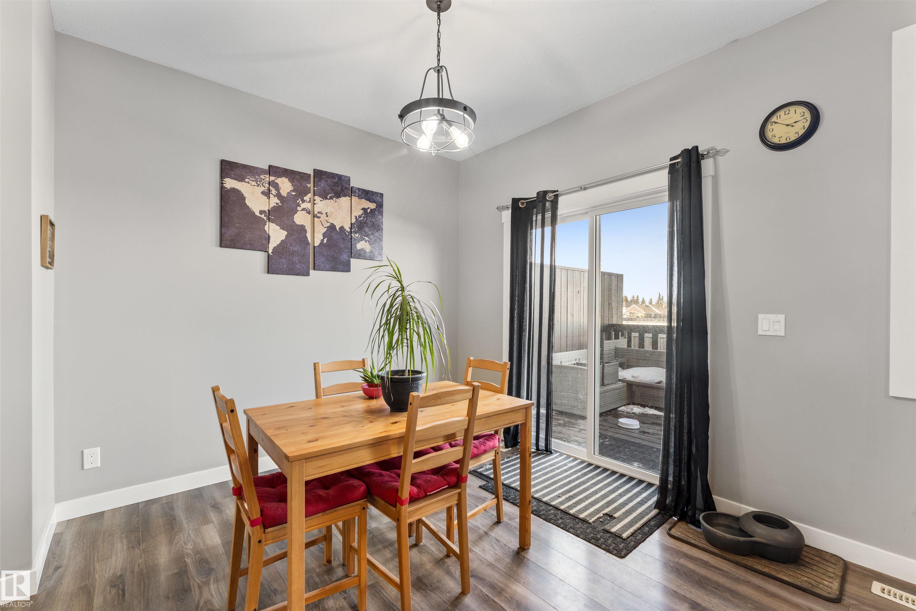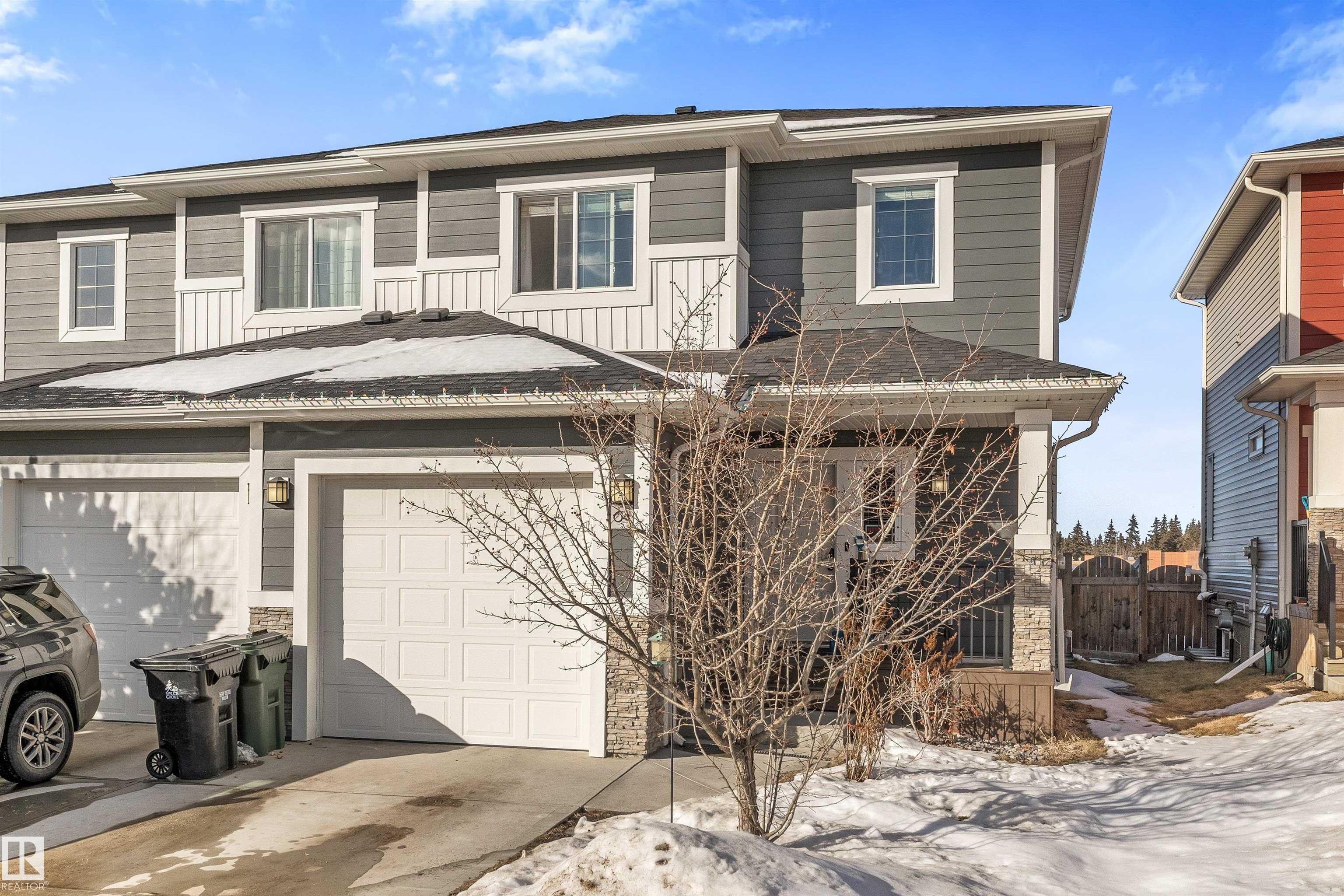 Modern & meticulously crafted for an aesthetic atmosphere, this 2014 duplex offering 2,002 sq ft of functional living space, is selectively situated in the desirable community of Hilldowns, where fine dining, shopping and easy access to the Yellowhead, are but a mere minute away. An open concept main floor embraces a contemporary colour palette as laminate flooring extends past the 2pc powder room, beyond the kitchen, so stylishly outfitted with stainless steel appliances, granite counters & island including bar-style seating, before accenting the glorious sun-fed corner of the dining room. The living room presents a gas fireplace and vistas of your sanctuary of a yard. Private quarters upstairs unite 3 bedrooms serviced by a 4pc main bath, including the primary retreat, crowned with a huge walk-in closet, & has a 3pc ensuite. The basement offers unfinished space for what you need most, and roughed in plumbing for 4th bathroom. Single garage & fenced yard backing an open space make this home a must have!