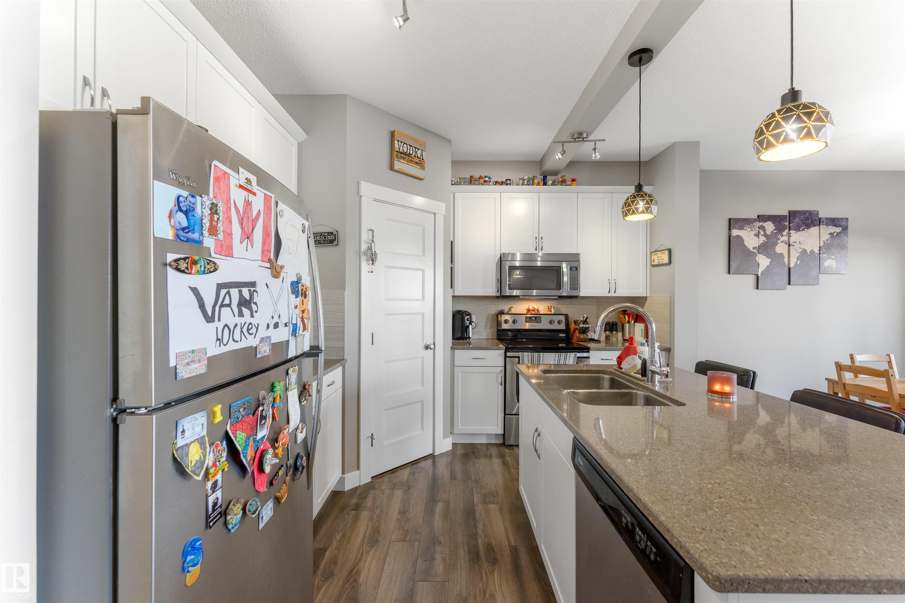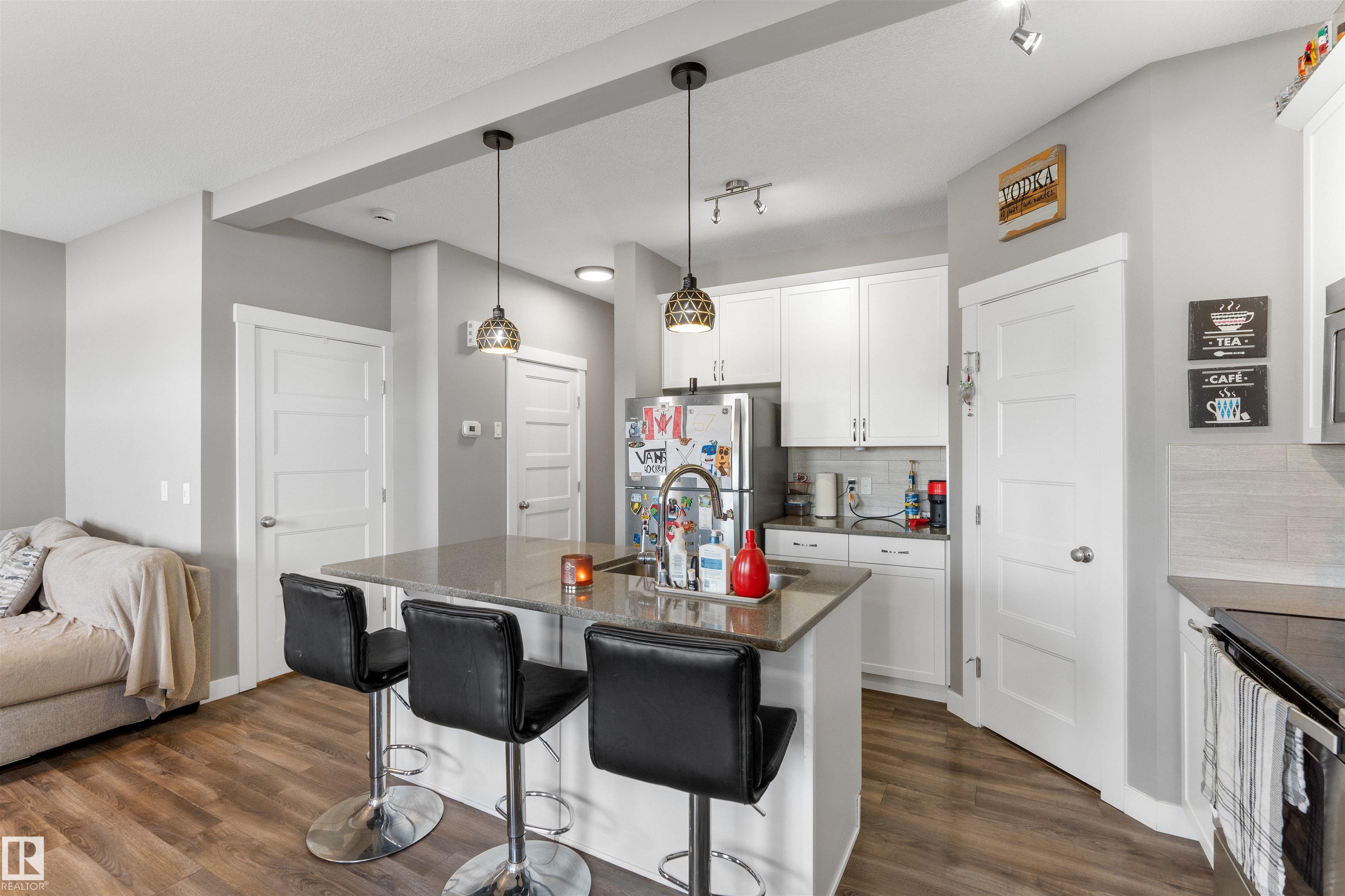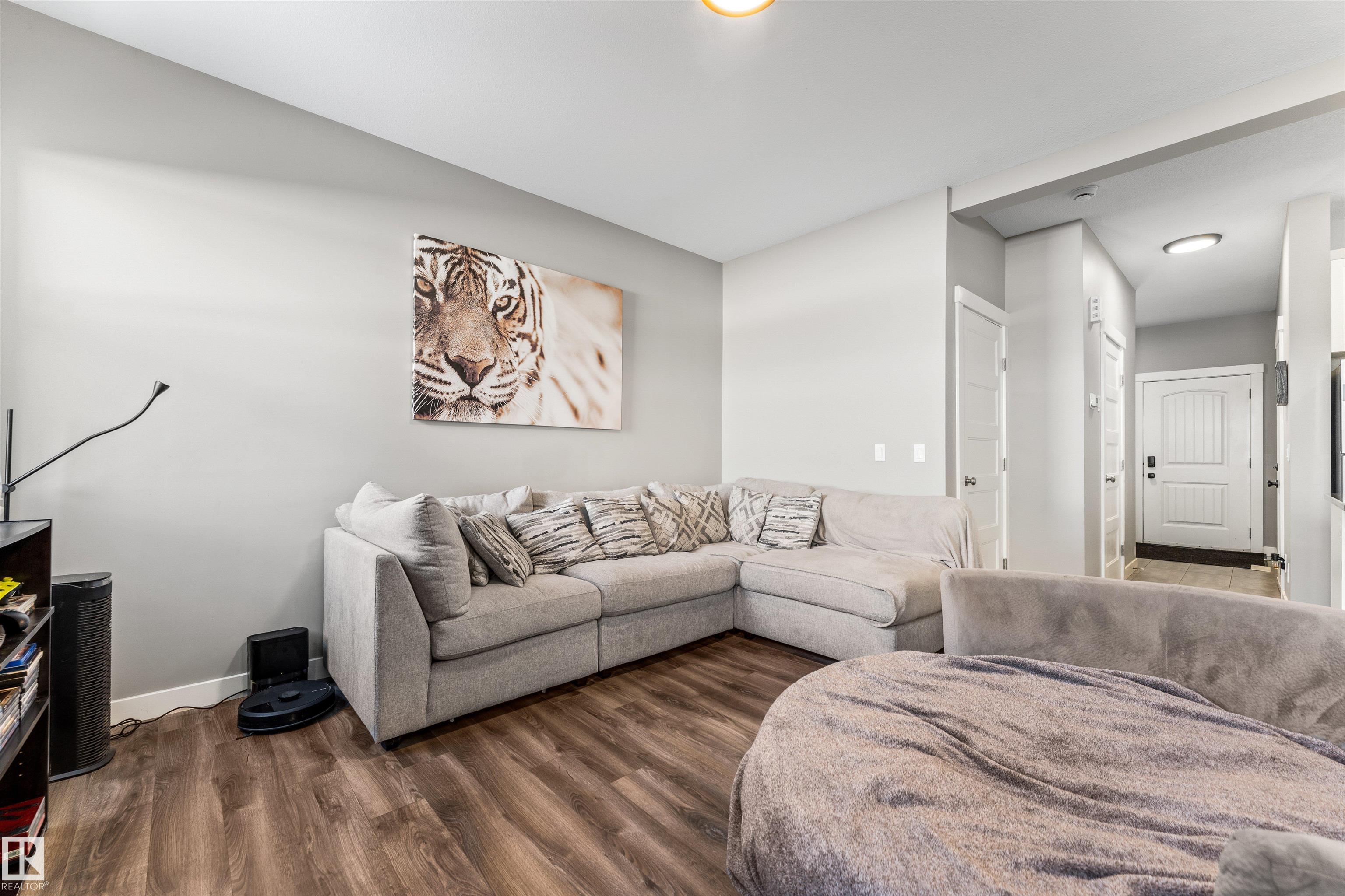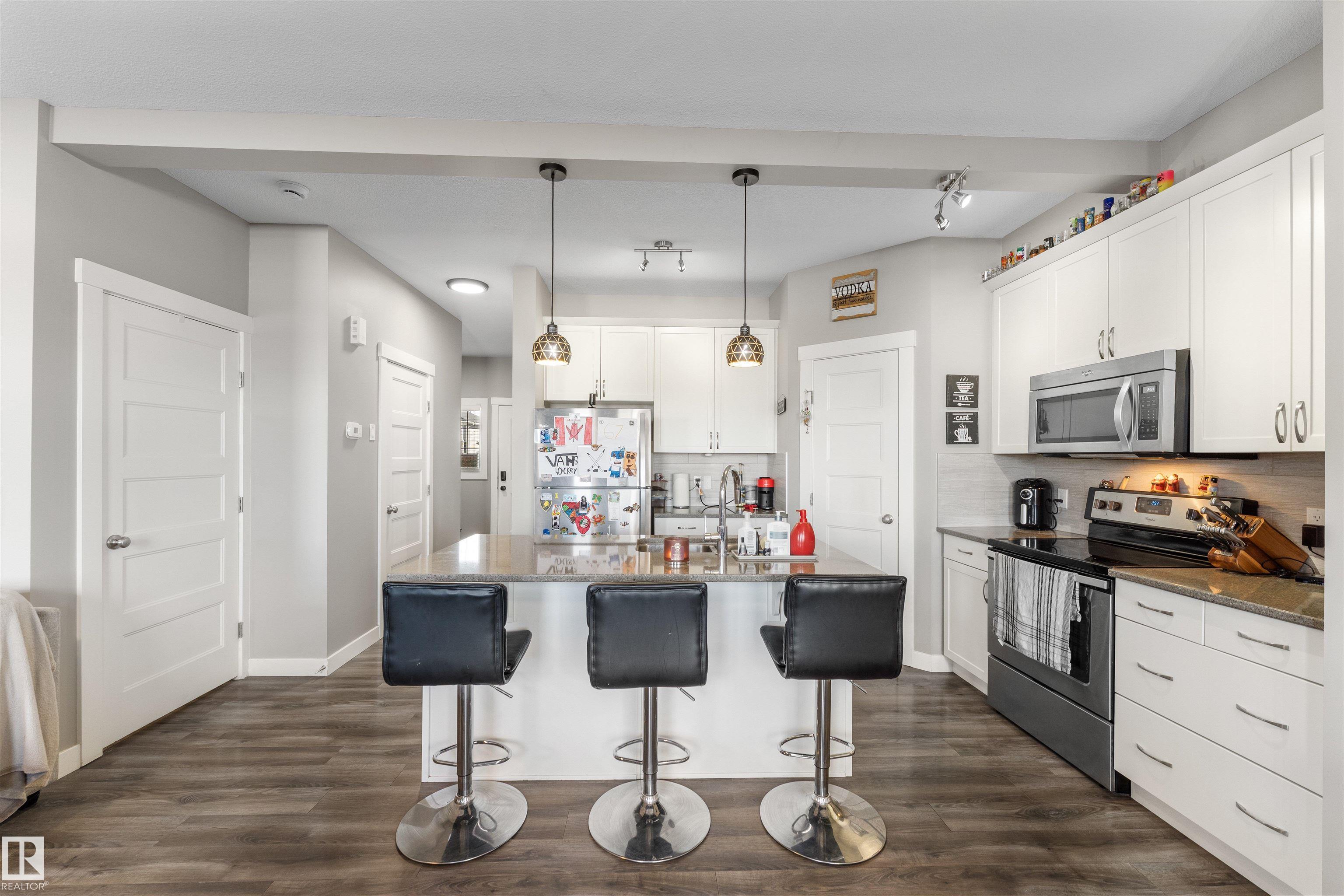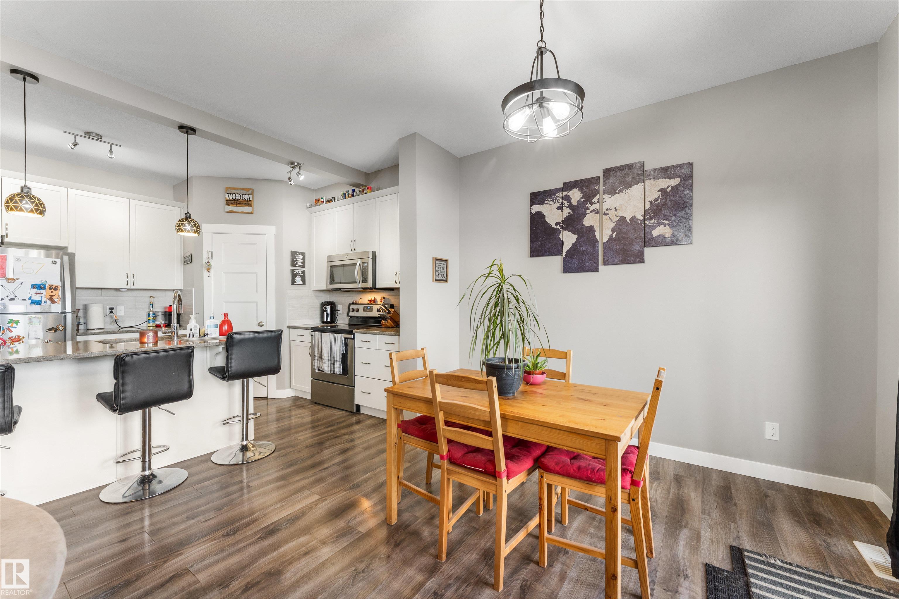 Modern & meticulously crafted for an aesthetic atmosphere, this 2014 duplex offering 2,002 sq ft of functional living space, is selectively situated in the desirable community of Hilldowns, where fine dining, shopping and easy access to the Yellowhead, are but a mere minute away. An open concept main floor embraces a contemporary colour palette as laminate flooring extends past the 2pc powder room, beyond the kitchen, so stylishly outfitted with stainless steel appliances, granite counters & island including bar-style seating, before accenting the glorious sun-fed corner of the dining room. The living room presents a gas fireplace and vistas of your sanctuary of a yard. Private quarters upstairs unite 3 bedrooms serviced by a 4pc main bath, including the primary retreat, crowned with a huge walk-in closet, & has a 3pc ensuite. The basement offers unfinished space for what you need most, and roughed in plumbing for 4th bathroom. Single garage & fenced yard backing an open space make this home a must have!