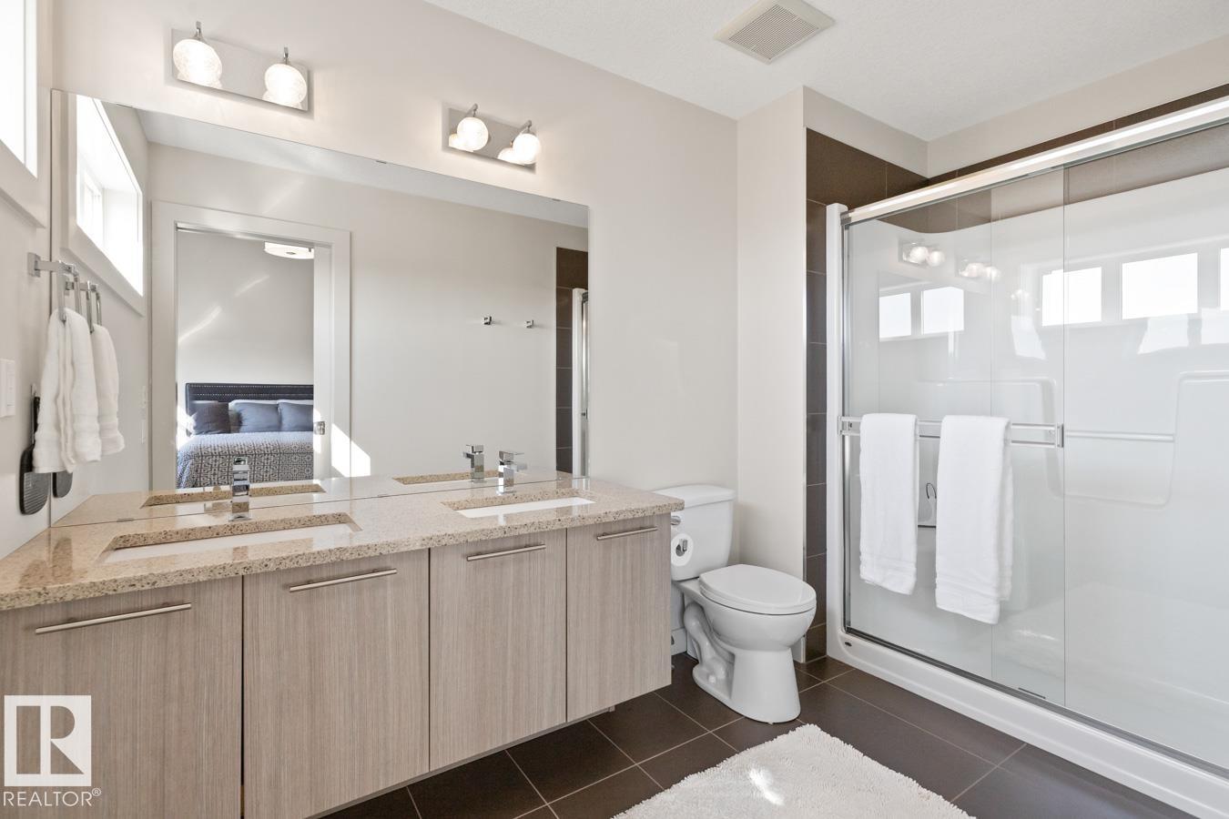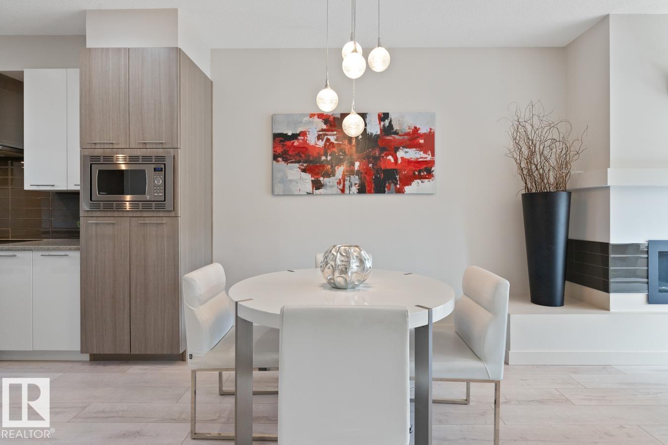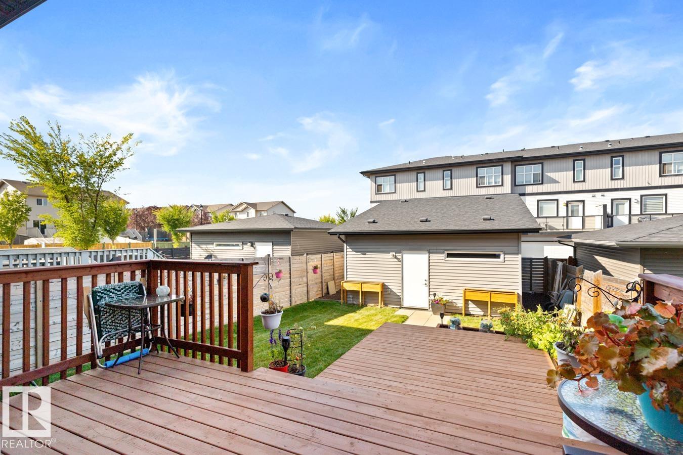 Modern, open-concept main floor crafted for daily life and hosting. The chic kitchen boasts two-tone, tall cabinets, quartz counters, subway tile, stainless appliances, plus an island seating four. Pot lights and pendants add flair. Bright dining and living areas feature a sleek fireplace wall and large windows for sun. Upstairs holds three cozy bedrooms. A finished basement offers versatility with a family room, fourth bedroom, and full bath. Outside, find a landscaped yard and a double detached garage. Move-in ready and low-maintenance. Quick Yellowhead access, near shops, schools, parks and Golf.