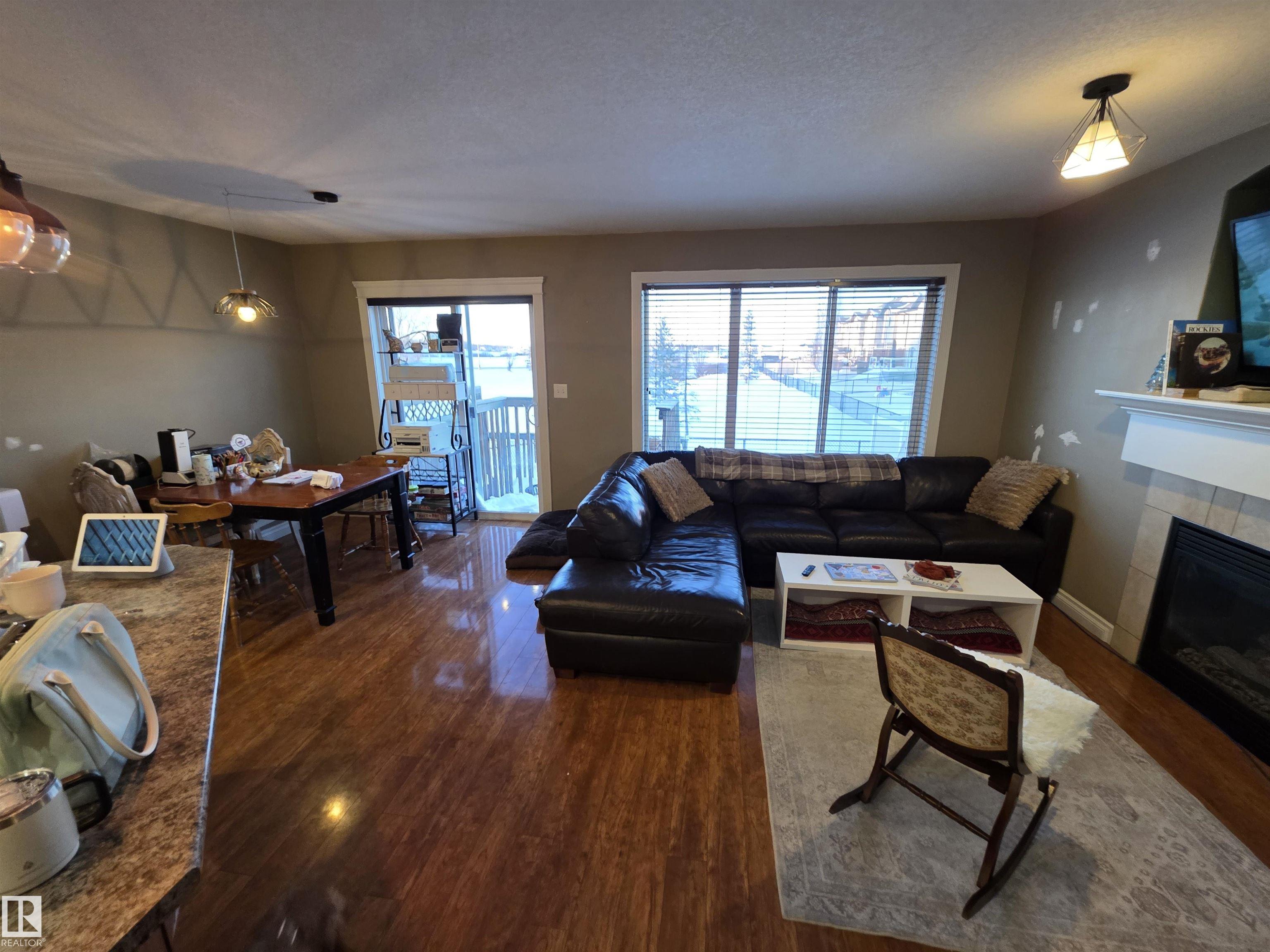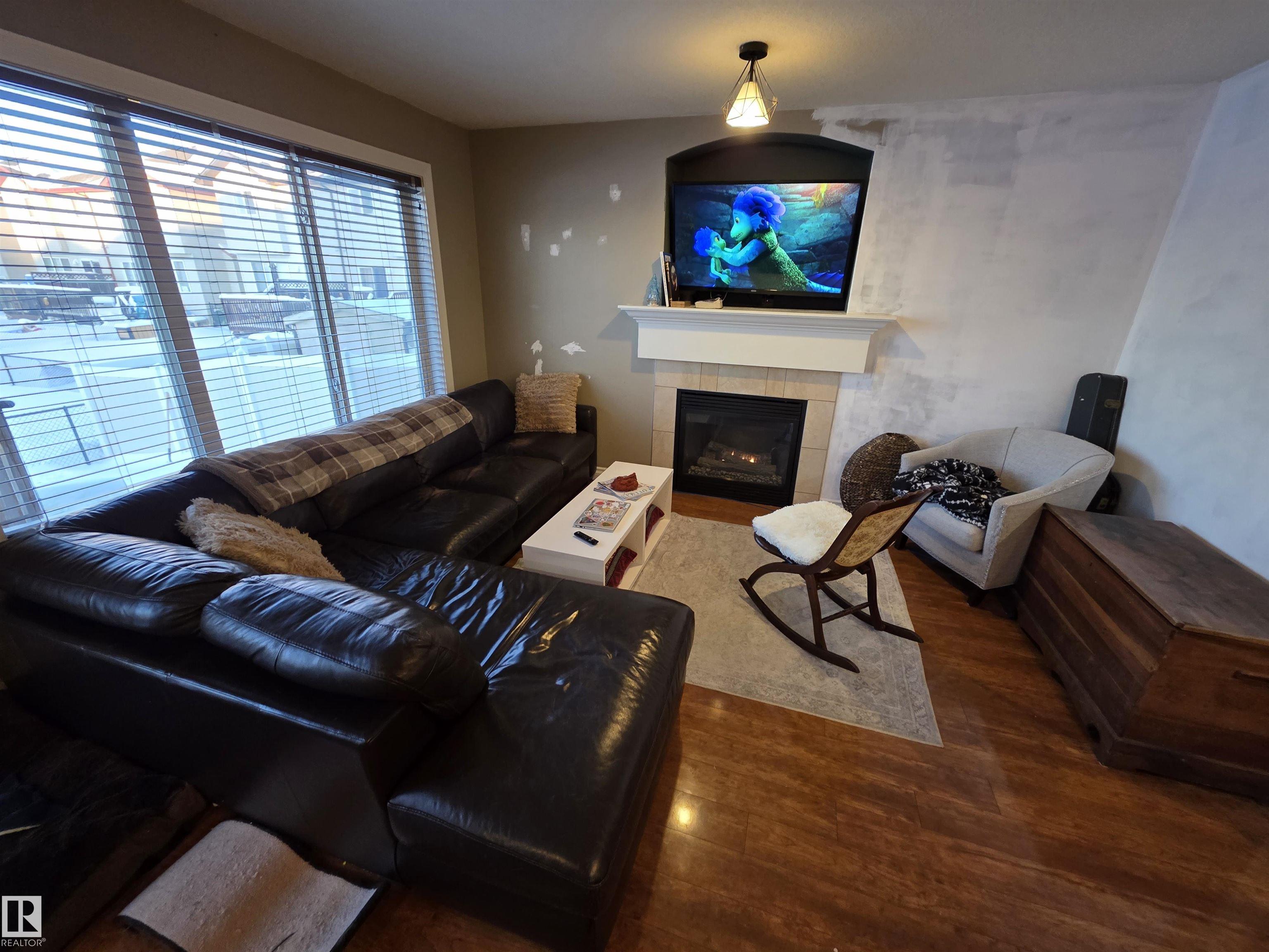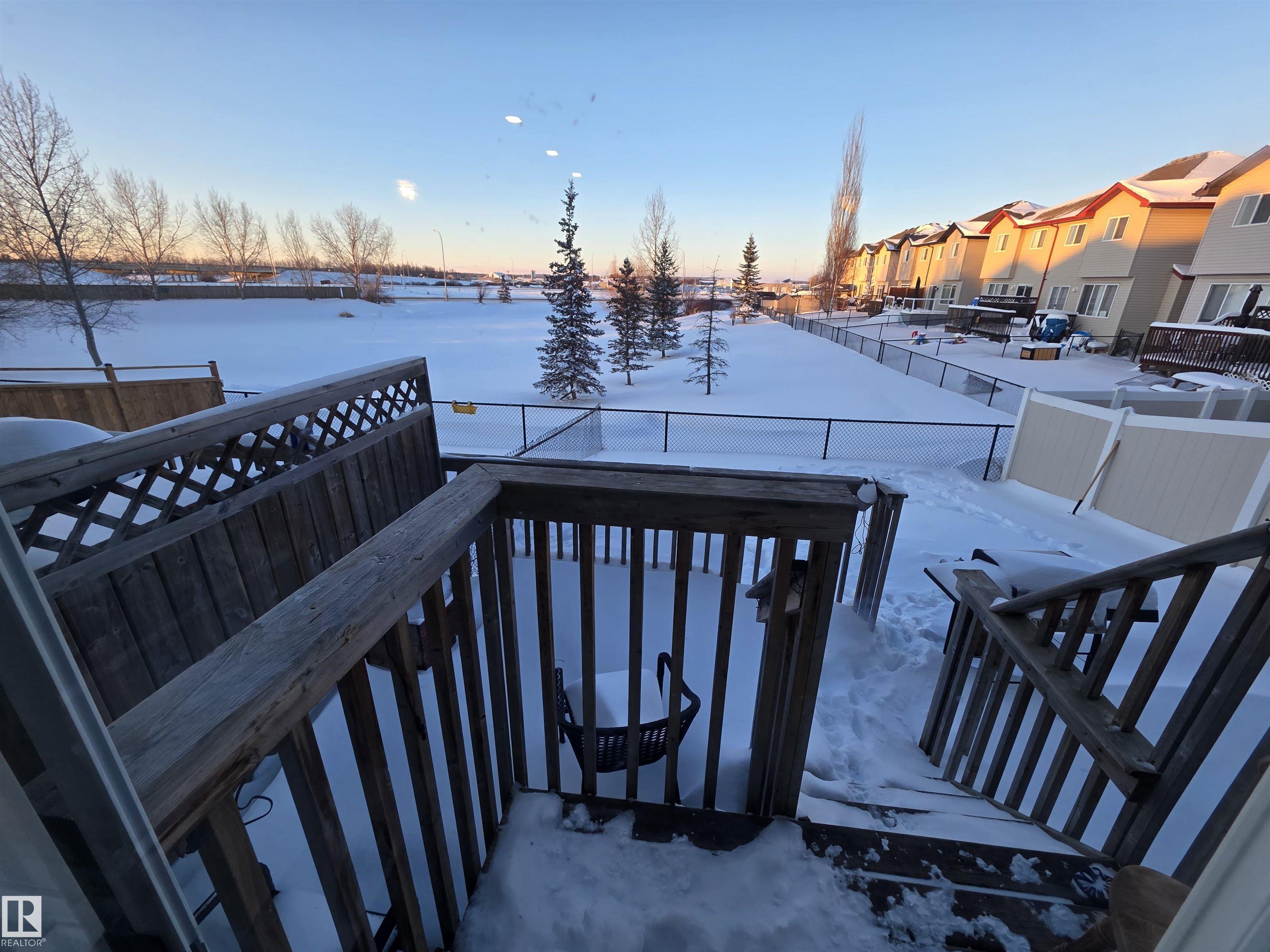 This 3 bedroom 2.5 bath half duplex has no condo or HOA fee's. It's features include: center island with raised eating bar, corner pantry, plenty of cabinets and open concept living room with gas fireplace. The upstairs has 3 bedrooms and the master bedroom is spacious and has a 4 pc ensuite. The basement is partially finished with a laundry room, roughed in plumbing and plenty of space to add a family room or 4th bedroom. Backing onto a green space this home is very private with no neighbors behind. Located close to shopping restaurants and all amenities. Quick access to Hwy 16A. NOTE: This property is in need of some new flooring and paint touch-ups. It is priced to reflect that.