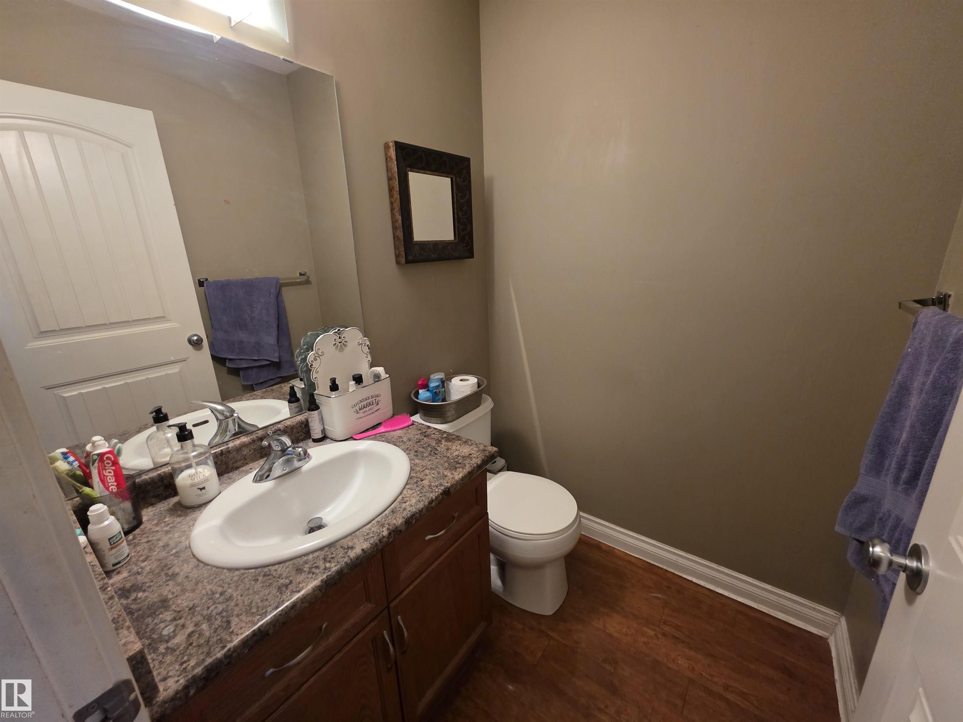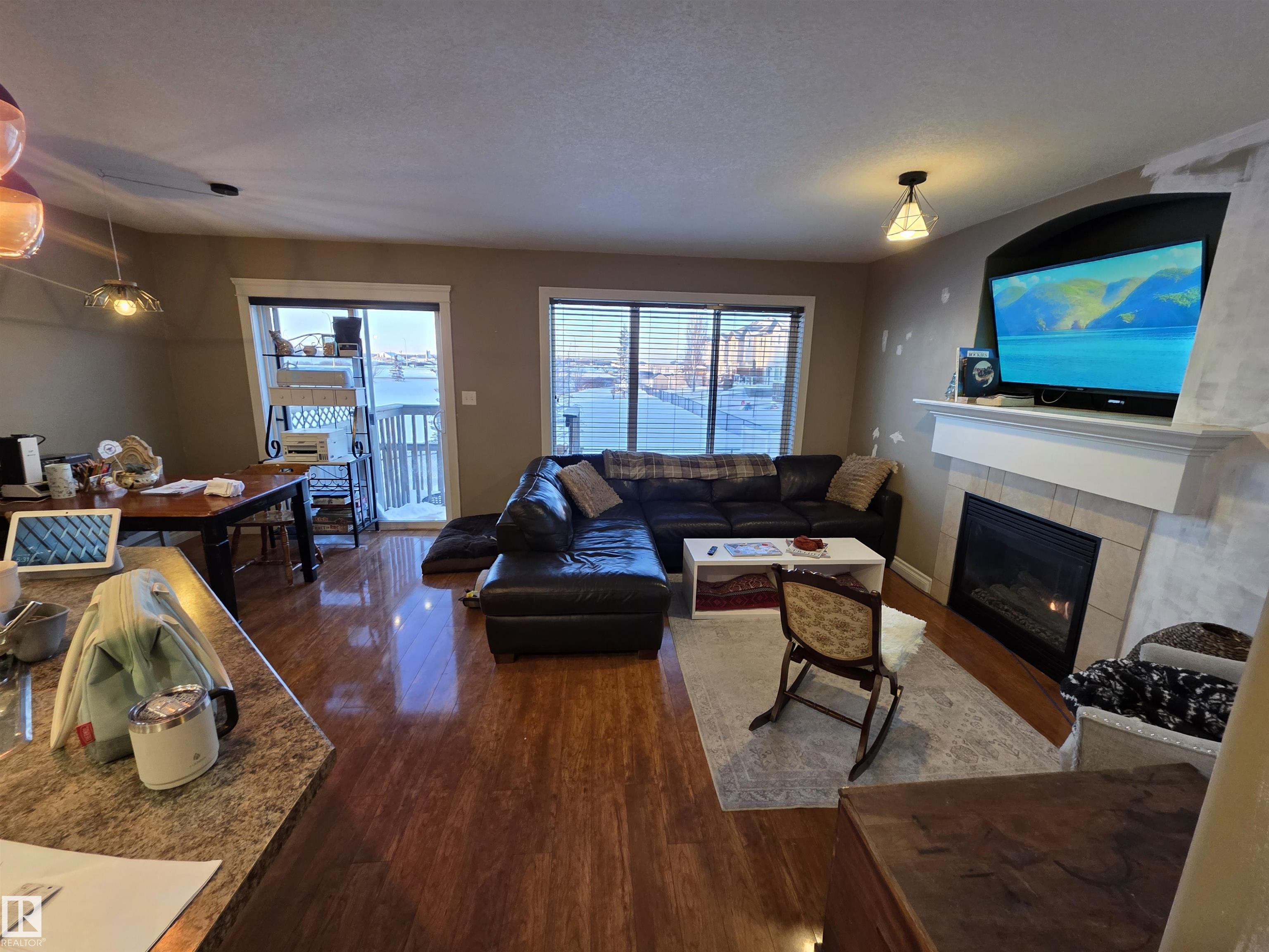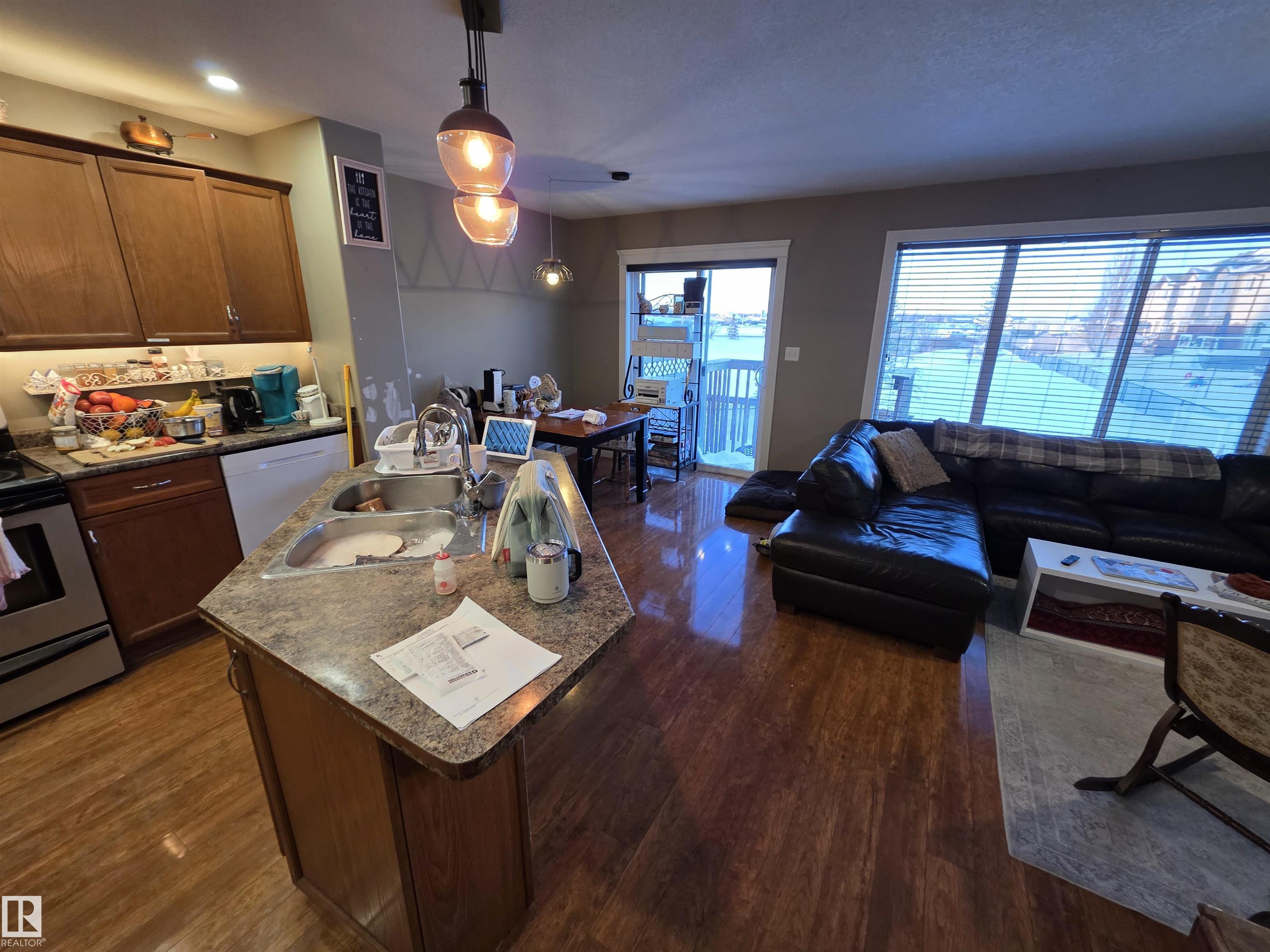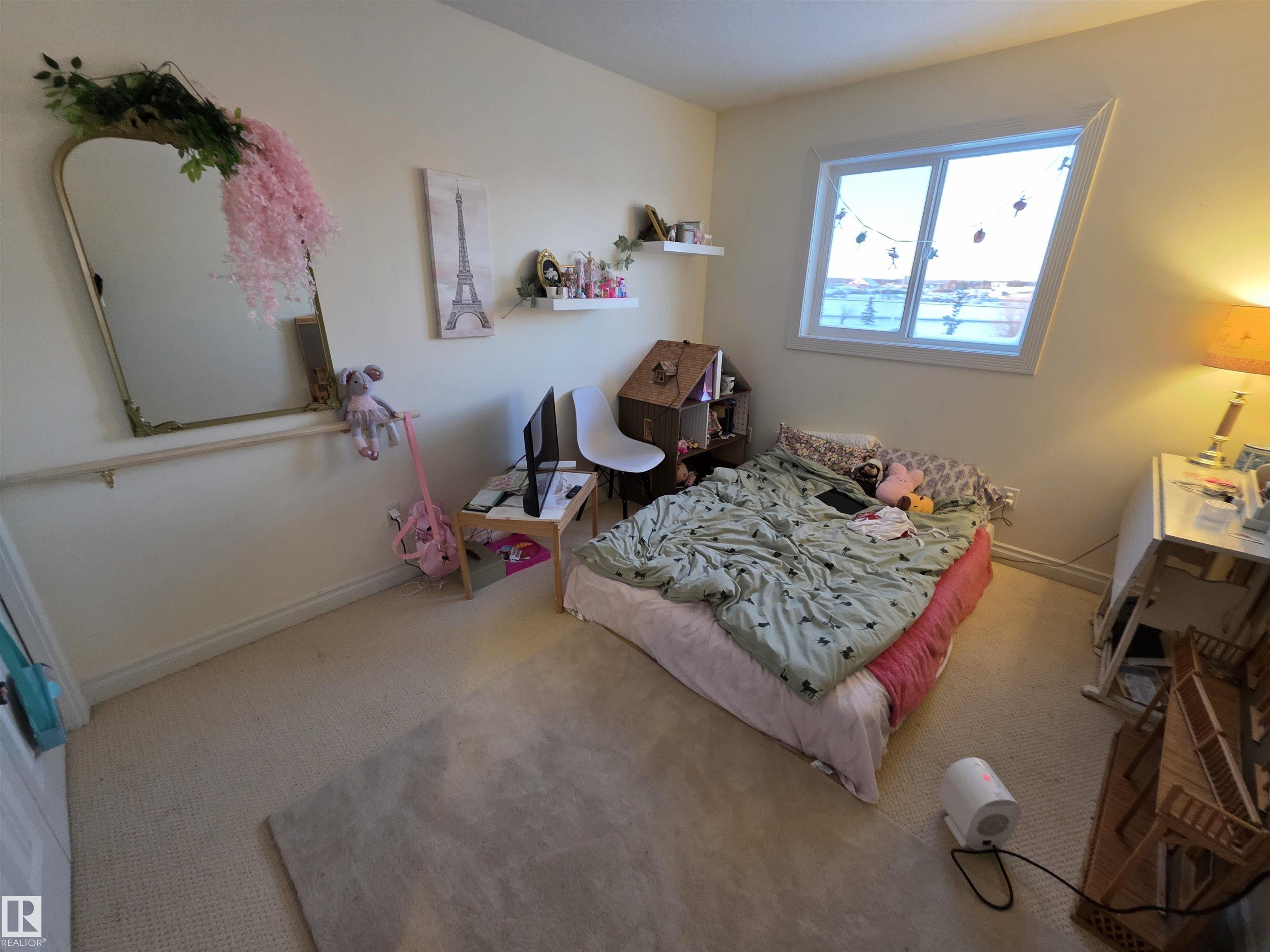 This 3 bedroom 2.5 bath half duplex has no condo or HOA fee's. It's features include: center island with raised eating bar, corner pantry, plenty of cabinets and open concept living room with gas fireplace. The upstairs has 3 bedrooms and the master bedroom is spacious and has a 4 pc ensuite. The basement is partially finished with a laundry room, roughed in plumbing and plenty of space to add a family room or 4th bedroom. Backing onto a green space this home is very private with no neighbors behind. Located close to shopping restaurants and all amenities. Quick access to Hwy 16A. NOTE: This property is in need of some new flooring and paint touch-ups. It is priced to reflect that.