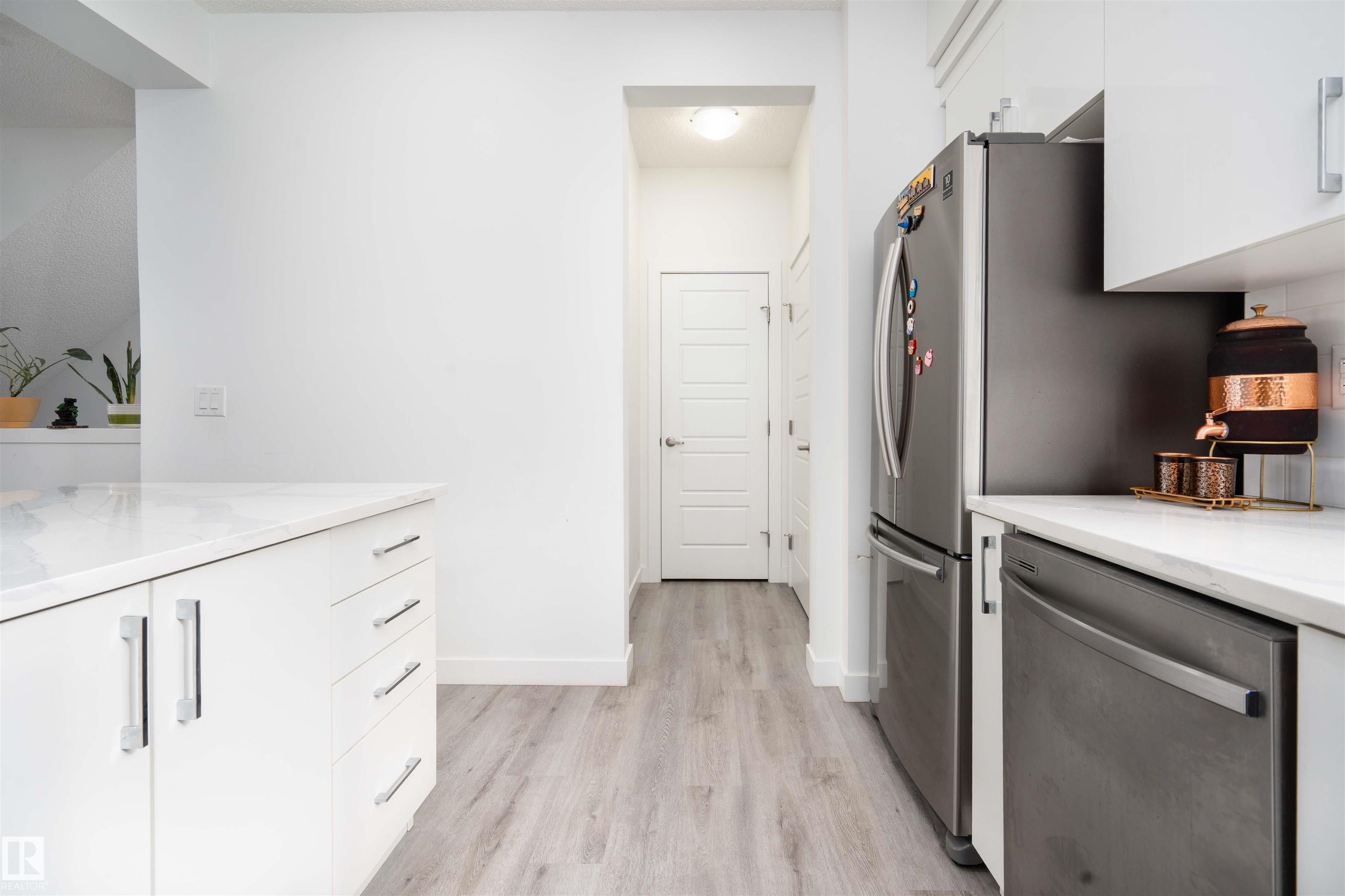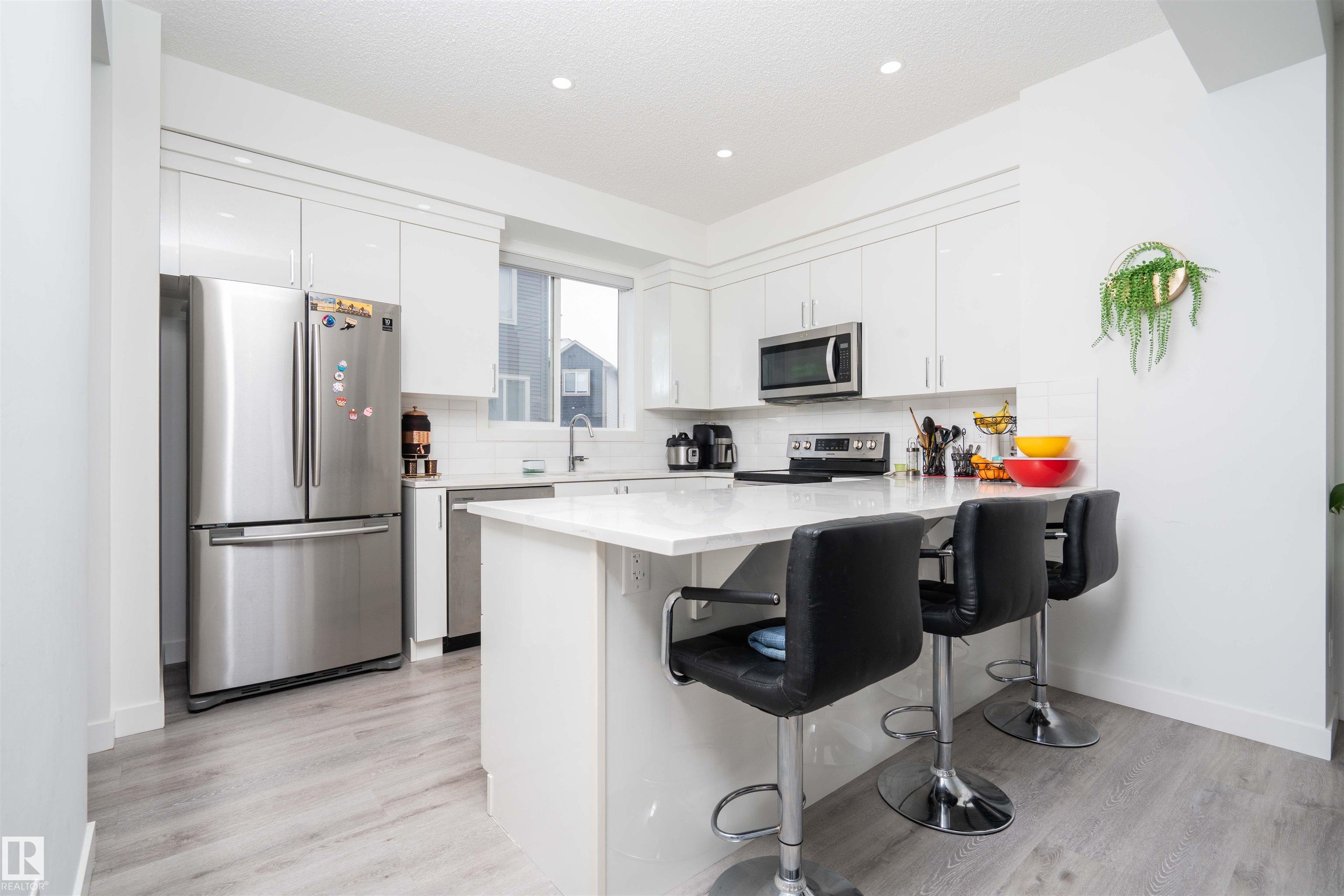 Welcome to this well-maintained home in the desirable community of Walker, Edmonton. Featuring 3 bedrooms, 2.5 bathrooms, and a versatile den, this thoughtfully designed layout suits families, first-time buyers, or investors. The bright open-concept main floor offers large windows, a functional kitchen with stainless steel appliances and ample cabinetry, plus a cozy living room with a fireplace. Moreover, main-floor laundry add convenience. Enjoy the spacious balcony overlooking the landscaped courtyard. Upstairs includes a primary suite with walk-in closet and ensuite, plus two additional bedrooms and a full bath. Close to Shauna May Seneca School, parks, shopping, transit, and Anthony Henday.