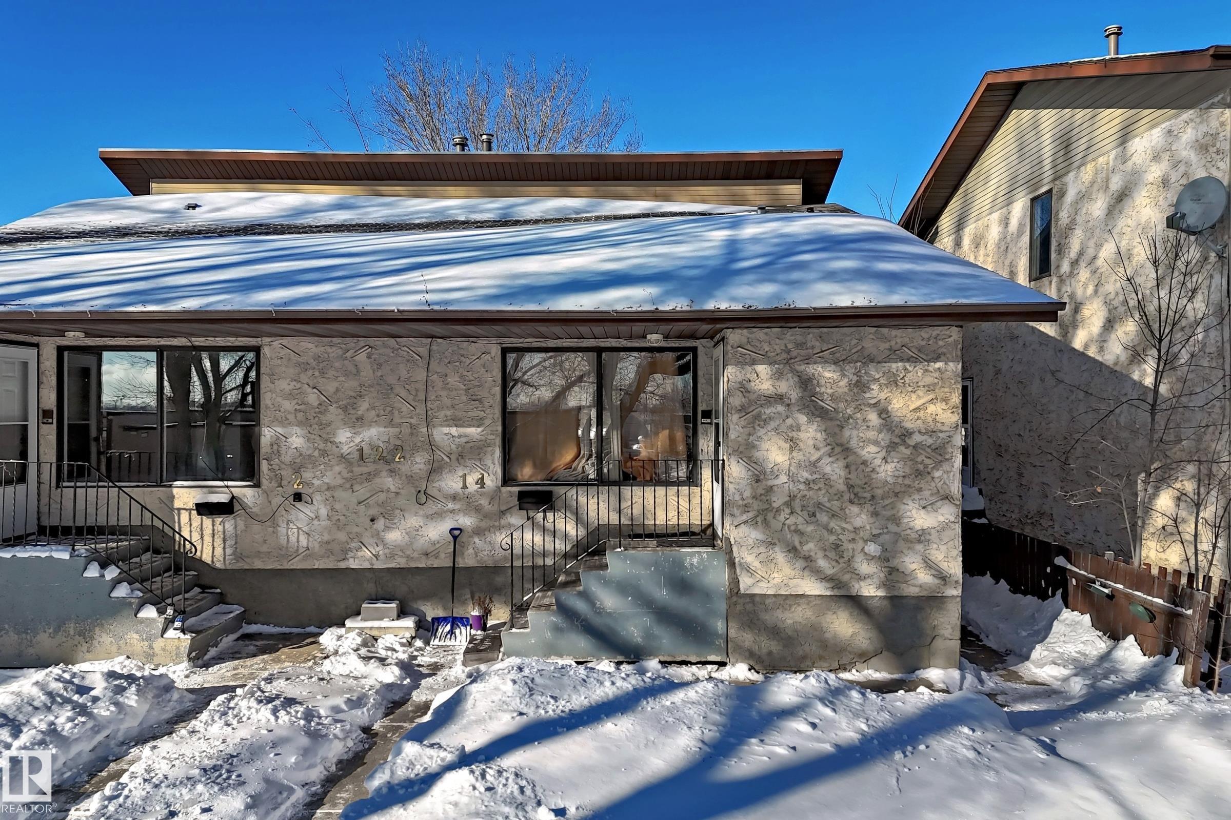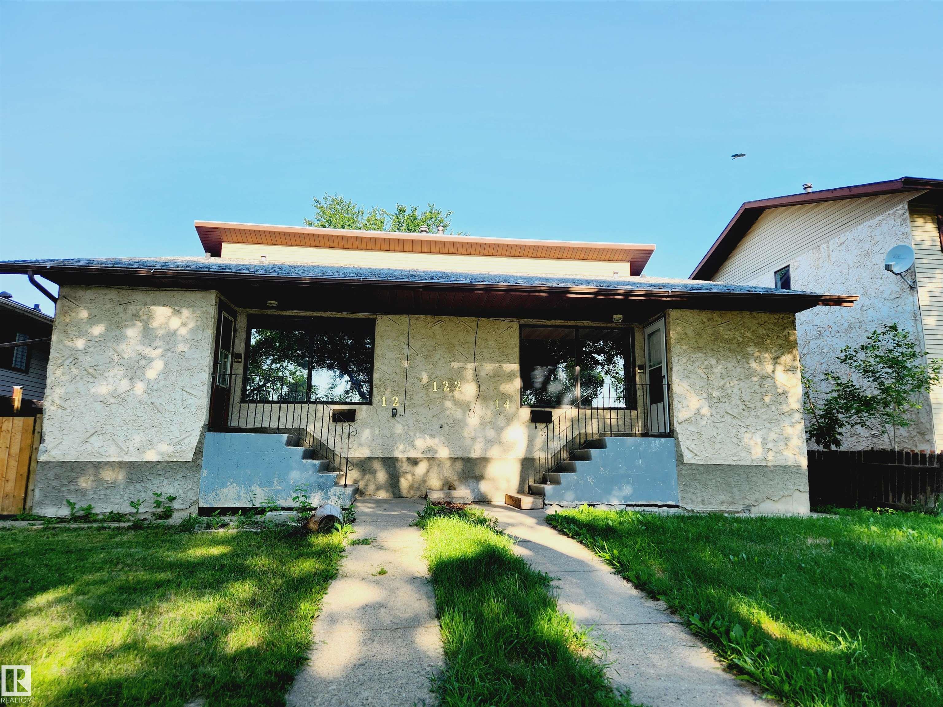The Very Best Value !! Great Opportunity 1067 sq ft Bungalow half Duplex with City of Edmonton legal Basement suite & detached garage. Main floor Open floor plan kitchen - dining - living room areas flow nicely featuring 3 bedrooms on main floor, with 2 washrooms main floor. Primary bedroom has a 2 piece ensuite, plus also there is 4 piece main floor washroom, and main floor laundry. The Basement has a separate side door entrance to the private contained legal basement suite which has a second kitchen, living room, 2 bedrooms, laundry, and 4 piece washroom. This property is located on a nice mature quiet street that is redeveloping with newer in fill properties, also redevlopment is on going in the surrounding streets. Walk to shopping, schools, LRT, quick access Yellow haed to all parts of Edmonton and surrounding, only 10 minutes toi city center and river valley. A Super Starter Property or Amazing Investment. The Adjacaent side 12212 - 77 st NW Edm is also for sale. Make A Smart Purchase Here !!!