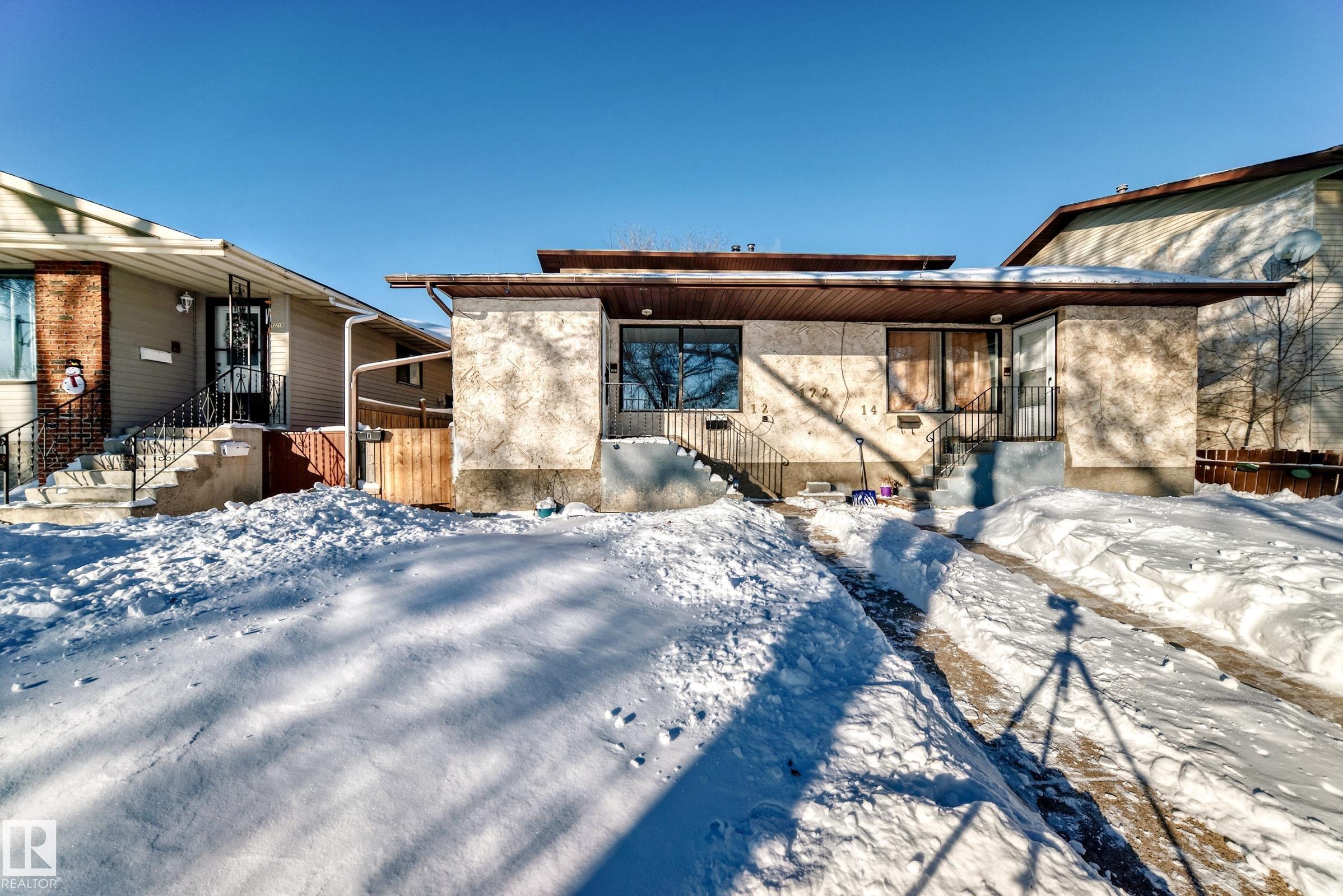 The Best Excellent Value for a Bungalow half duplex with a permitted legal basement suite with the city of Edmonton, and a oversized single detached garage. Main floor open plan kitchen - dining - living area flow smoothly featuring 3 bedrooms main floor, with 2 washrooms on main floor. Primary bedroom has a 2 piece ensuite, plus 4 piece main floor washroom and main floor laundry. The basement has a separate side door entrance to the private legal basement suite which has a kitchen, living room, 2 bedrooms, laundry, and a 4 piece washroom.The property is located on a mature quiet street with a lot of redevelopment new infil housing nearby being built. Walk to shopping, schools, LRT, quick access to Yellowhead connecting all parts of Edmonton and surrounding. Minutes to City Center & River Valley, Adjacent side of duplex 12214 - 77 street also for sale. Super Starter, Amazing Investment !!!
