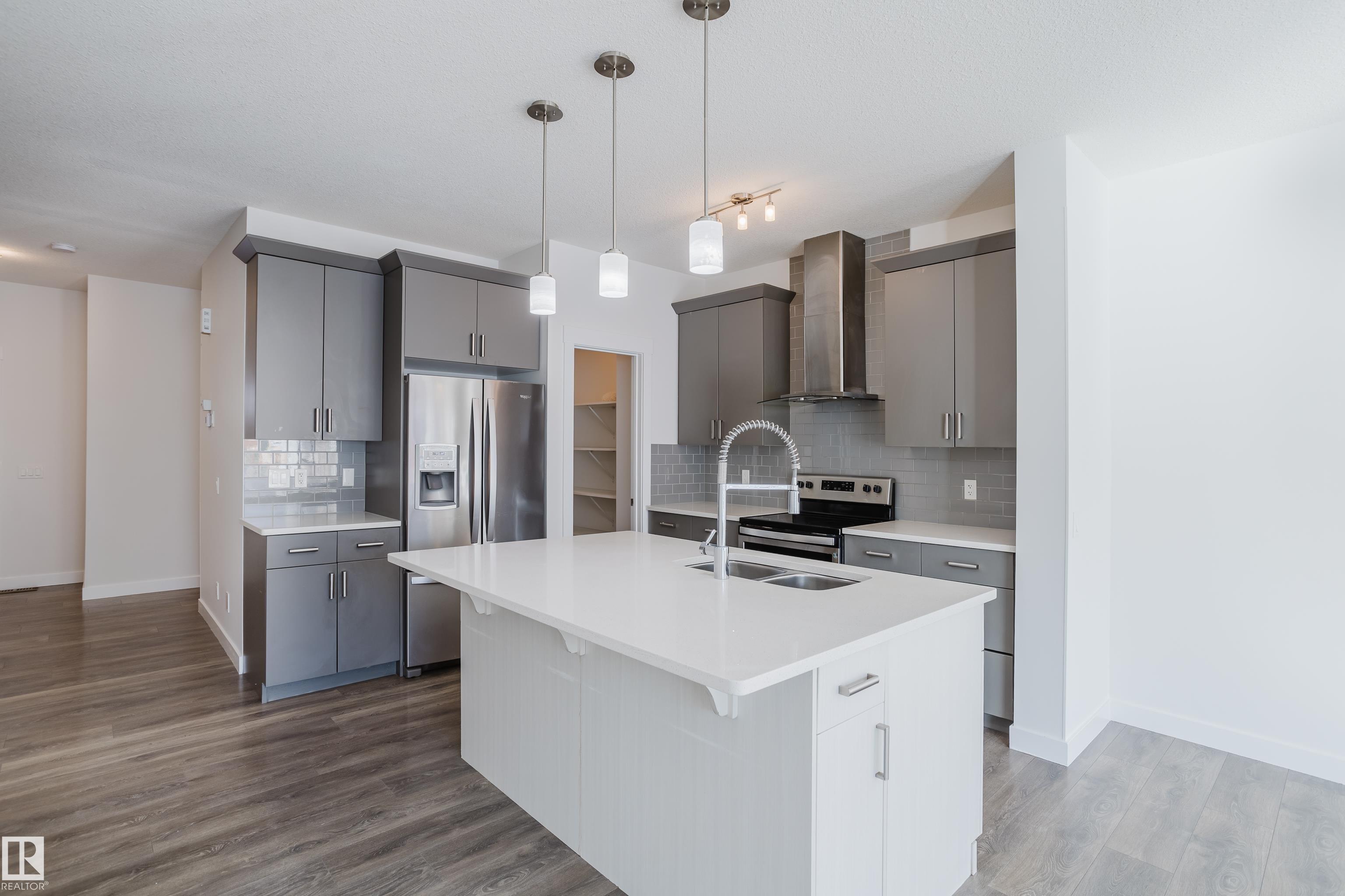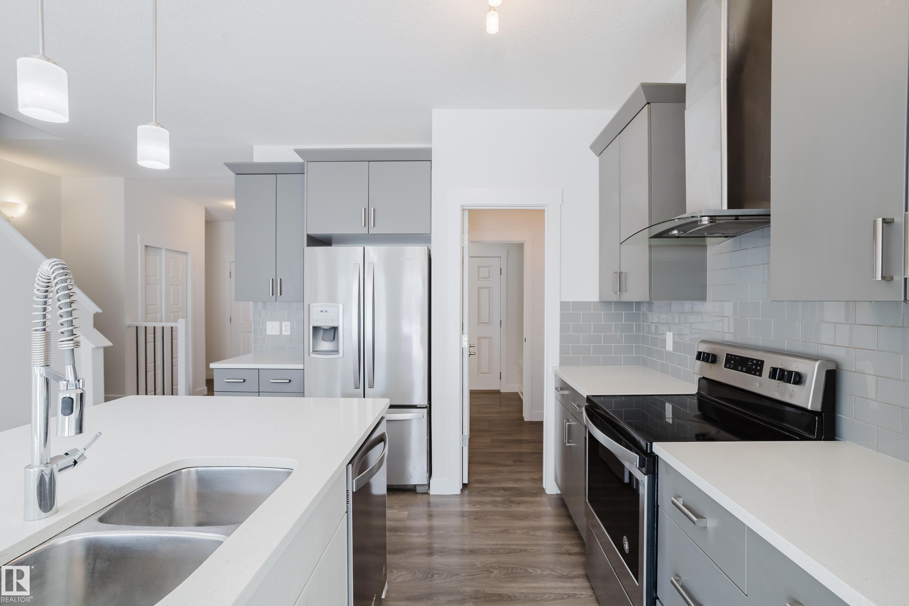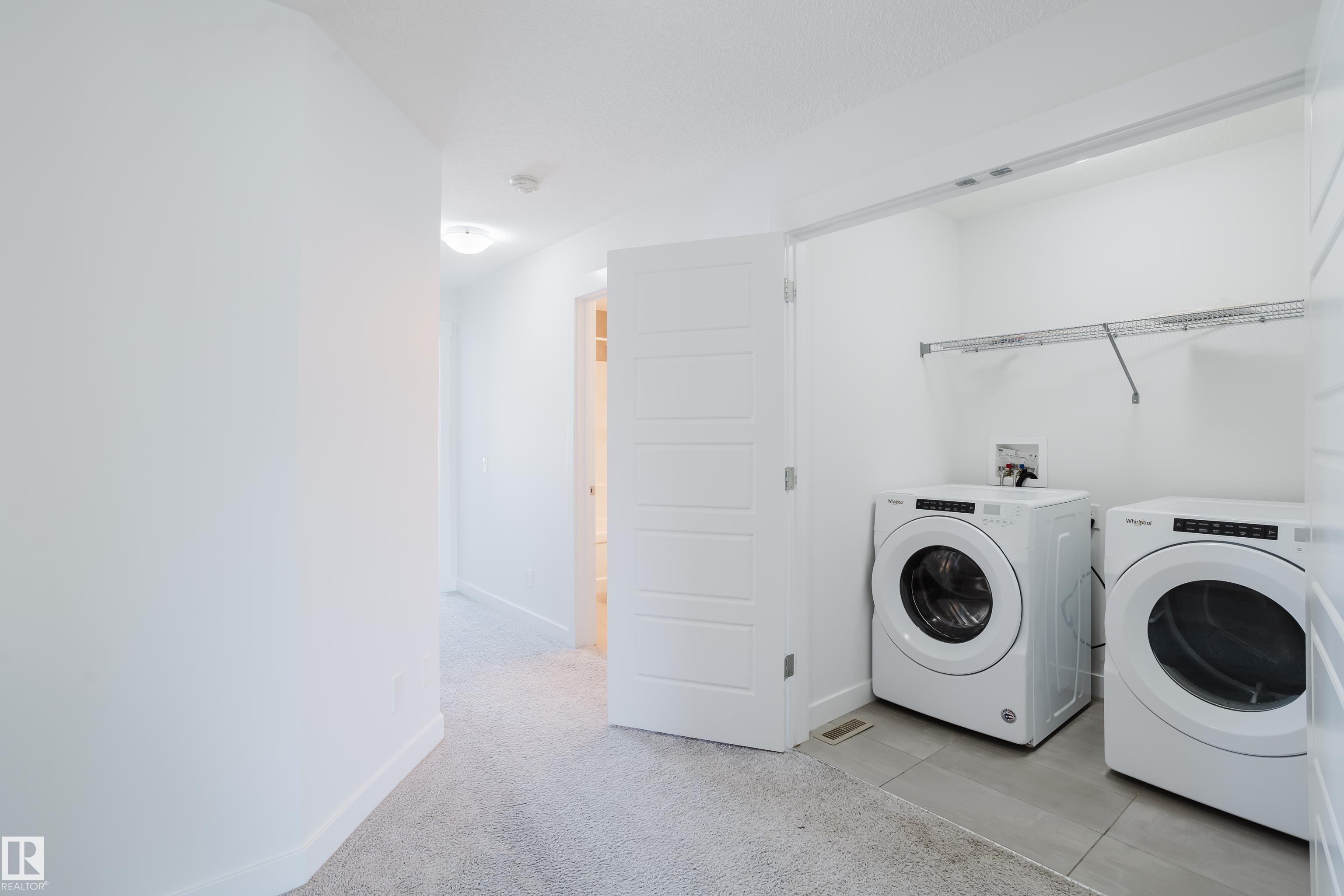 Welcome to this beautiful duplex located in the desirable community of McConachie. Offering 1,577 sq ft of well-designed living space, this home features 3 spacious bedrooms and 2.5 bathrooms, making it perfect for families or first-time buyers. The main floor showcases an open-concept layout with a modern kitchen that offers ample cabinet and storage space, ideal for both everyday living and entertaining. Large windows throughout the home allow for abundant natural light, creating a bright and welcoming atmosphere. Upstairs, you?ll find the convenience of a top-floor laundry with washer and dryer, along with comfortable bedrooms designed for relaxation. With its thoughtful layout, functional design, and great location, this home offers both comfort and practicality. A fantastic opportunity to own in one of North Edmonton?s growing communities!