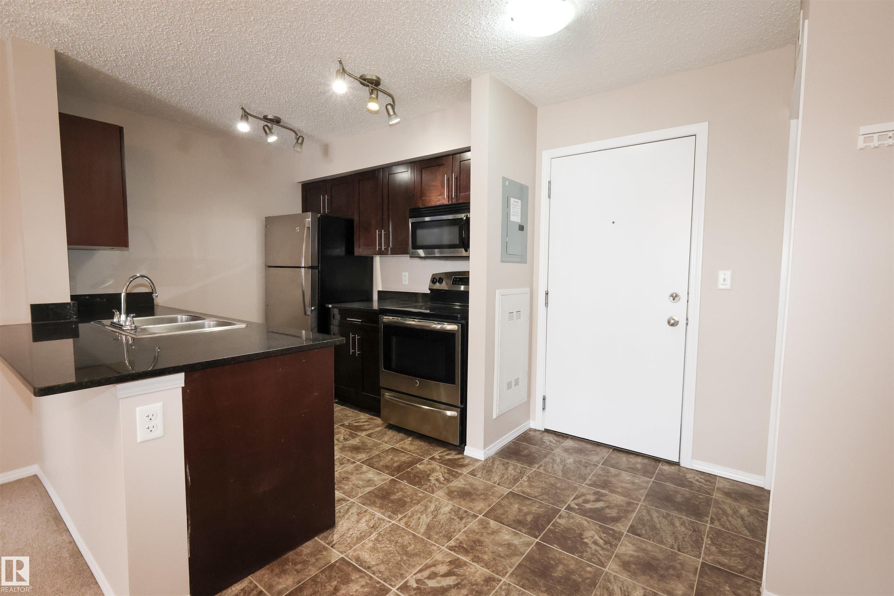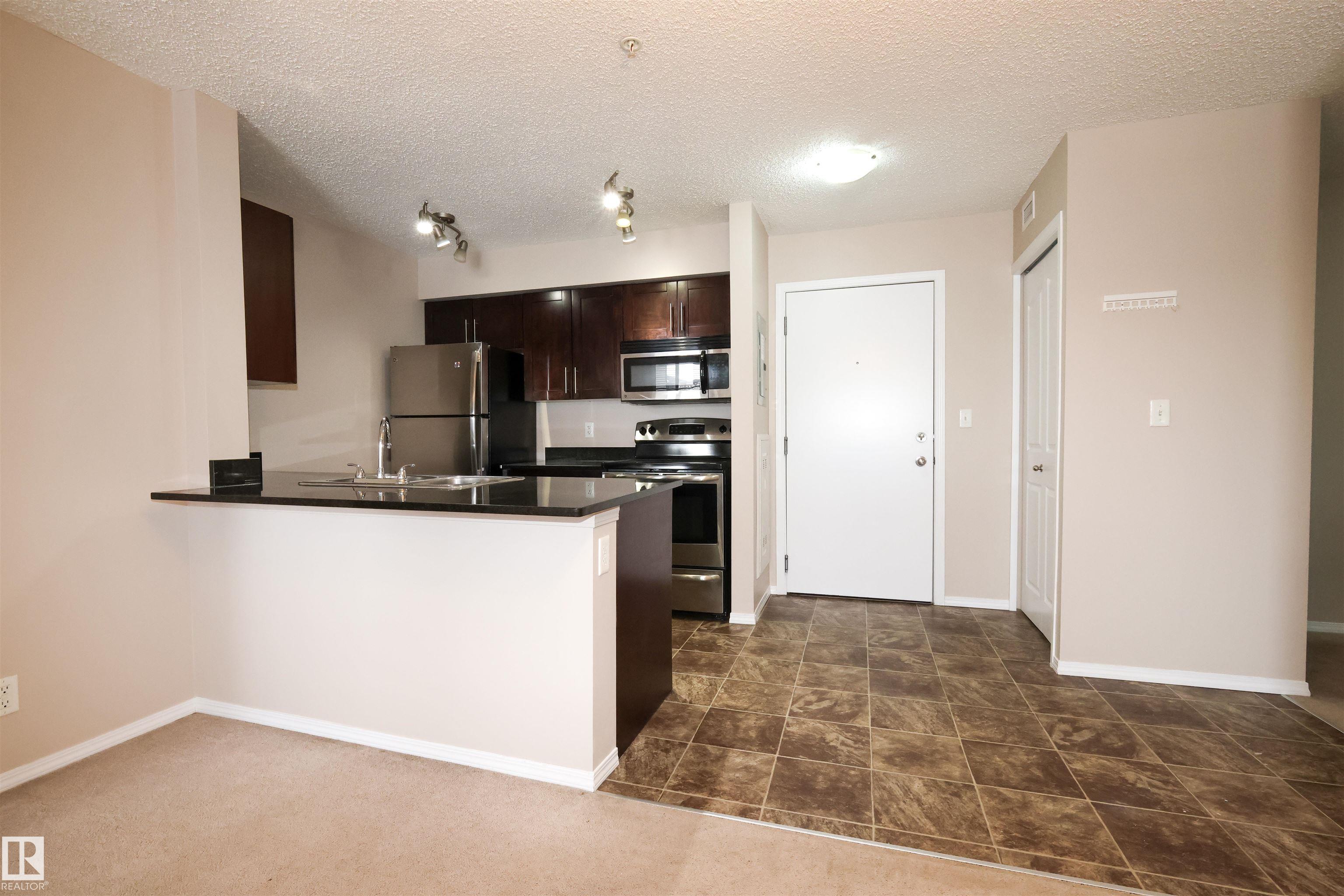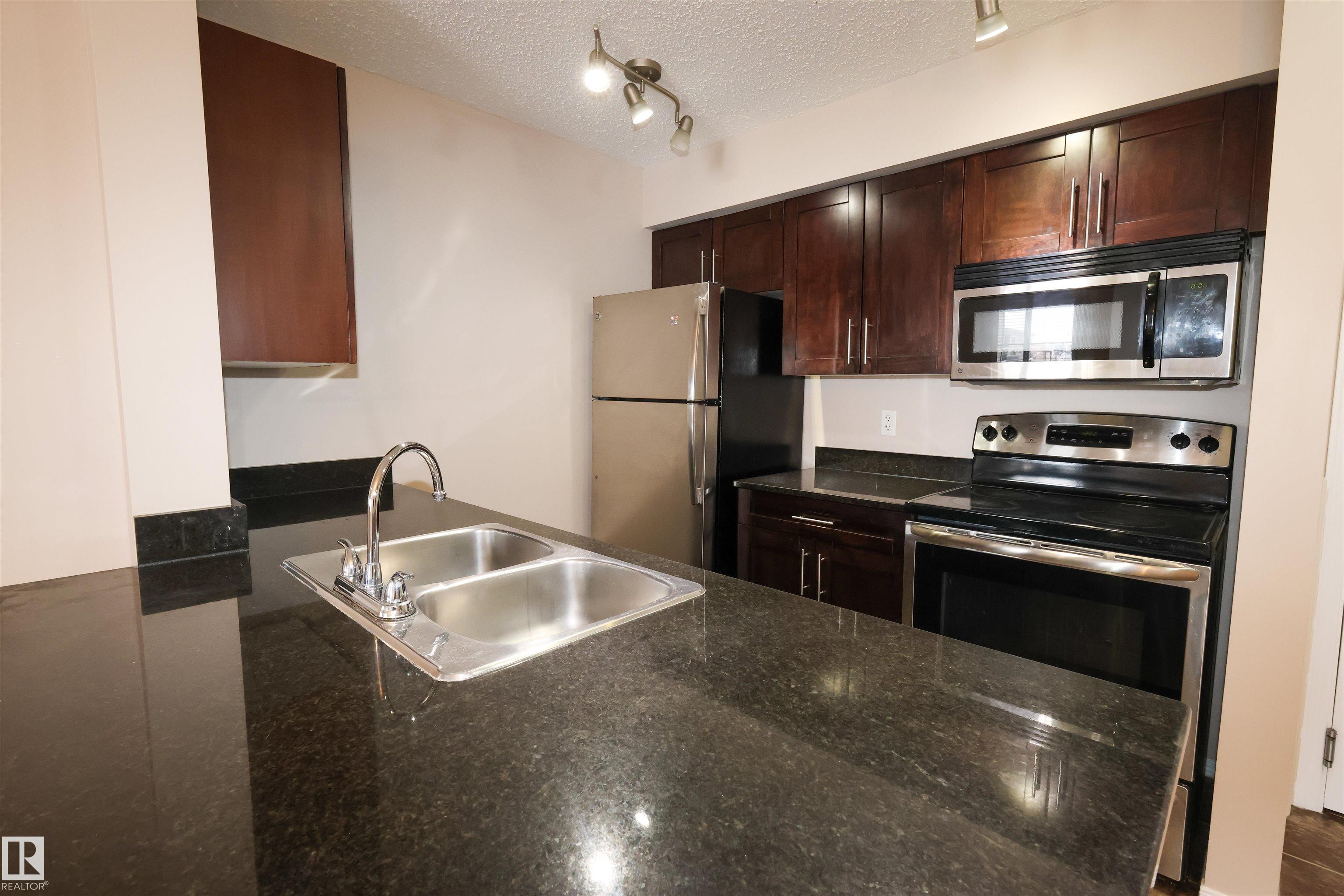 Welcome home to this wonderful 2 Bedroom, 2 Bathroom + Den condo unit w/HEATED UNDERGROUND PARKING. From the spacious entry to the open concept living room, this home is designed for easy living. The kitchen features dark maple cabinets, granite counter tops, double mounted sink, and stainless steel appliances. This home is bright and spacious, with a kitchen that is open to the living room. The master bedroom has a walk-through his and hers closet and 3 piece en-suite. The 2nd bedroom is great size. Suite includes a Den for extra storage space or office use and the convenience of in-suite laundry, and Air Conditioning for those hot summer days. Amazing location, close to Anthony Henday, QE2, shopping and all amenities.