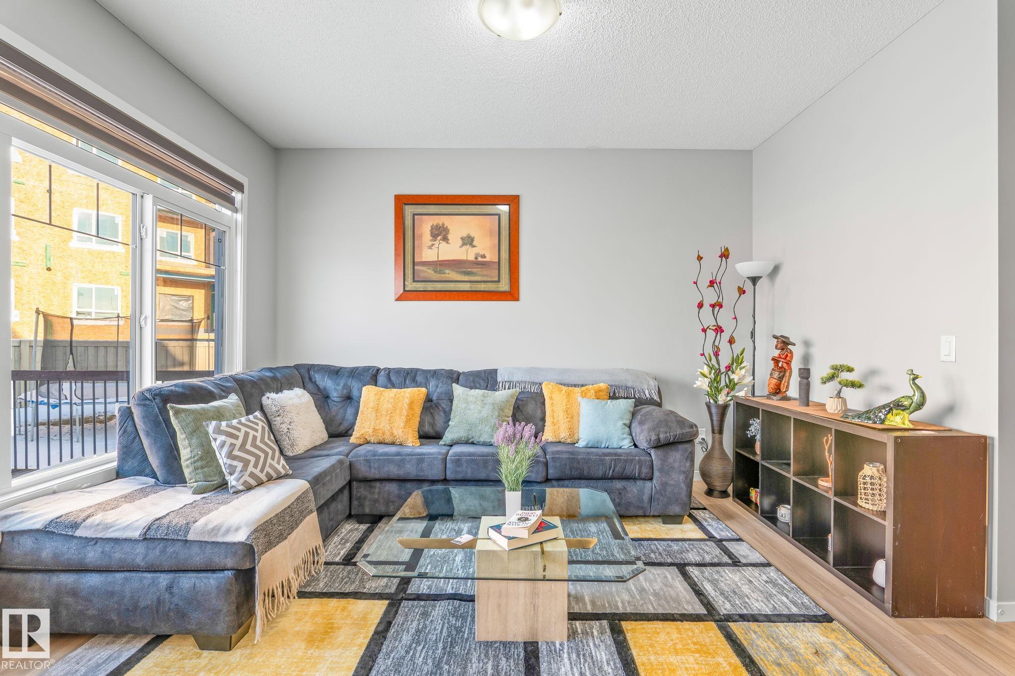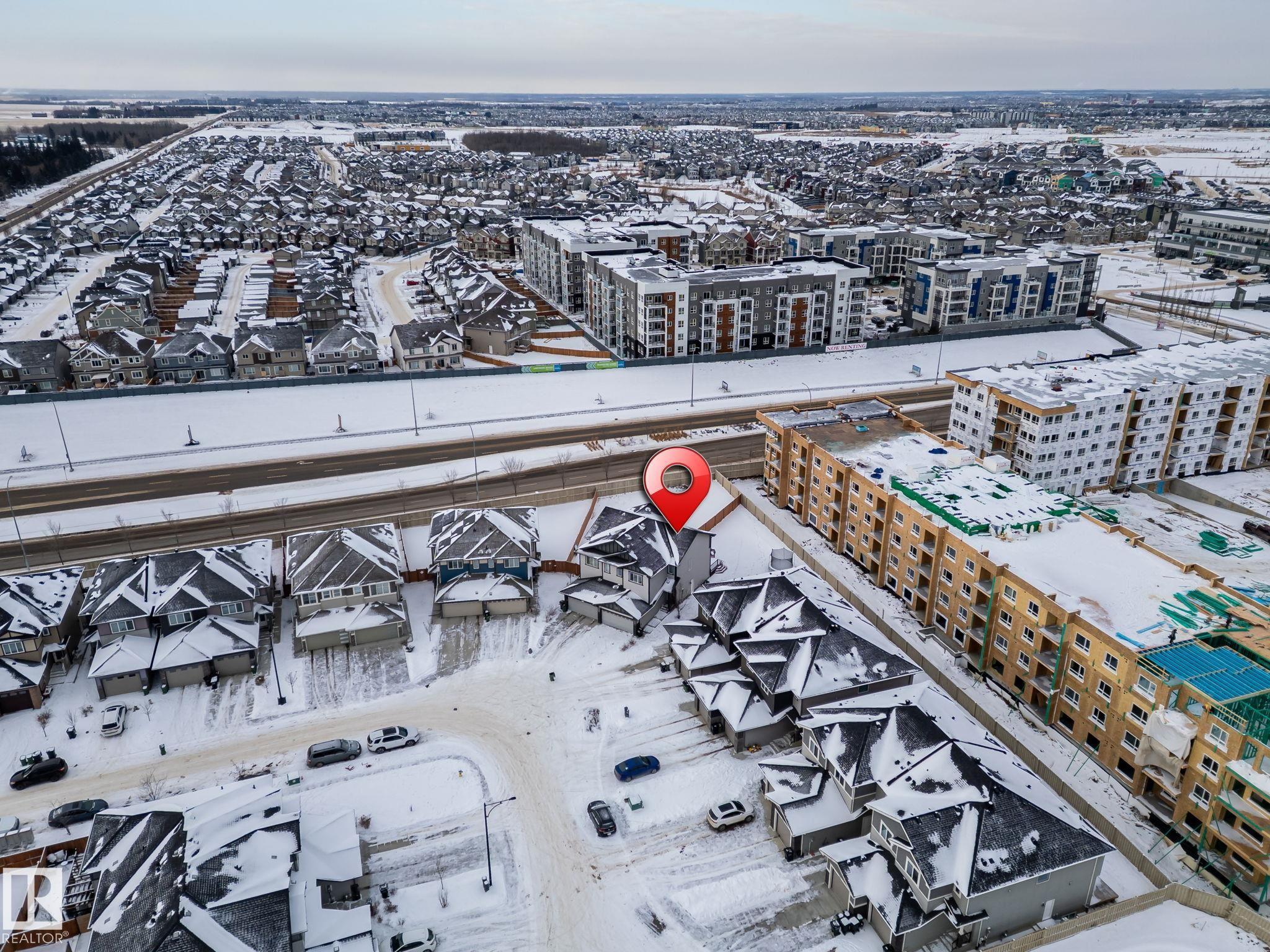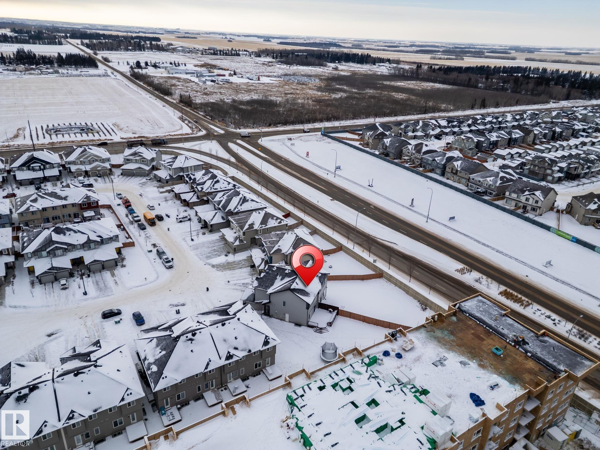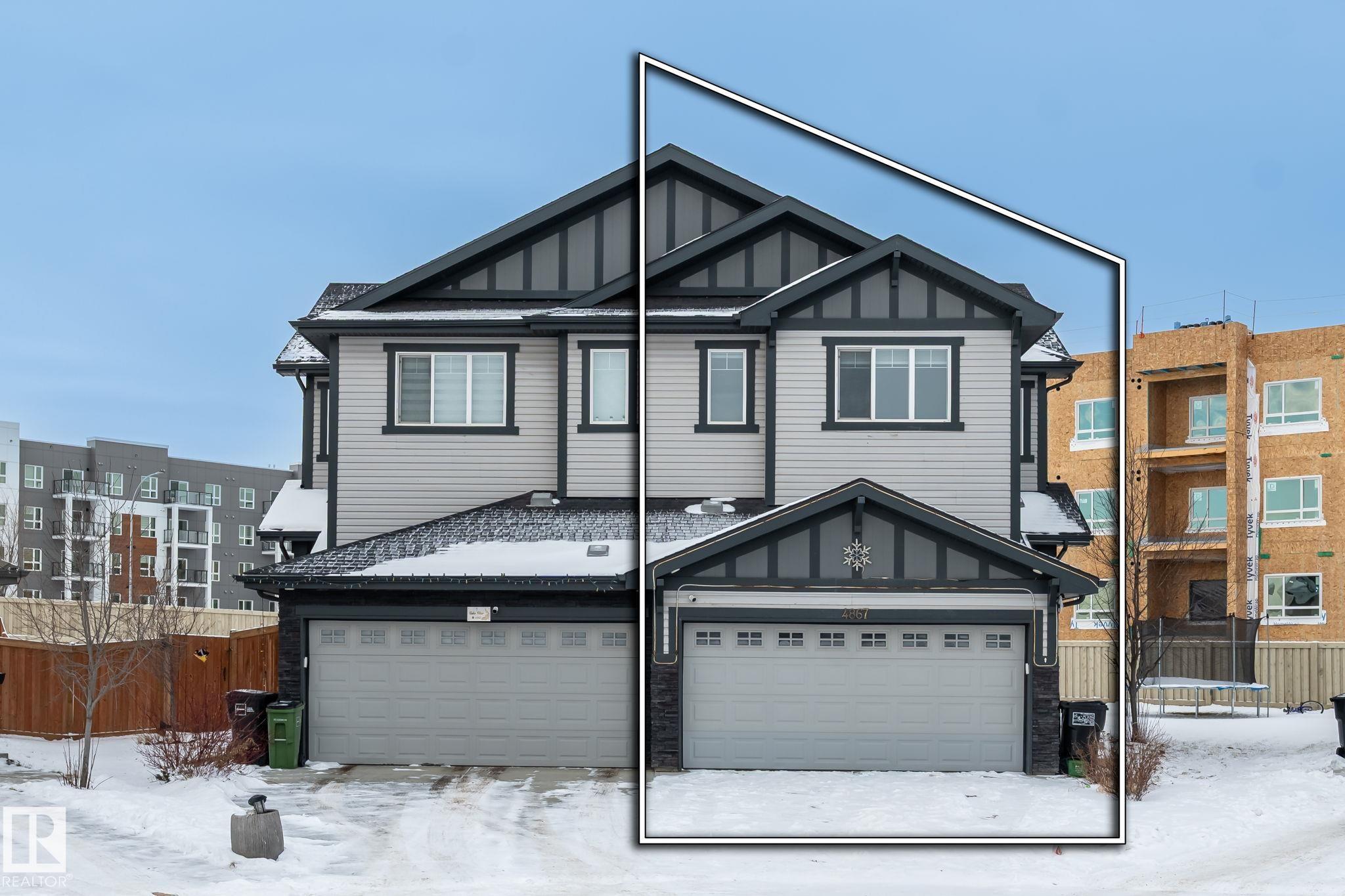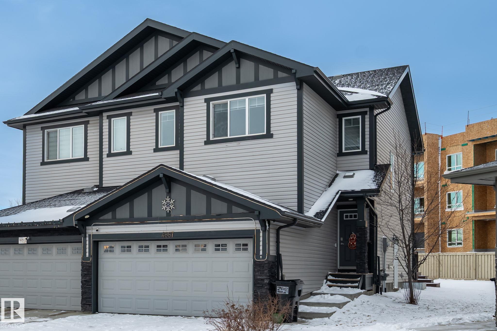 Welcome to Allard ? one of the most prestigious communities in Southwest Edmonton, where convenience meets comfort. This beautifully maintained half-duplex offers a DOUBLE GHARAGE, a separate SIDE ENTRENCE to the basement, and a generous PIE -LOT featuring a premium-finished, oversized deck. Inside, the upgraded kitchen complements the open-concept layout, seamlessly connecting the living and dining areas with views of the expansive backyard. The upper level includes three spacious bedrooms, including a master suite with its own ensuite, along with a versatile bonus room perfect for a home office or loft. The unfinished basement comes with a separate side entrance, providing an excellent opportunity to develop a future legal suite. Located close to schools and just 15 minutes from the airport, this home offers both comfort and convenience. A must-see property!