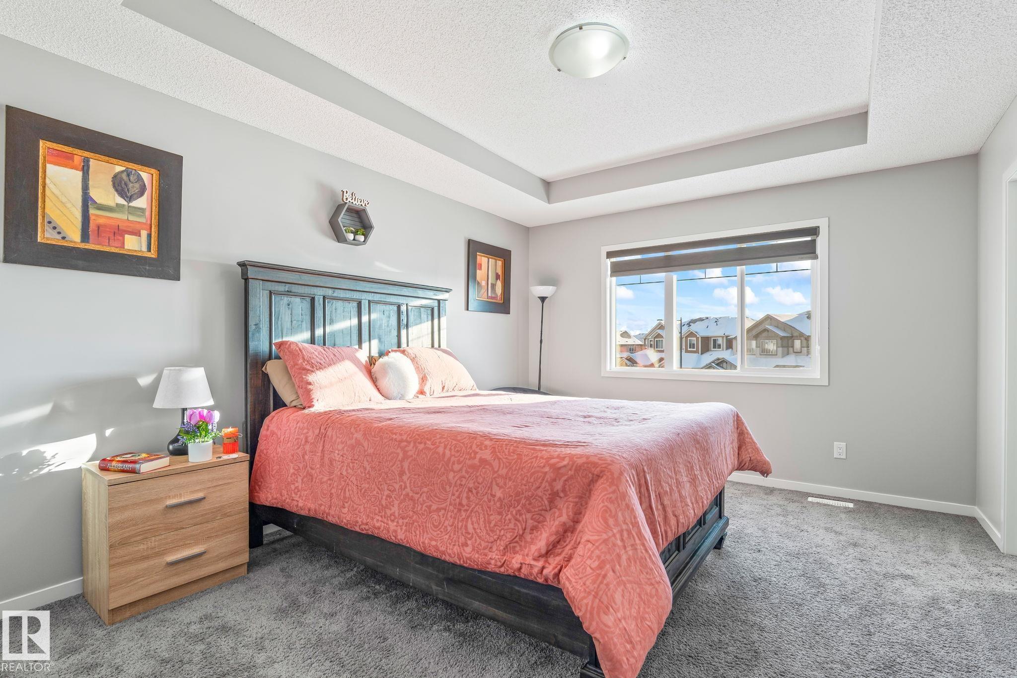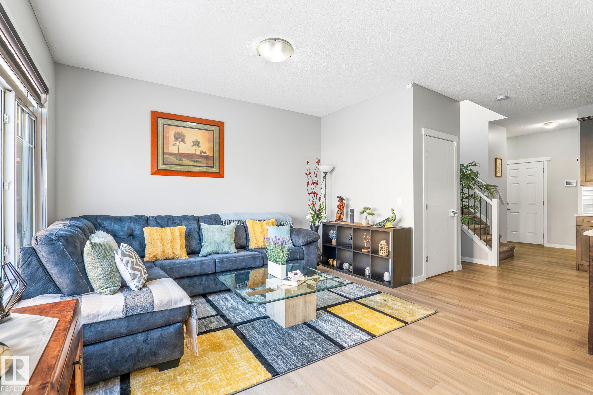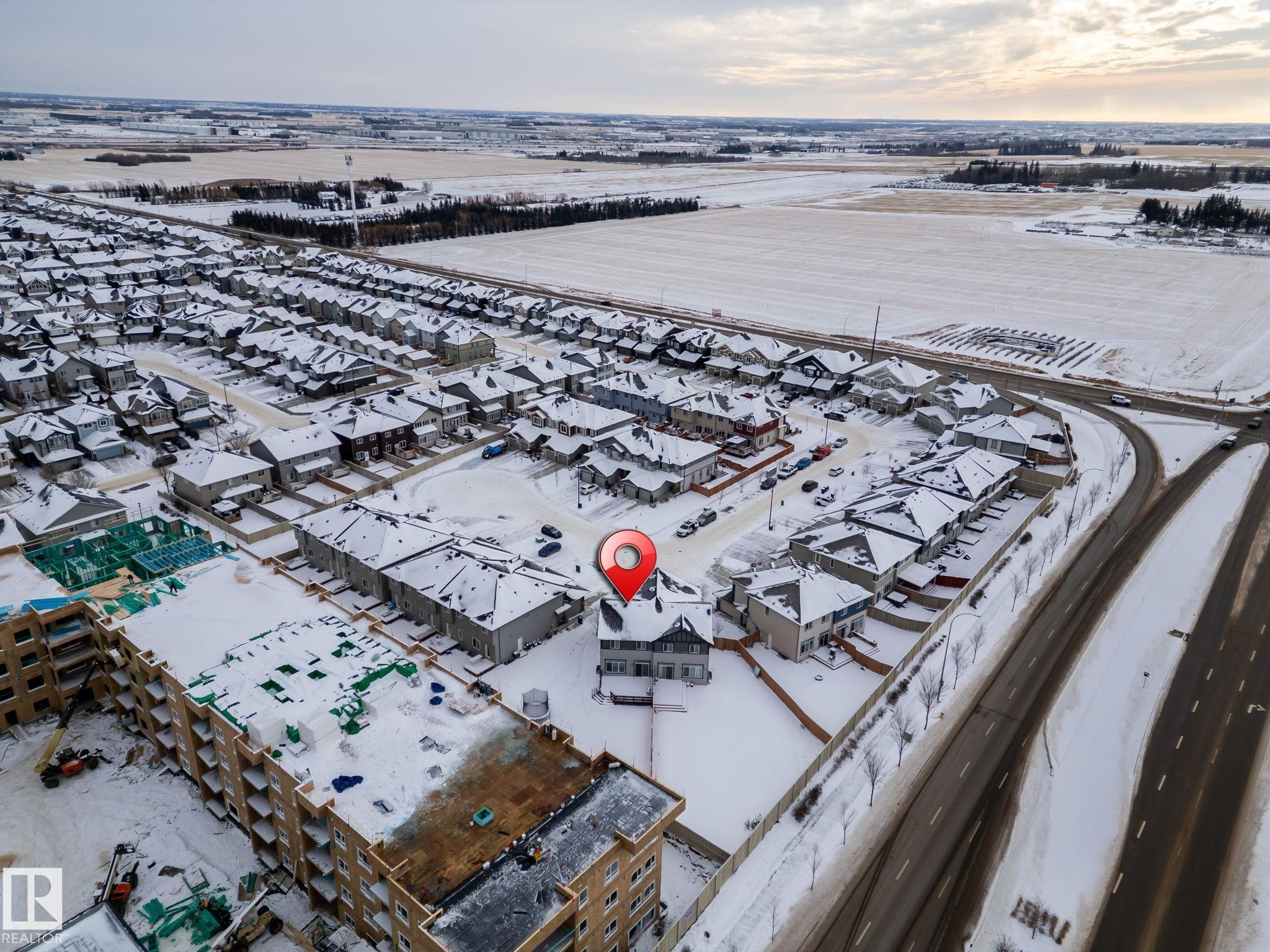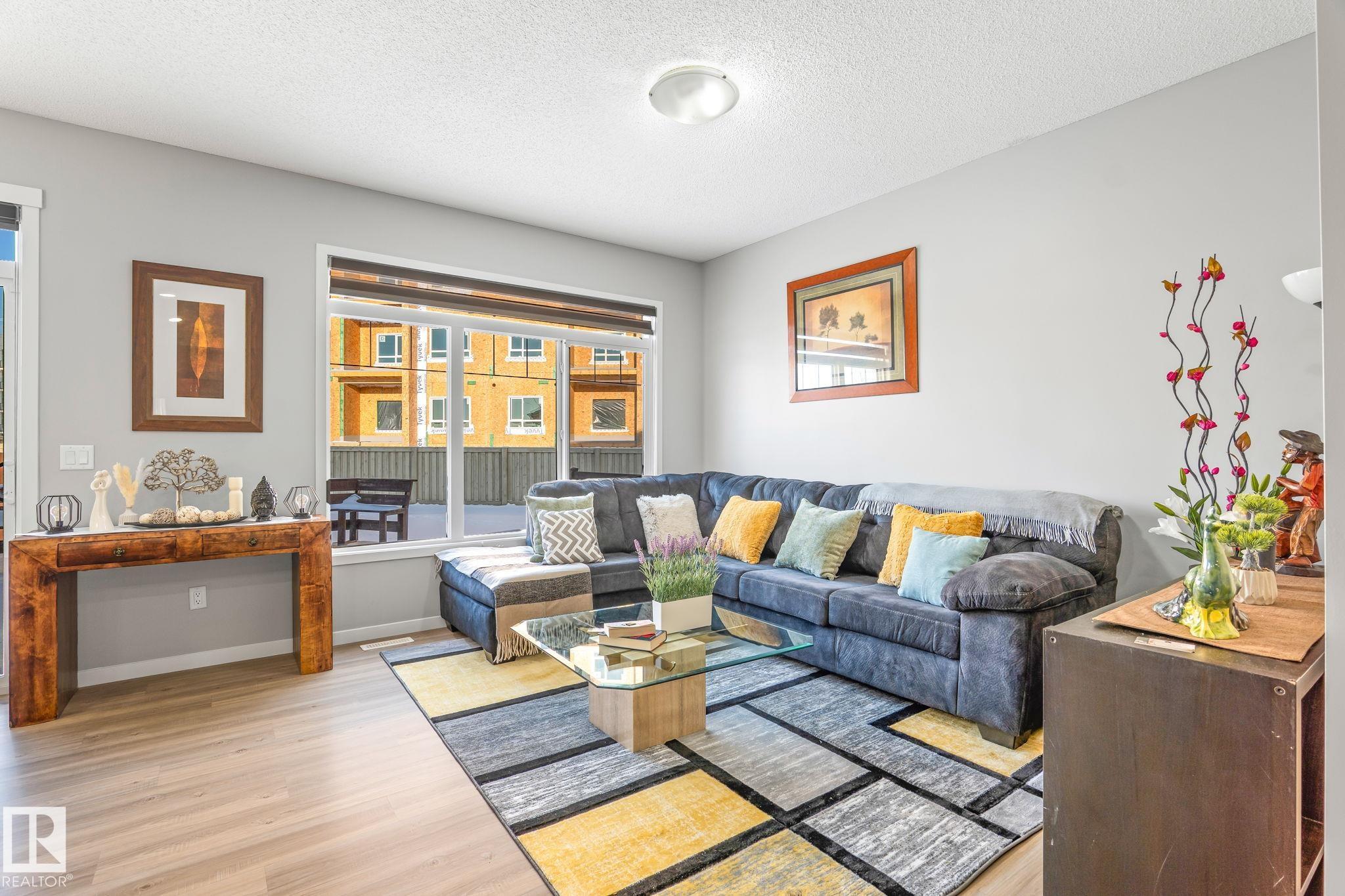 Welcome to Allard ? one of the most prestigious communities in Southwest Edmonton, where convenience meets comfort. This beautifully maintained half-duplex offers a DOUBLE GHARAGE, a separate SIDE ENTRENCE to the basement, and a generous PIE -LOT featuring a premium-finished, oversized deck. Inside, the upgraded kitchen complements the open-concept layout, seamlessly connecting the living and dining areas with views of the expansive backyard. The upper level includes three spacious bedrooms, including a master suite with its own ensuite, along with a versatile bonus room perfect for a home office or loft. The unfinished basement comes with a separate side entrance, providing an excellent opportunity to develop a future legal suite. Located close to schools and just 15 minutes from the airport, this home offers both comfort and convenience. A must-see property!